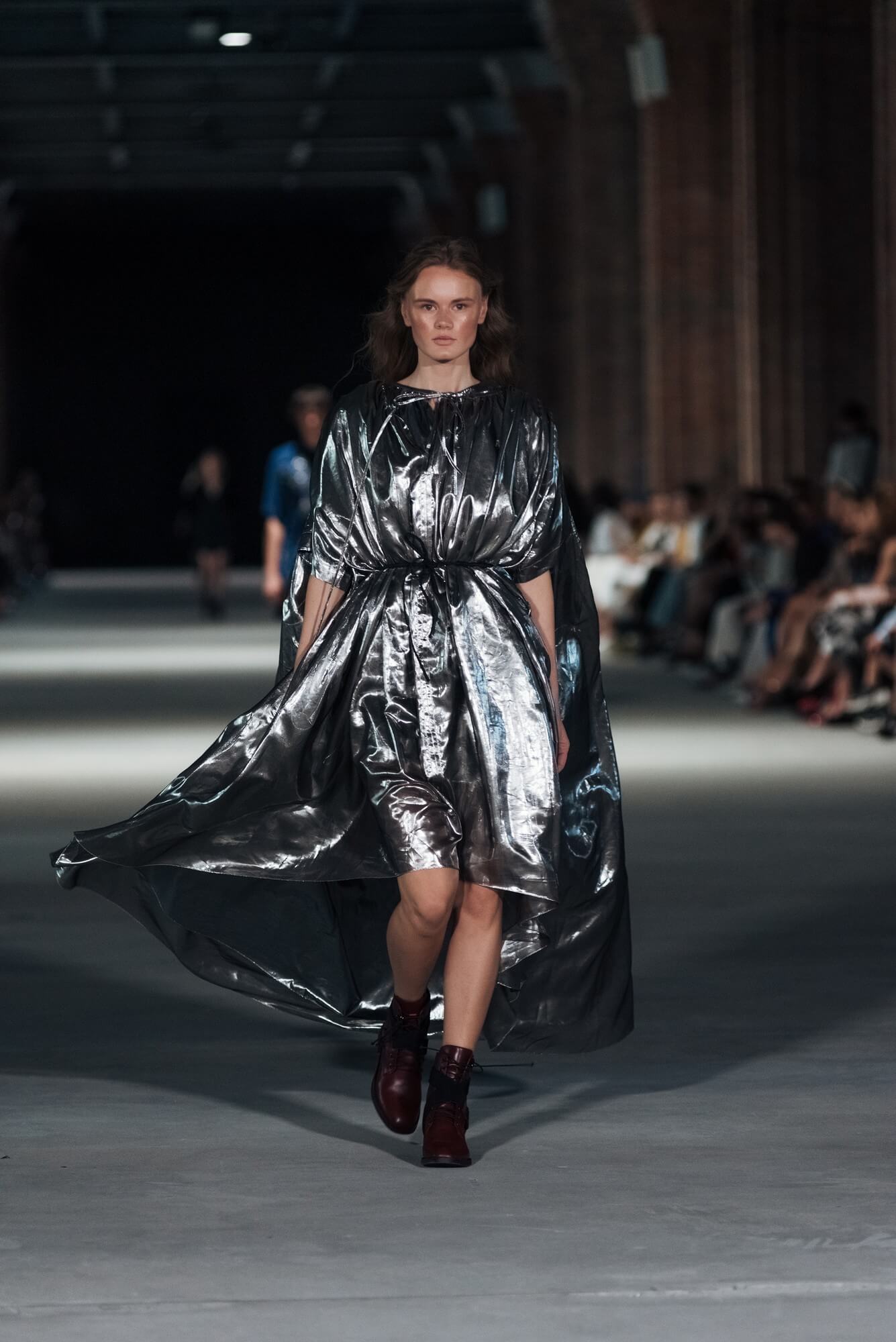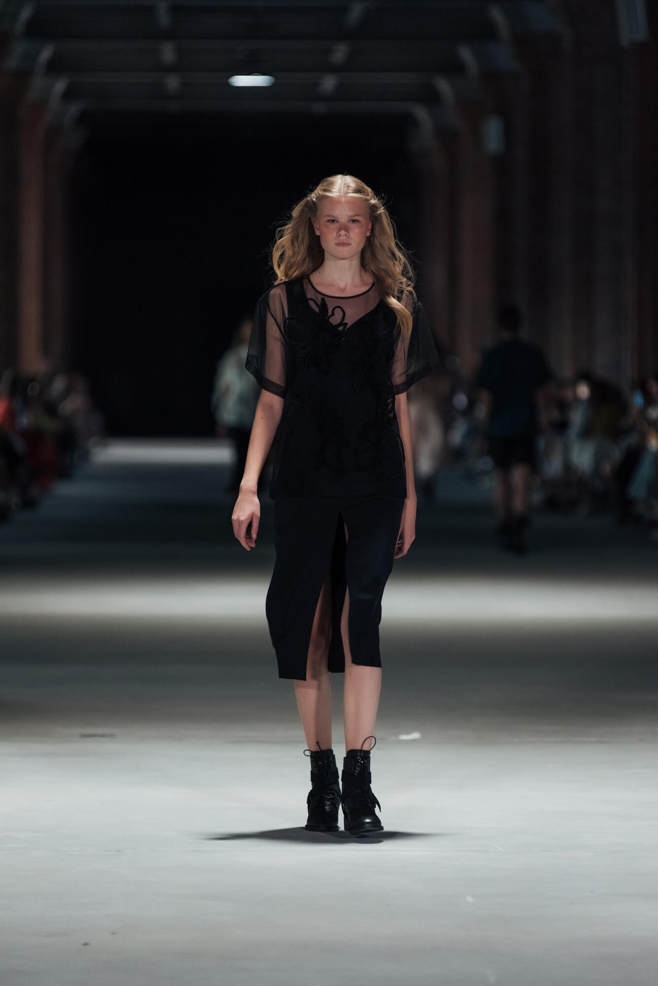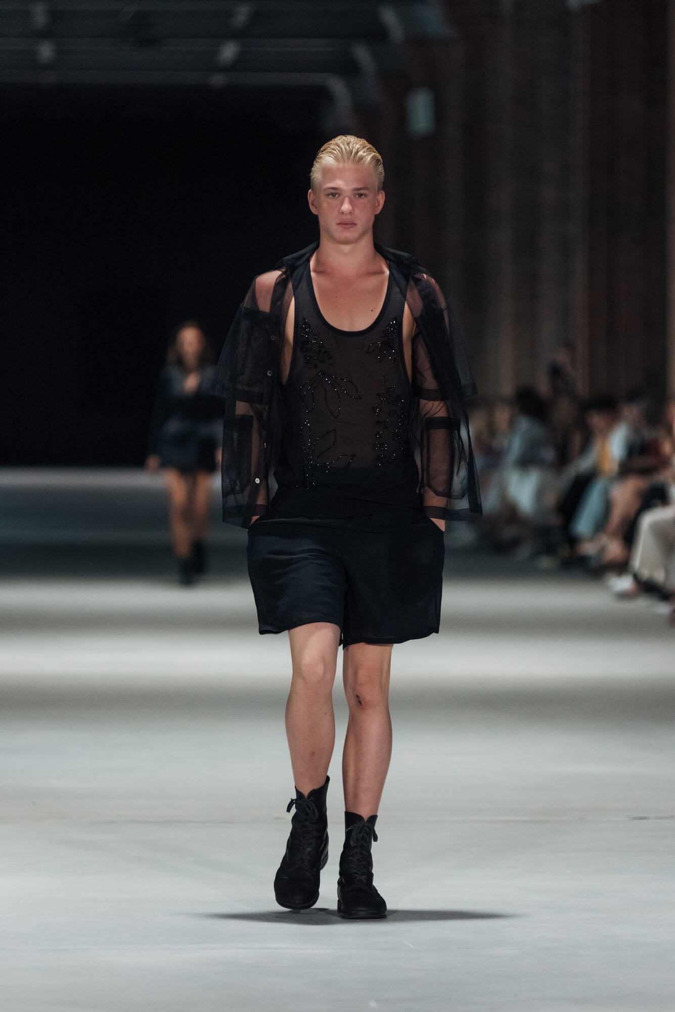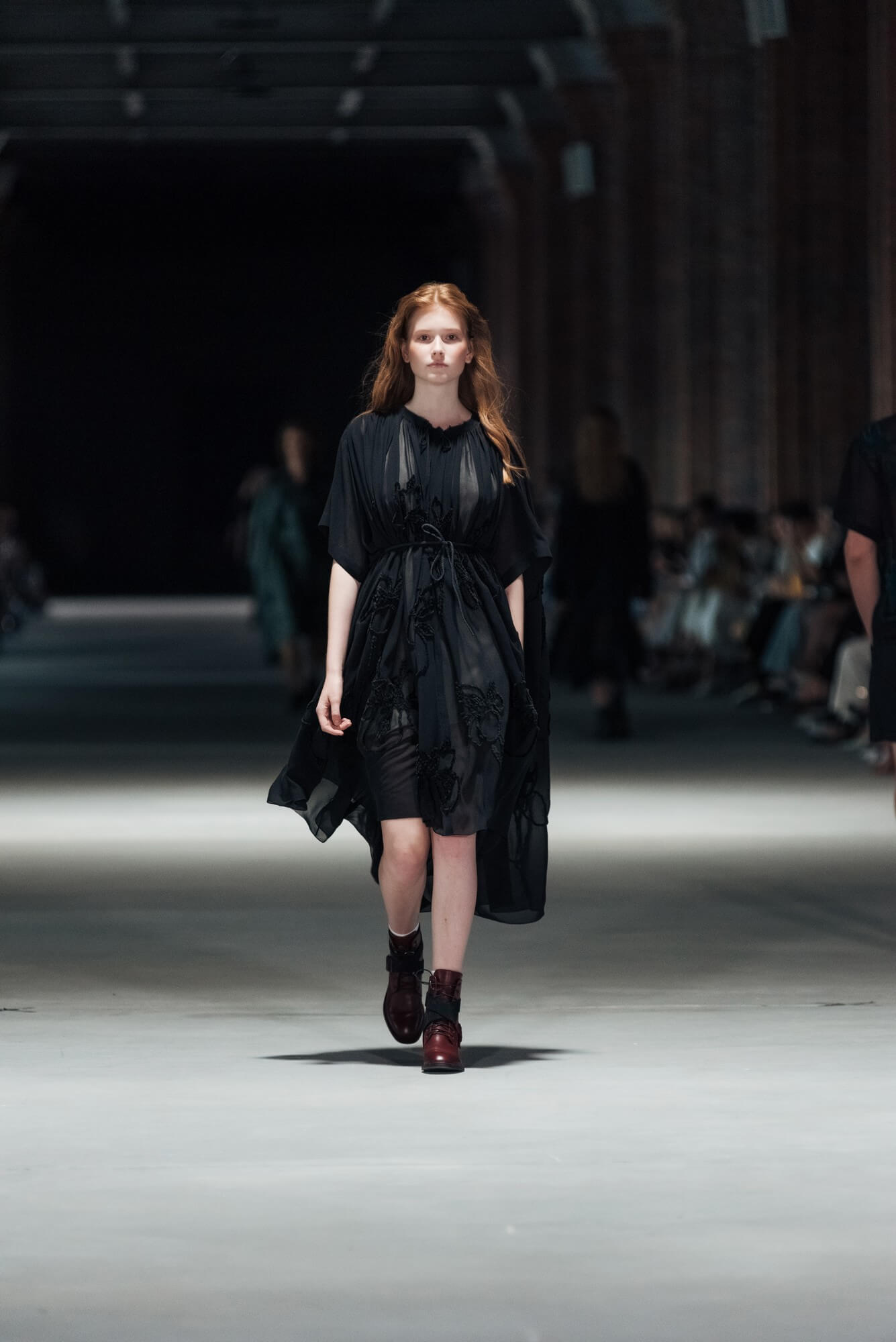 В продолжение некоторых тем прошлой коллекции - юности, любви, города и искусства, дизайнер традиционно "расцветил" блузы, мужские сорочки и полупрозрачные платья нежными букетами садовых цветов и цветов каштана. Модели выходили на подиум в нарядах, расшитых хрустальным стеклярусом, объёмной нитью, и с нарочито необработанными подолами юбок. Одним из самых эффектных стал выход модели в сверкающем серебристом платье-кейпе. Мужская часть коллекции состоит из силуэтных комбинезонов со строгими планками на пуговицах, прозрачных сорочек и футболок, напоминающих главную униформу рейверов 2000-х, и остроумных шорт с завышенной талией.