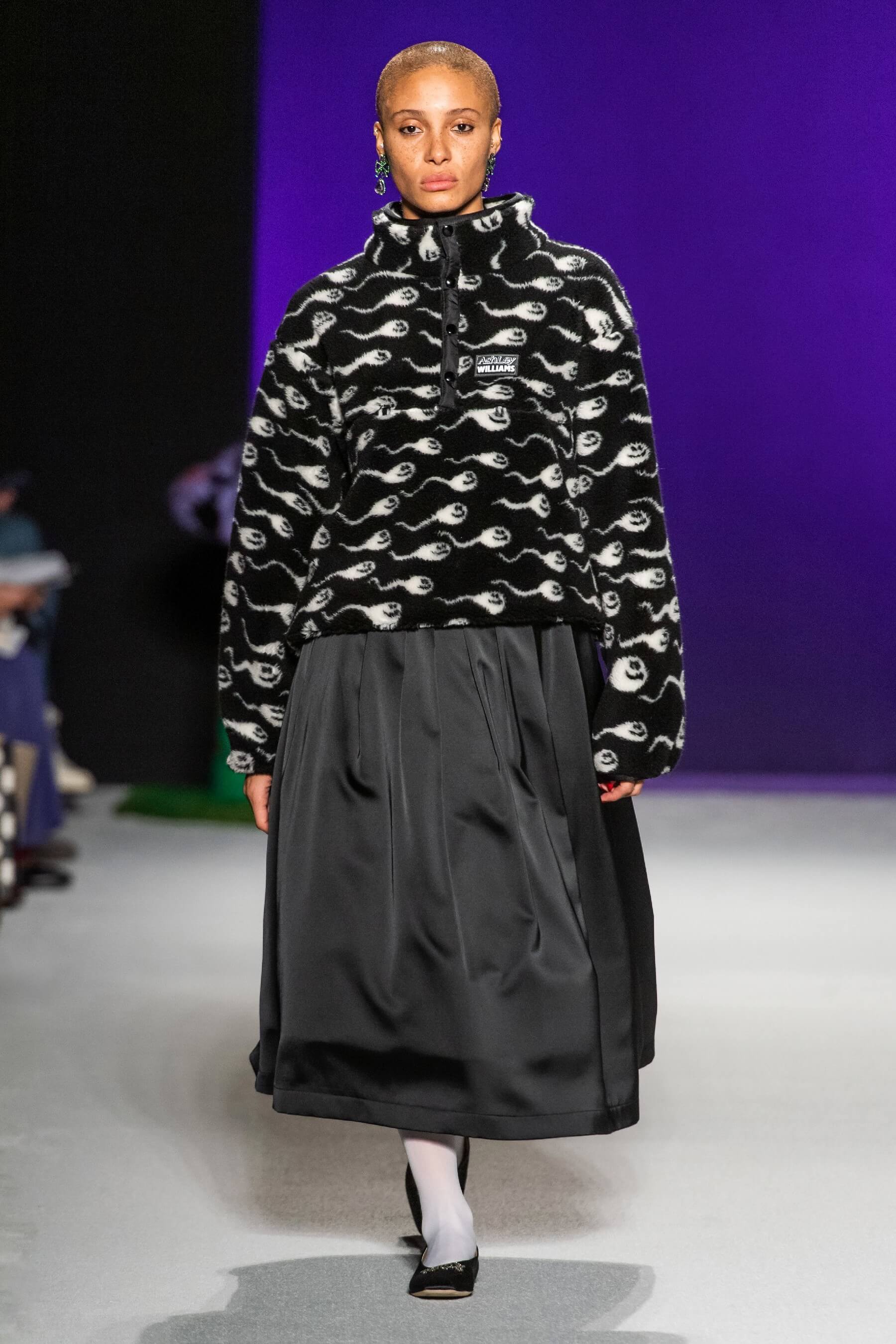 Темой осенней коллекции Эшли Уильямс стал "Пенис и его магическая сила". В такой шутливой форме дизайнер изучала довольно серьезную тему – сексуальную объективацию женщин. Показ открыла британская супермодель Адвоа Абоа в черном флисовом анораке с принтом сперматозоидов, тем самым задав тон – женщины Уильямс одеваются для себя и нравятся себе в первую очередь, не обращая внимания на мнение окружающих мужчин.
