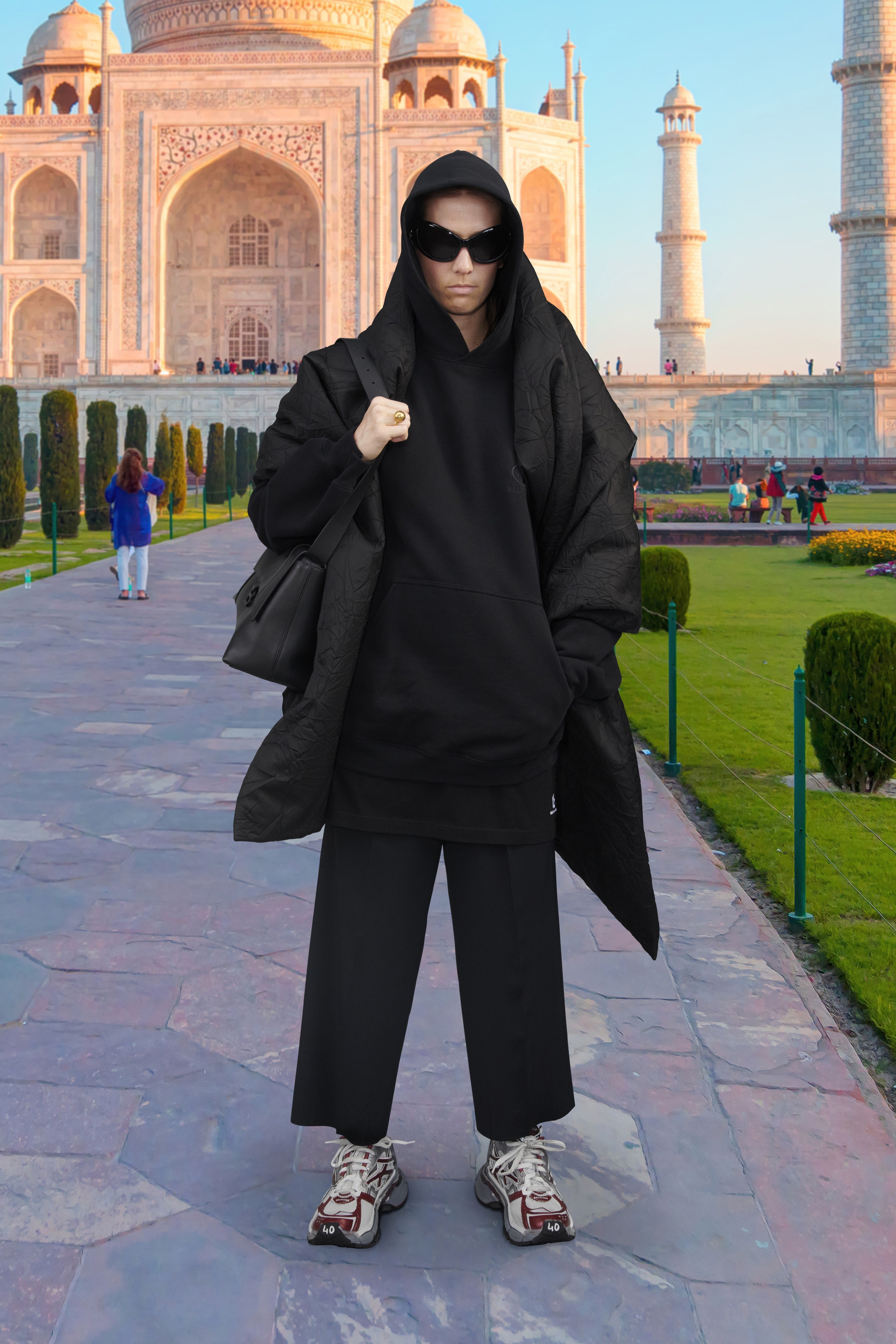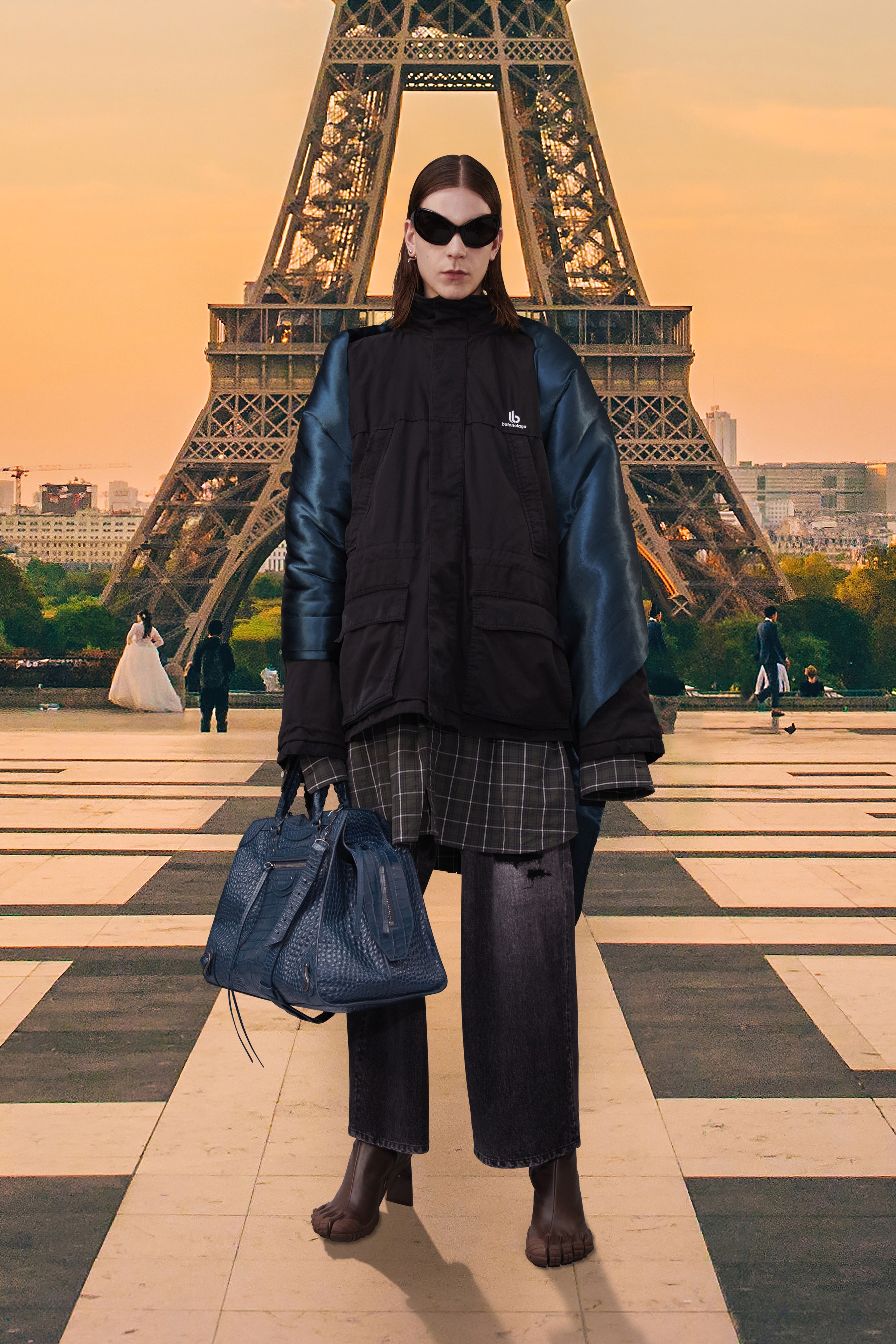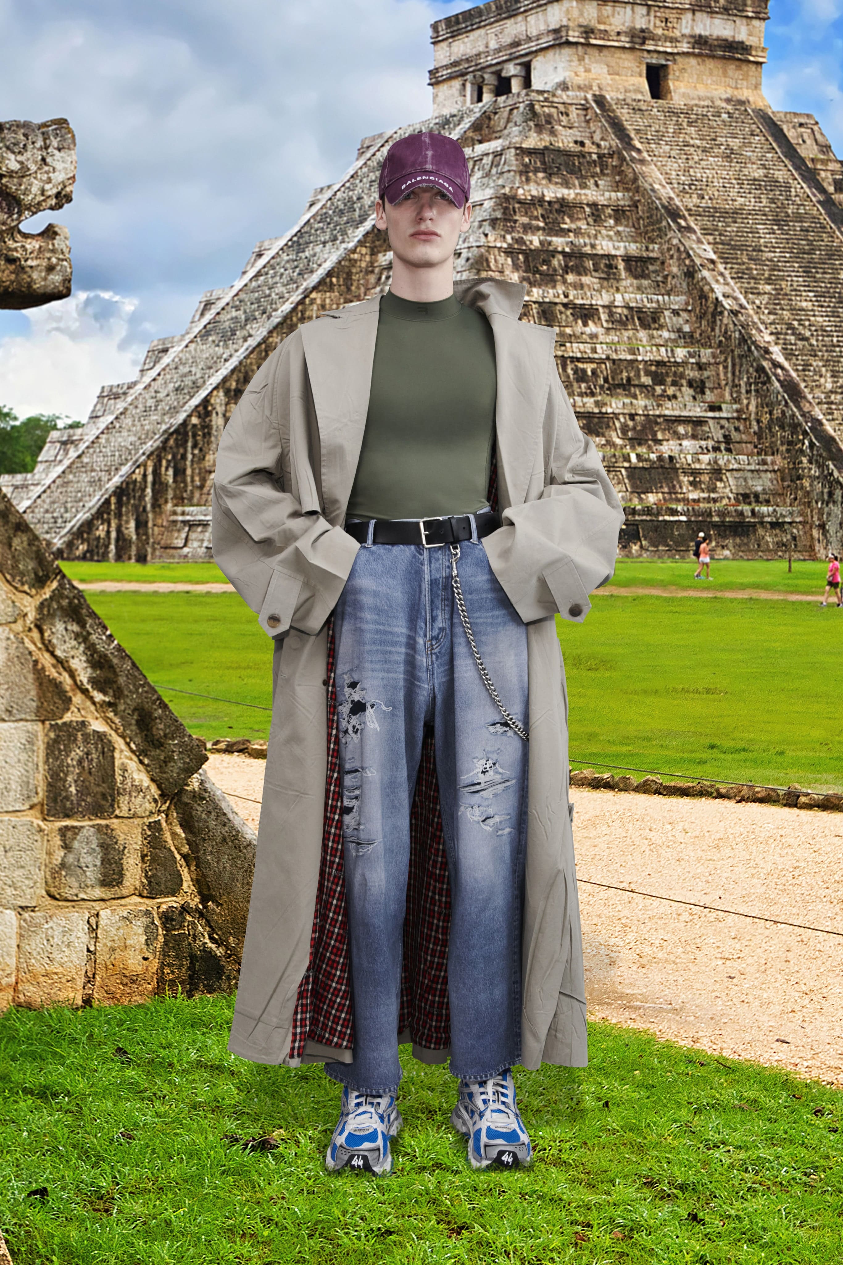 Коллекцию дизайнер посвящает путешествиям и радости наслаждаться жизнью. Более того, Гвасалия поставил перед своей командой важное условие: все материалы должны быть экологичными. Все вещи выполнены из переработанного сырья: объемный пуловер с гуманистической надписью Gay Power, олимпийки и узнаваемые серые джинсы, удлиненные худи, бомберы, платья в цветочный принт, песочно-серые тренчи и даже обувь и аксессуары, дополнившие образы виртуальных путешественников, позирующих на фоне пирамид, Тадж-Махала, Бранденбургских ворот в Берлине и Эйфелевой башни в Париже. Разумеется, достопримечательности выступают своего рода фотообоями, однако, глядя на кадры, хочется в таких же сверхстильных и комфортных образах отправиться наконец в путешествие.