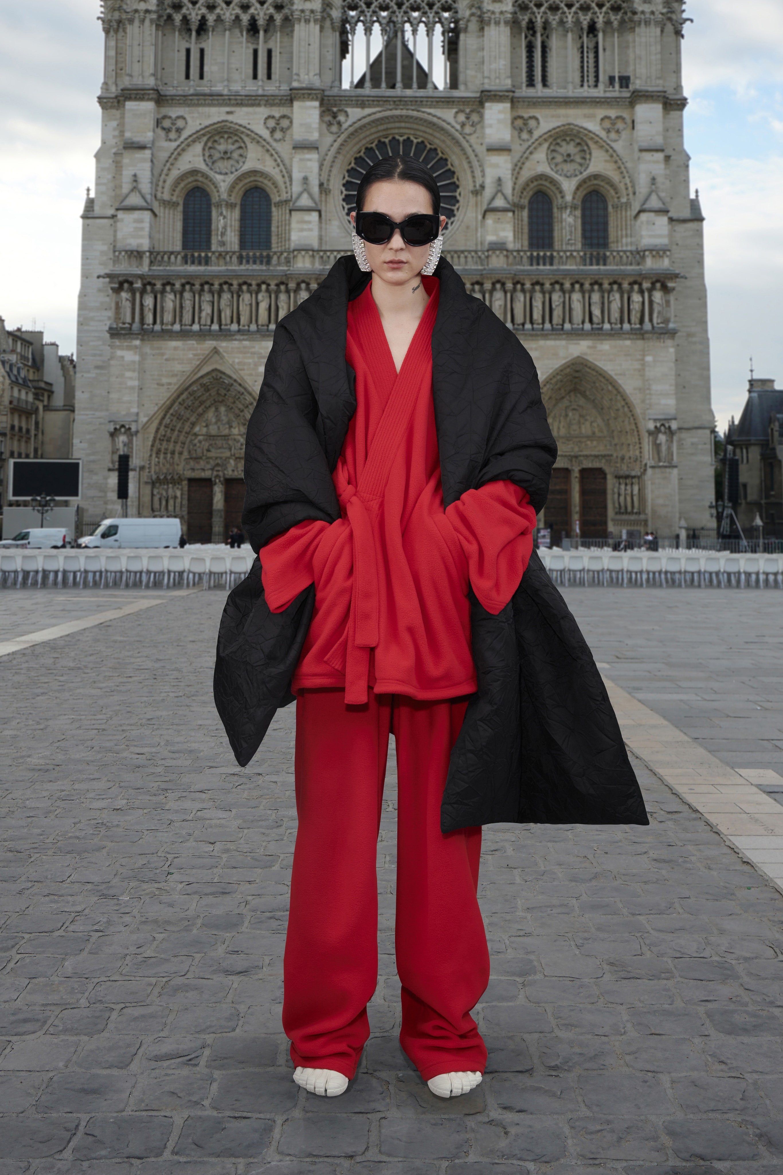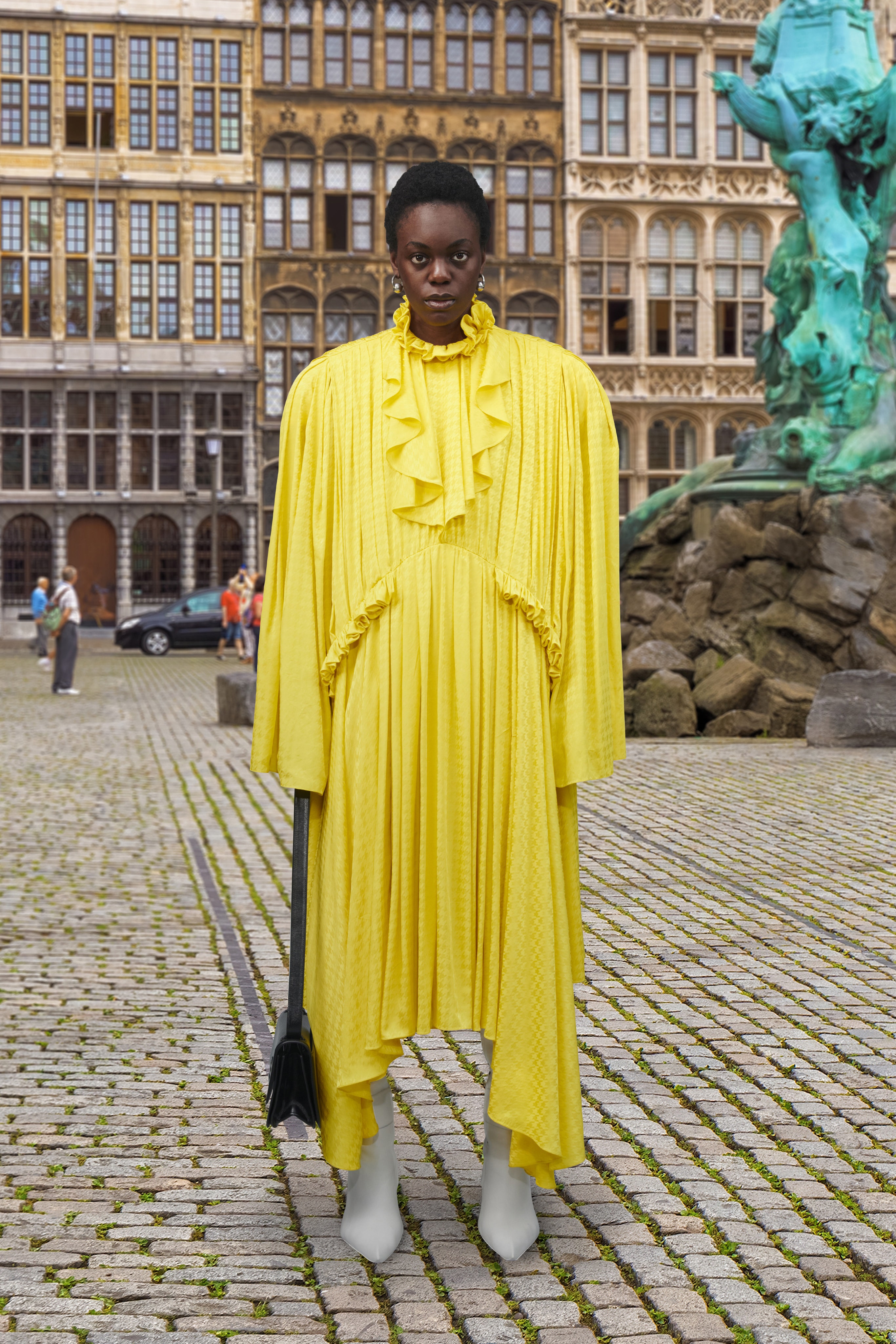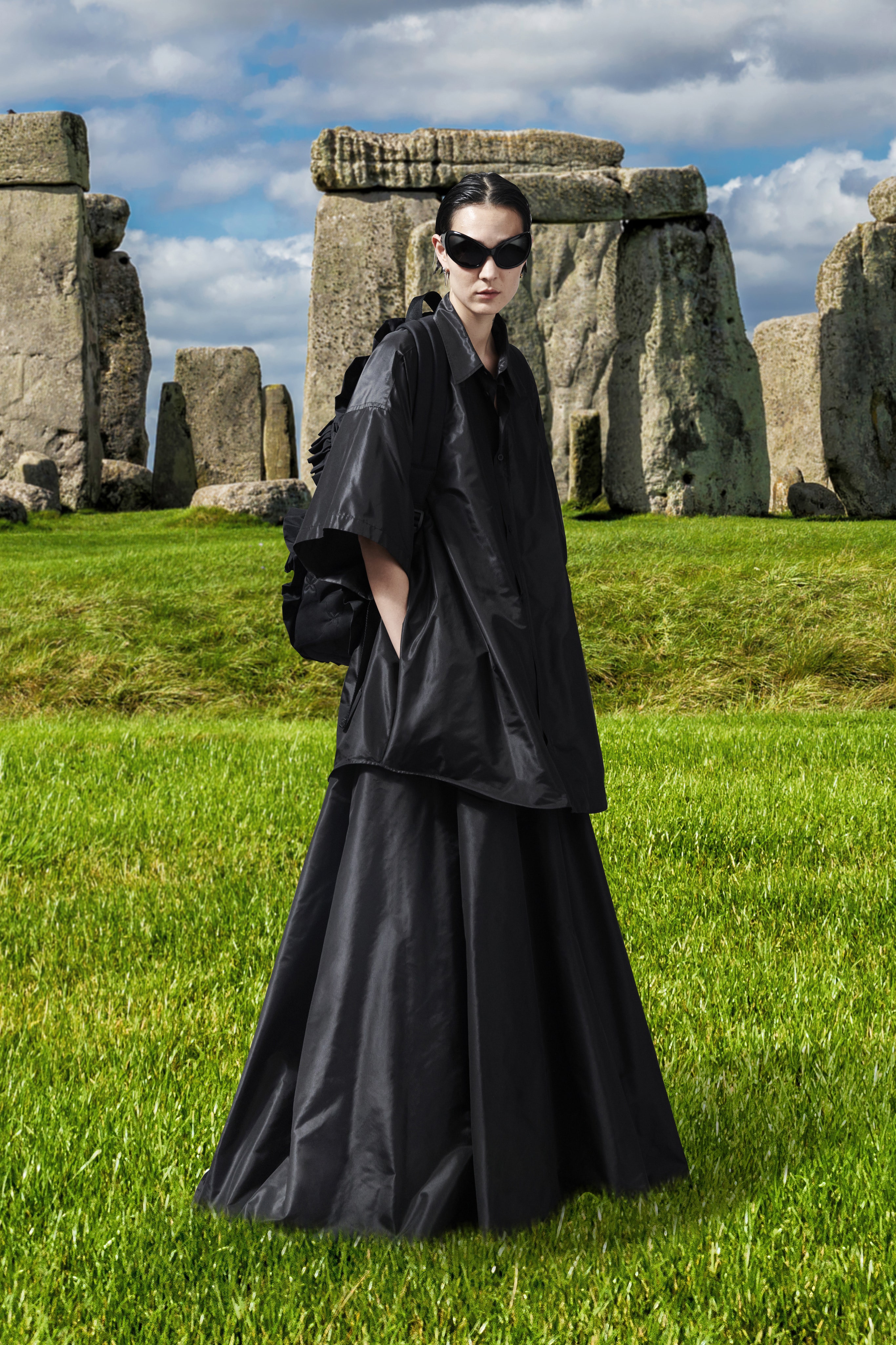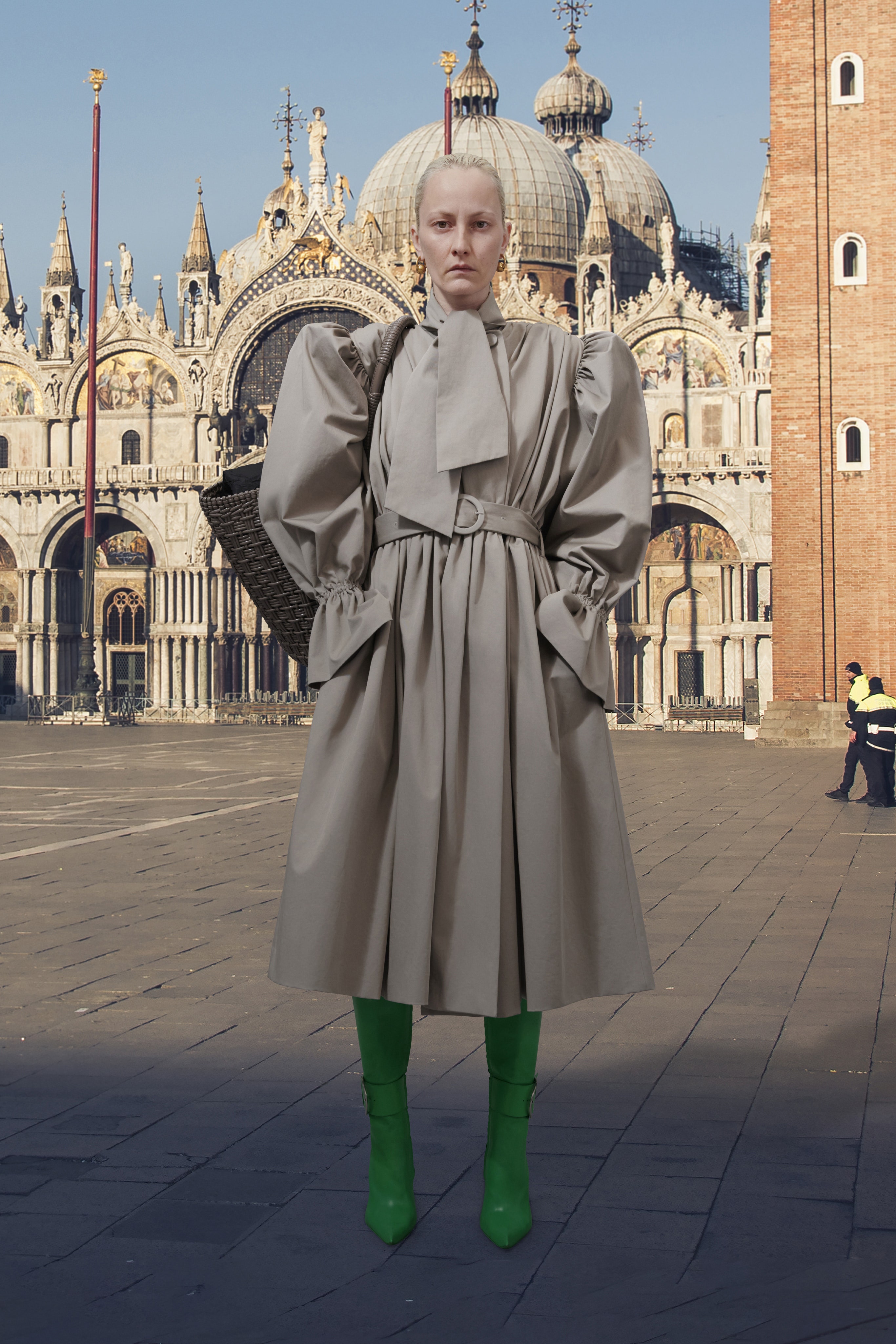Коллекцию дизайнер посвящает путешествиям и радости наслаждаться жизнью. Более того, Гвасалия поставил перед своей командой важное условие: все материалы должны быть экологичными. Все вещи выполнены из переработанного сырья: объемный пуловер с гуманистической надписью Gay Power, олимпийки и узнаваемые серые джинсы, удлиненные худи, бомберы, платья в цветочный принт, песочно-серые тренчи и даже обувь и аксессуары, дополнившие образы виртуальных путешественников, позирующих на фоне пирамид, Тадж-Махала, Бранденбургских ворот в Берлине и Эйфелевой башни в Париже. Разумеется, достопримечательности выступают своего рода фотообоями, однако, глядя на кадры, хочется в таких же сверхстильных и комфортных образах отправиться наконец в путешествие.