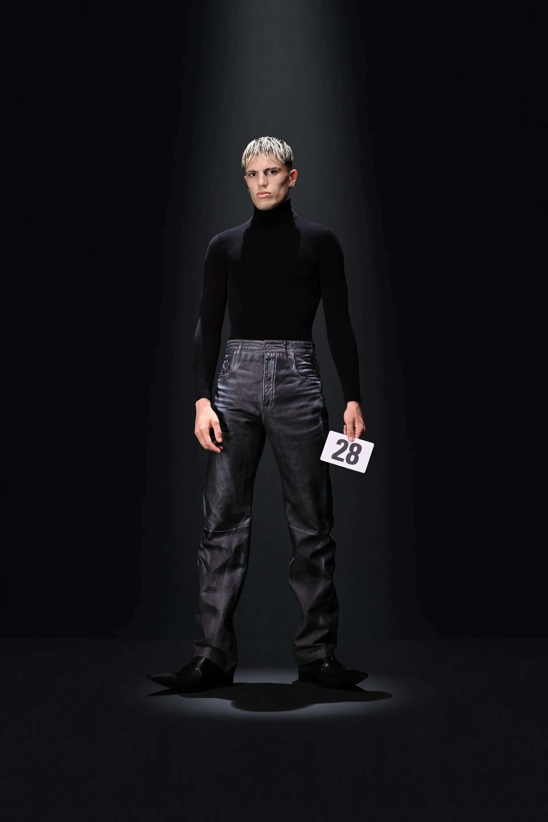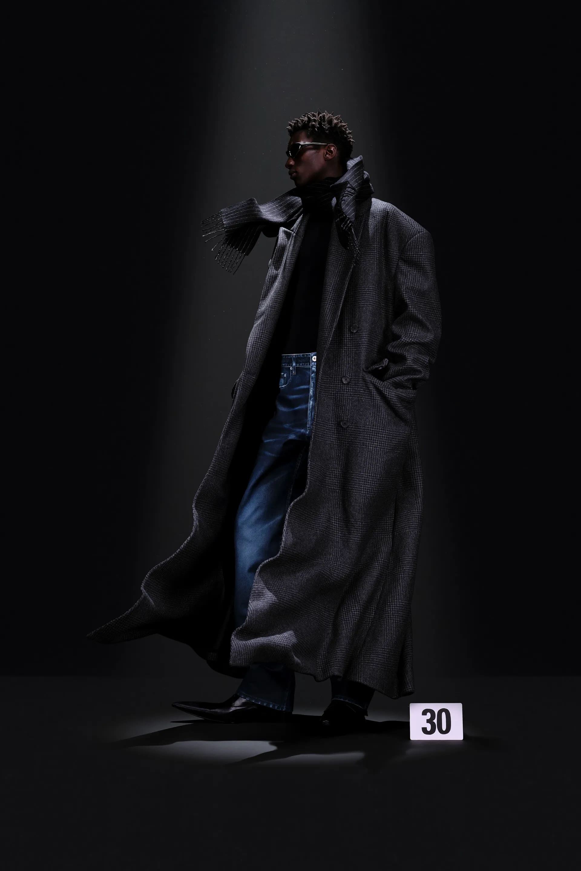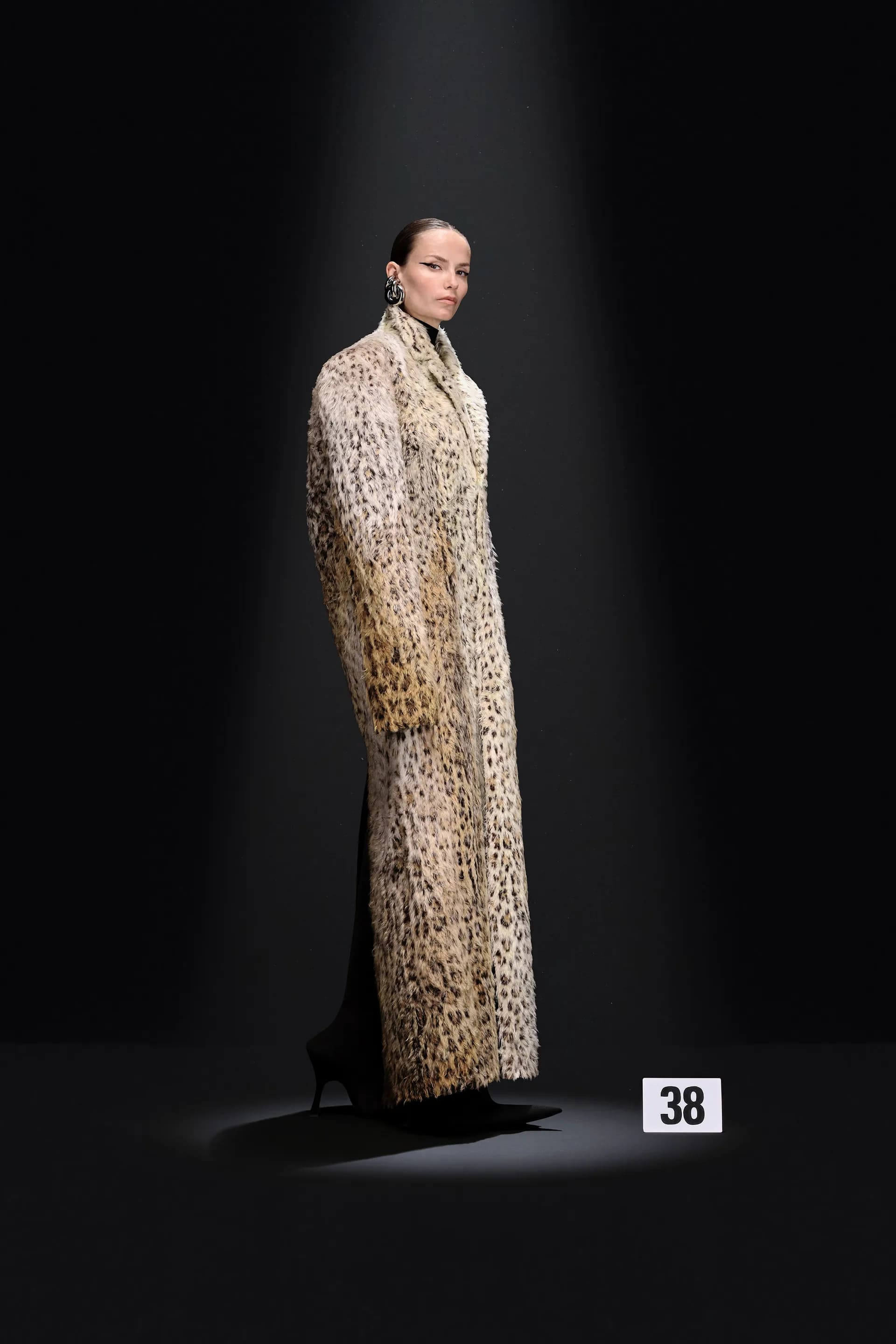 Гвасалія знову перетворює кутюр в оптичну ілюзію: класичні шкіряні джинси не зроблені зі шкіри, джинсова комбінація в стилі канадського смокінга зовсім не джинсова. Демна продовжує кидати виклики традиційній високій моді в пам’ятних образах 30 і 41. Перший із них складається з червоної парки, натхненної піджаком із колекції Крістобаля. Другий — звичайне пальто, яке наче розвіває вітер, водночас цей ефект створений за допомогою нагрітої праски.