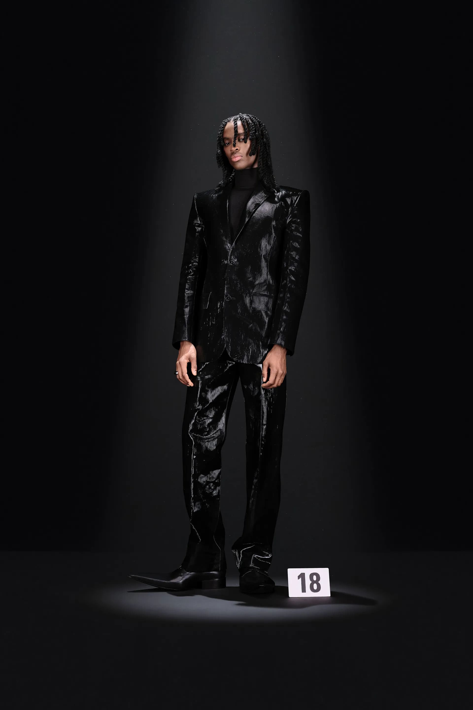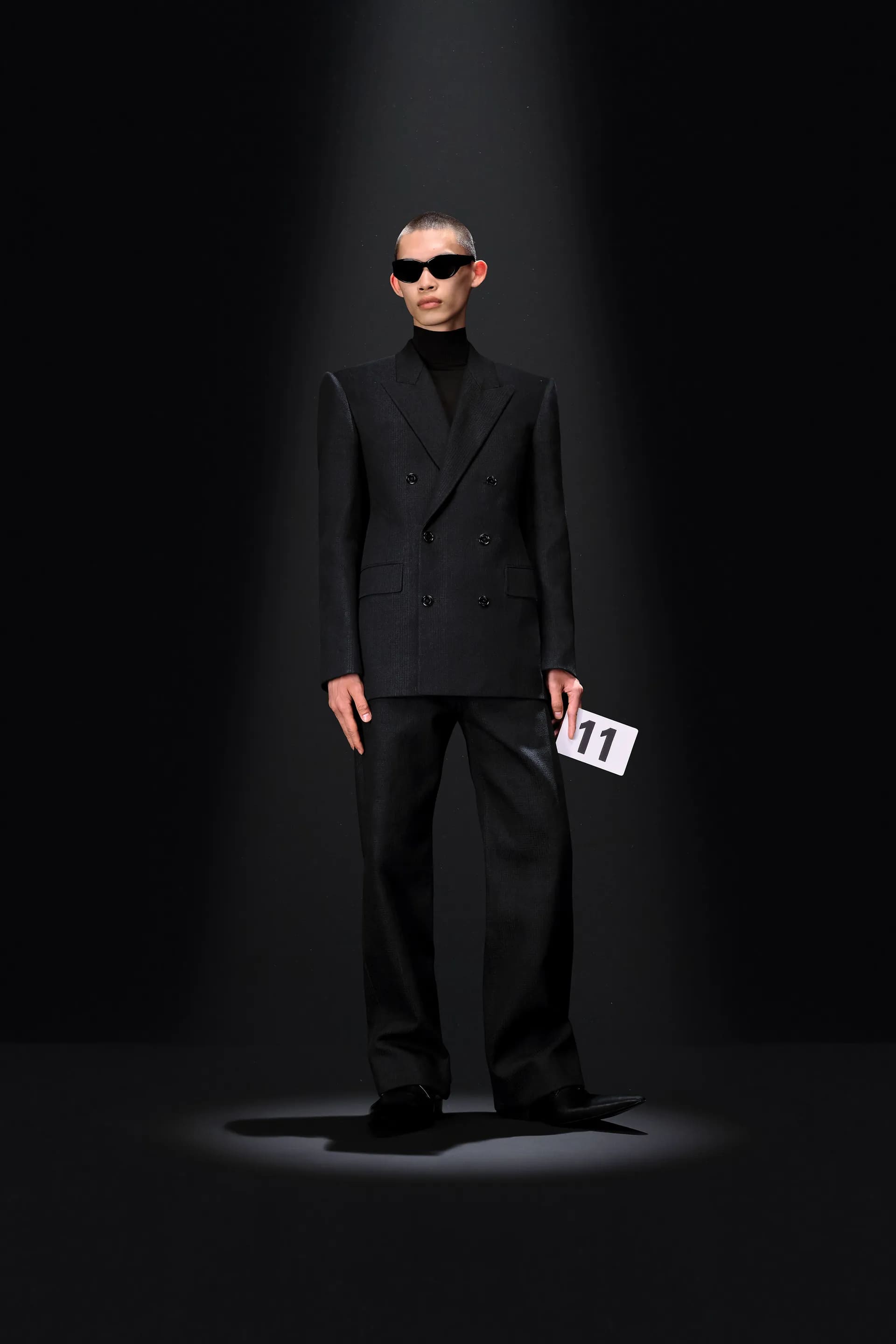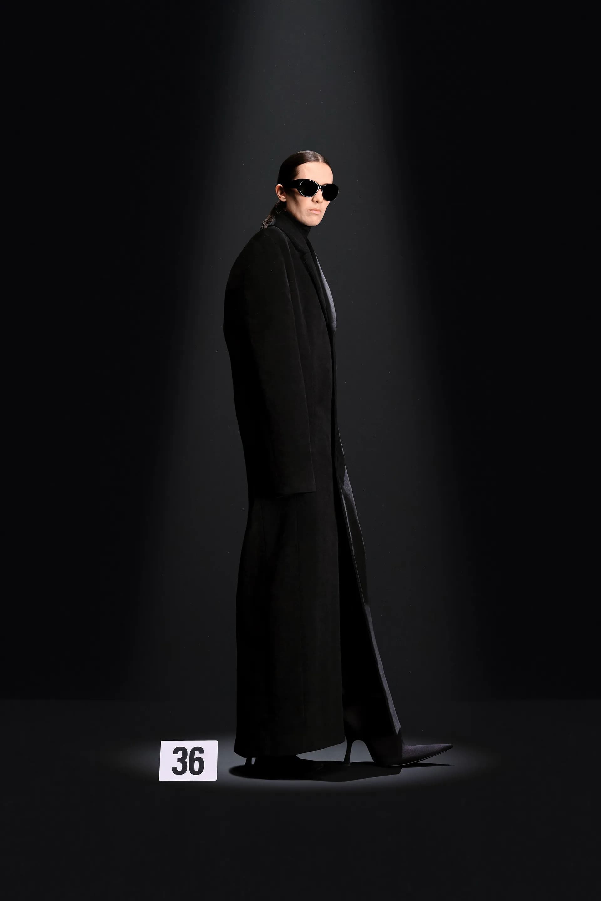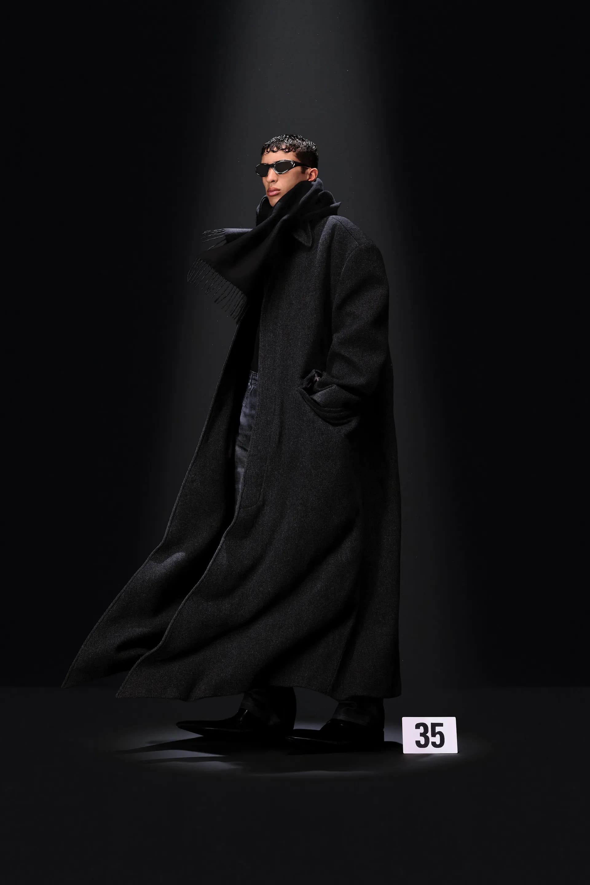 Гвасалія знову перетворює кутюр в оптичну ілюзію: класичні шкіряні джинси не зроблені зі шкіри, джинсова комбінація в стилі канадського смокінга зовсім не джинсова. Демна продовжує кидати виклики традиційній високій моді в пам’ятних образах 30 і 41. Перший із них складається з червоної парки, натхненної піджаком із колекції Крістобаля. Другий — звичайне пальто, яке наче розвіває вітер, водночас цей ефект створений за допомогою нагрітої праски.