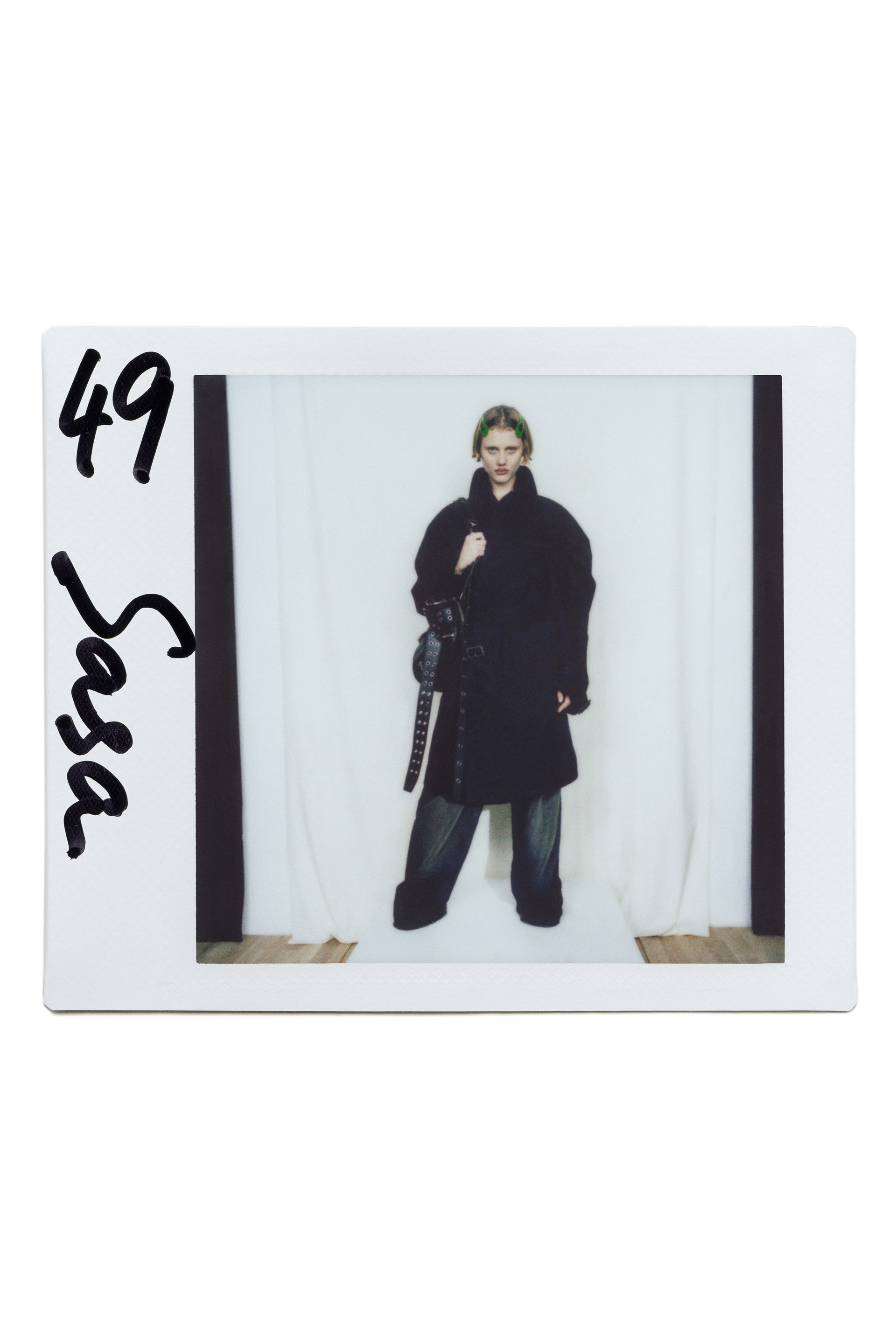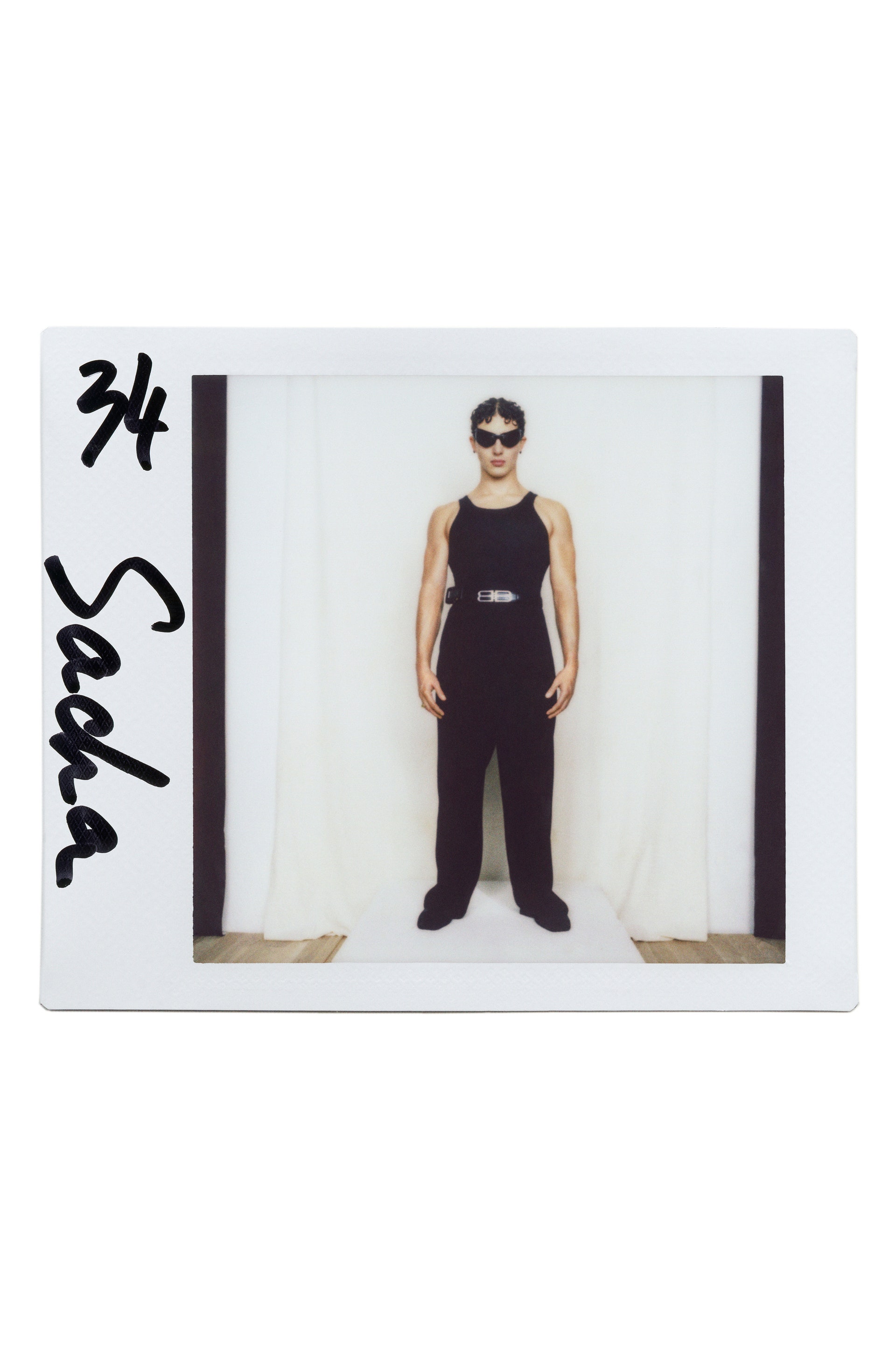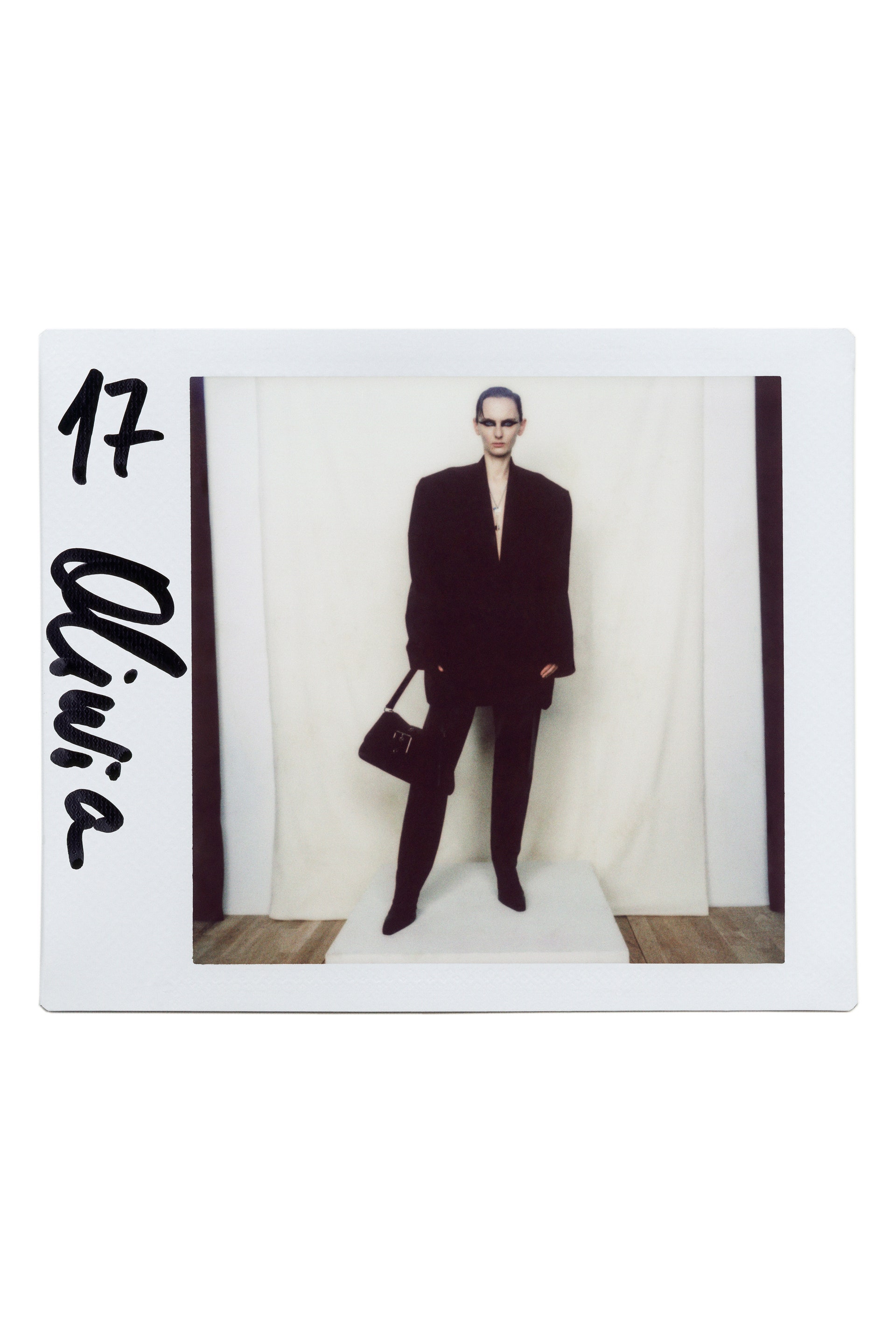 Коллекция Демны также пропитана гранжем: объемные кожаные куртки, стянутые у краев, «квадратные» пальто и плащи, в которых так легко узнать Balenciaga наших дней и настроение минувшей эпохи, декадентские бархатные платья со шлейфами и плотные костюмы из шерсти, традиционно для Демны скульптурные и предельно силуэтные. Почти вся коллекция окрашена в черный — любимый цвет Демны, один из важнейших в творчестве Кристобаля Баленсиаги и самый модный в конце 90-х. Лишь некоторые вещи, вроде эластичных топов и текстильных шуб, выполнены в белом, голубом, красном или ярко-зеленом цветах.