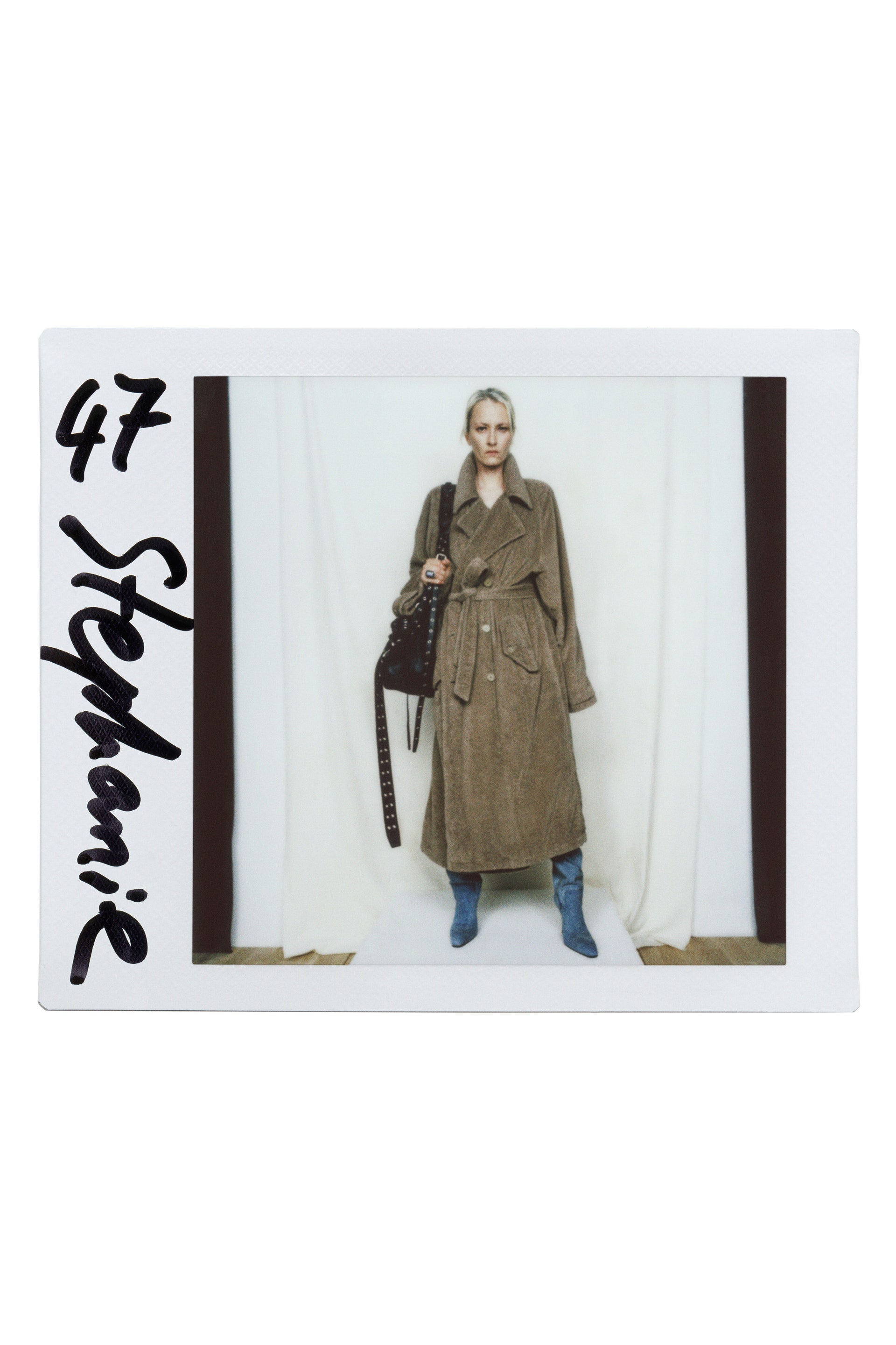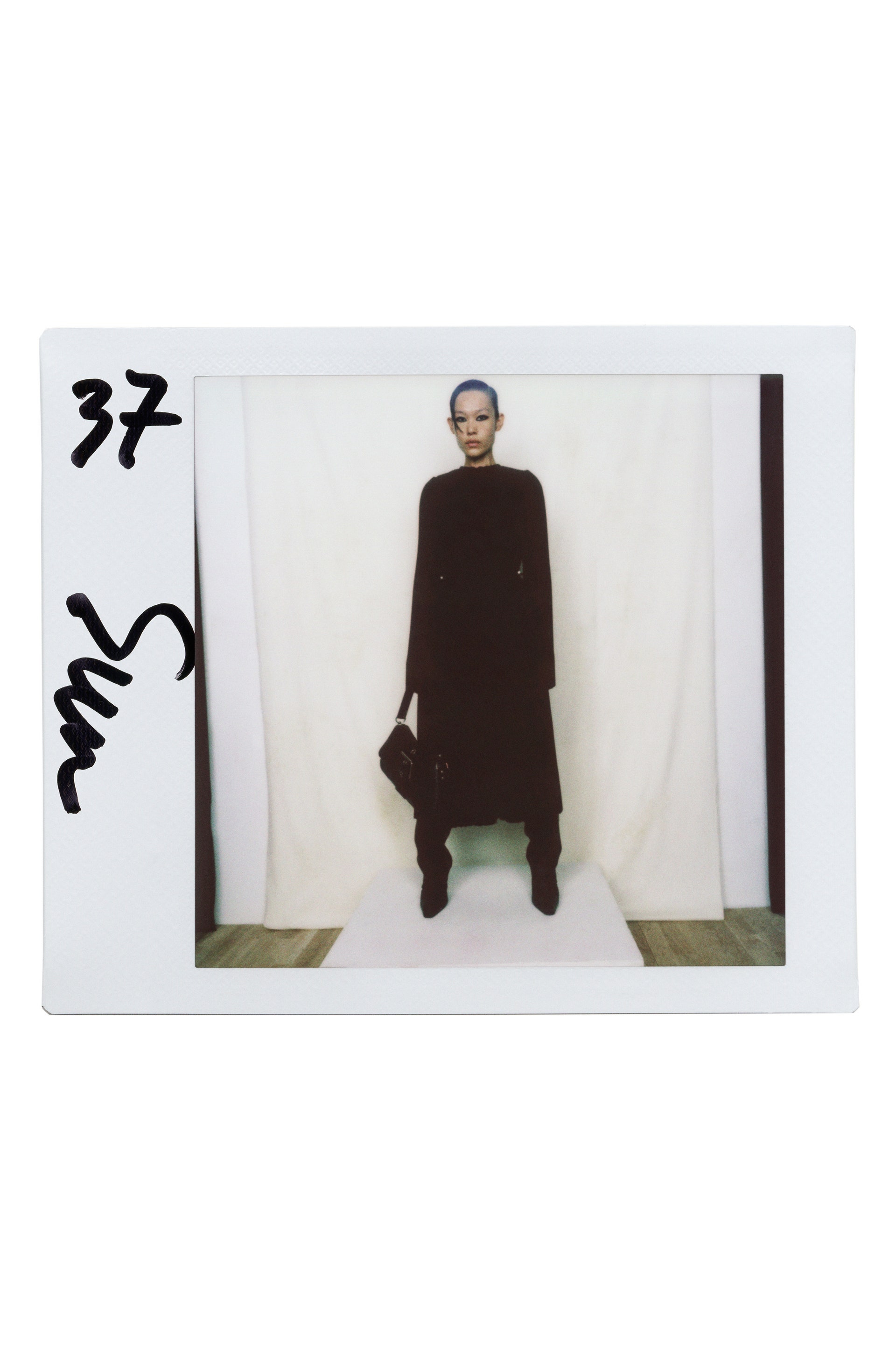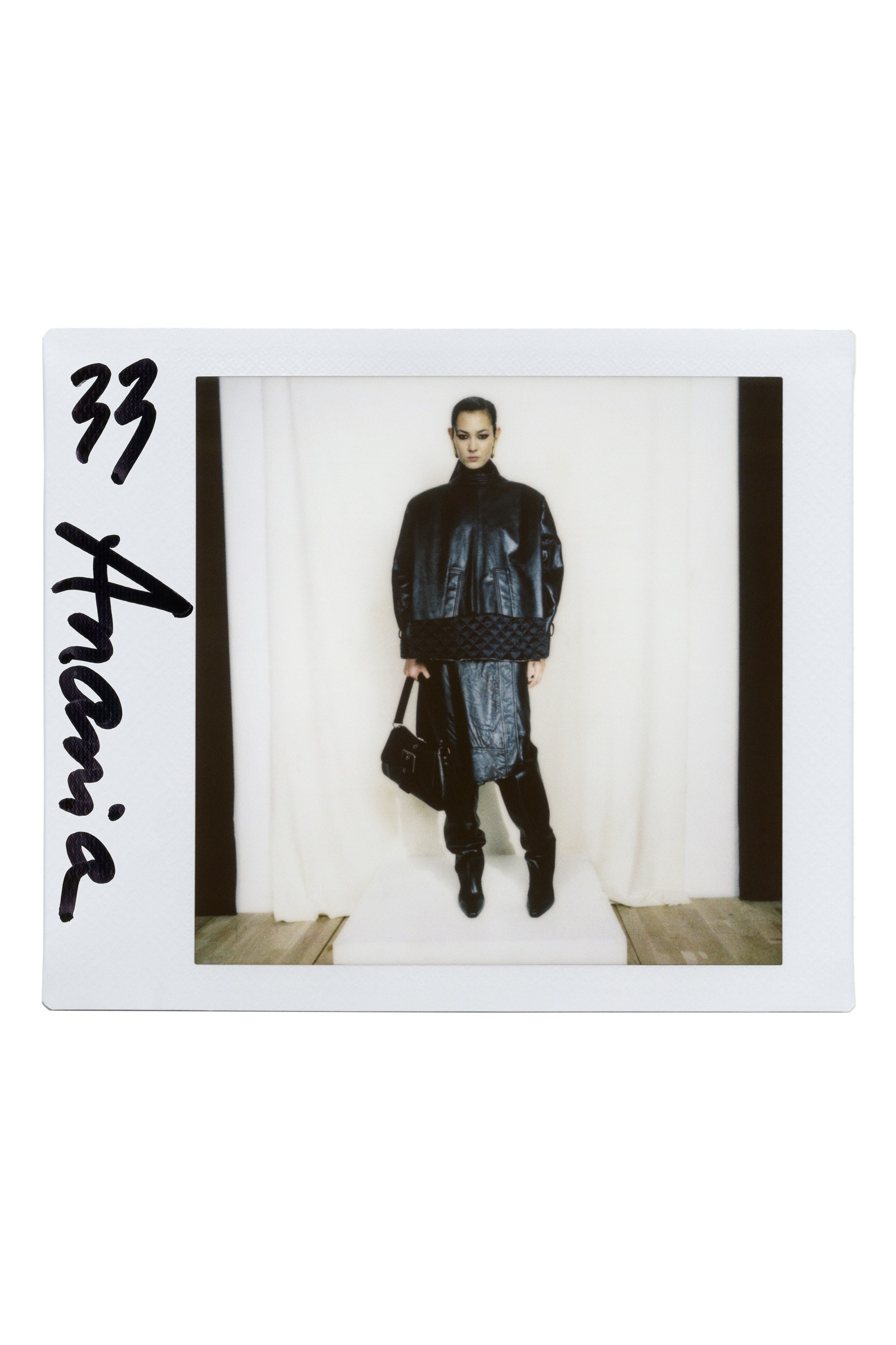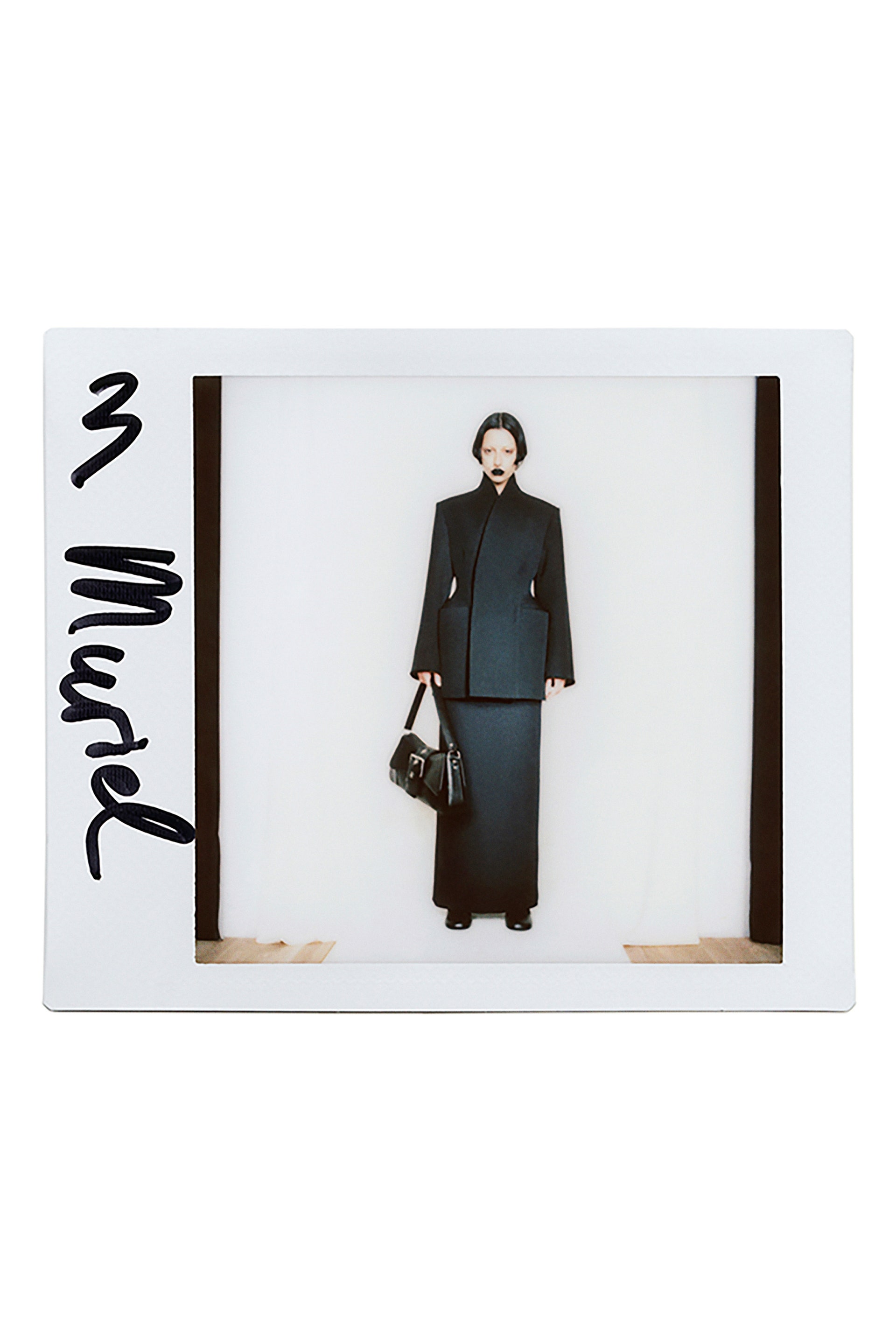 Коллекция Демны также пропитана гранжем: объемные кожаные куртки, стянутые у краев, «квадратные» пальто и плащи, в которых так легко узнать Balenciaga наших дней и настроение минувшей эпохи, декадентские бархатные платья со шлейфами и плотные костюмы из шерсти, традиционно для Демны скульптурные и предельно силуэтные. Почти вся коллекция окрашена в черный — любимый цвет Демны, один из важнейших в творчестве Кристобаля Баленсиаги и самый модный в конце 90-х. Лишь некоторые вещи, вроде эластичных топов и текстильных шуб, выполнены в белом, голубом, красном или ярко-зеленом цветах.