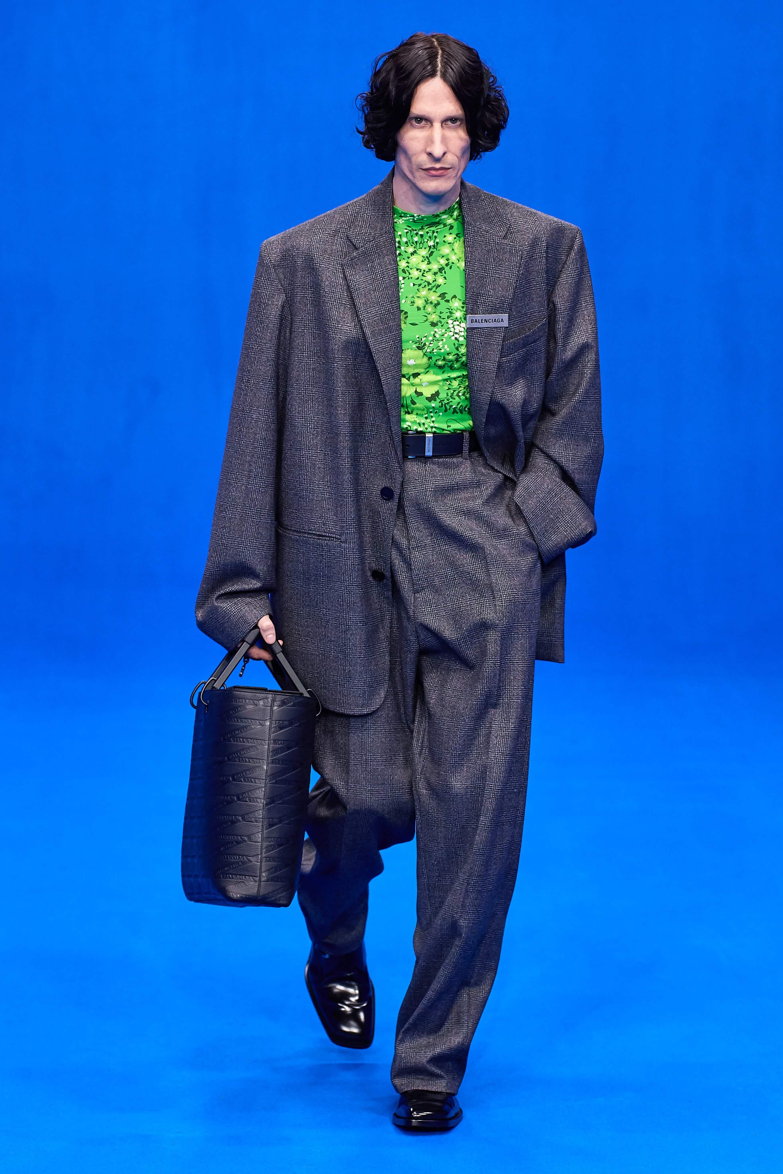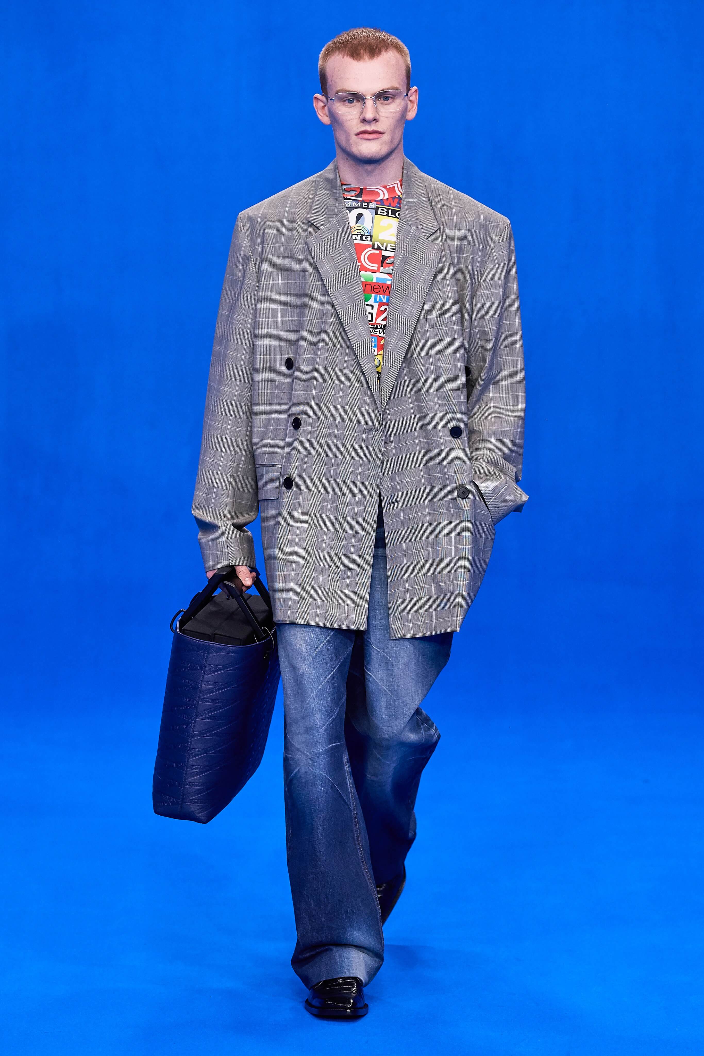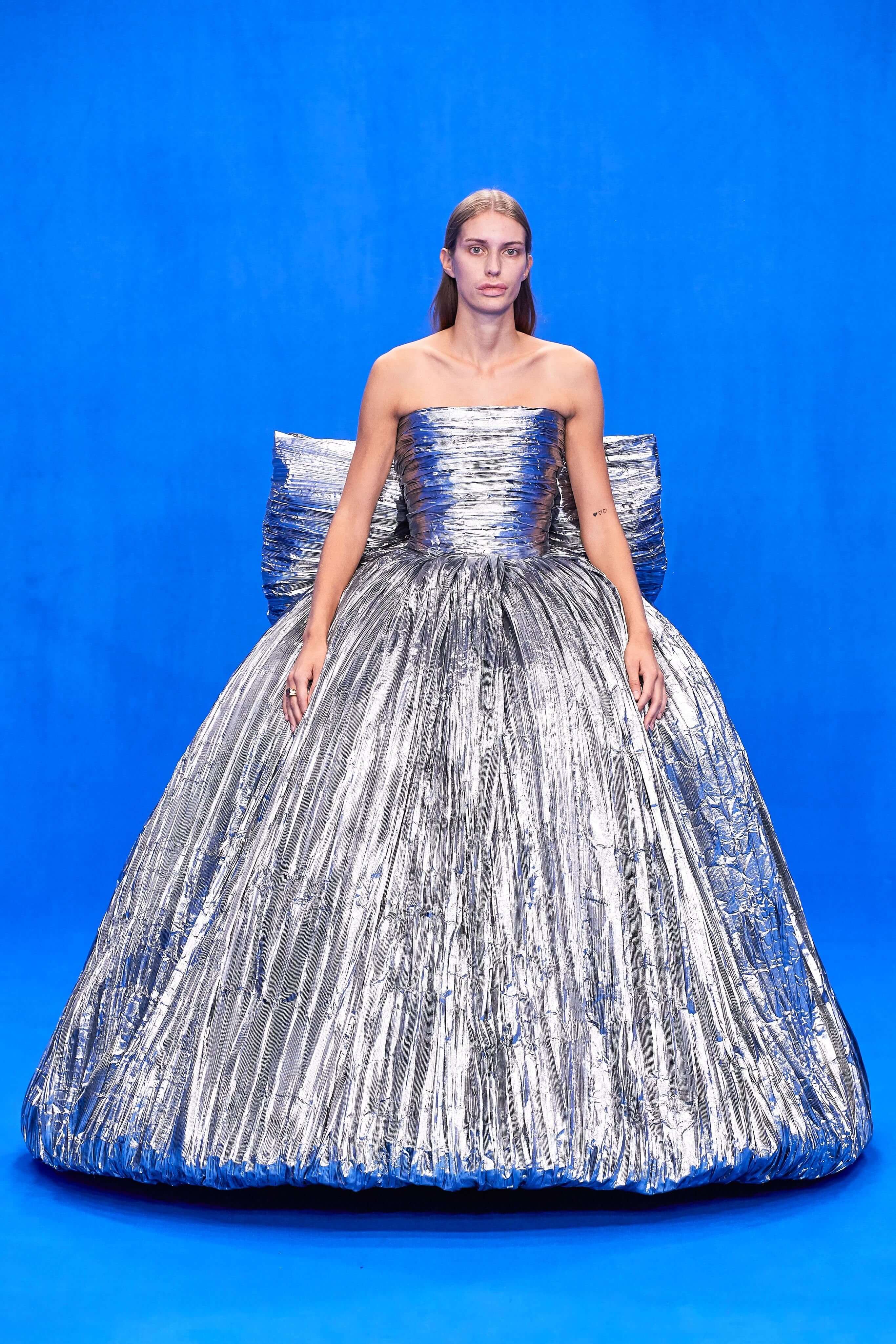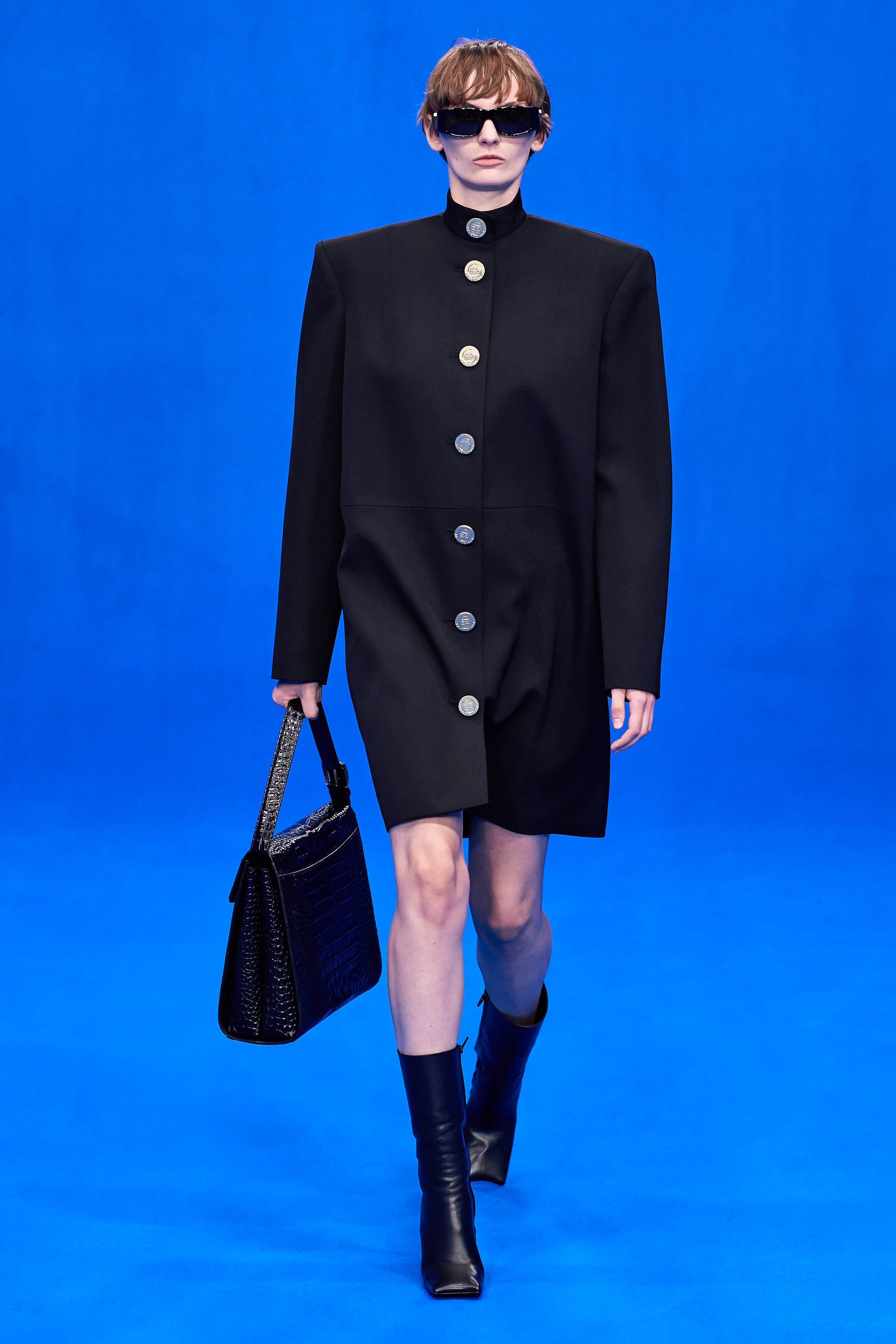 Демна Гвасалия верен себе – его острые плечистые костюмы с юбками до середины колена, "сутулые" пуховики, нарочито бесформенные костюмы и квадратные платья на первый взгляд выглядят гротескно, однако не только носибельны, но и имеют в основе эстетические коды хорошо знакомой нам классики 1940-80-х годов. Ирония - это то, чего нам зачастую остро не хватает, и Гвасалия дарит нам это неповторимое ощущение дурашливой серьёзности, то стилизуя аксессуары и вещи под дизайн кредиток MasterCard, то облачая моделей в сверхлаконичные, но не в меру пышные бальные платья на кринолинах, то укутывая их в леопардовые пальто, блестящие комбинезоны в зебру или серые плащи, напоминающие чехлы для мебели. В обильном декорированном рюшами платье-дезабилье на подиум в этот раз вышла Рената Литвинова, чего подспудно ждали многие поклонники актрисы, ведь инстаграм артистки изобилует элегантными total-look от Balenciaga.