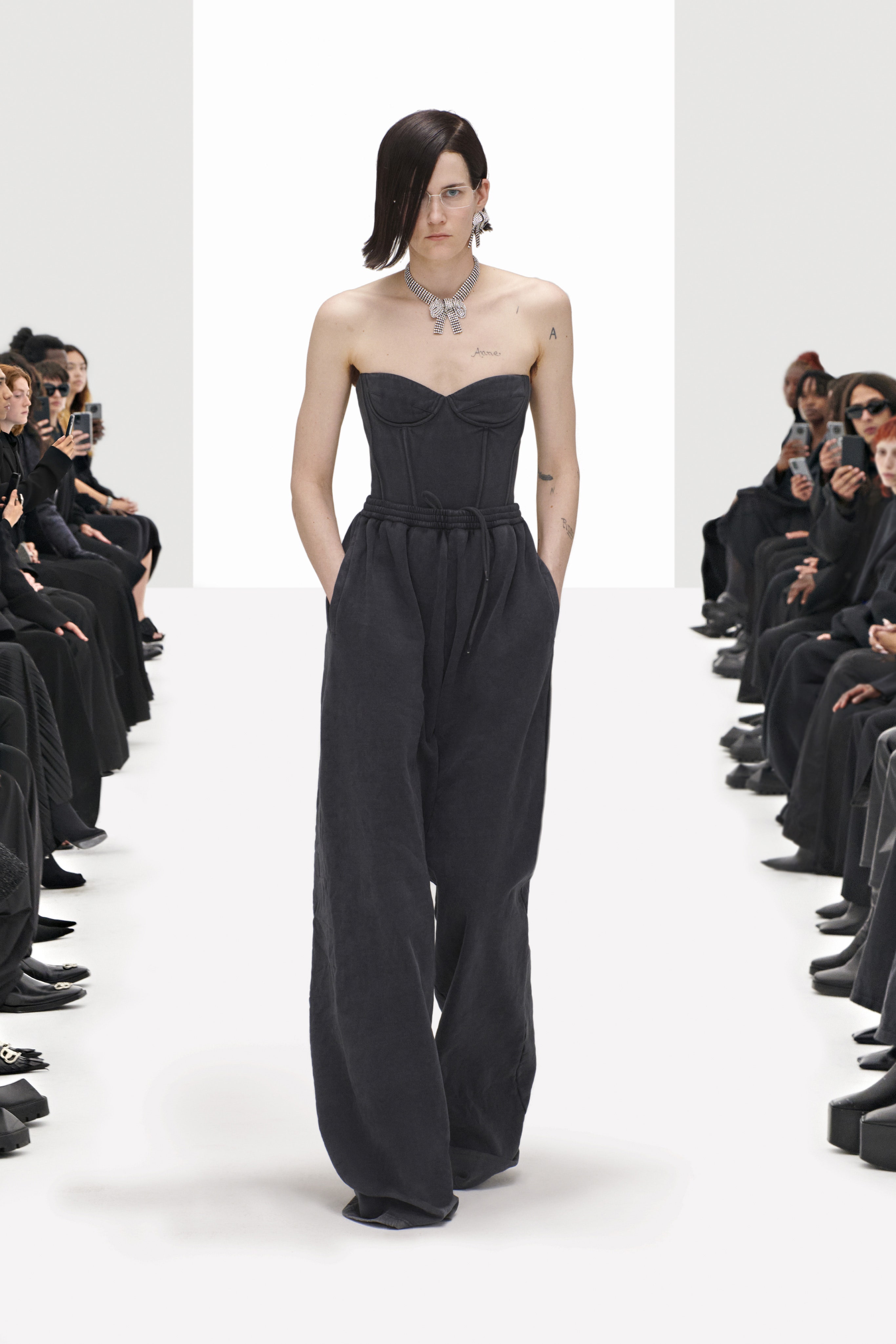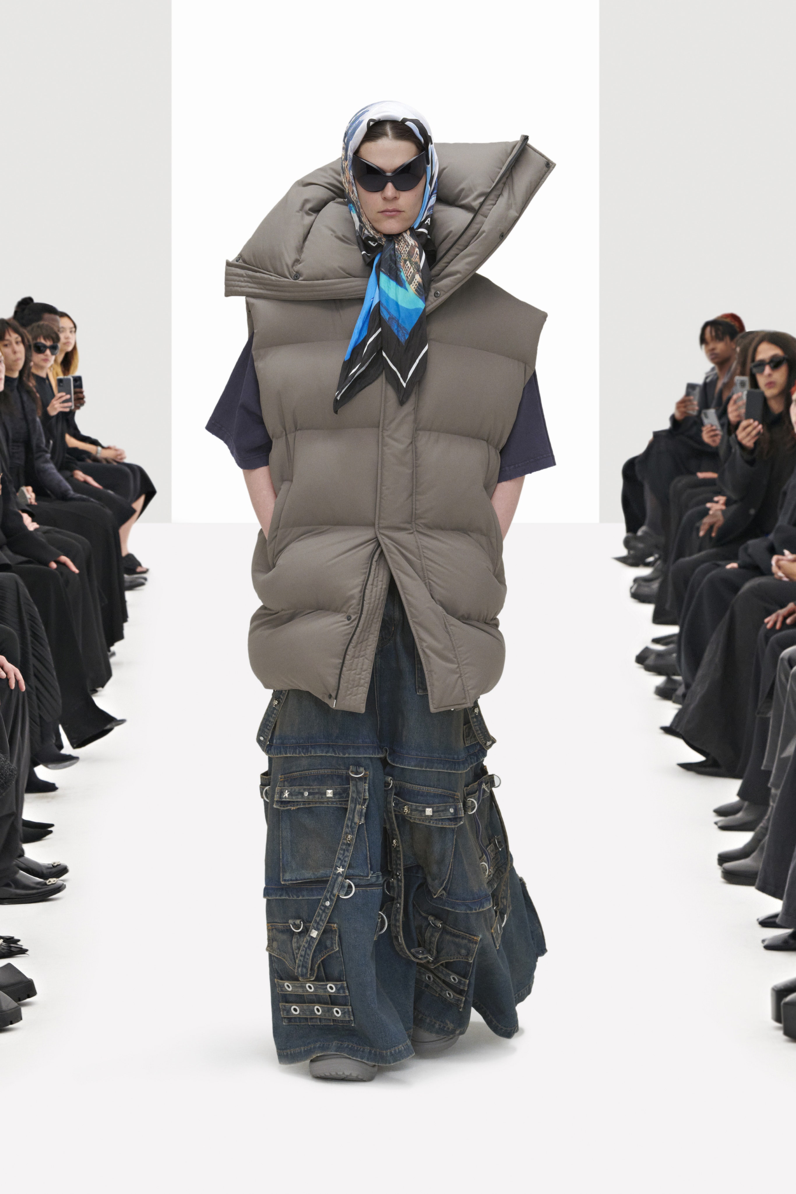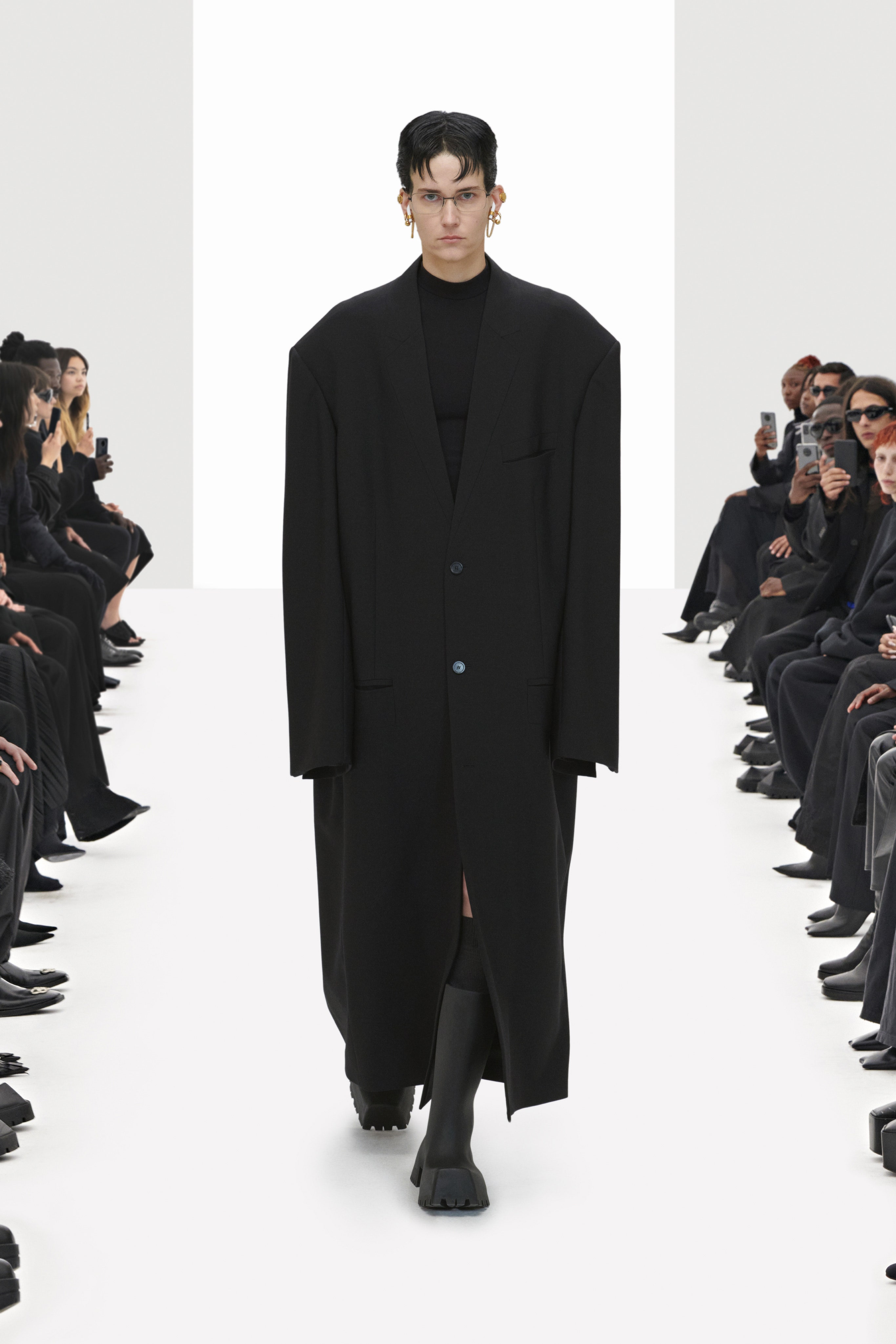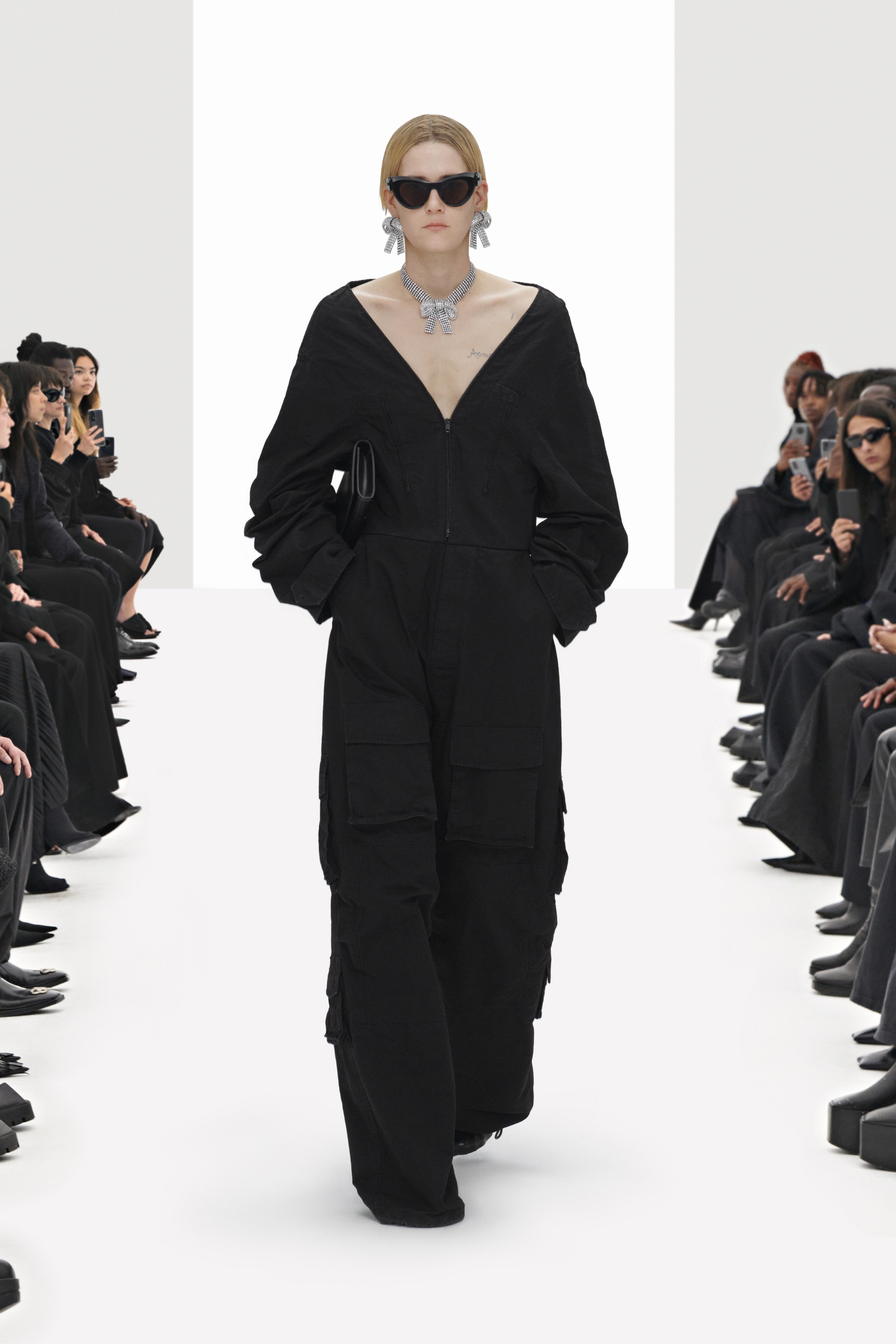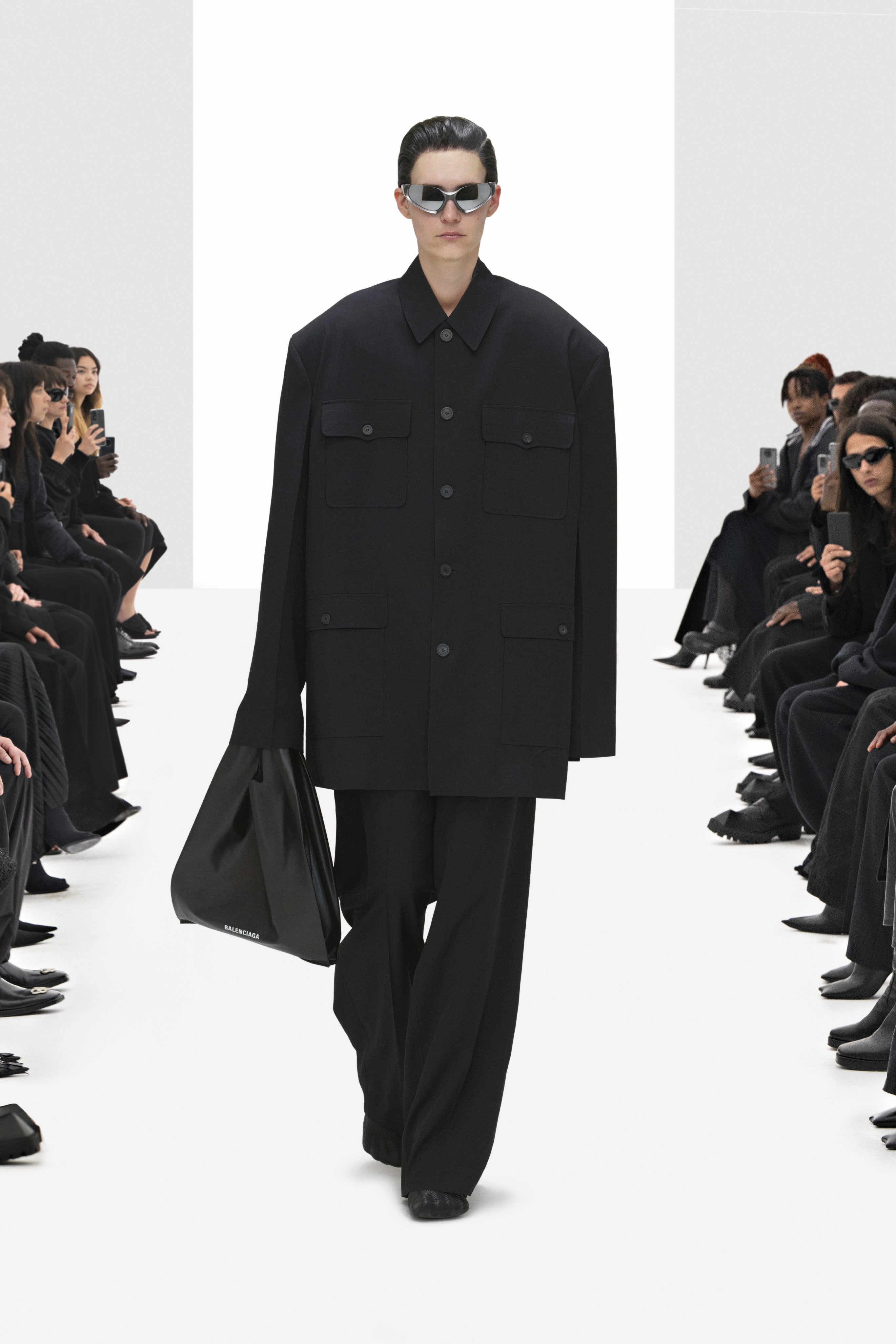 Вслед за Vetements Balenciaga приблизились к вопросу о взаимосвязи реального и виртуального. В рамках модного исследования Демна Гвасалия решил устроить в буквальном смысле шоу, которого не было. С помощью технологии Deep Fake видеопродюсер Квентин Деронзье добился эффекта, который сделал всех моделей идентичными артистке Элизе Дуглас, неизменно открывающей и закрывающей все показы бренда. Дефиле прошло на белоснежном подиуме, среди зрителей в черных вещах, которых также, по задумке дизайнера, не было на показе. Так, размышляя над тем, в какой мере то, что мы видим на экране, соответствует тому, что происходит на самом деле, Демна Гвасалия устроил настоящий парад клонов. Реальной была только одежда, которую создавали живые люди.