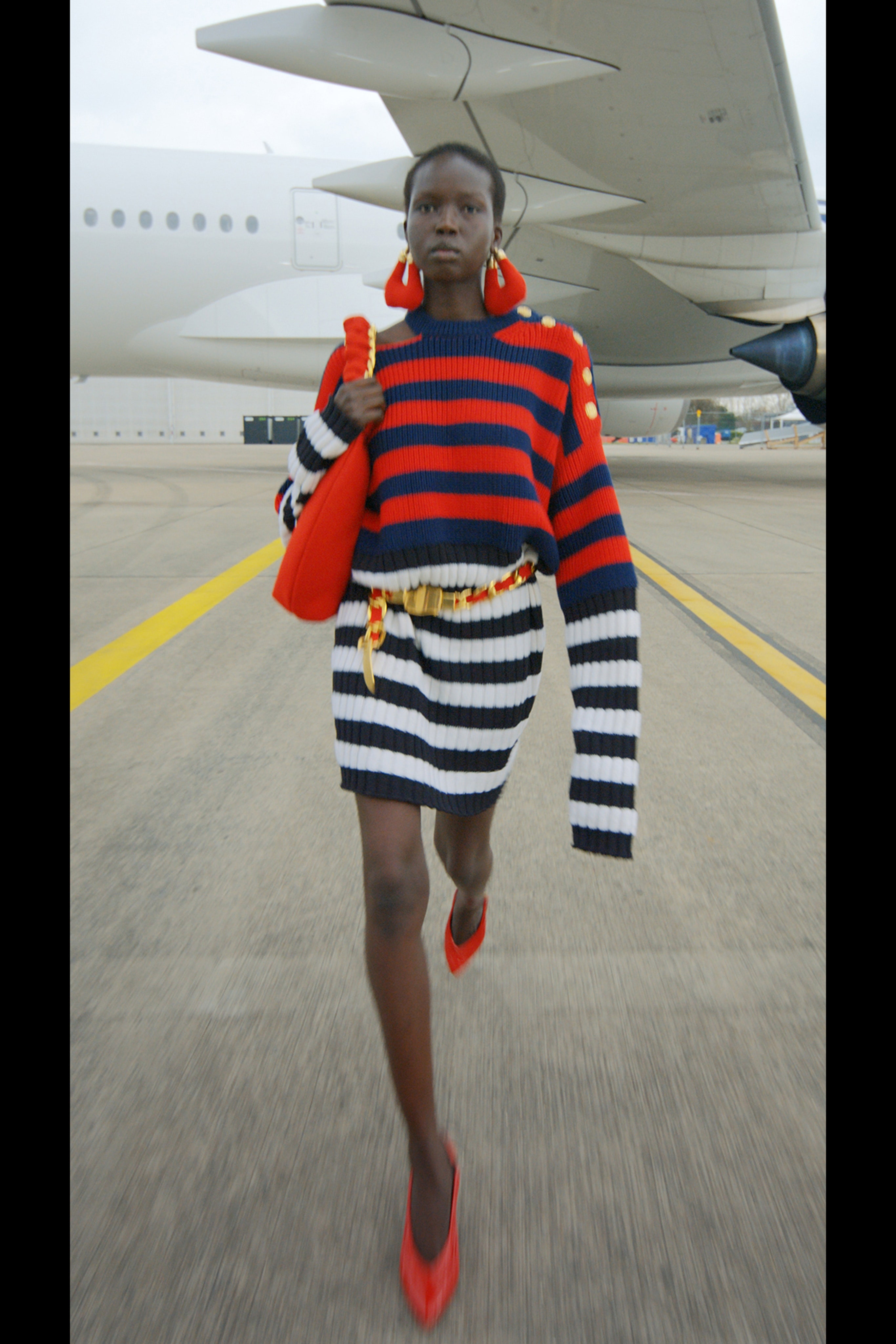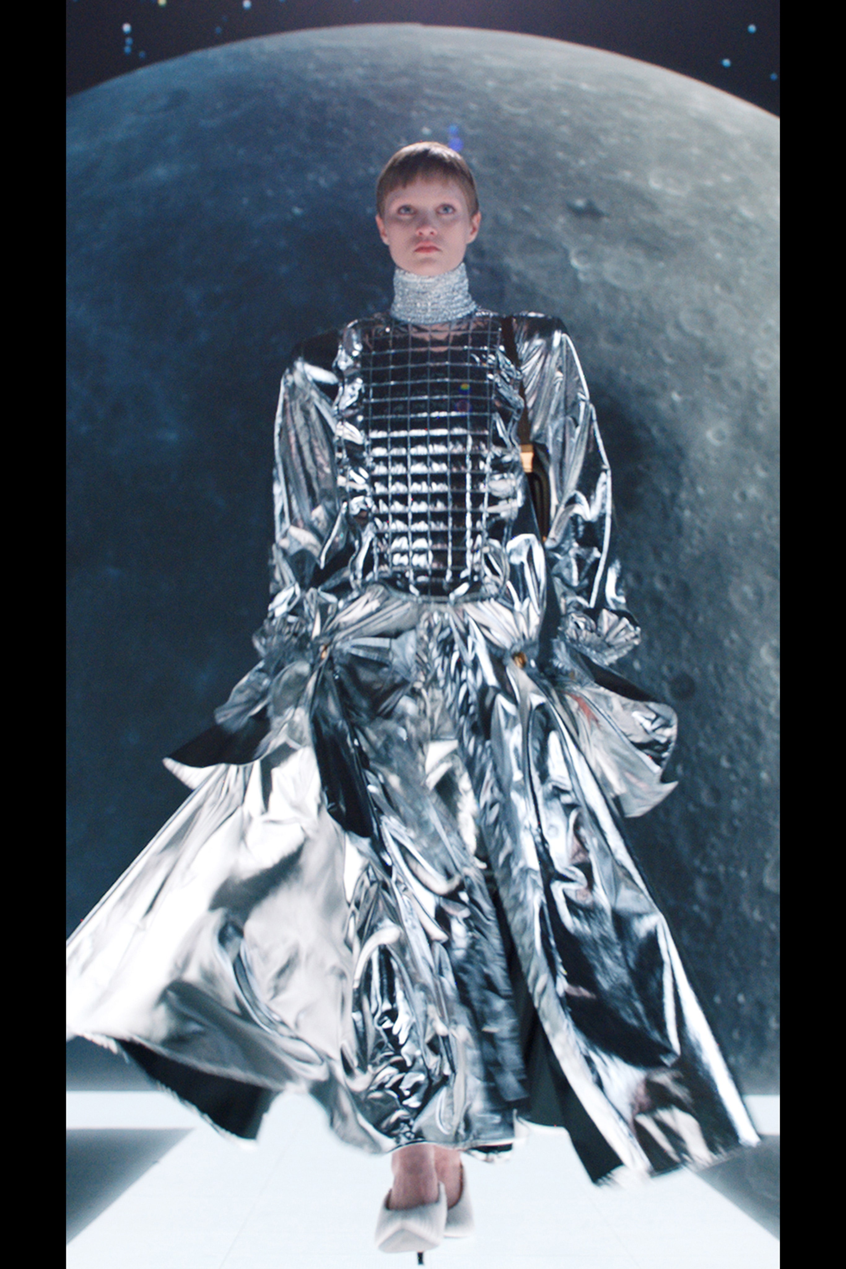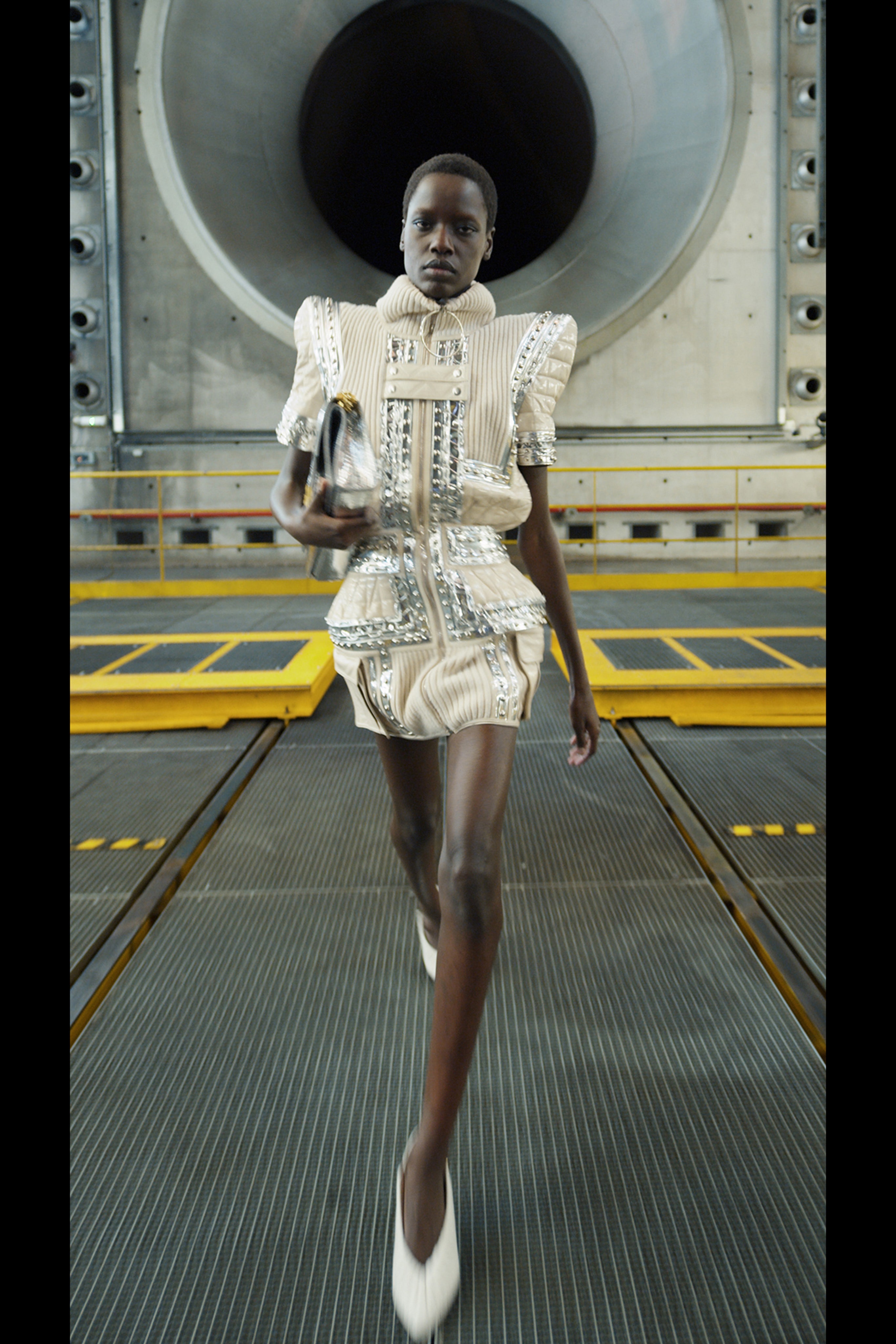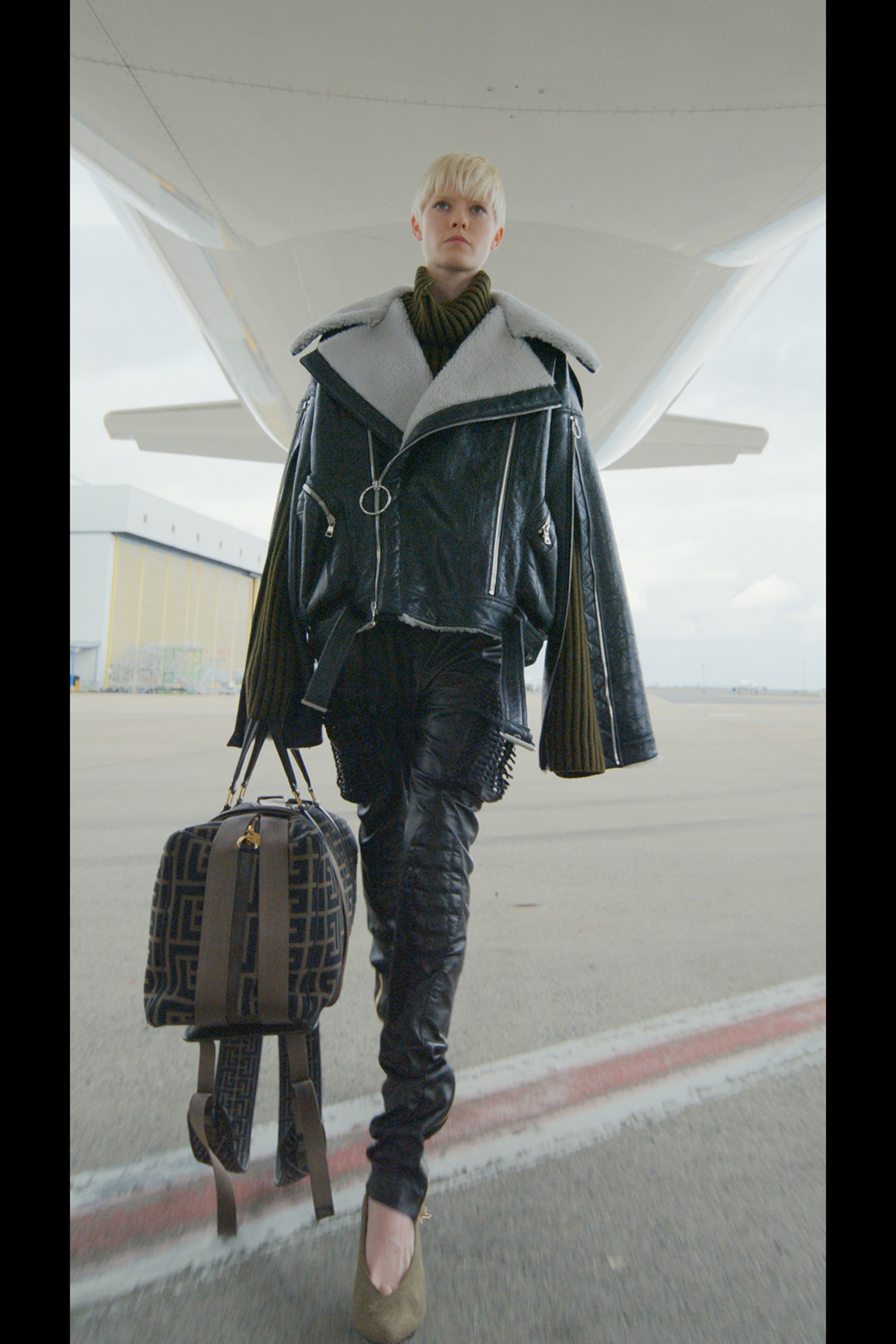 Фантазируя на тему мобильности, готовности отправиться в далекое путешествие, которое может привести к чему-нибудь совсем неизвестному, дизайнер придал вещам оттенок формы военно-воздушных сил. В видео модели ходят по крылу самолета, внутри ангара аэропорта Шарля де Голля и по подиуму на фоне луны в парашютных комбинезонах, летных куртках и парадных мундирах. Ключевые силуэты дома Balmain как нельзя лучше выразили идею о космическом пилотировании самолета и разведке уголков галактики.