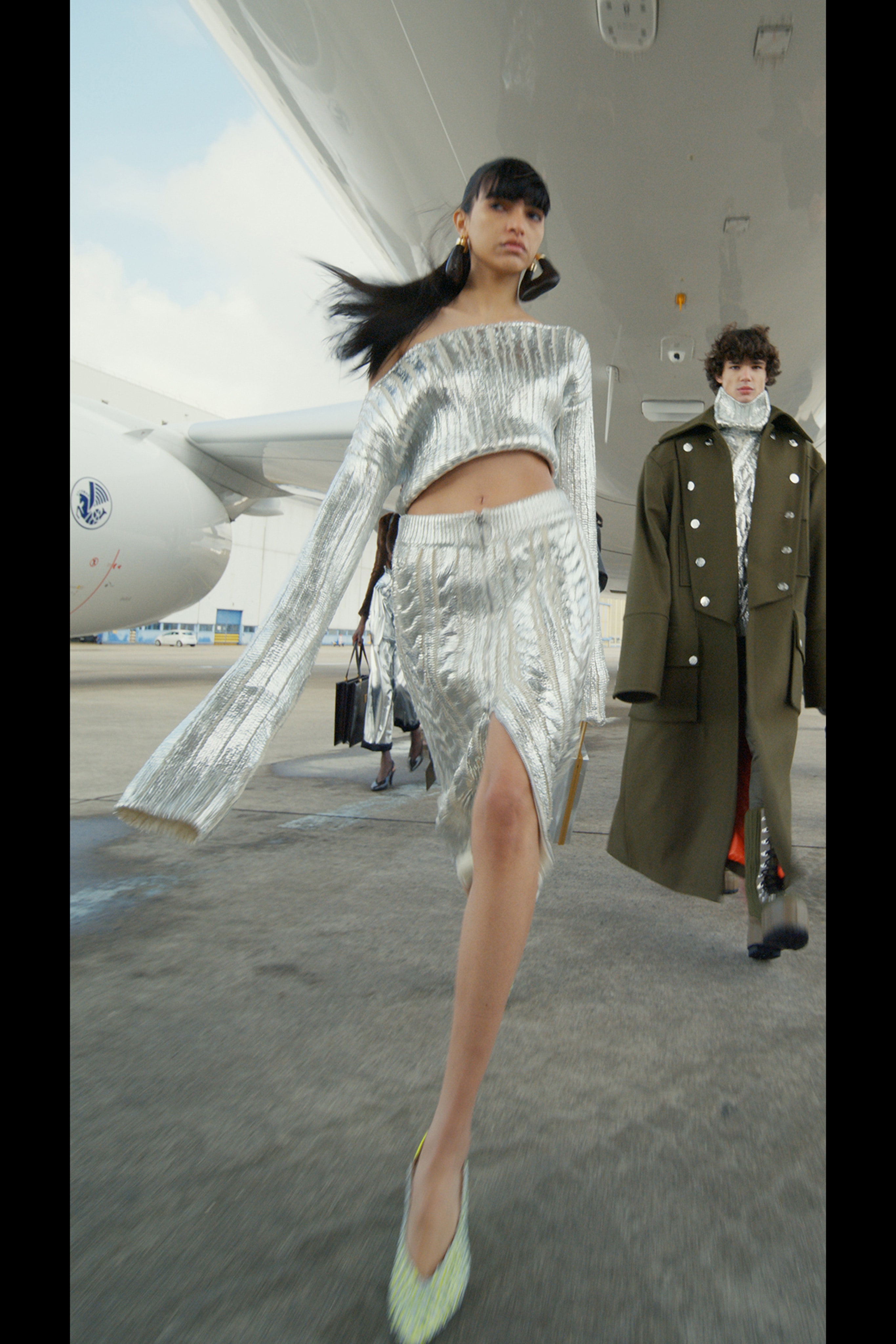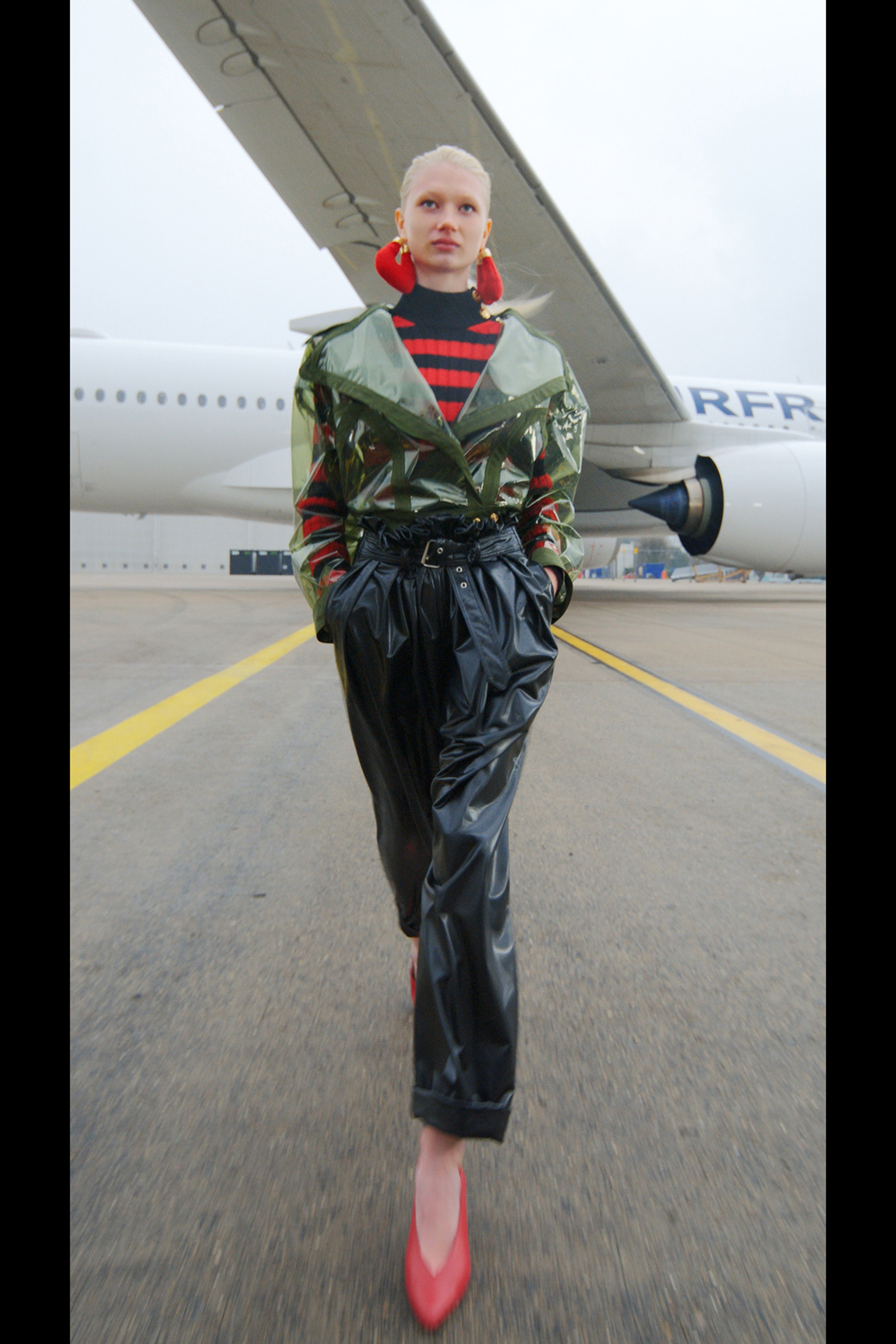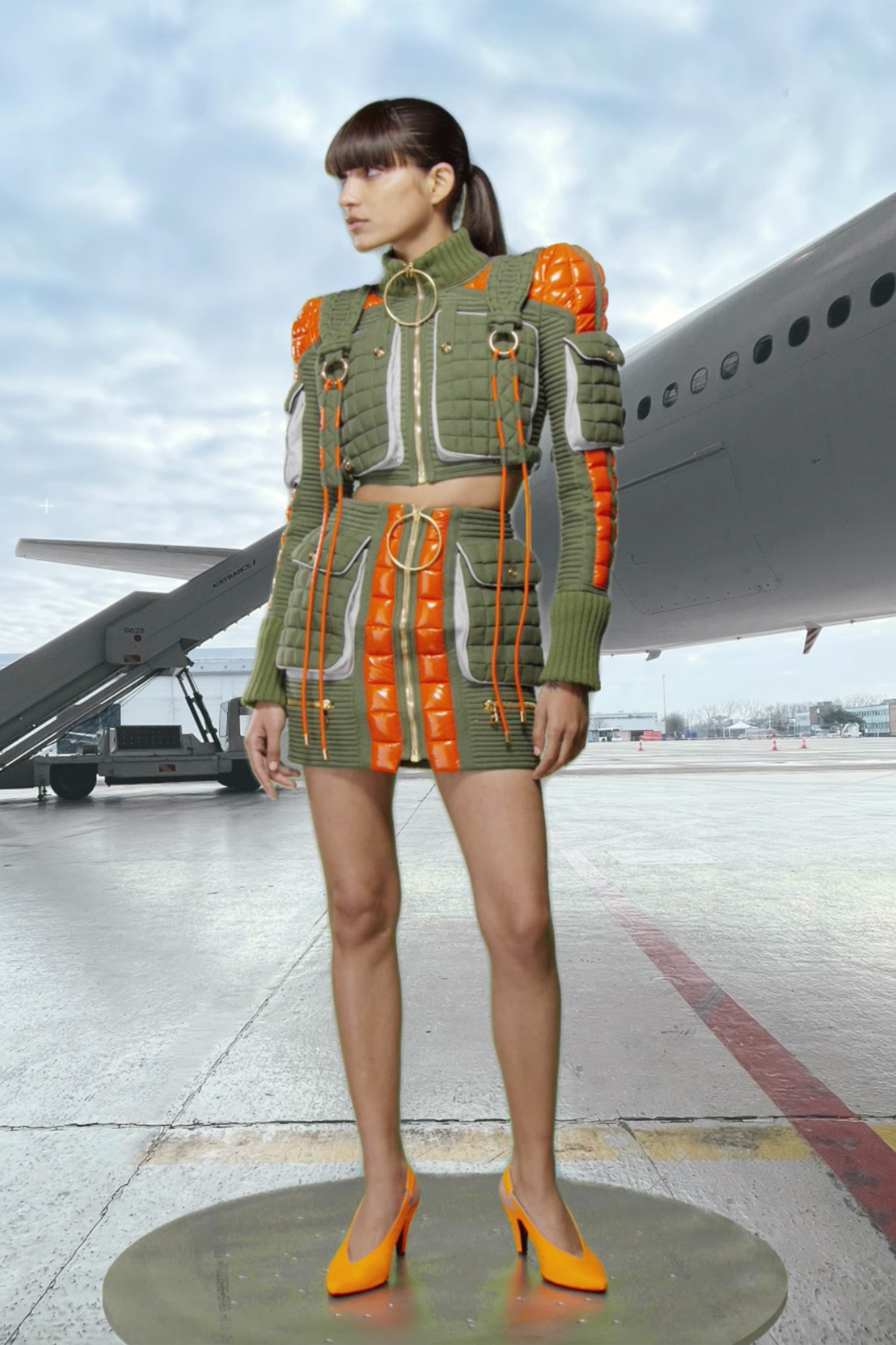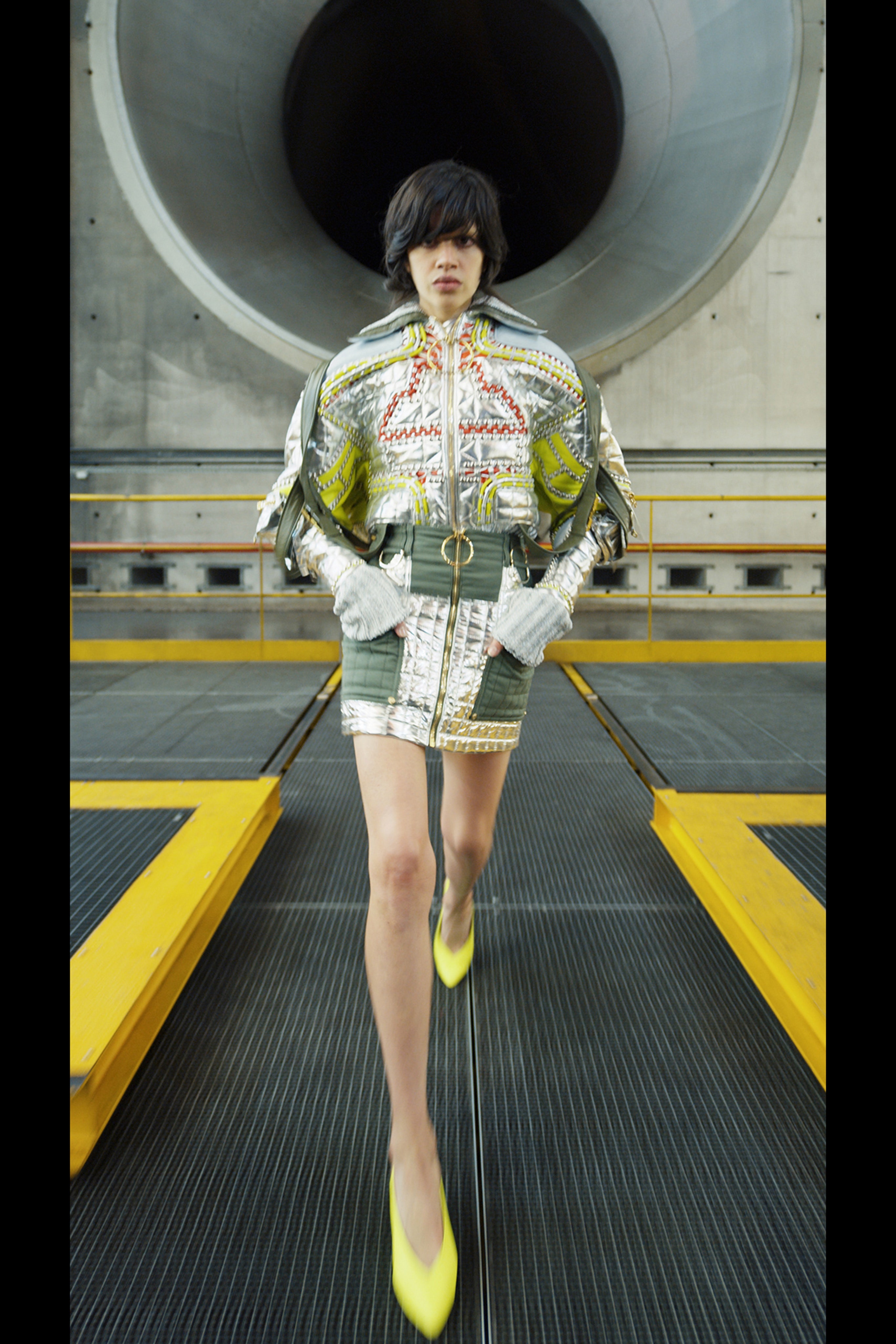 Фантазируя на тему мобильности, готовности отправиться в далекое путешествие, которое может привести к чему-нибудь совсем неизвестному, дизайнер придал вещам оттенок формы военно-воздушных сил. В видео модели ходят по крылу самолета, внутри ангара аэропорта Шарля де Голля и по подиуму на фоне луны в парашютных комбинезонах, летных куртках и парадных мундирах. Ключевые силуэты дома Balmain как нельзя лучше выразили идею о космическом пилотировании самолета и разведке уголков галактики.
