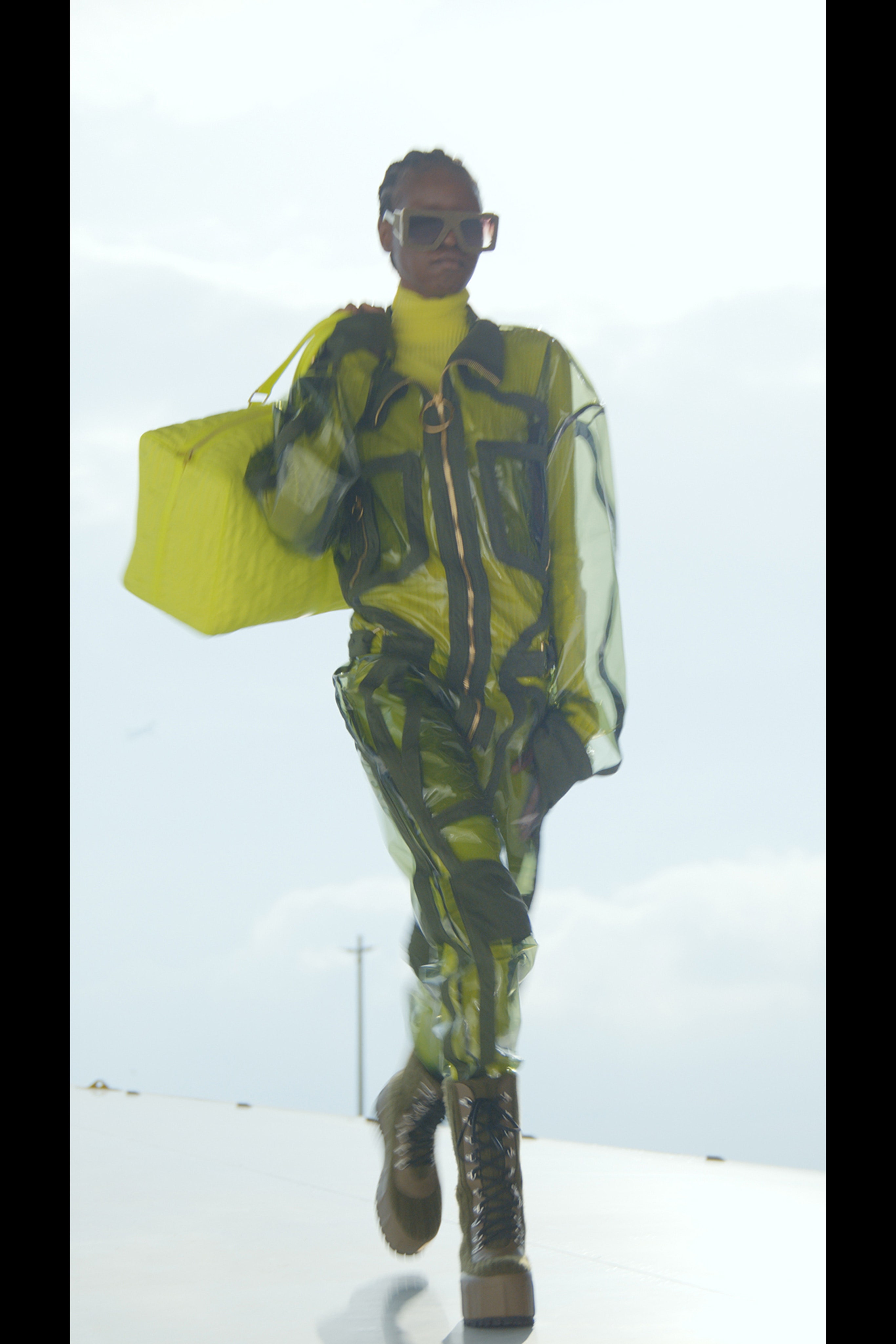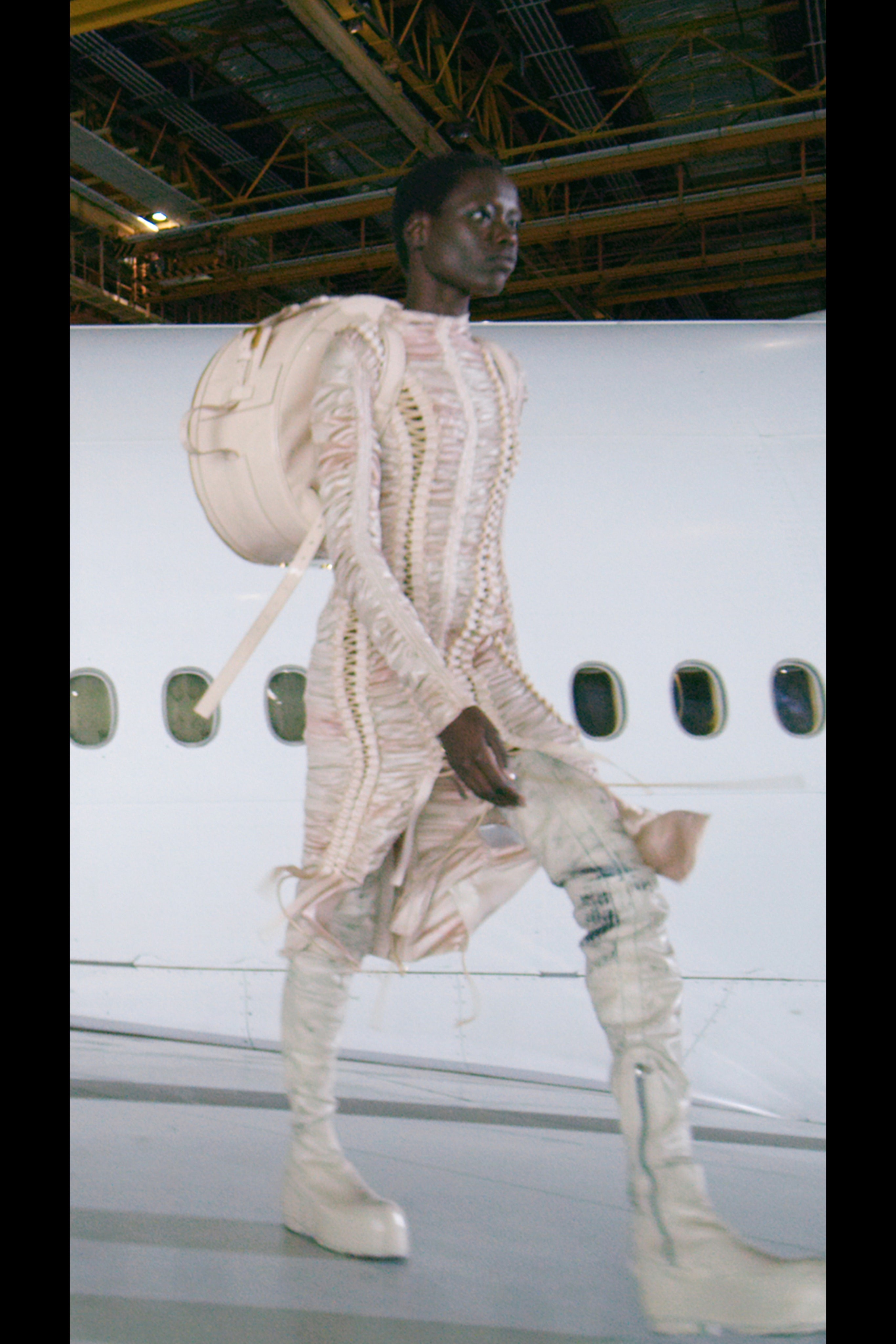 Оливье Рустен посвятил новую коллекцию эскапизму. Настали времена, когда путешествия действительно приравниваются к акту побега и многие готовы покупать билеты на самолеты "В никуда" лишь для того, чтобы снова пройти посадку на борт, перелет и высадку. Убежать порой хочется настолько далеко, что будь налажена система туристических перелетов на Луну, мы были бы свидетелями массы курьезных случаев с погонями и несанкиционированными вылазками на орбиту.