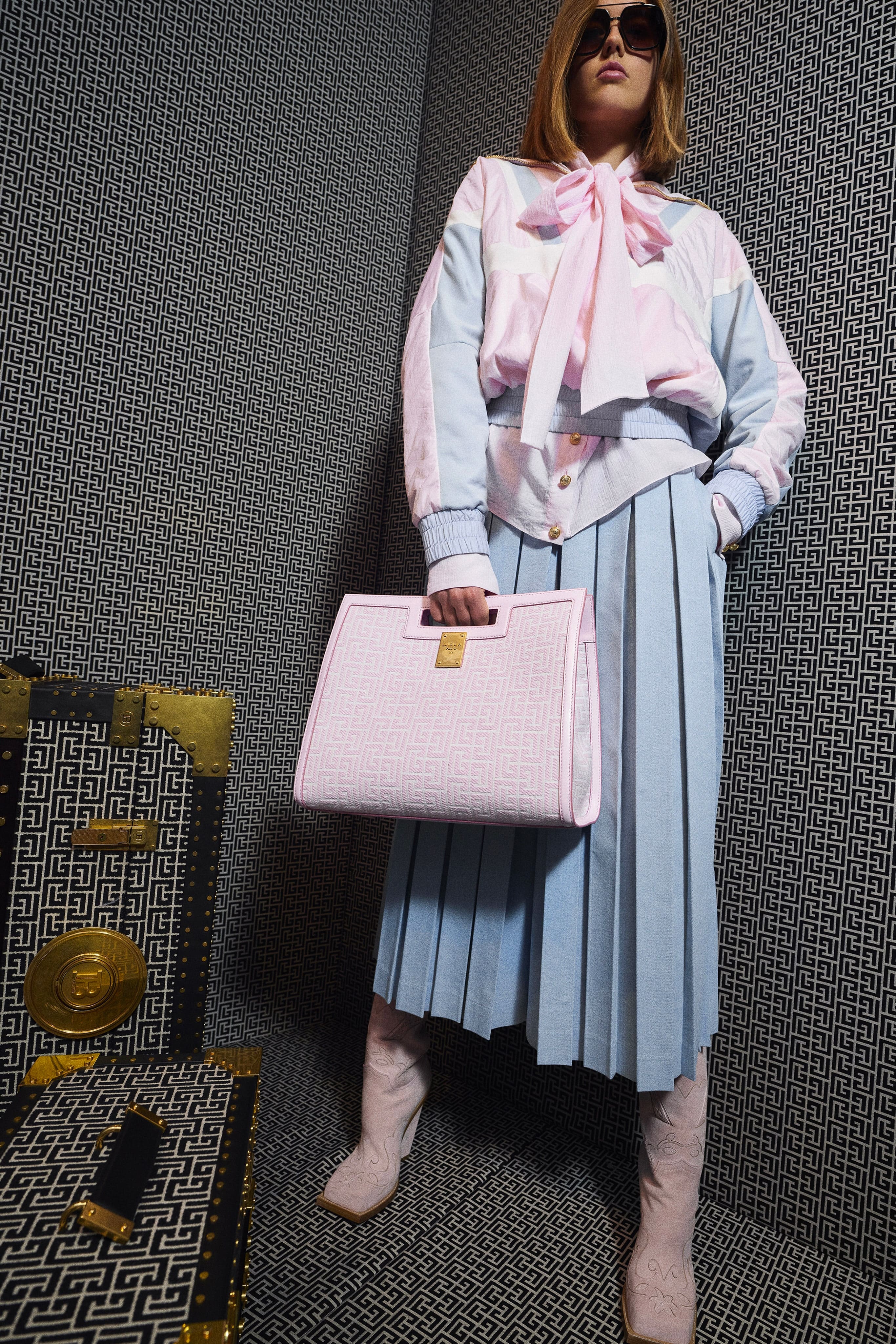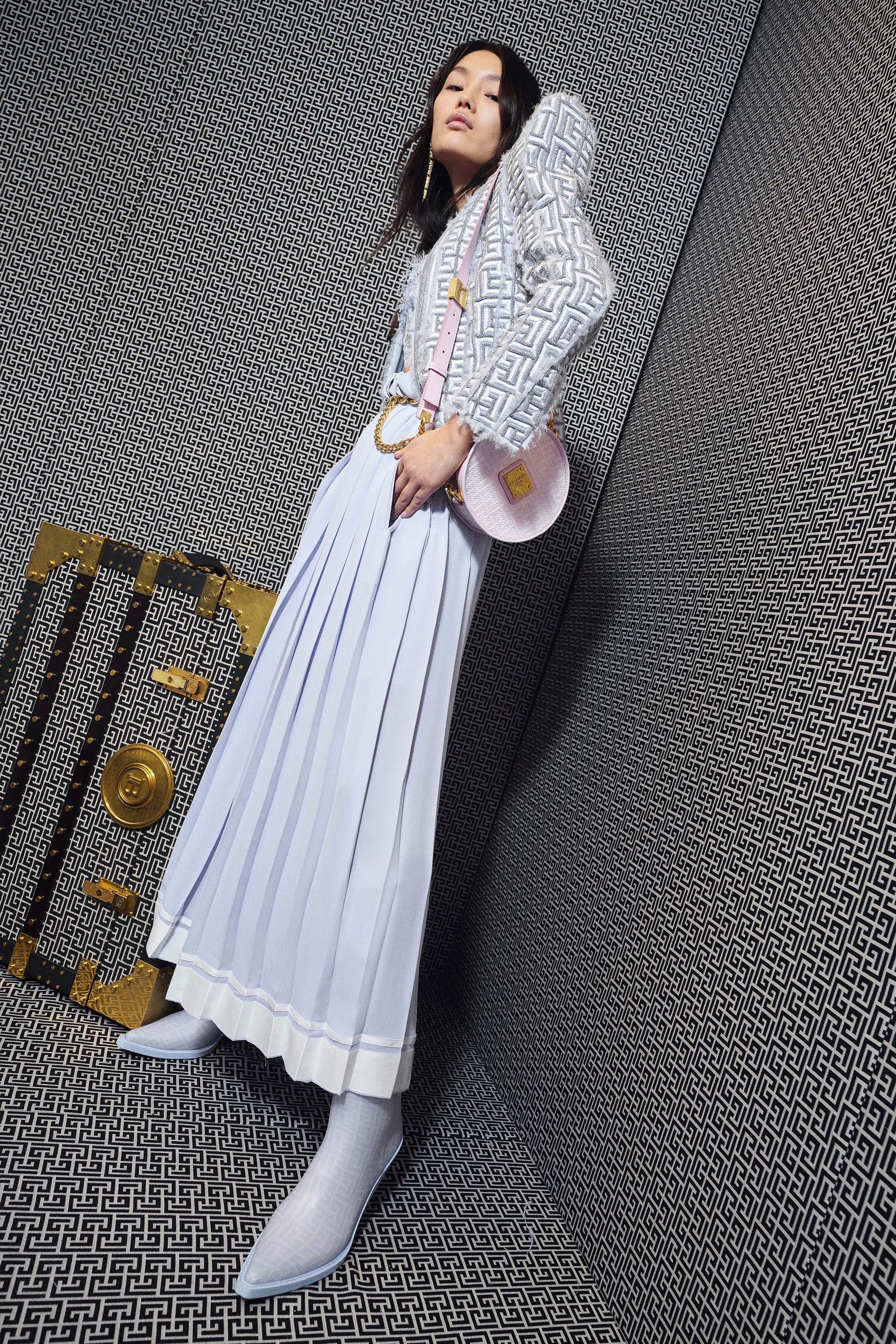 Так, в коллекции есть и нежные плиссированные юбки, будто для выступления на турнире Уимблдона, и зефирных оттенков шелковые комбинезоны и твидовые куртки, в которых хочется отправиться на прогулку у моря. Пышные тюлевые party-dress собраны в одну компанию с соблазнительными топами в пайетках, кожаными рокерскими куртками и блестящими костюмами и вечерними платьями в духе диско. Сумки в этот раз будто специально созданы вместительными настолько, чтобы собрать в них все любимые наряды и отправиться навстречу приключениям.