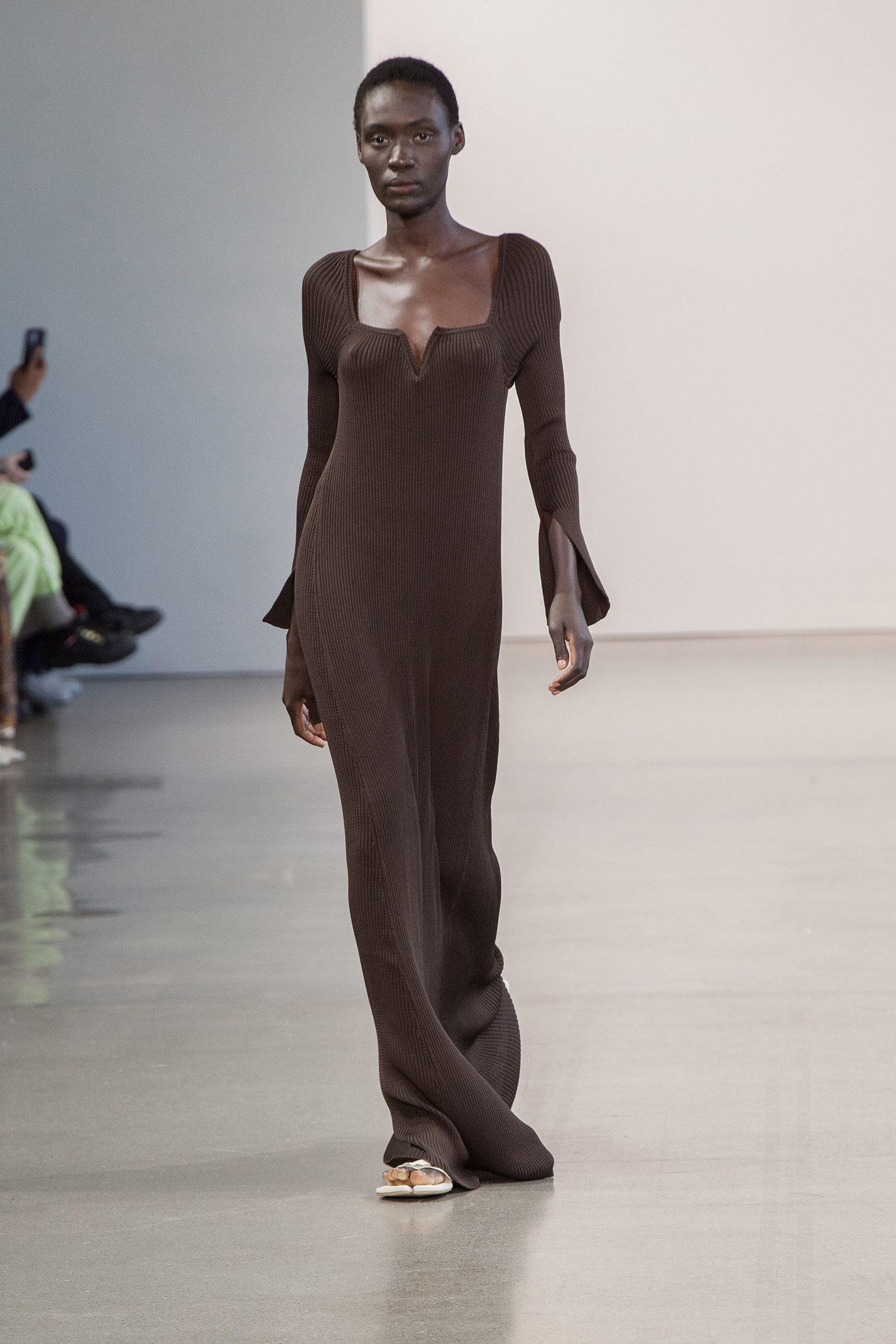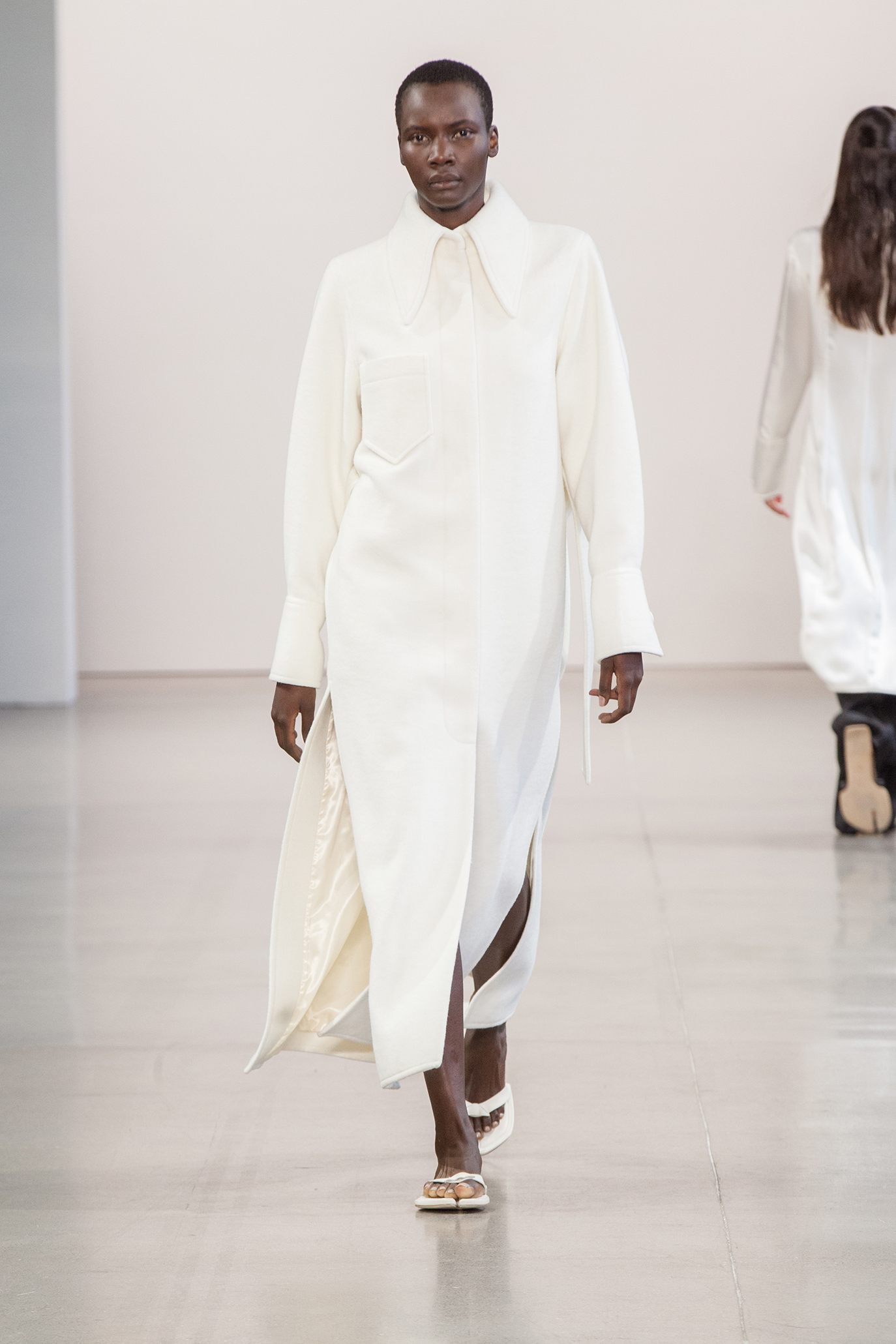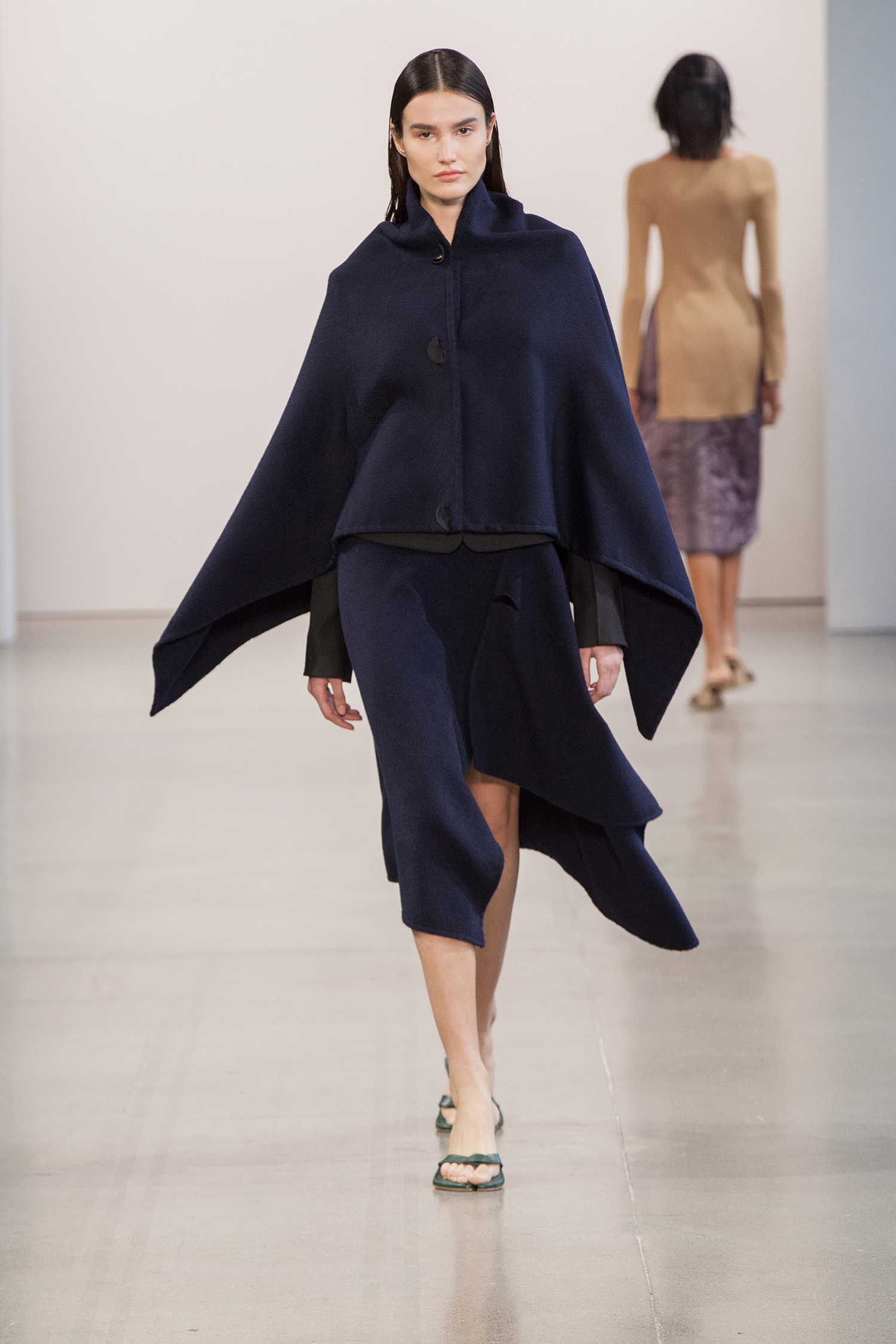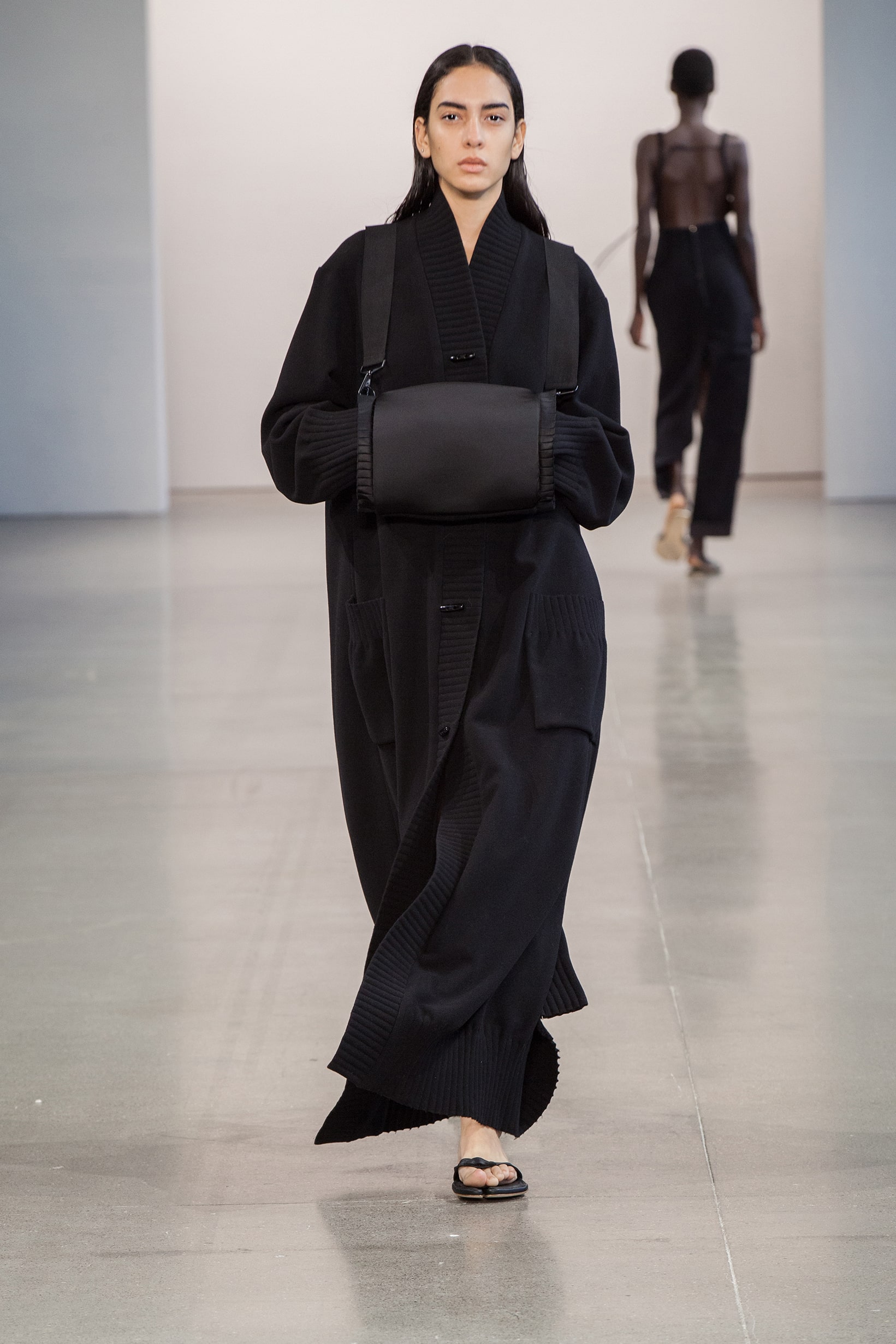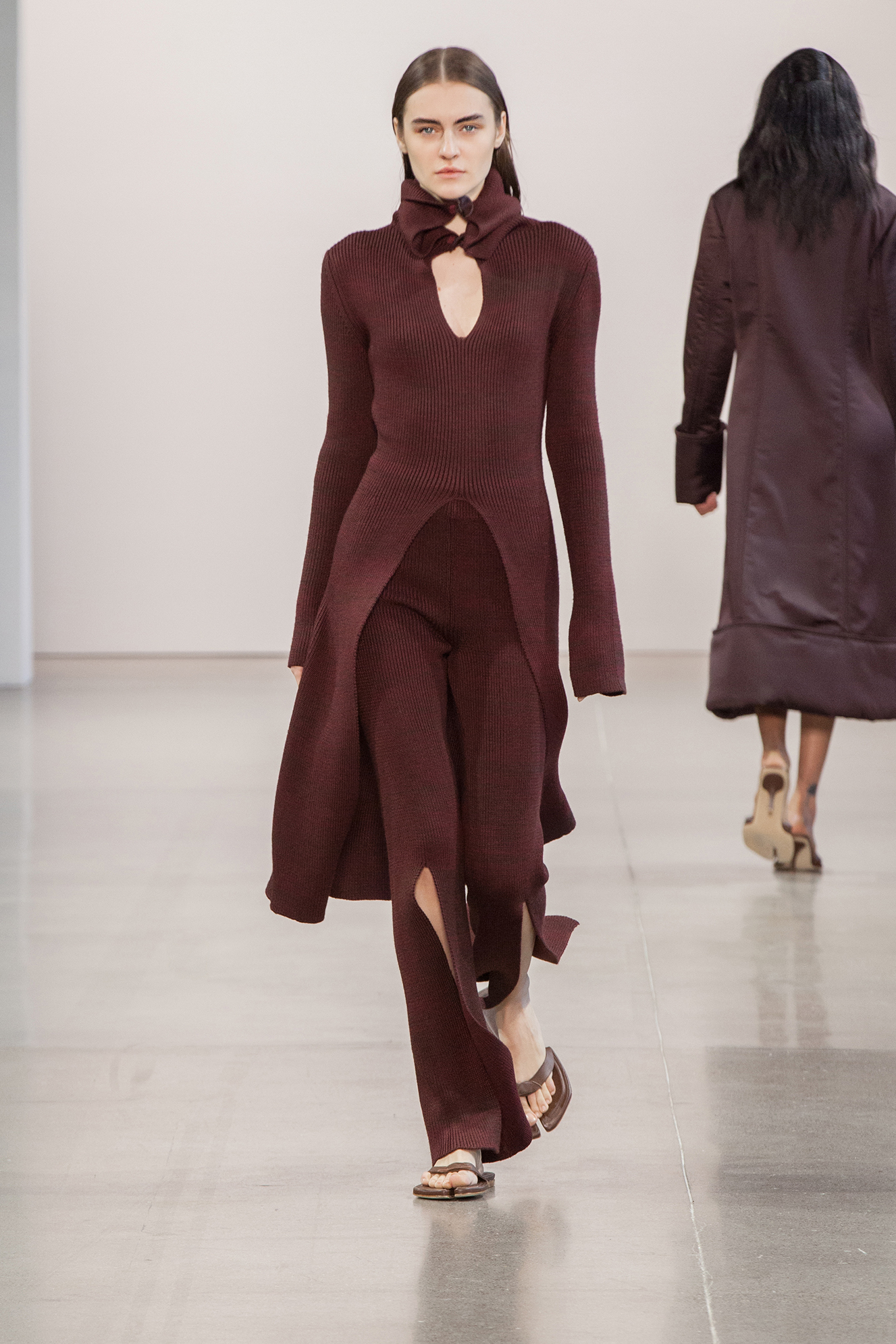 В коллекции также есть минималистичные муфты — в их форме угадываются бьюти-приспособления для парафинотерапии рук. Главные цвета сезона от Bevza — бежевый, шоколадный, сливово-черный и изумрудный. Вещи из экологически устойчивого трикотажа чередуются с классикой бренда — лаконичным белым платьем.