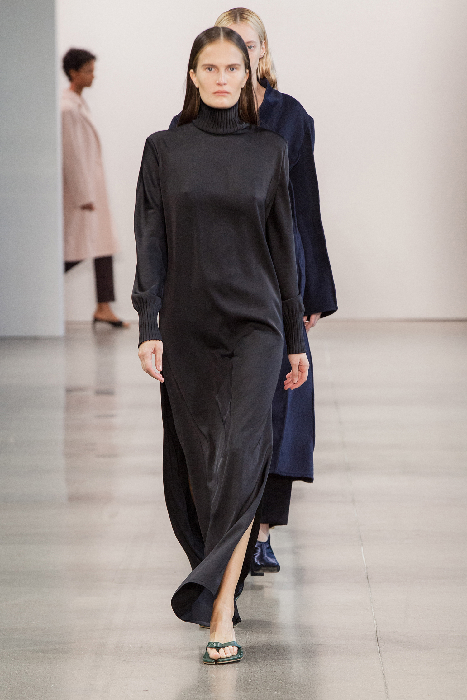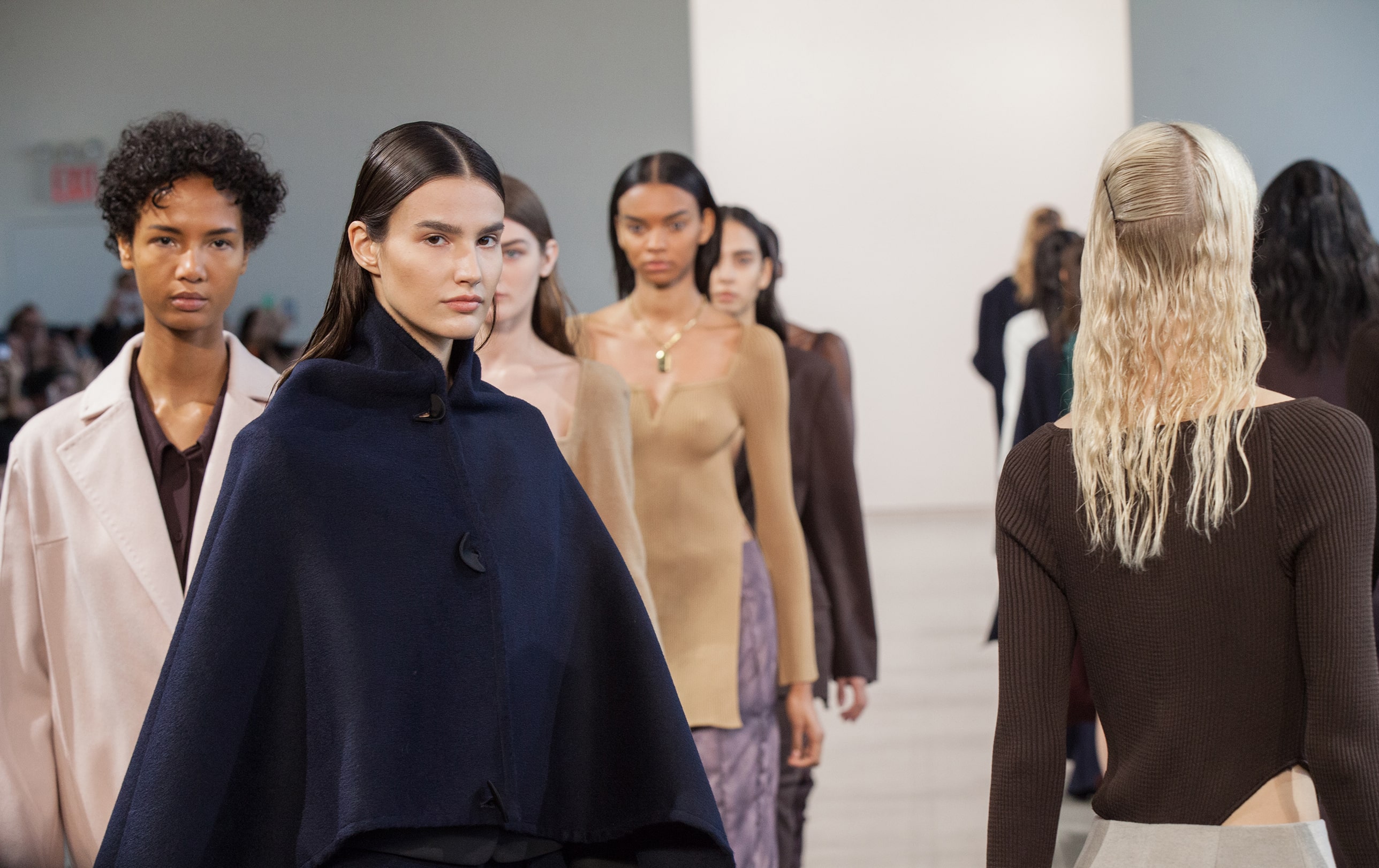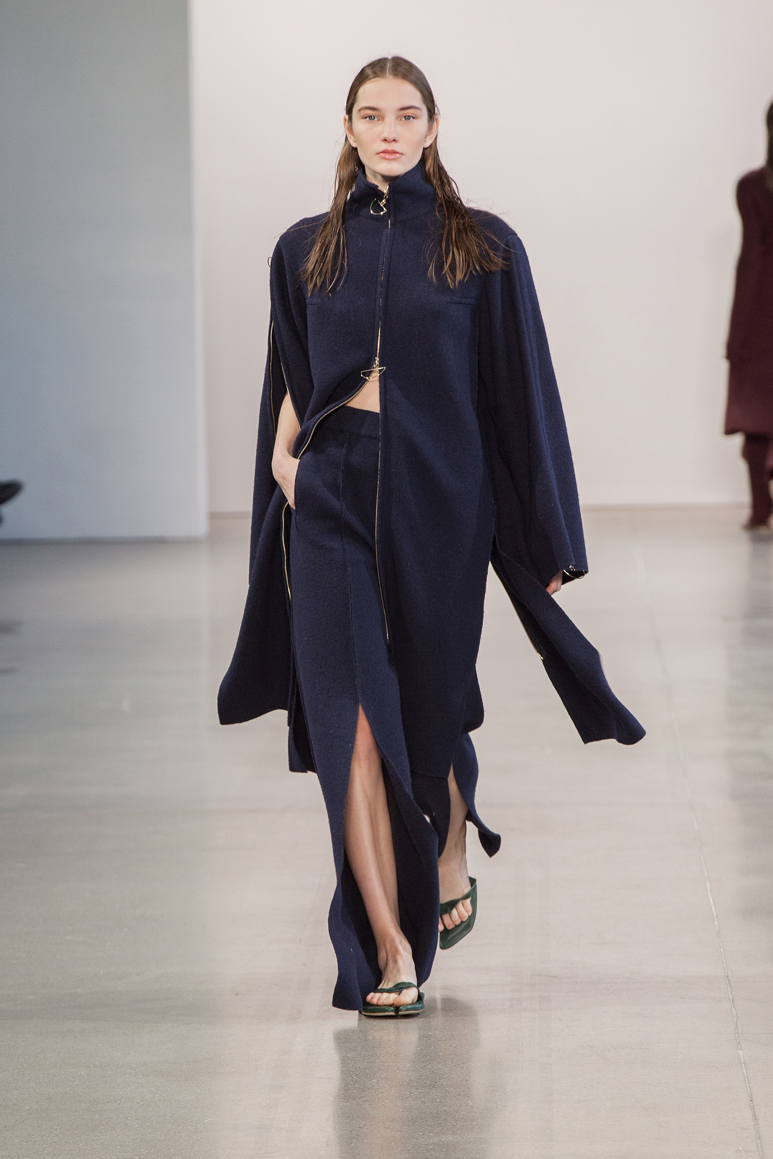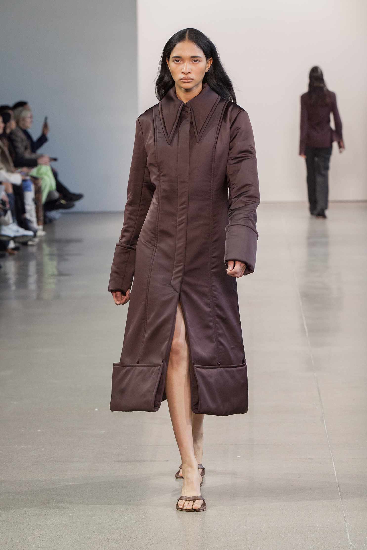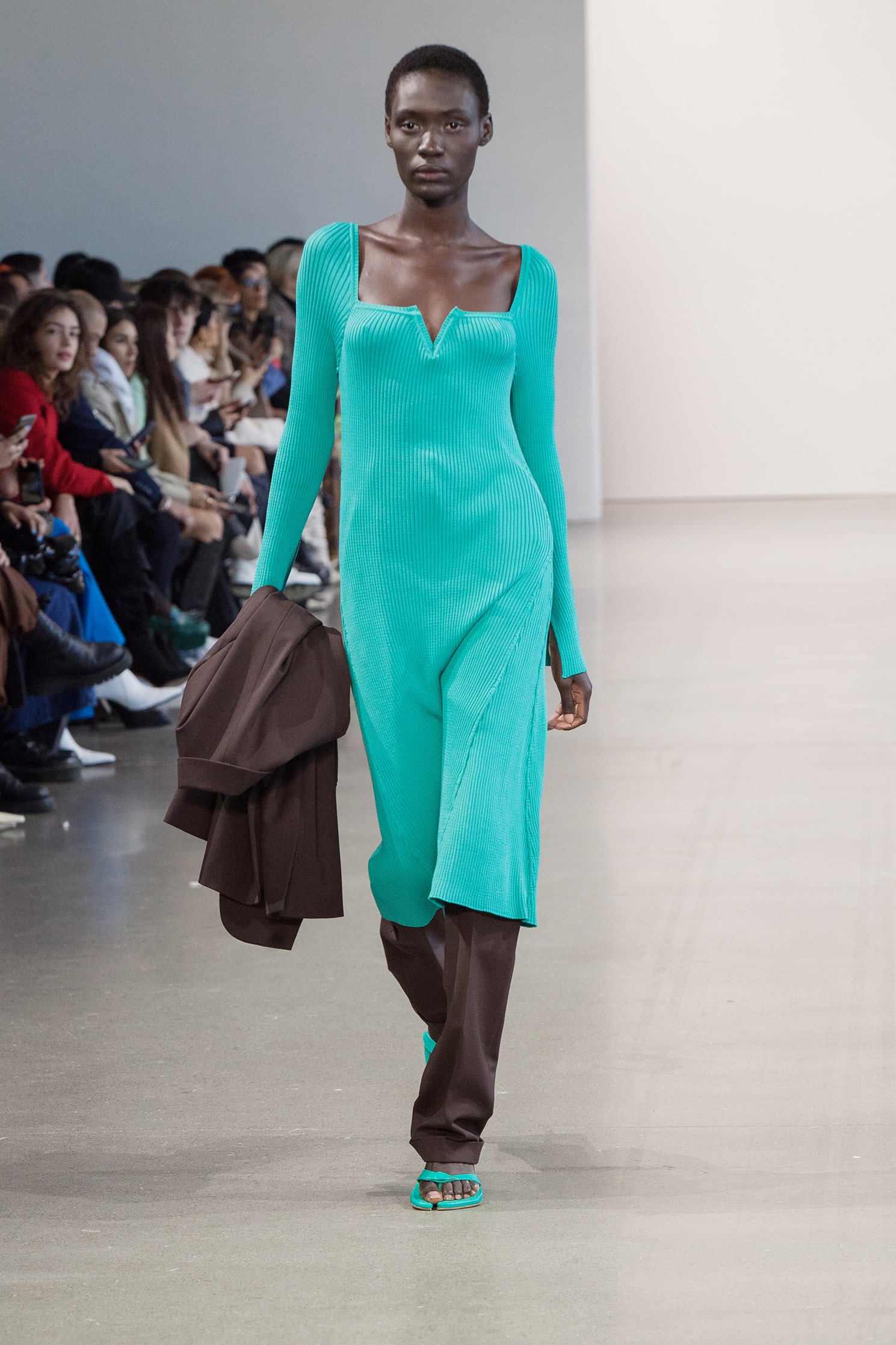 В коллекции также есть минималистичные муфты — в их форме угадываются бьюти-приспособления для парафинотерапии рук. Главные цвета сезона от Bevza — бежевый, шоколадный, сливово-черный и изумрудный. Вещи из экологически устойчивого трикотажа чередуются с классикой бренда — лаконичным белым платьем.