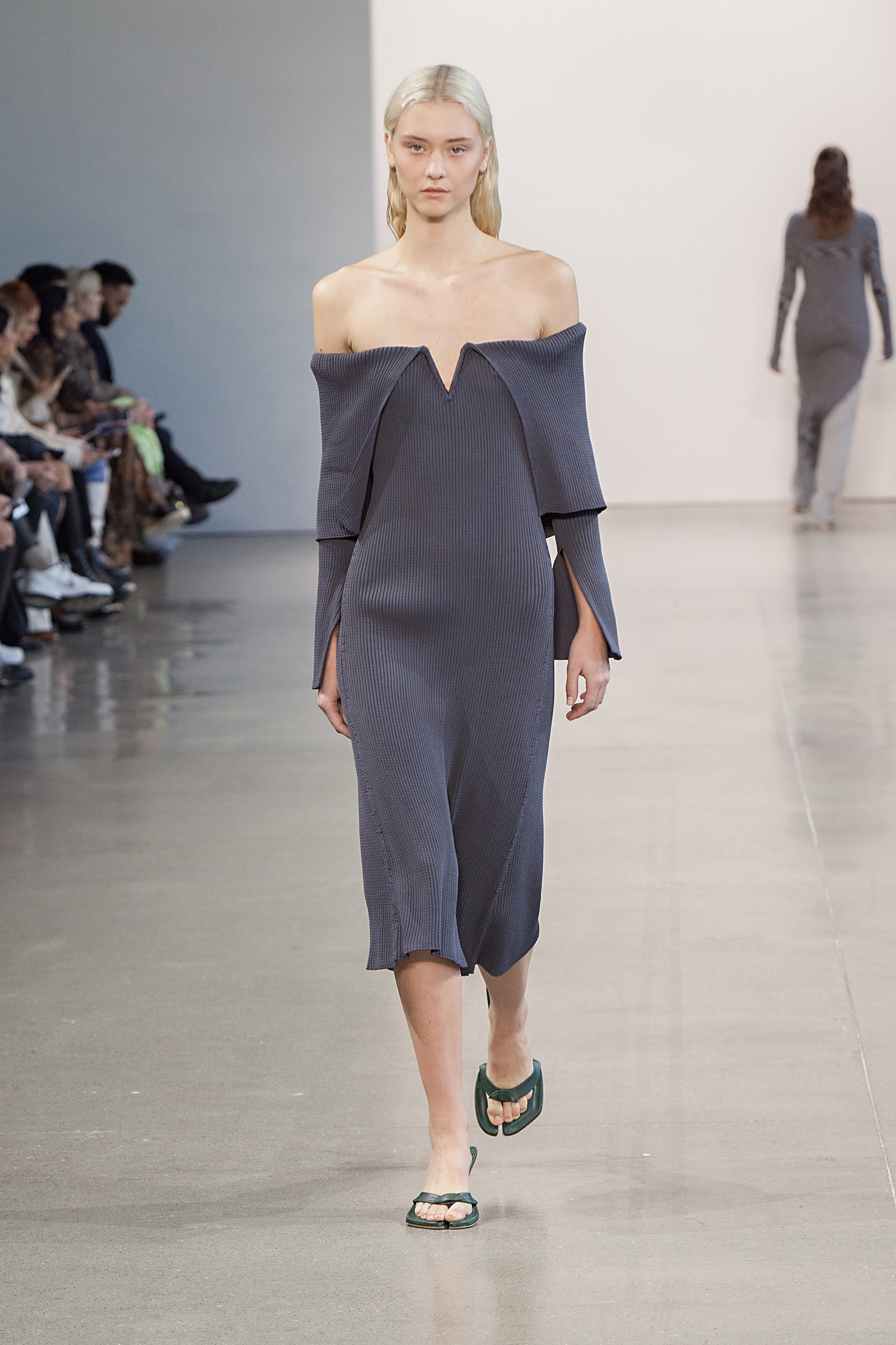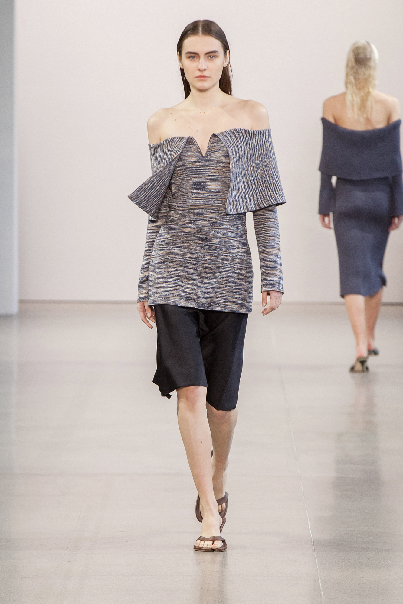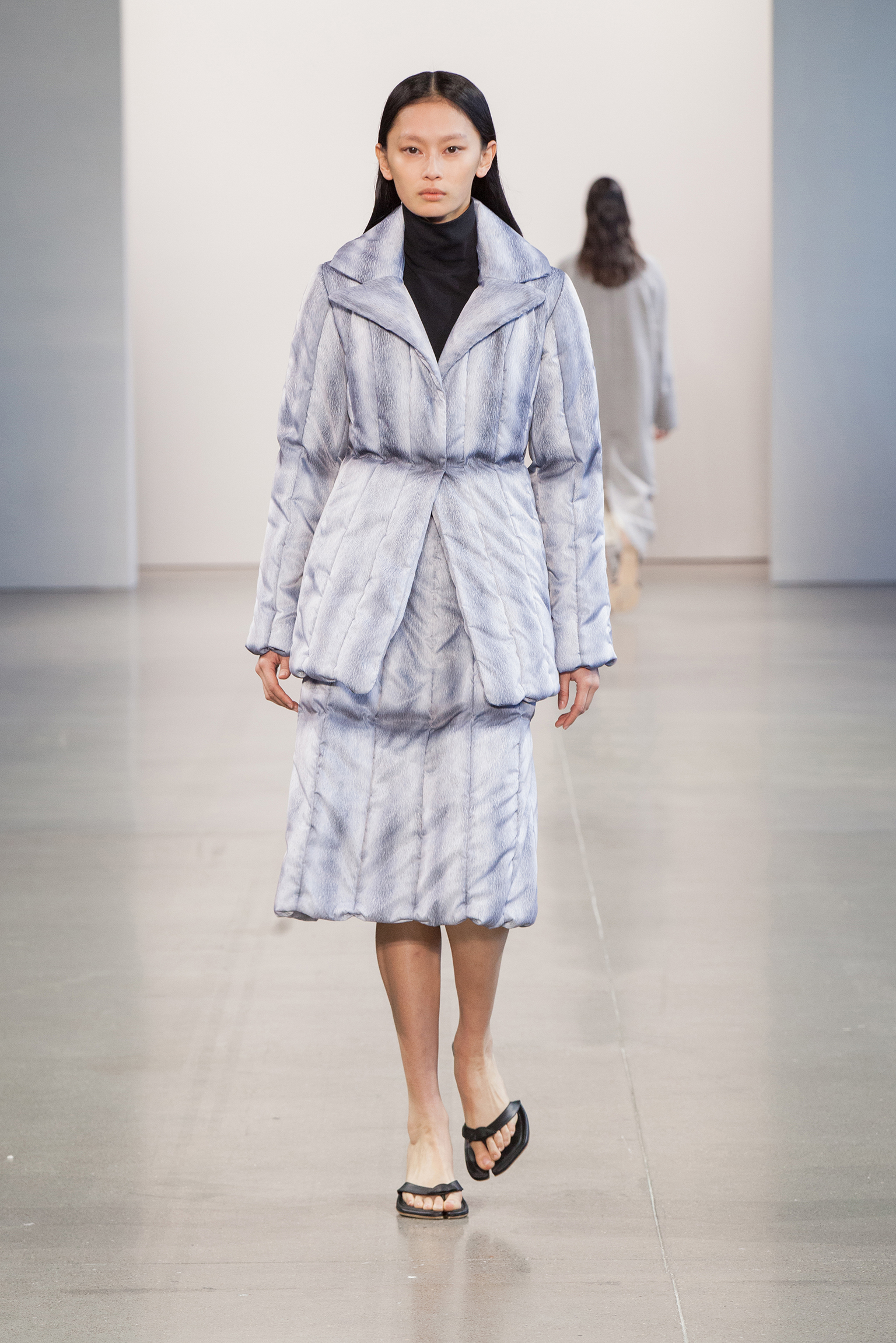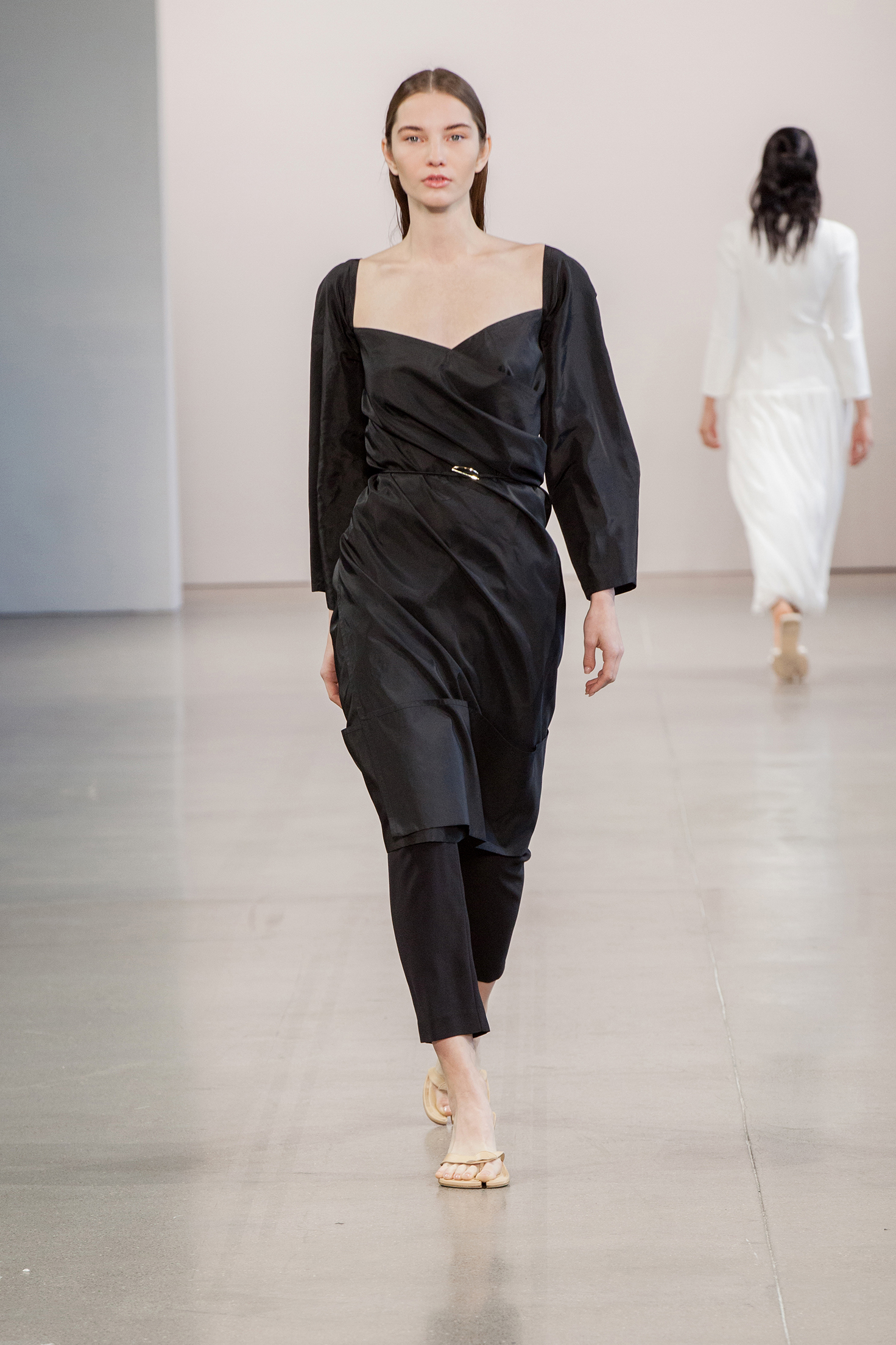 Светлана Бевза представила новую коллекцию в рамках нью-йоркской Недели моды. Главная тема, которую затронула дизайнер в новом сезоне, стала забота о себе. Возможность отвлечься от повседневной суеты на спа-процедурах, отдыхать, насыщать организм кремами и эликсирами — всё это представляет собой своеобразную медитацию. Изысканные платья, напоминающие средневековые котарди, мягкие джемперы-корсеты и костюмы в духе делового шика дополнила обувь — аллюзия на одноразовые шлепанцы, которые надевают в салонах после педикюра.