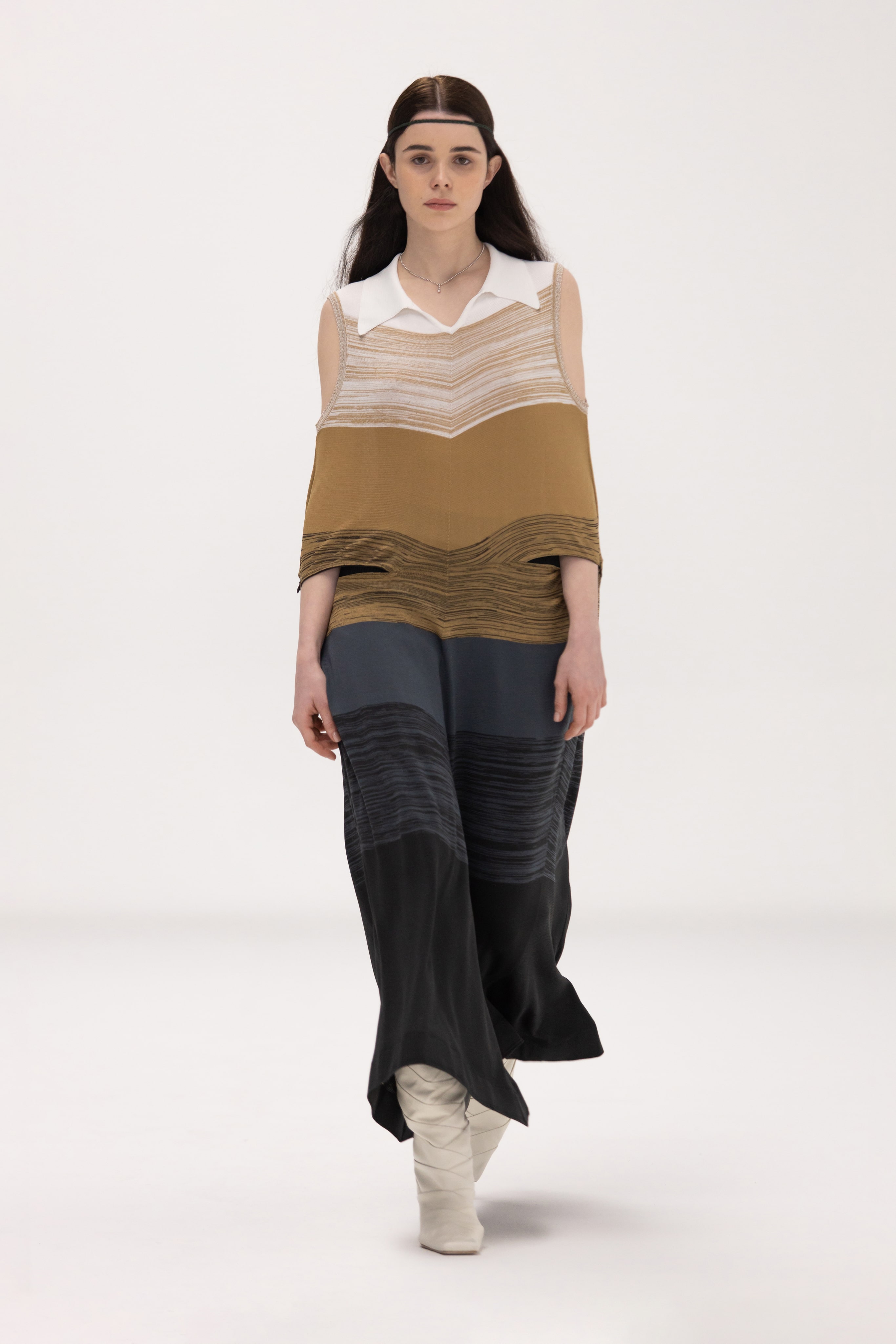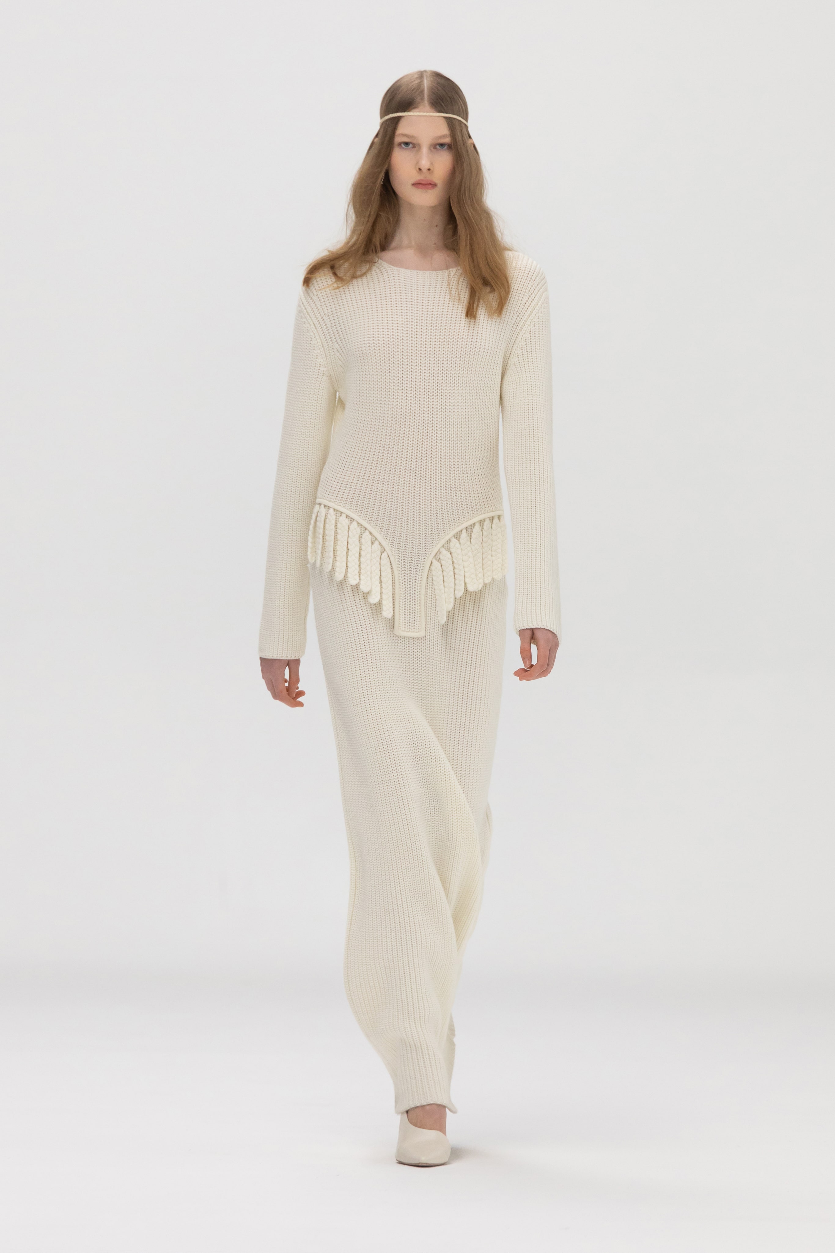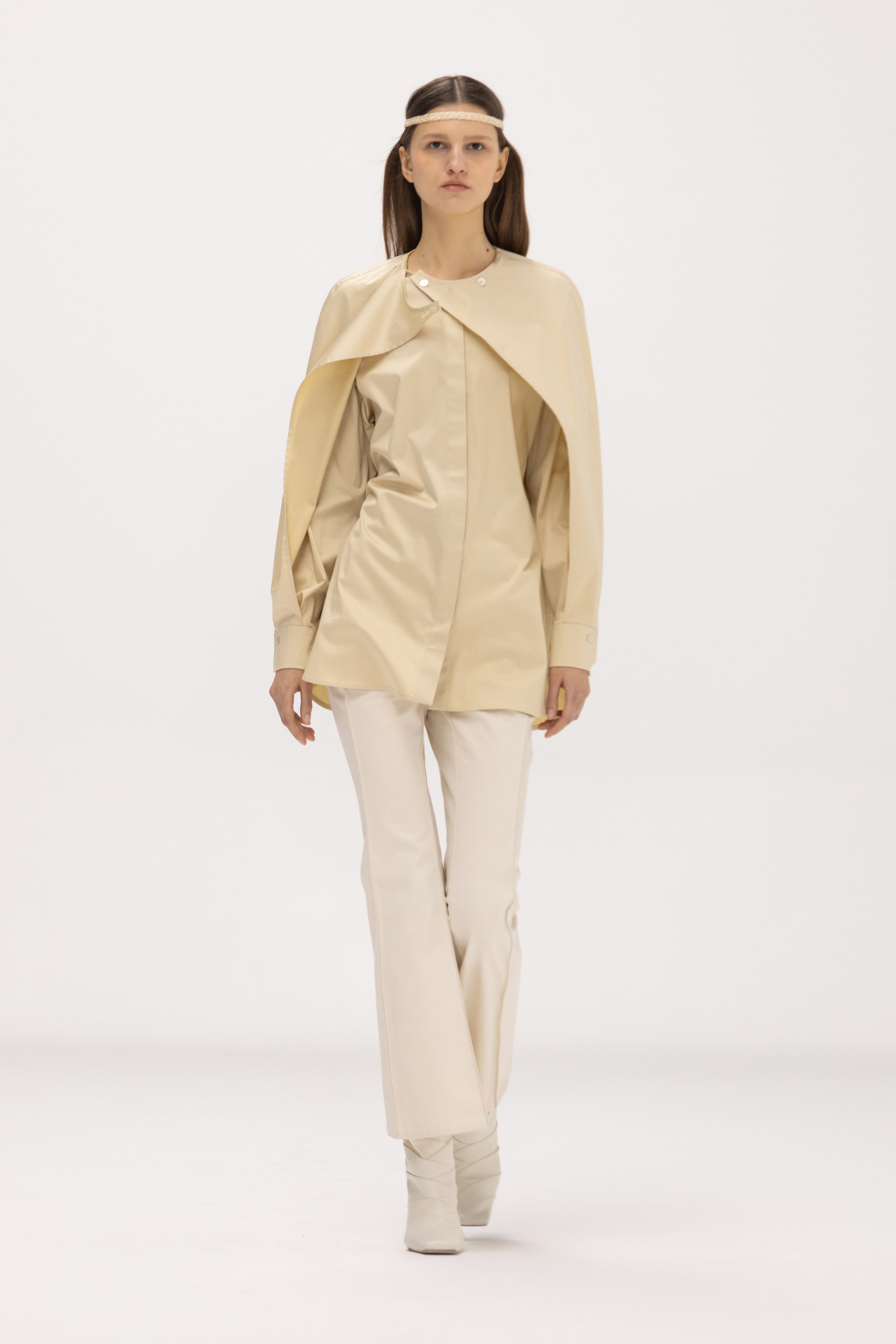 Основа формоутворення колекції — трикутник, натхненний традиційною українською хусткою. Трикутник проявляється у формах фронтальних кишень, жакетів і кейпу, а також у формі поясних сумок та спідниць.