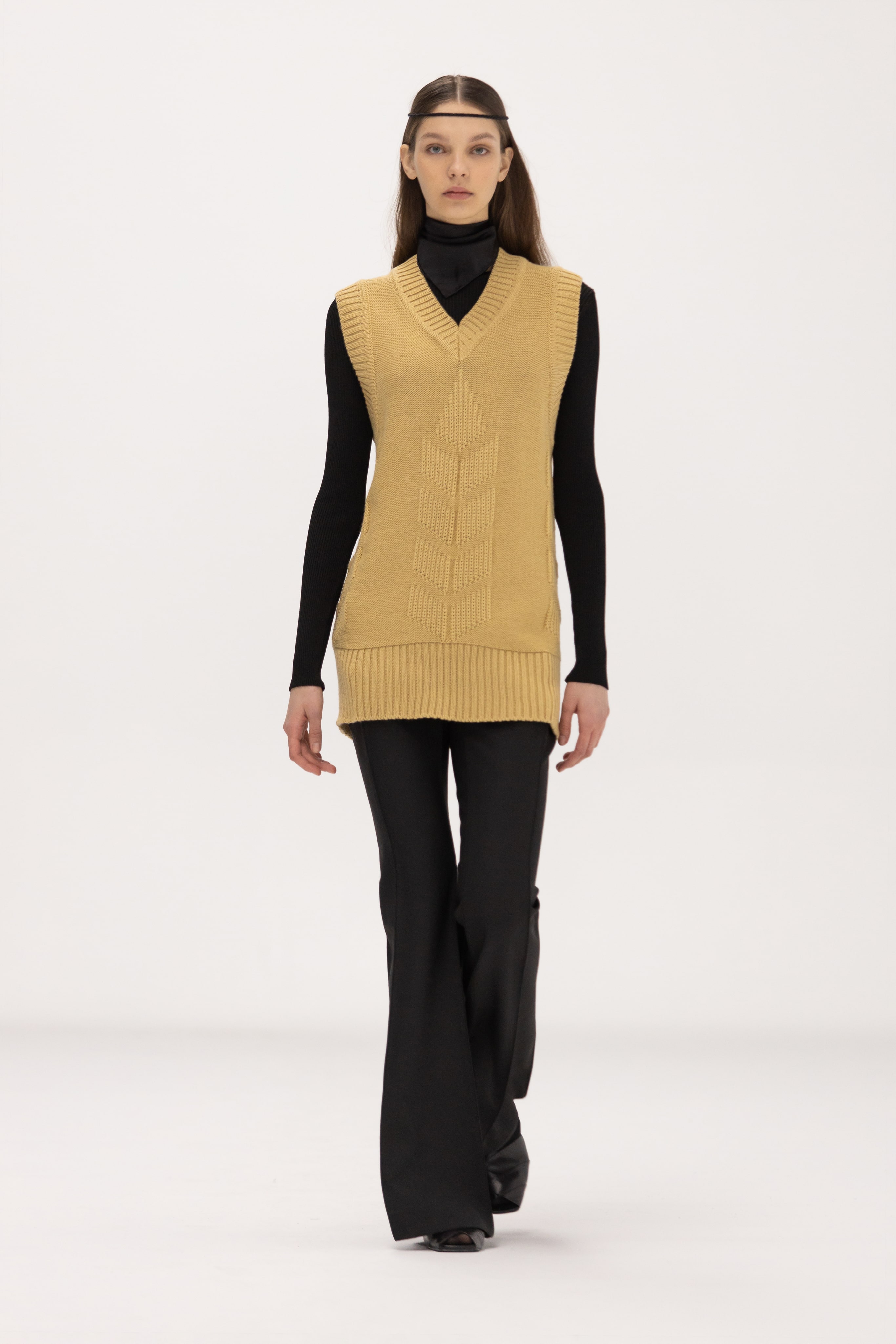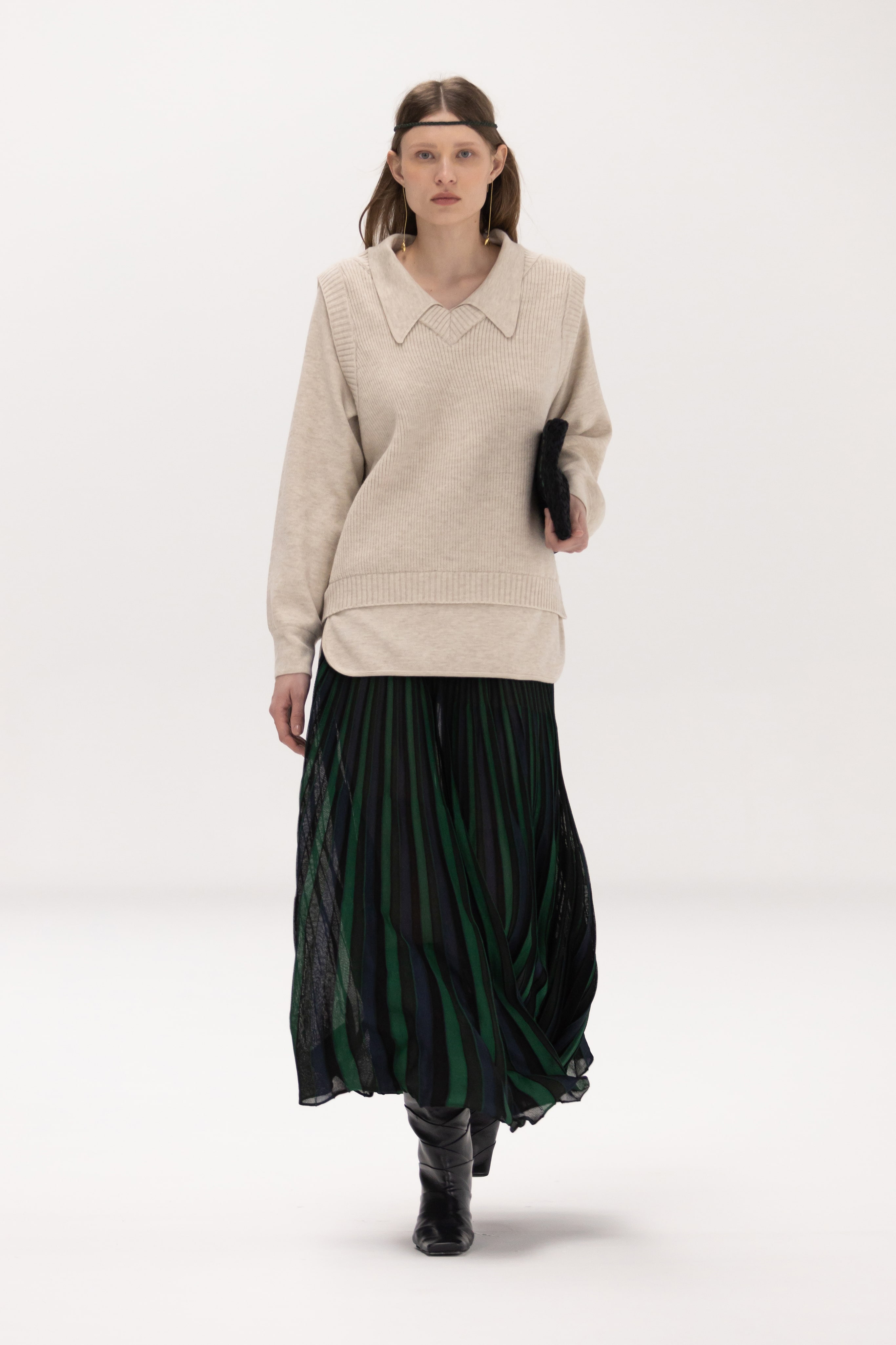 У своїх колекціях Bevza продовжують використовувати екологічні технології і перероблені матеріали. Наприклад, меланжевий кейп виконано з перероблених пластикових пляшок, а в’язані вручну жилети — з перероблених тканин попередніх колекцій бренду. У новій колекції є також “шуба”, яка виготовлена з волокон конопель, вирощених і вироблених в Україні.