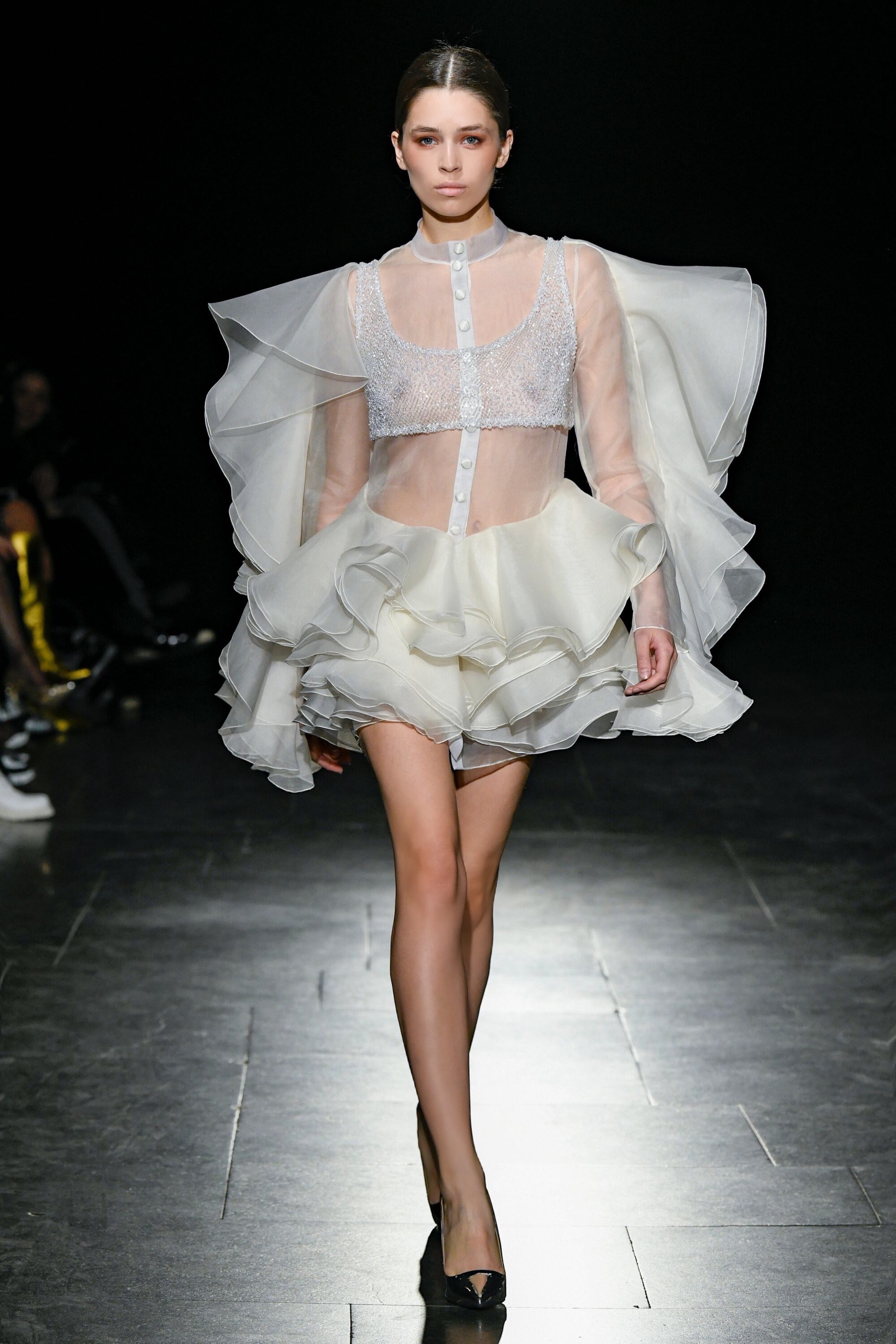 22 образа коллекции всецело посвящены женской красоте и достоинству, силе духа и способности покорять любые вершины и преодолевать любые трудности: социальные, экзистенциальные или вселенские. Женщины артистичны, драматичны, полны магии и таланта — это не может не вдохновлять, и дизайнер создал коллекцию, подчиненную этим идеям: гламурные, но не инфантильные вечерние платья сложных конструкций, элегантные брючные костюмы и будто перекроенные из мужских смокингов платья-фраки, и всё в пышных и прозрачных оборках, воздушных воланах и нежных рюшах. Женщина Bicholla рождена из огня или морской глубины, из вихря или солнечного света, струится мерцающей рекой или танцует пламенное фламенко — и непременно в роскошном наряде, обрамляющем её уникальность и красоту.