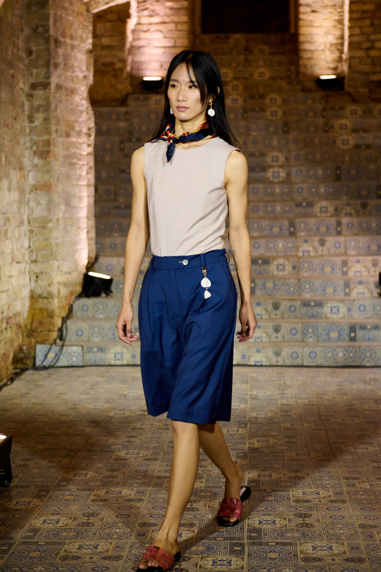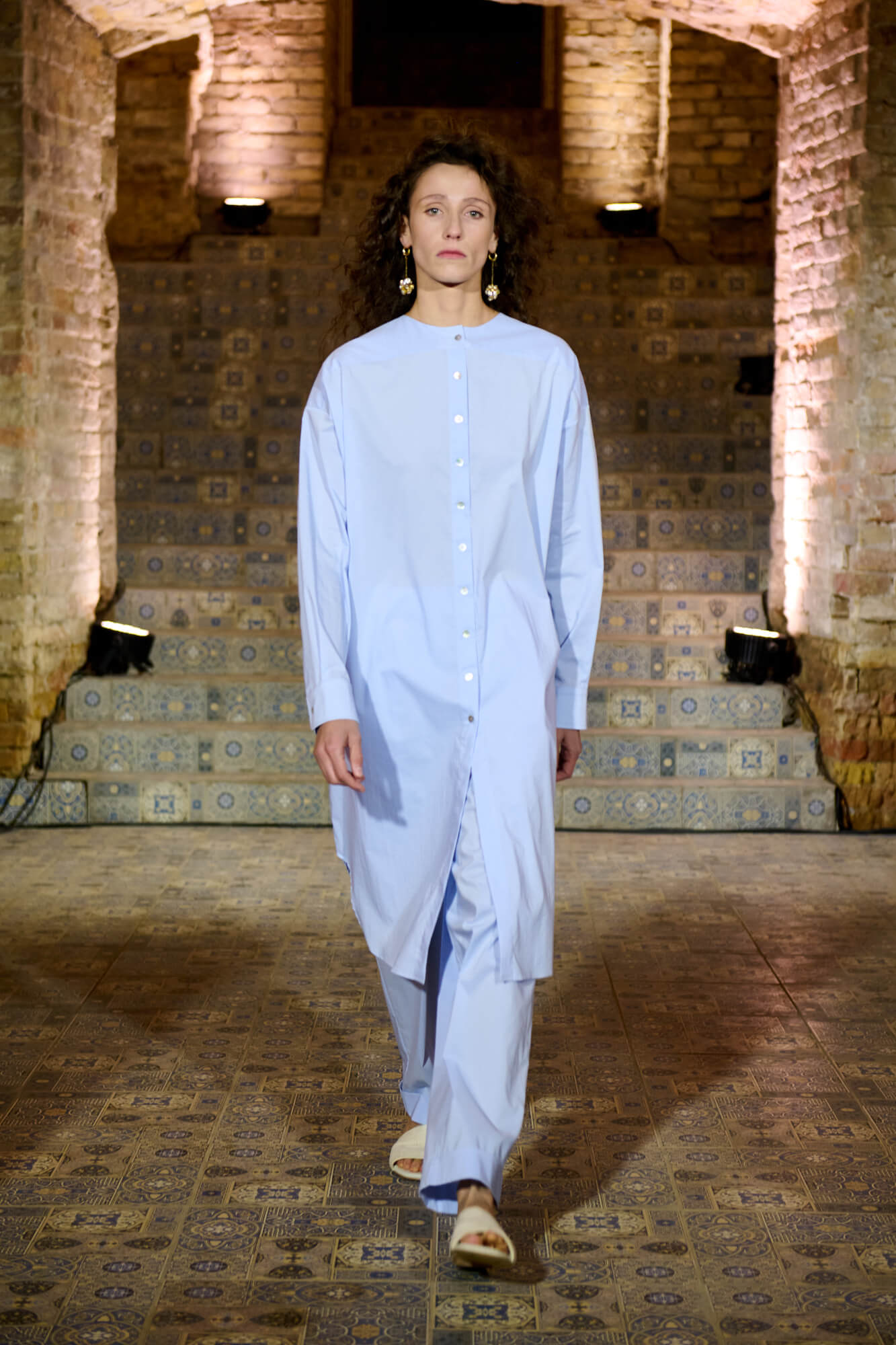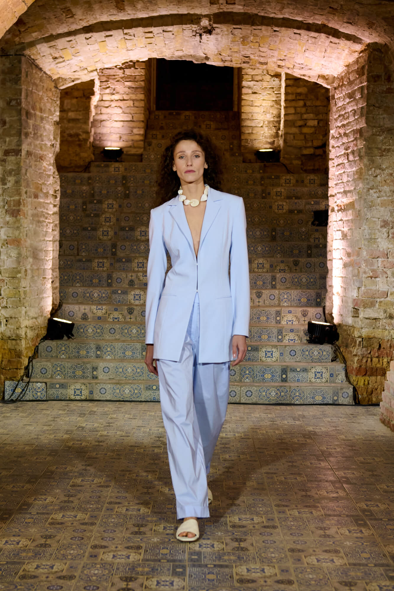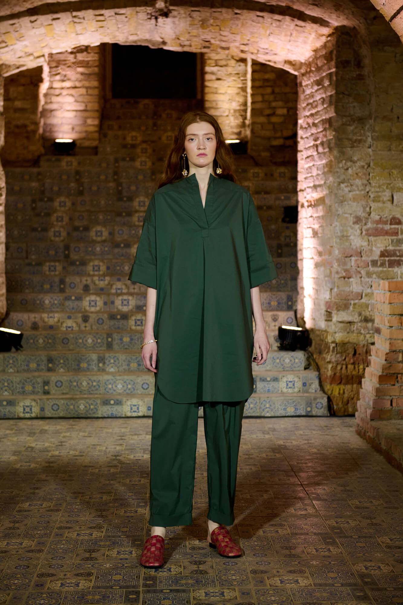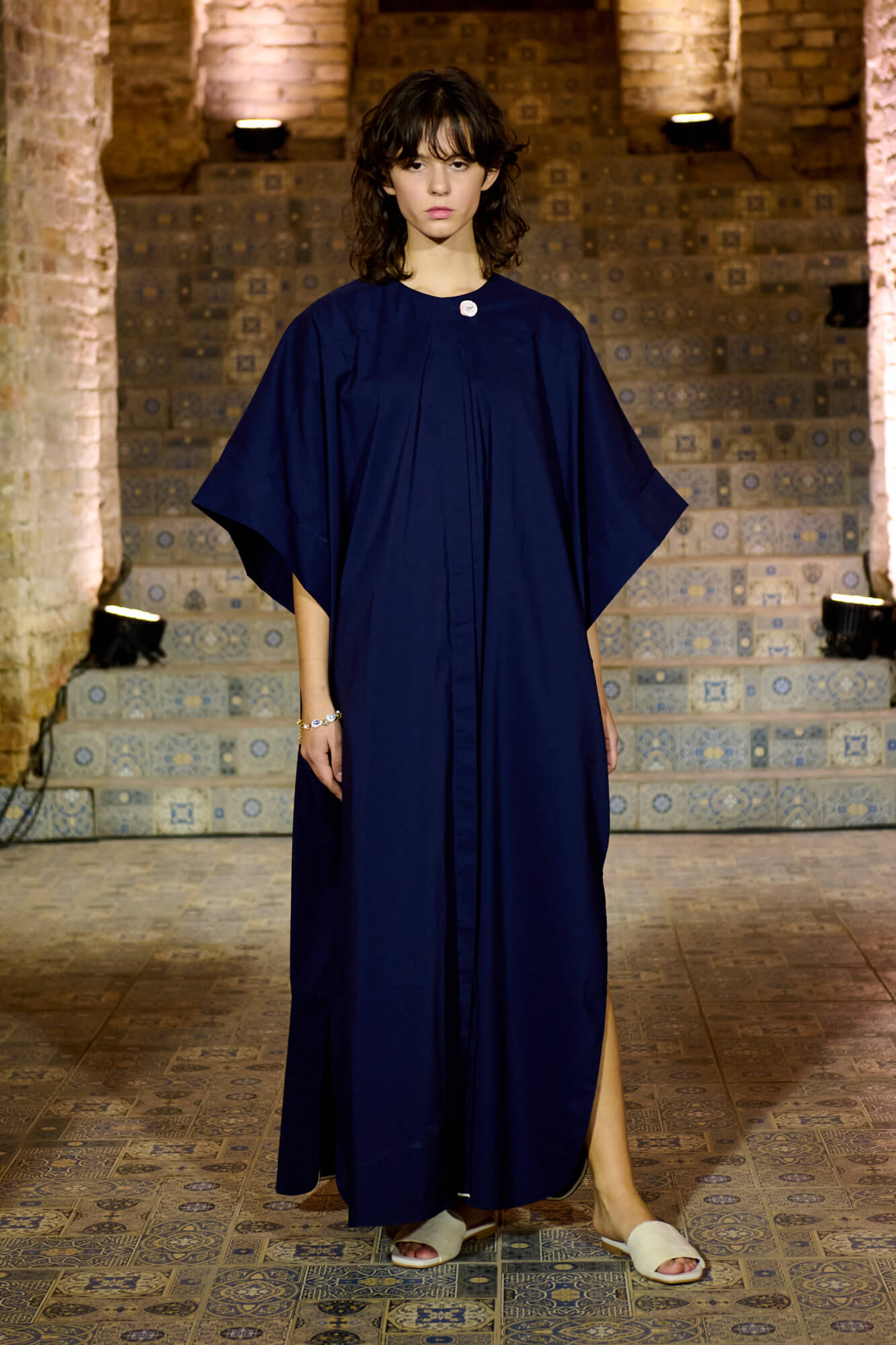 Образ с миниатюрной вязаной шапочкой и принтованной рубашкой отсылает к артистическим истокам африканского джаза, а создавая обувь, дизайнер переосмыслила традиционные деревенские лапти — так в коллекции появились плетенные из кожи мюли, шлепанцы и балетки. Натуральные морские ракушки стали основным материалом для украшений Bobkova: брошей, подвесок, сережек и браслетов с позолотой и камнями Swarovski.