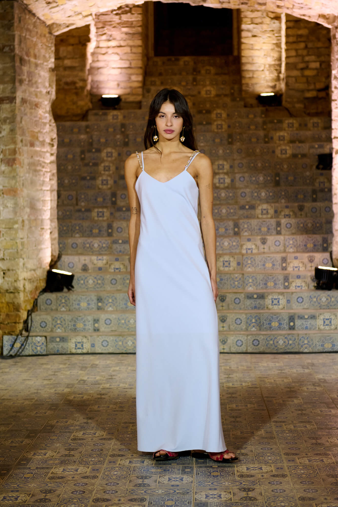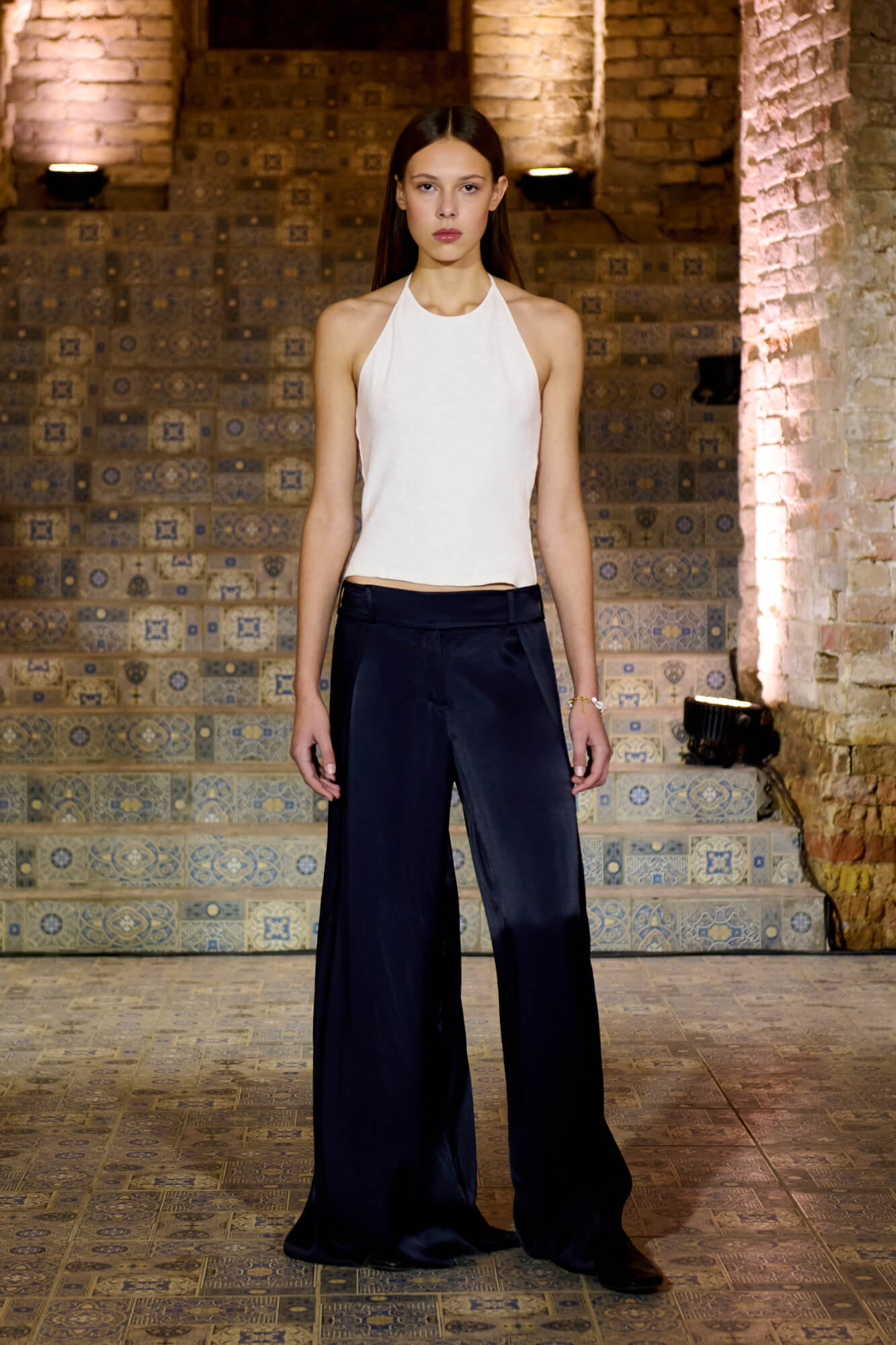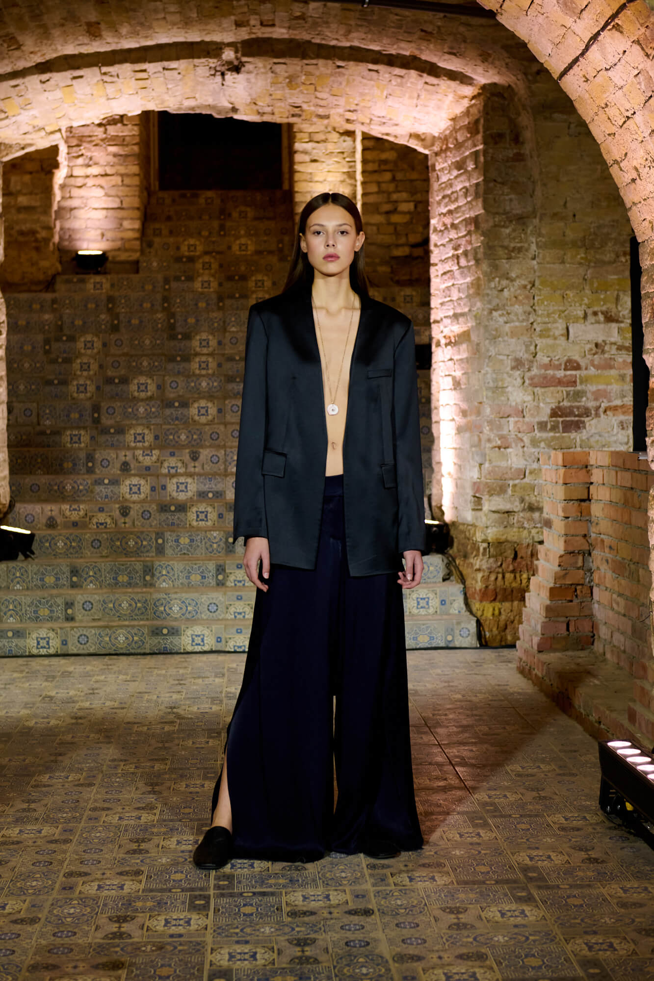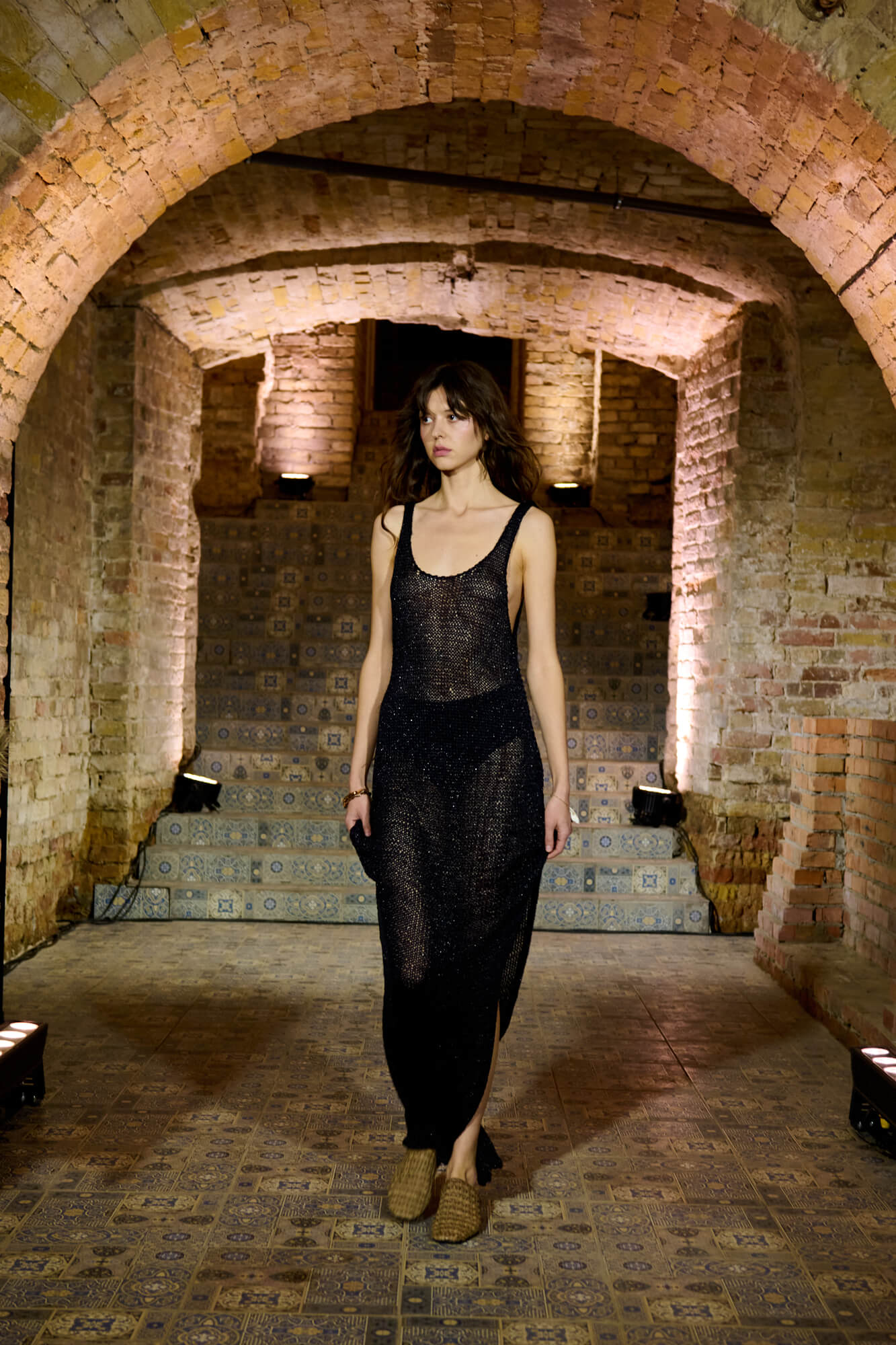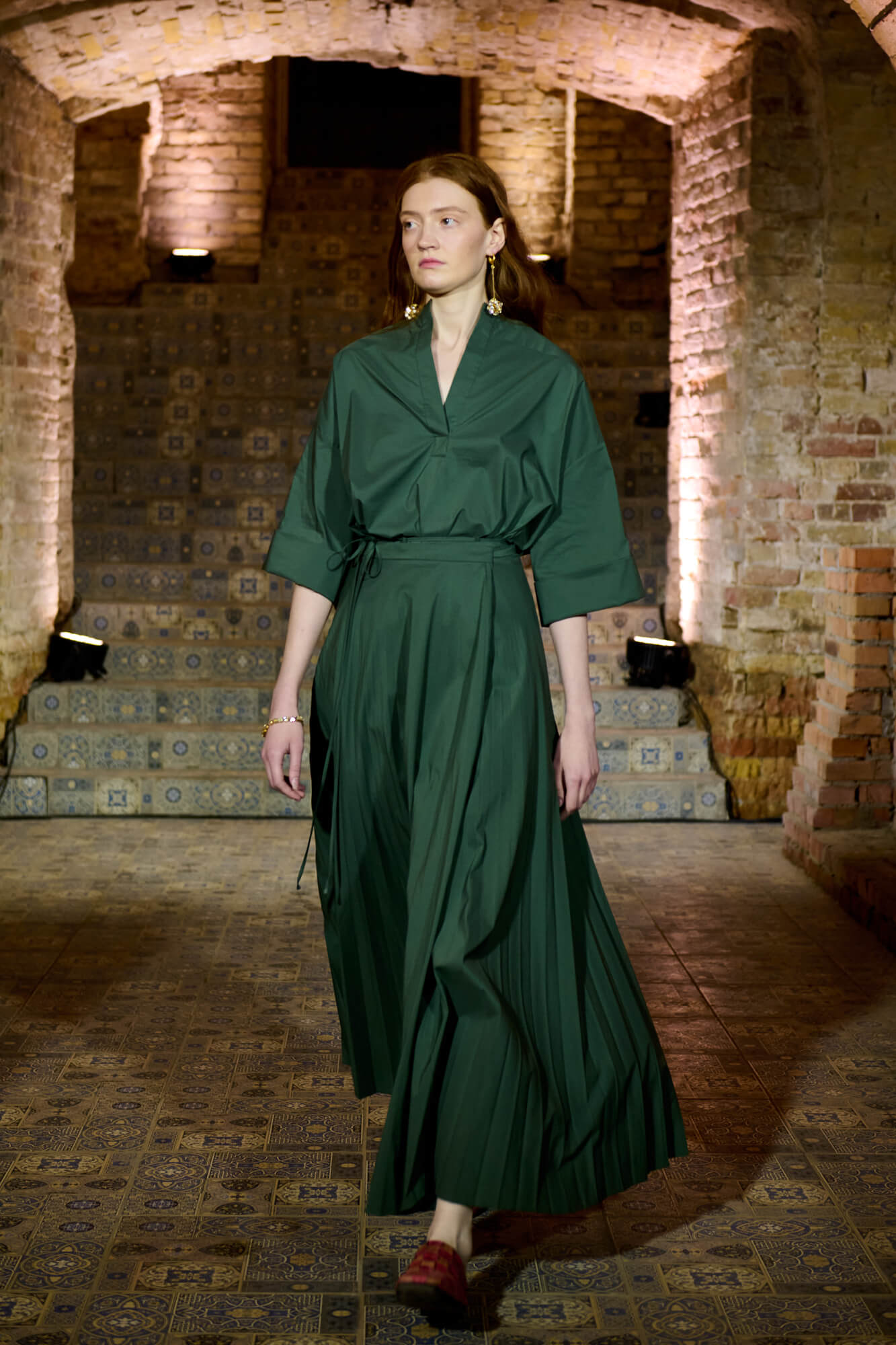 Образ с миниатюрной вязаной шапочкой и принтованной рубашкой отсылает к артистическим истокам африканского джаза, а создавая обувь, дизайнер переосмыслила традиционные деревенские лапти — так в коллекции появились плетенные из кожи мюли, шлепанцы и балетки. Натуральные морские ракушки стали основным материалом для украшений Bobkova: брошей, подвесок, сережек и браслетов с позолотой и камнями Swarovski.