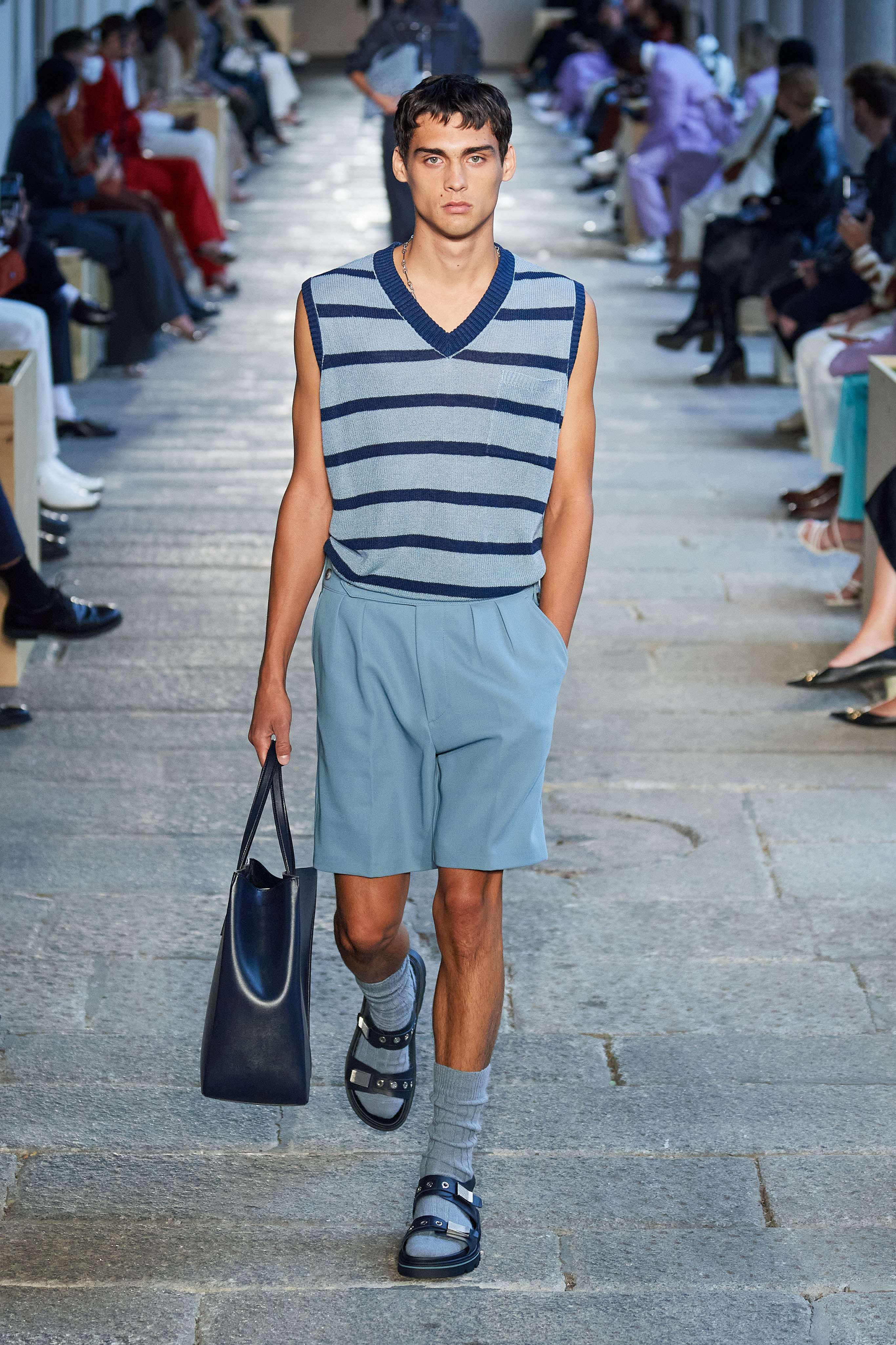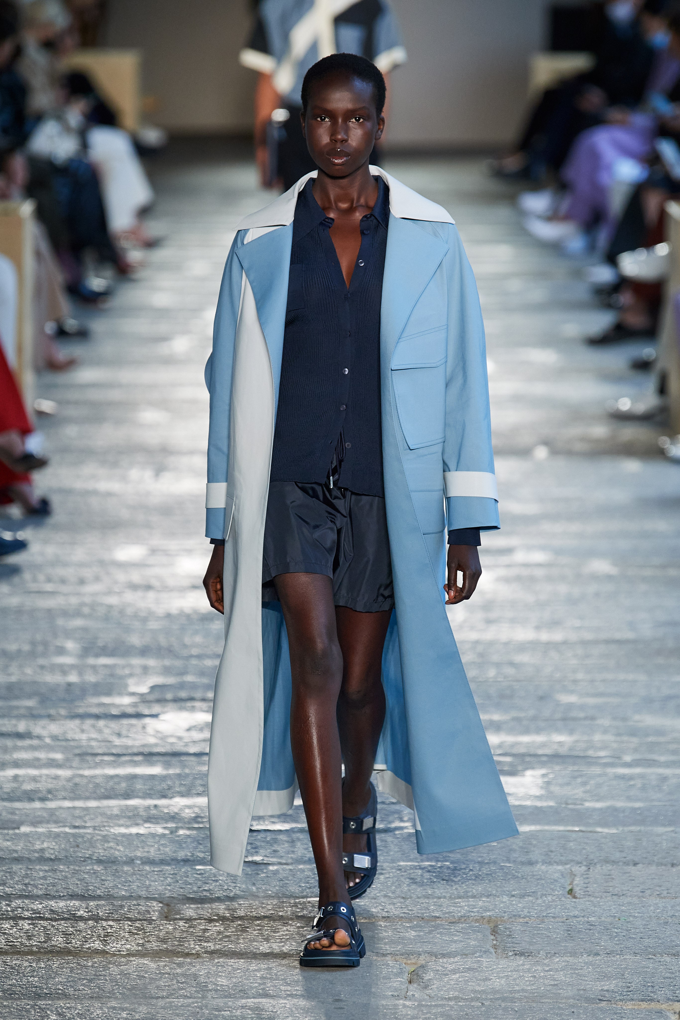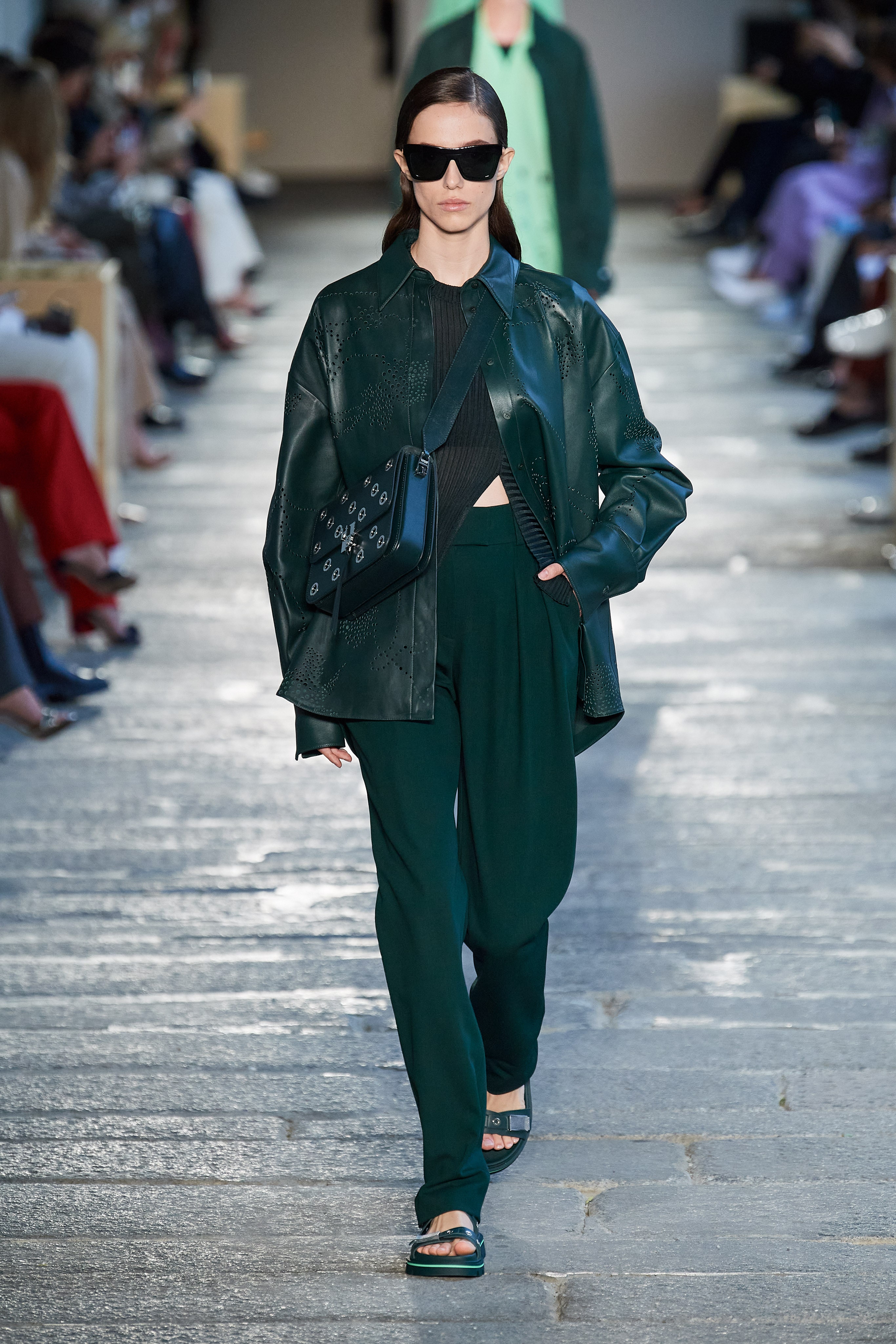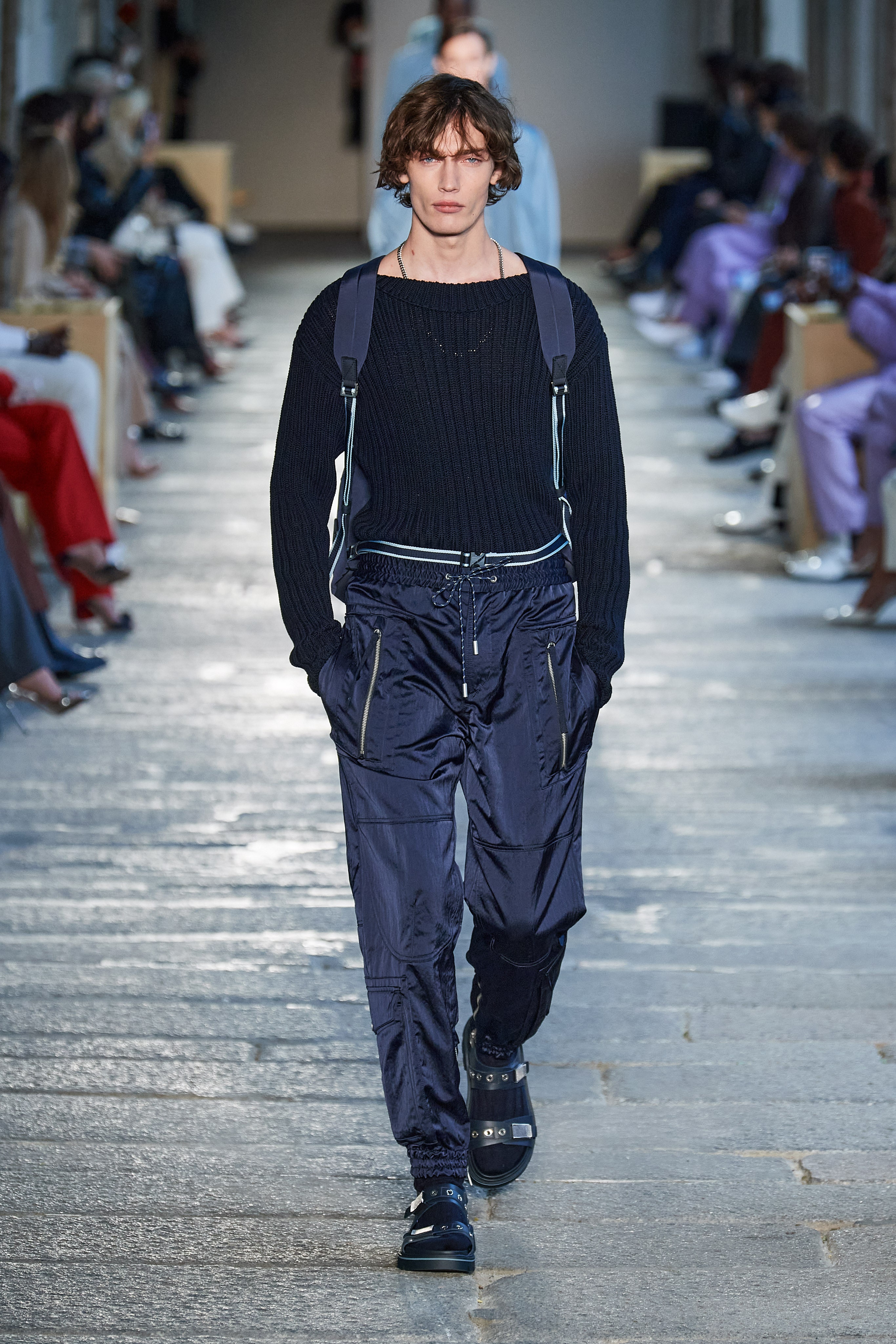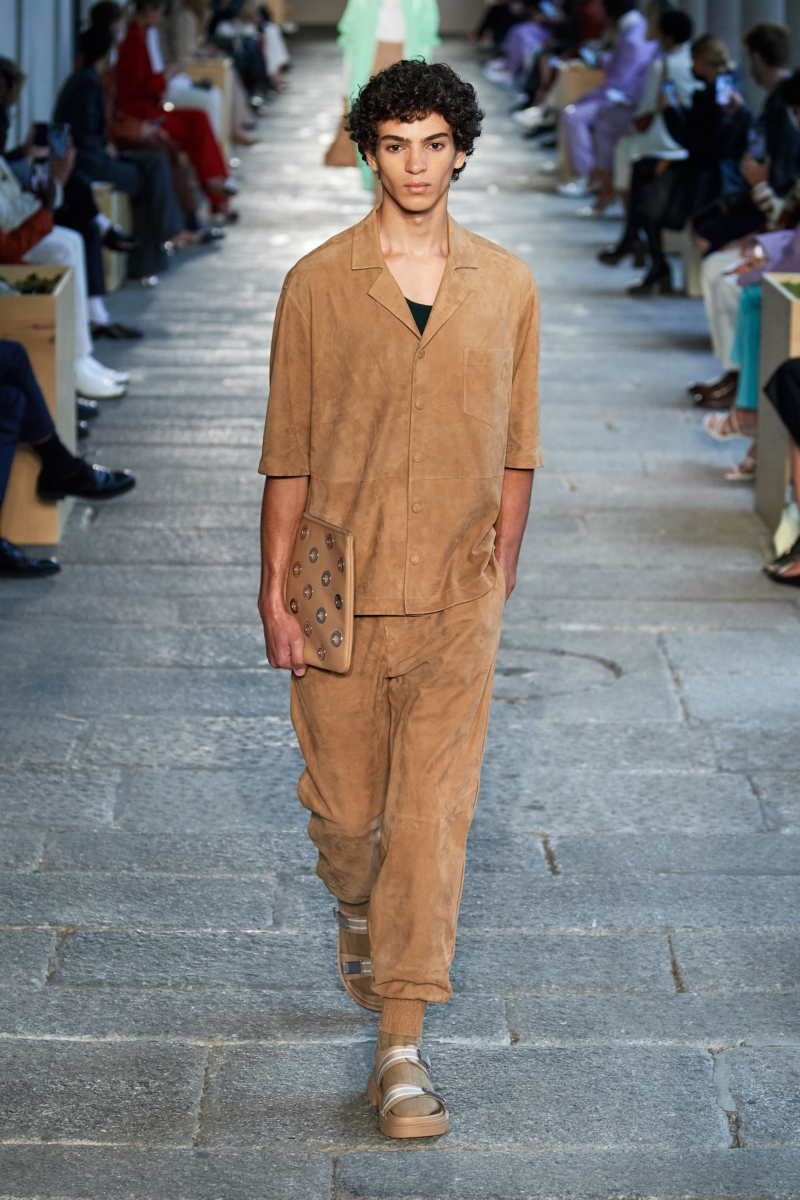 Креативный директор дома Инго Уилтс сделал ставку на непринужденные силуэты и комфорт — так, брюки карго в коллекции выглядят роскошно и идут в паре с пиджаками, а походные сандалии на плоском ходу могут стать отличной компанией для двусторонних кожаных пальто.