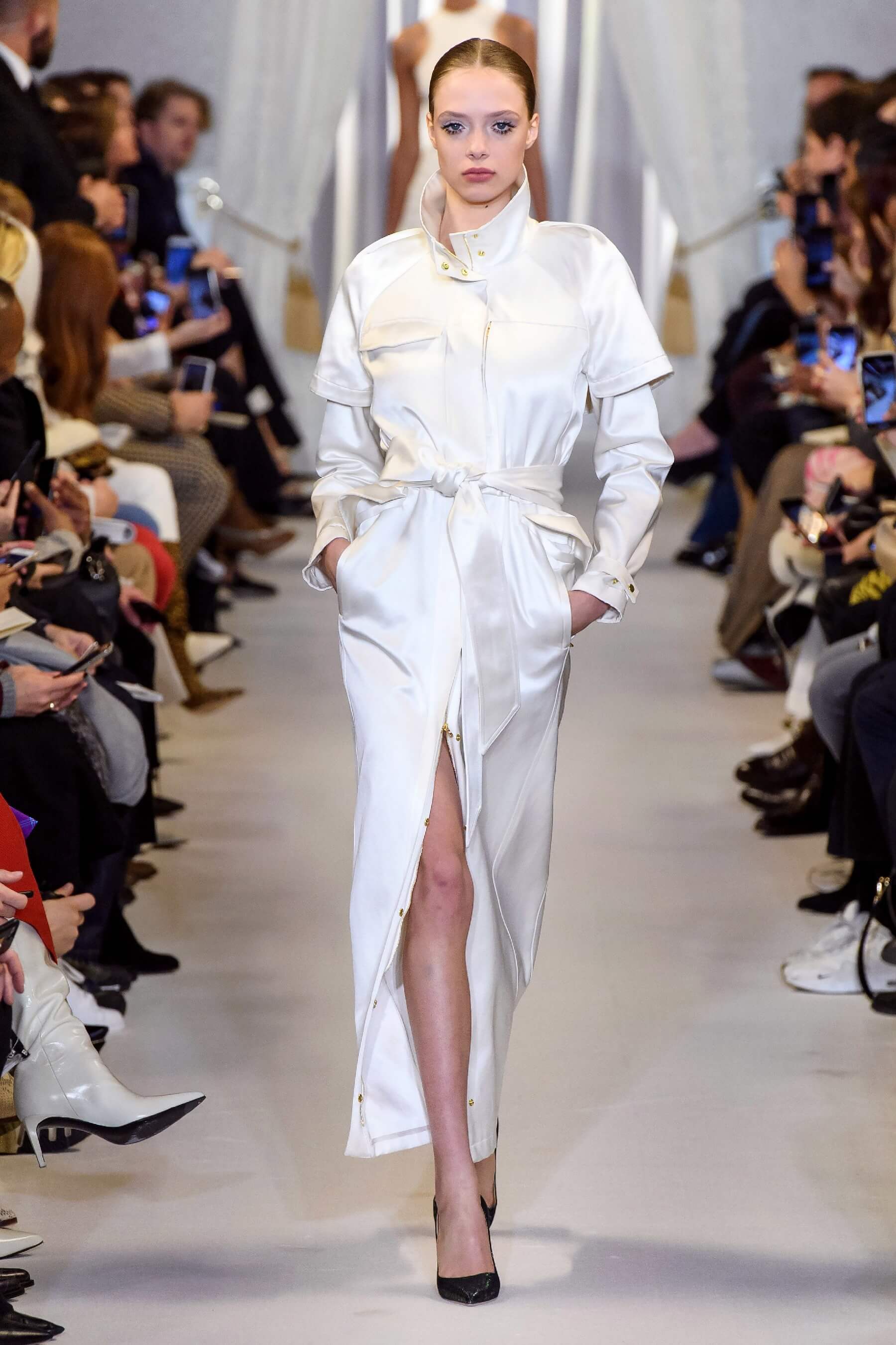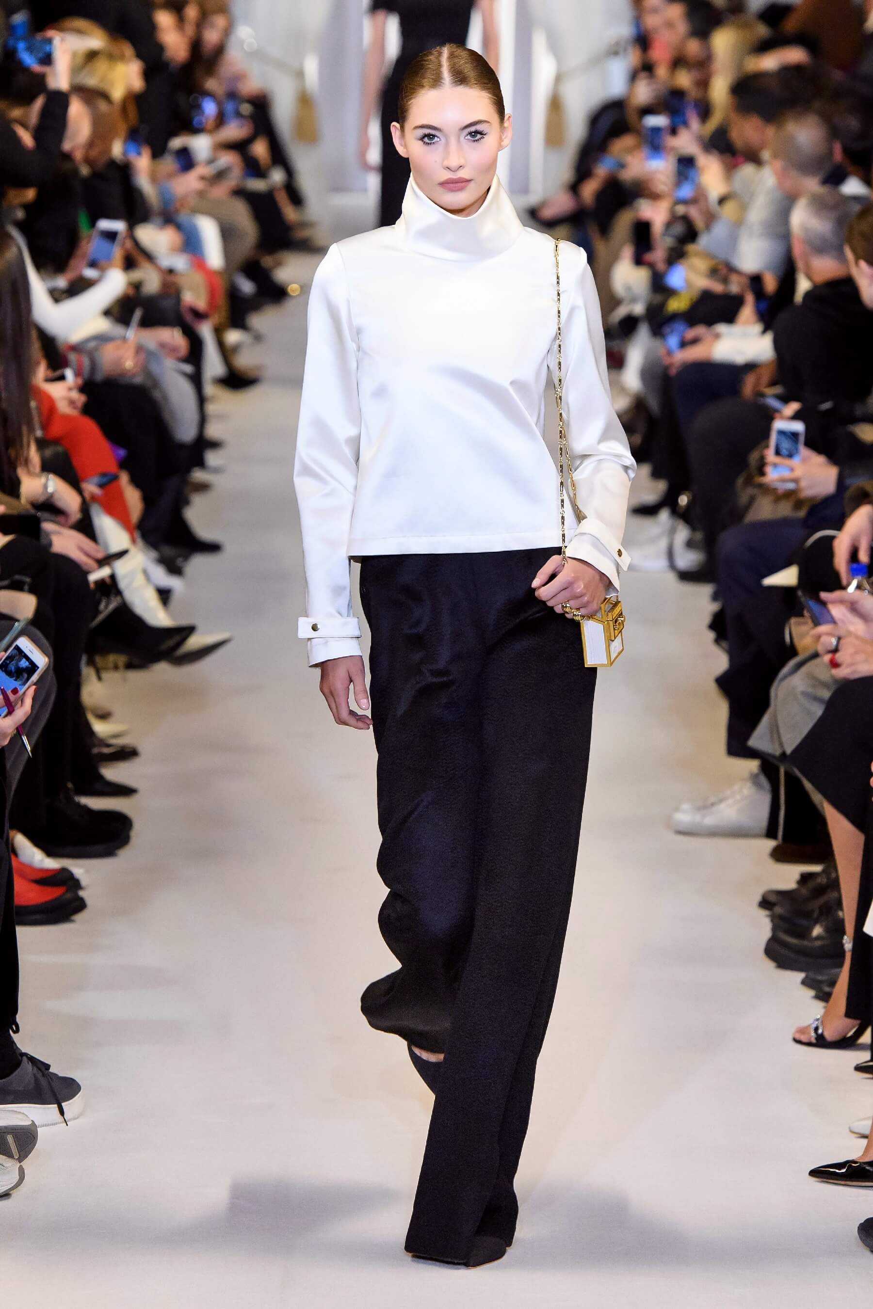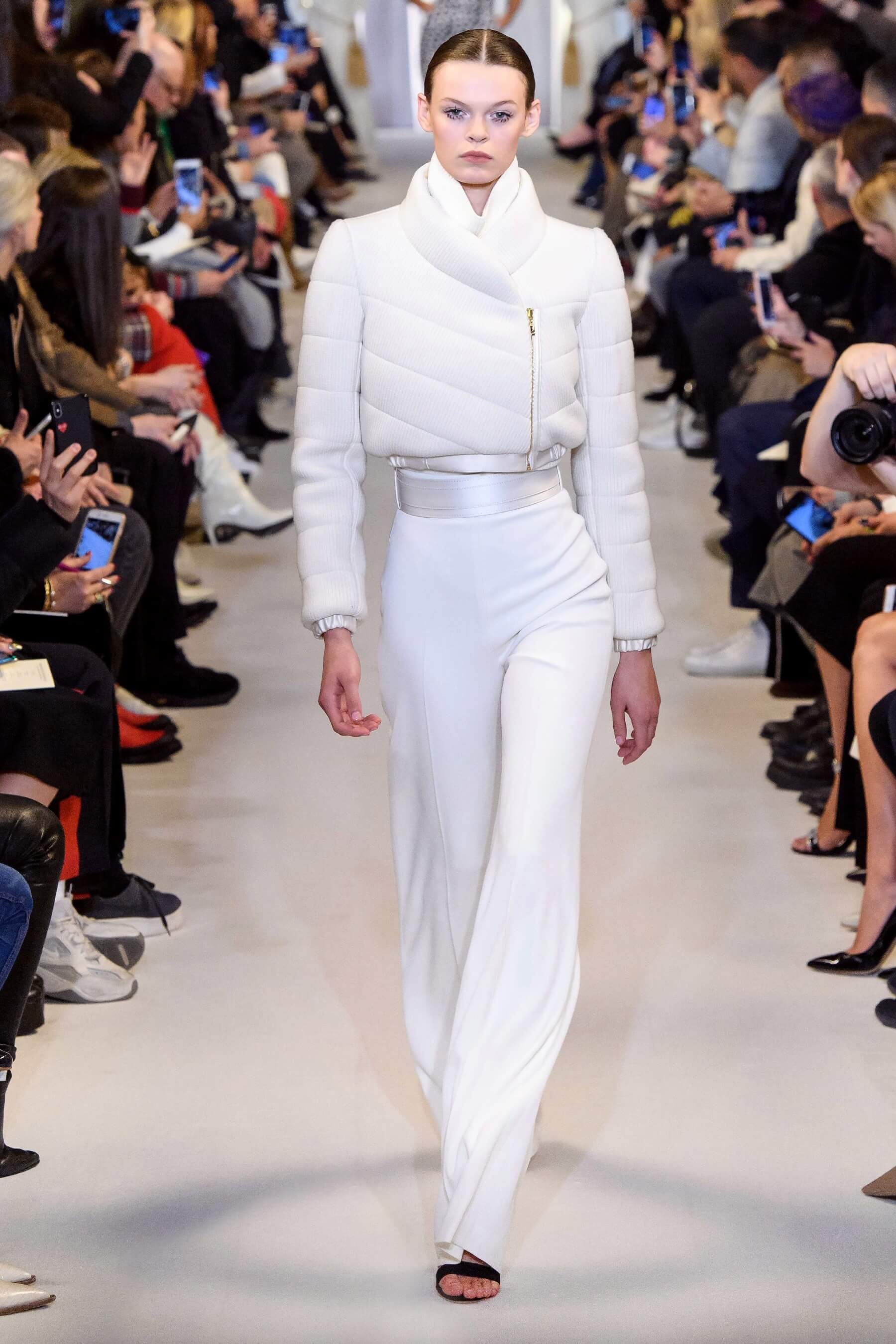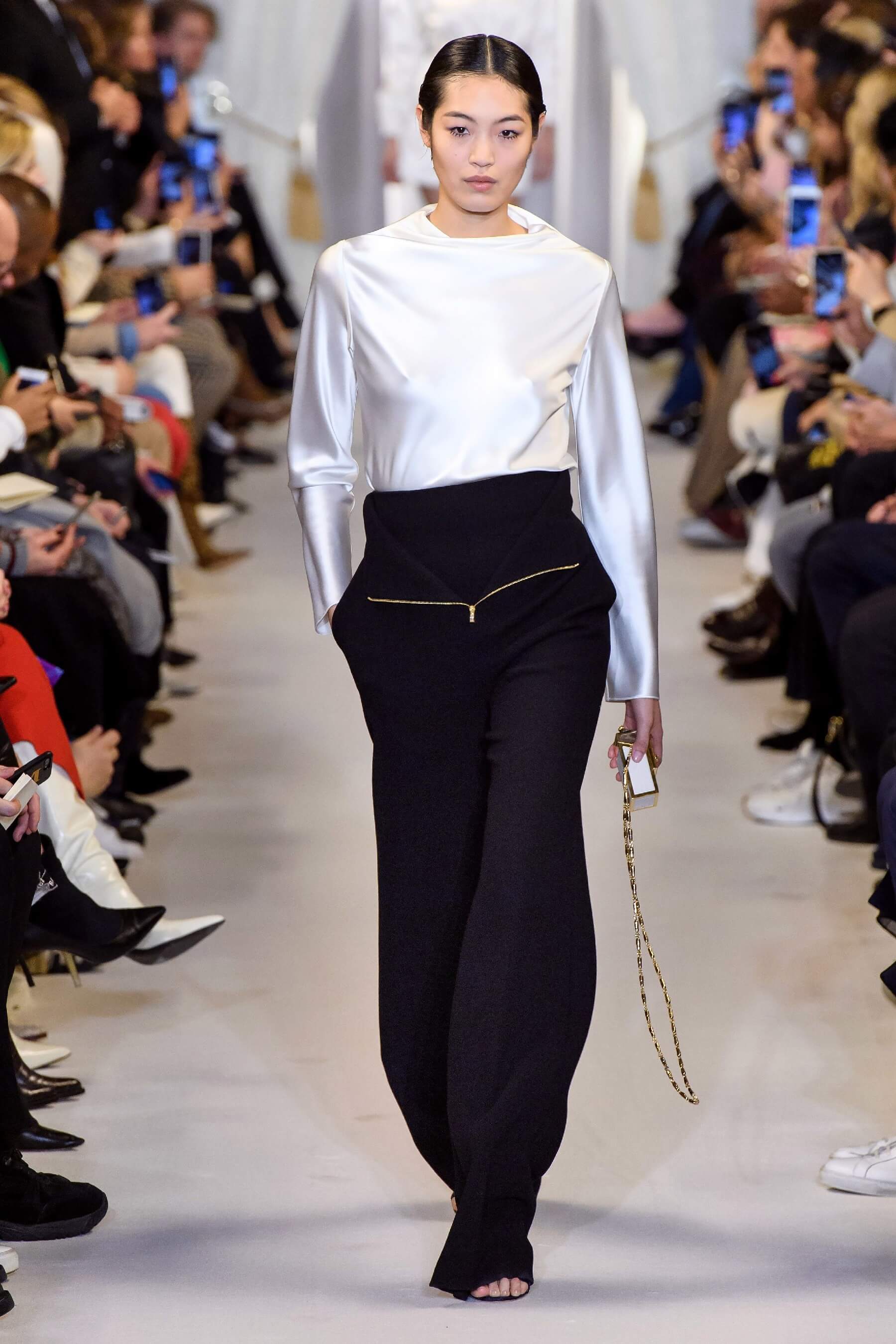 Любовь дизайнера к утонченным женственным силуэтам чувствуется в каждой его коллекции. И если предыдущая весенняя была посвящена экстравагантному розовому цвету, то новая почти полностью состоит из черно-белых силуэтных вещей: облегающих платьев с рукавом реглан, курток и гольфов с высокими воротами, спортивных анораков и широких "бутлегерских" брюк. Также в коллекции есть длинные струящиеся платья из сатина оттенка хризолита и соблазнительные платья ягодного розового оттенка. Образы коллекции навевают ассоциации о броне и защитной униформе — надёжные рукава, архитектурные конструкции и вороты, как бы ограждающие модель от внешнего мира.