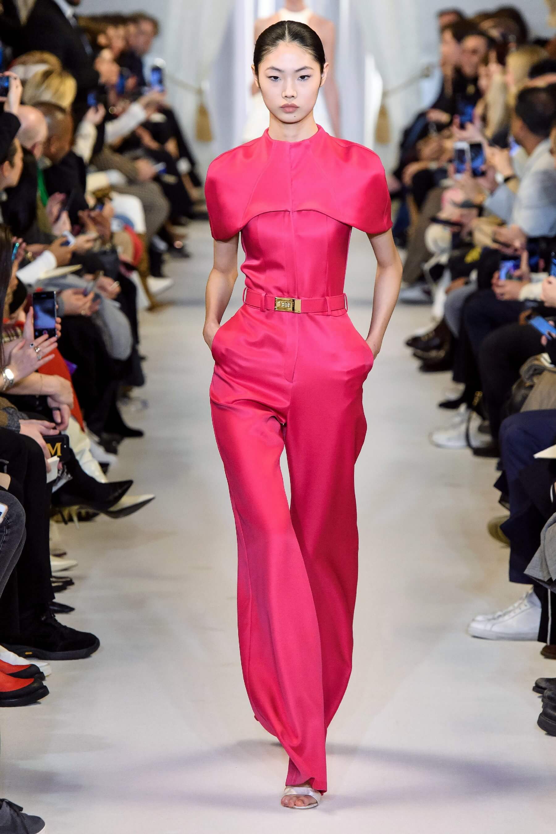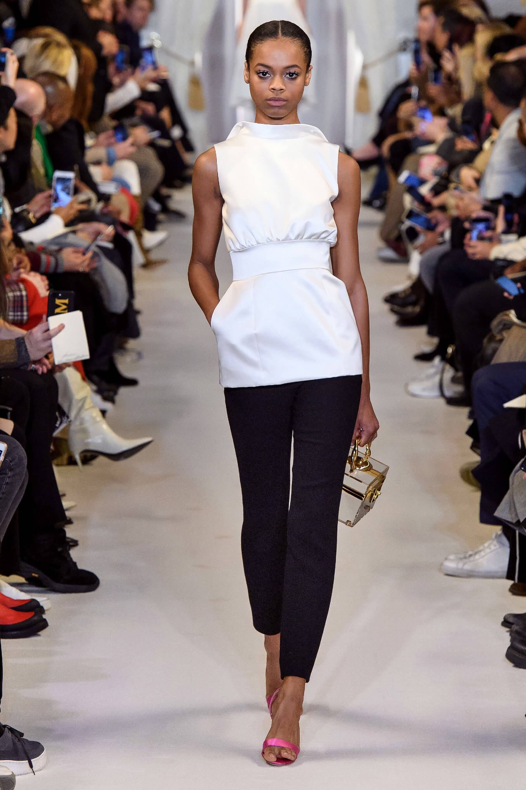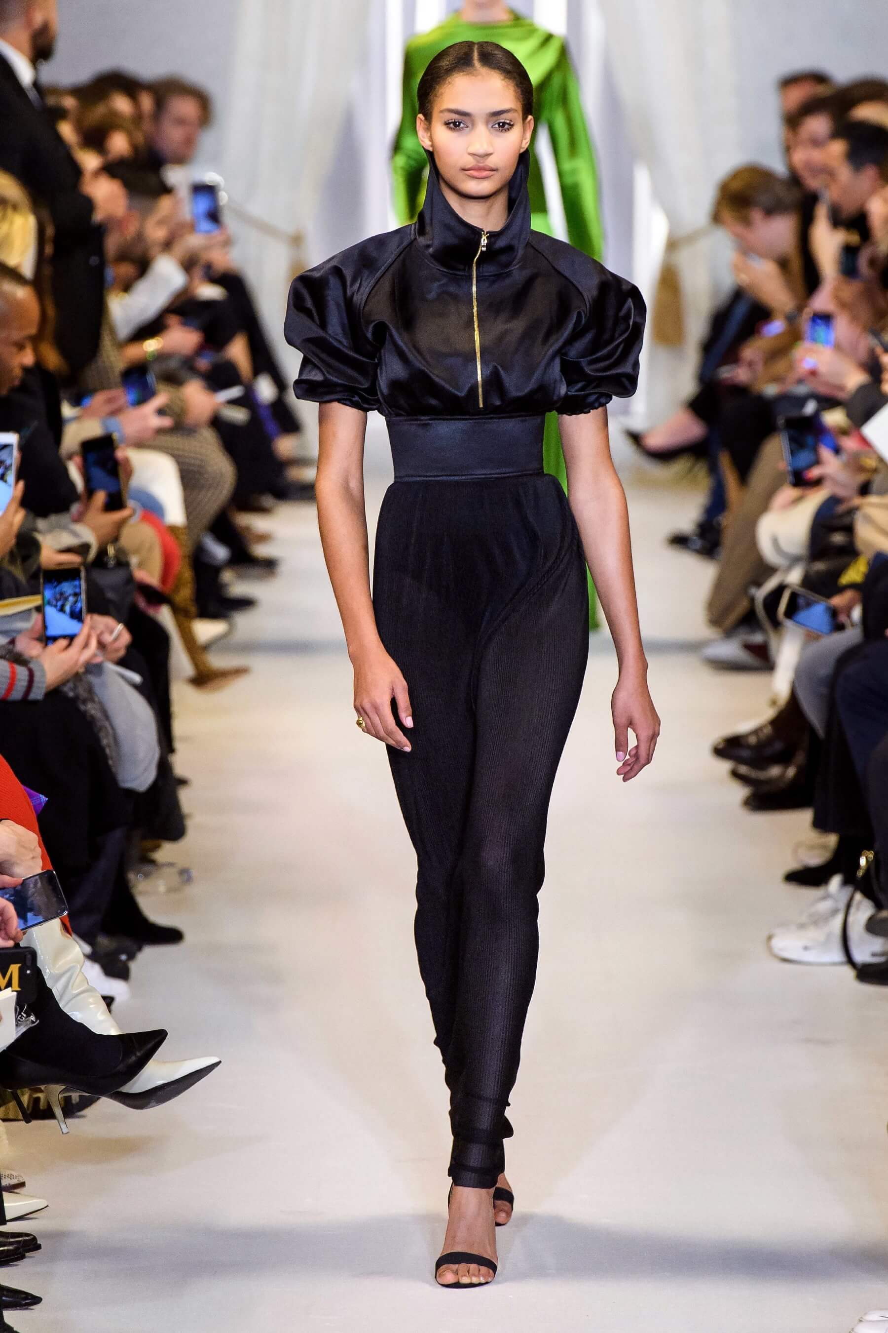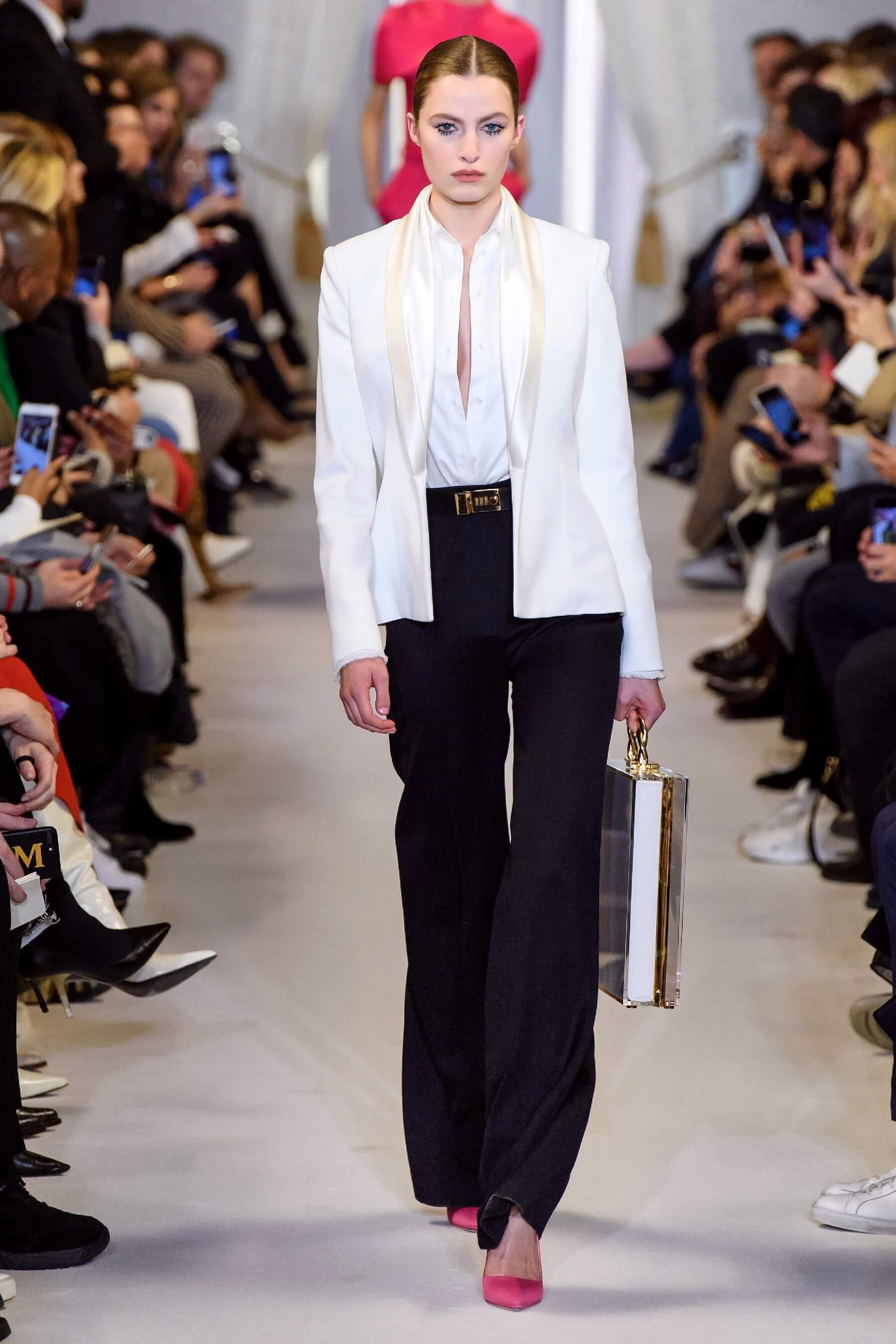 Любовь дизайнера к утонченным женственным силуэтам чувствуется в каждой его коллекции. И если предыдущая весенняя была посвящена экстравагантному розовому цвету, то новая почти полностью состоит из черно-белых силуэтных вещей: облегающих платьев с рукавом реглан, курток и гольфов с высокими воротами, спортивных анораков и широких "бутлегерских" брюк. Также в коллекции есть длинные струящиеся платья из сатина оттенка хризолита и соблазнительные платья ягодного розового оттенка. Образы коллекции навевают ассоциации о броне и защитной униформе — надёжные рукава, архитектурные конструкции и вороты, как бы ограждающие модель от внешнего мира.