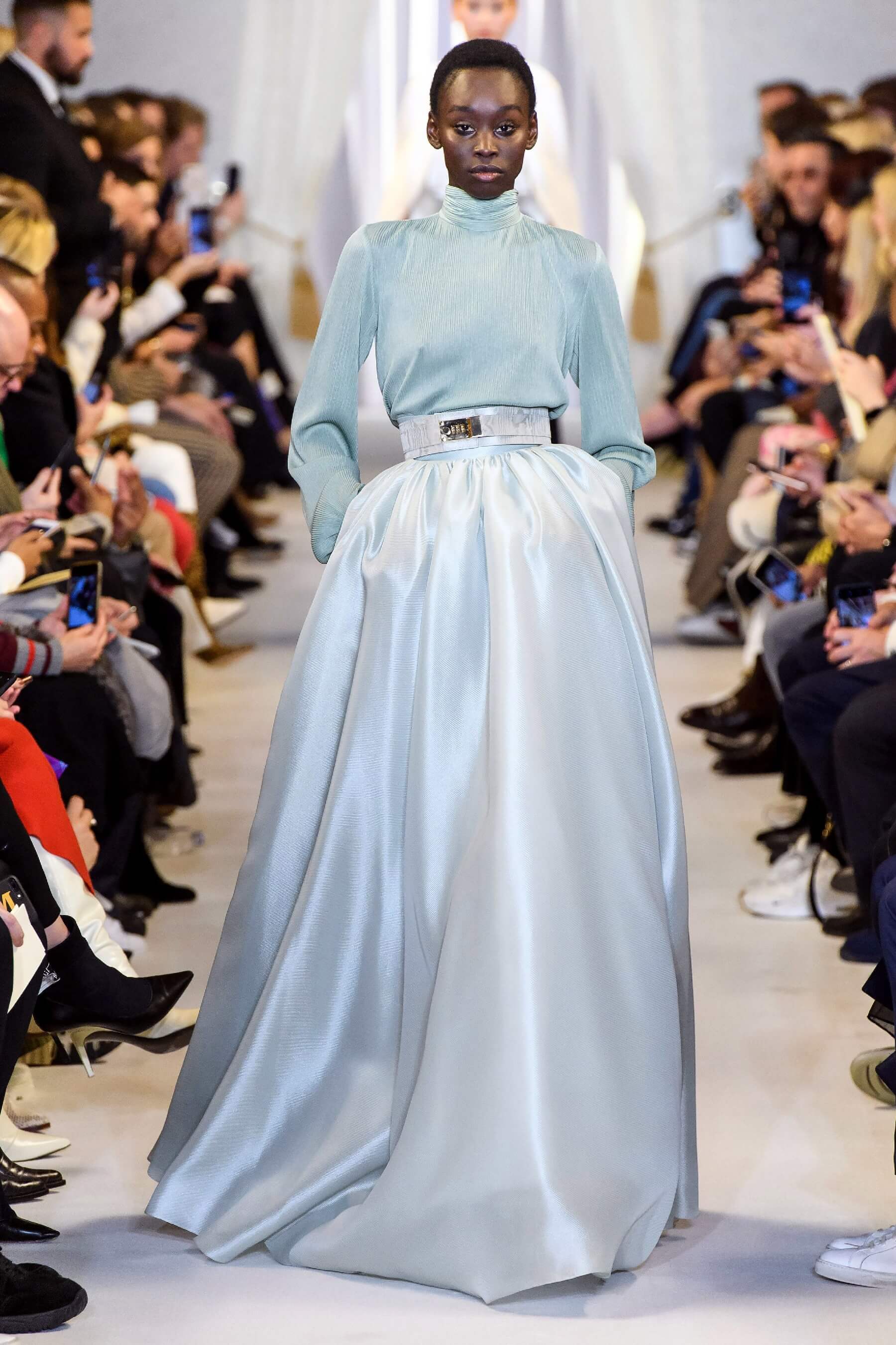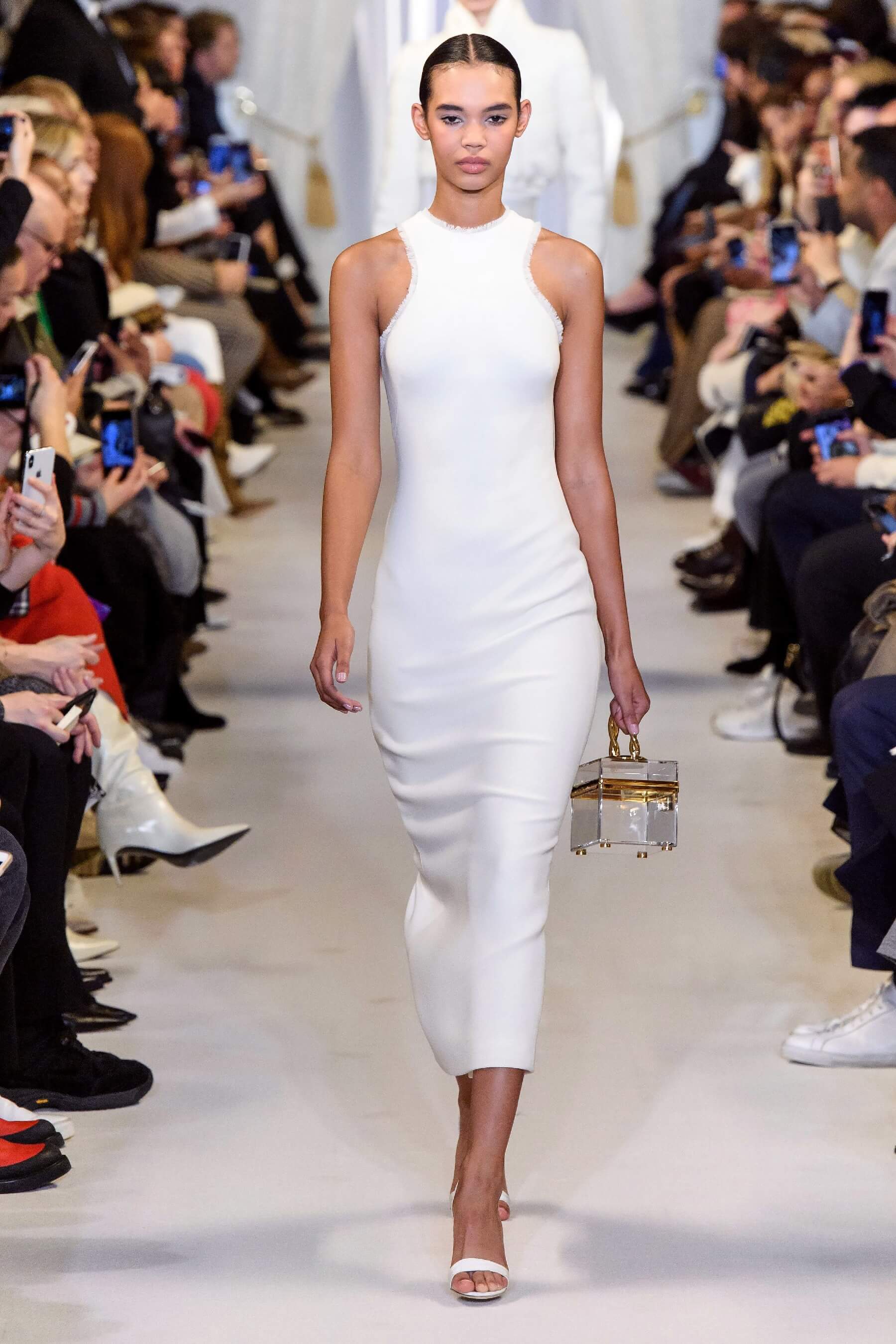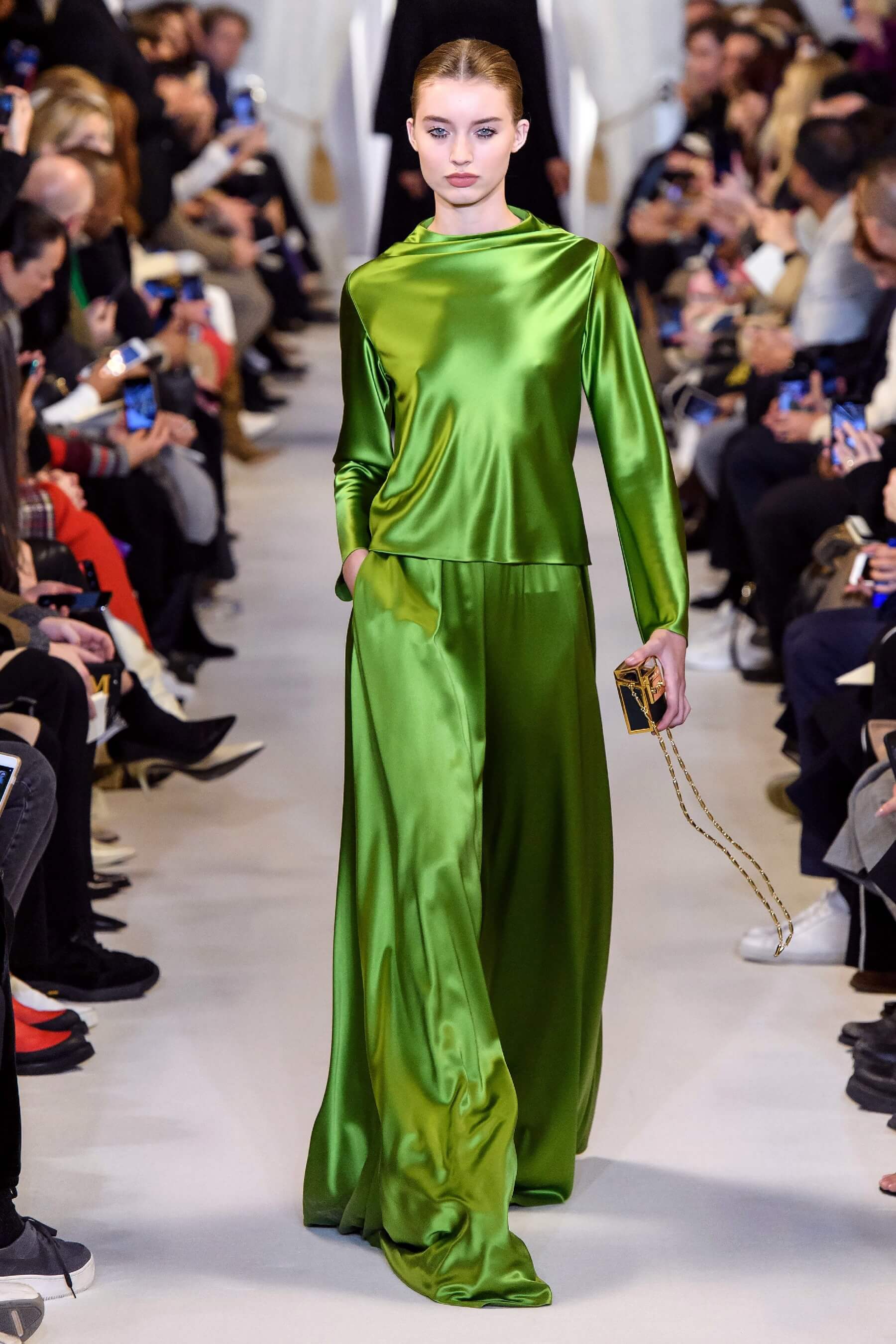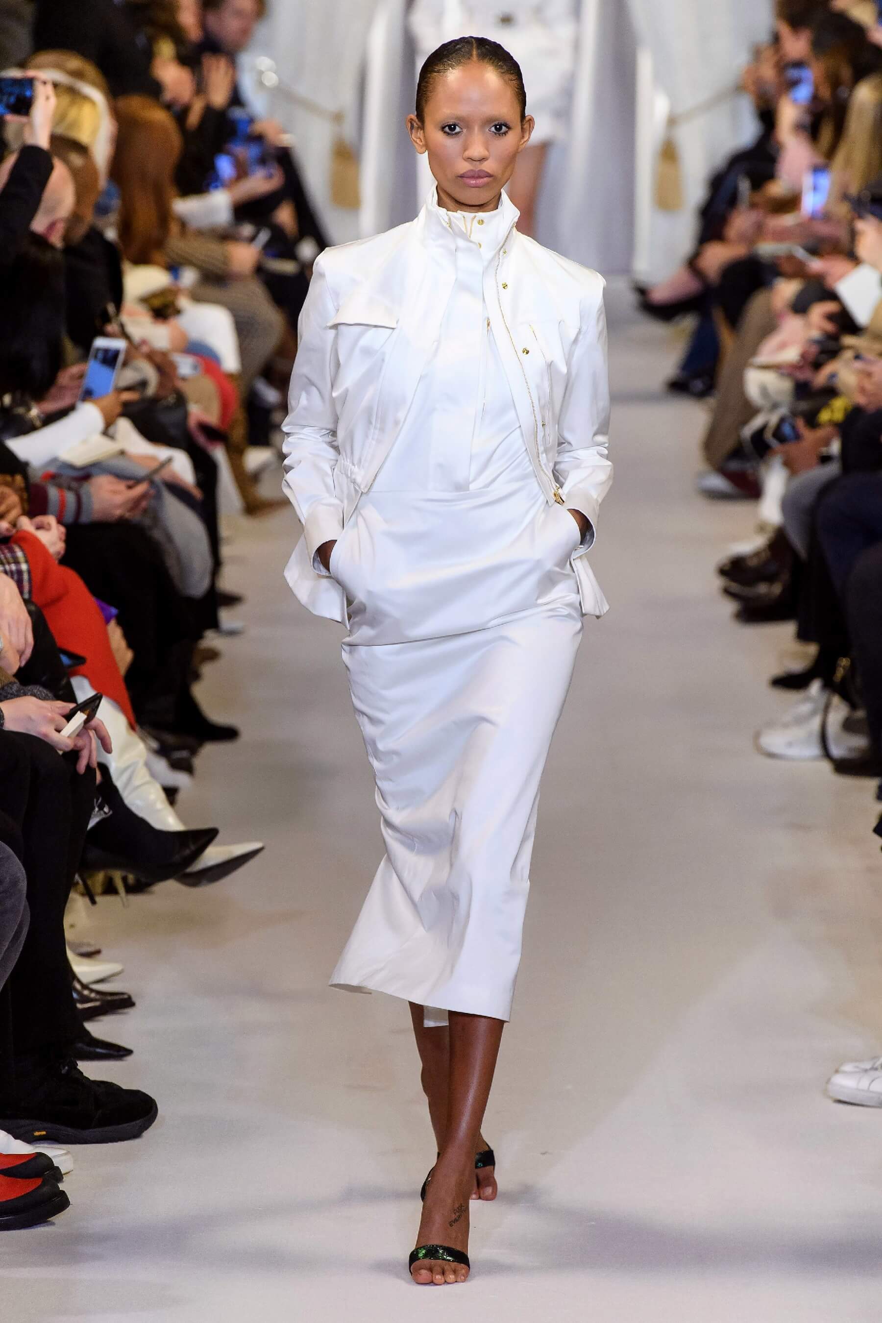 Любовь дизайнера к утонченным женственным силуэтам чувствуется в каждой его коллекции. И если предыдущая весенняя была посвящена экстравагантному розовому цвету, то новая почти полностью состоит из черно-белых силуэтных вещей: облегающих платьев с рукавом реглан, курток и гольфов с высокими воротами, спортивных анораков и широких "бутлегерских" брюк. Также в коллекции есть длинные струящиеся платья из сатина оттенка хризолита и соблазнительные платья ягодного розового оттенка. Образы коллекции навевают ассоциации о броне и защитной униформе — надёжные рукава, архитектурные конструкции и вороты, как бы ограждающие модель от внешнего мира.