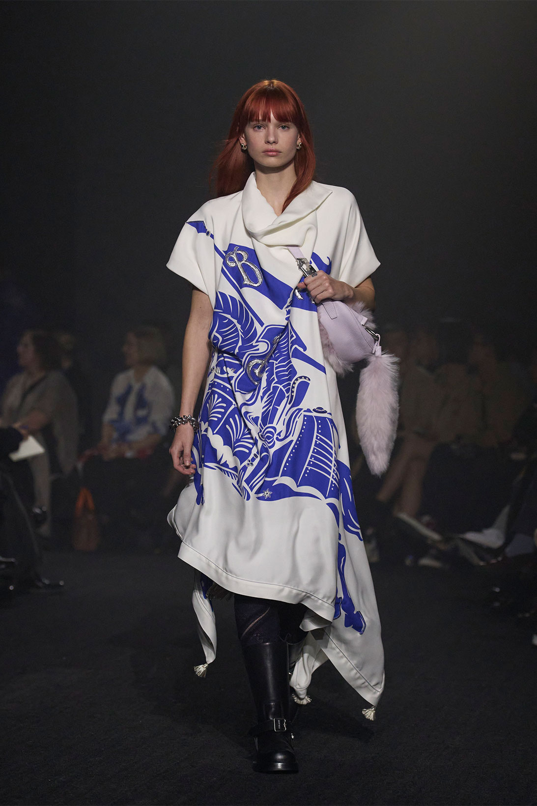 Новий креативний директор формує незвичну лінію: сучасні фактурні образи, досить нестандартні рішення в аксесуарній лінії (великі хутряні шапки або ж сумки чи брелоки – дуже неприродньо для чопорного Burberry), “пухнасте” або максівзуття (або пухнасте максівзуття – босоніжки).