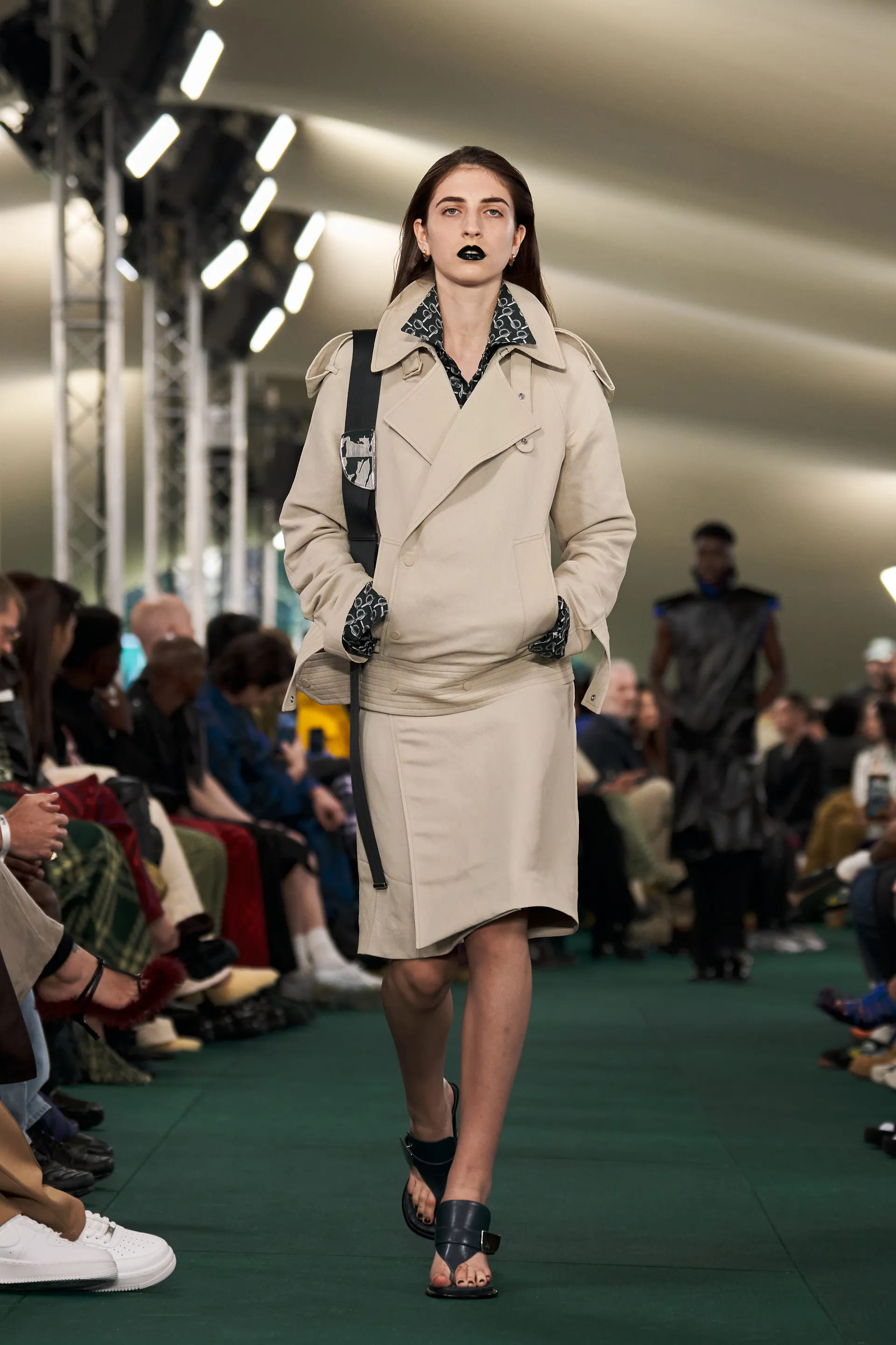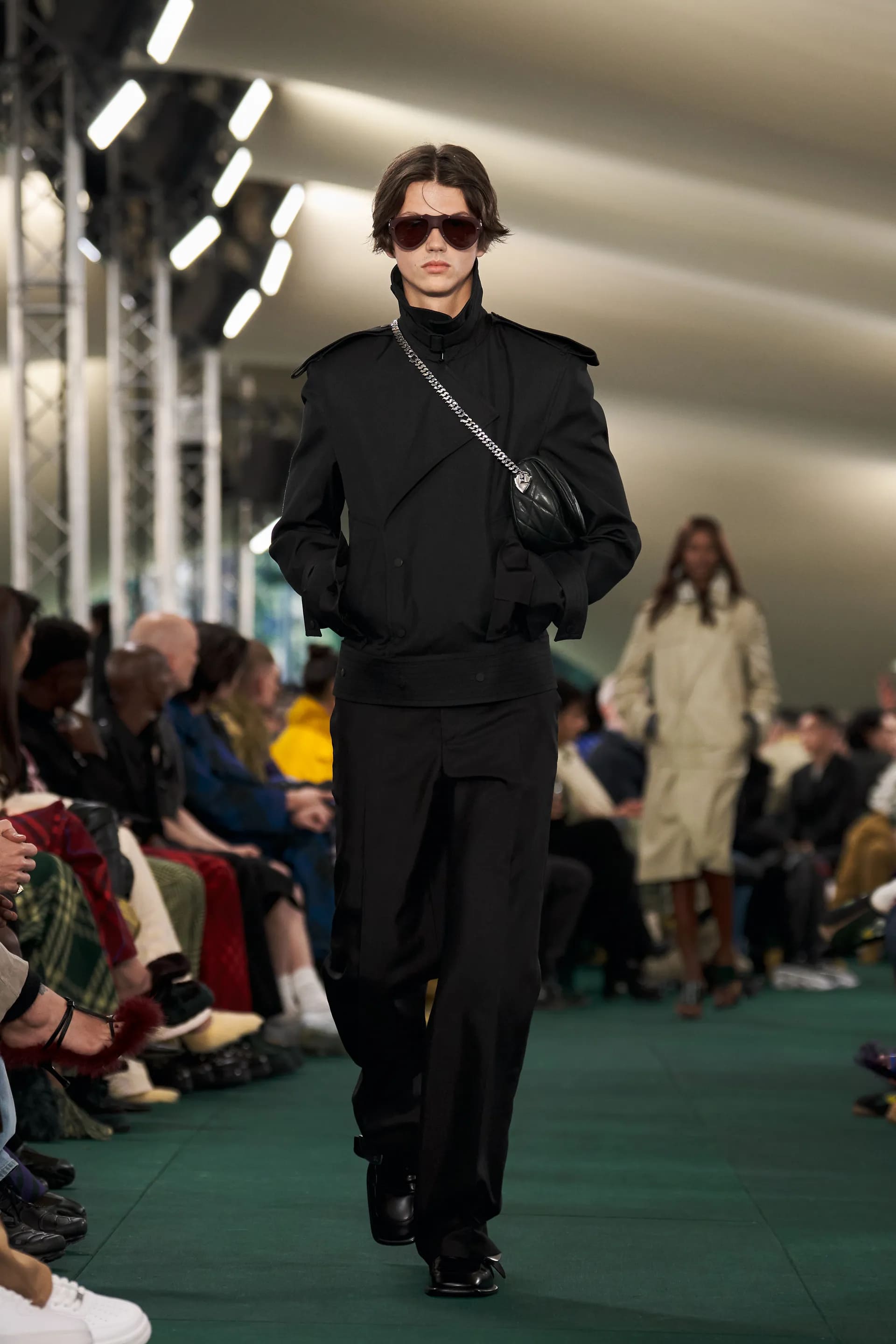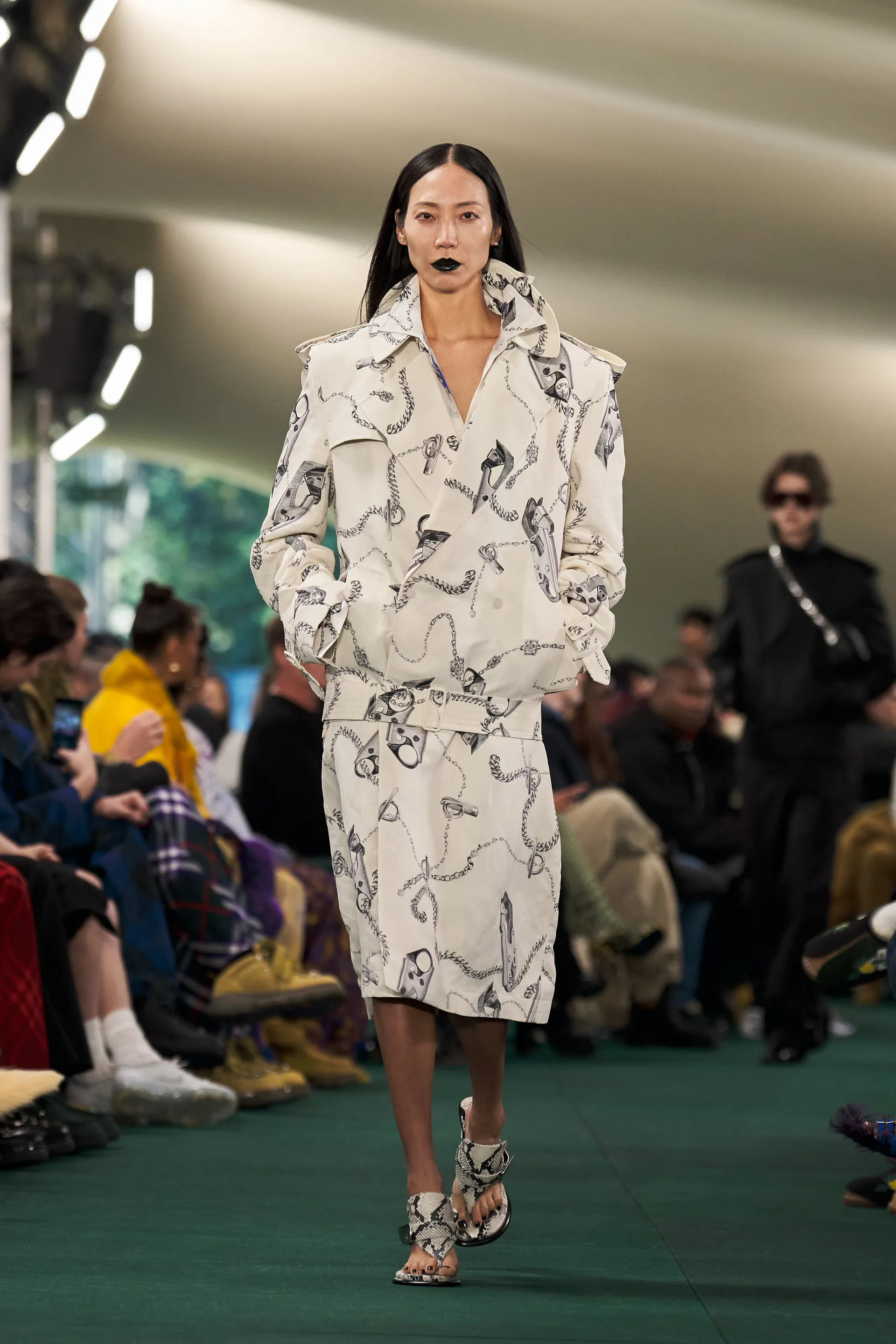 Лі, автор революції аксесуарів Bottega Veneta, додає акцентних деталей і для Burberry. Сумки з масивними карабінами, чоботи з металевими пряжками, масивні ремені з логотипом бренду, сабо зі стразами та в’єтнамки на підборах мають усі шанси стати it-речами в майбутньому сезоні.