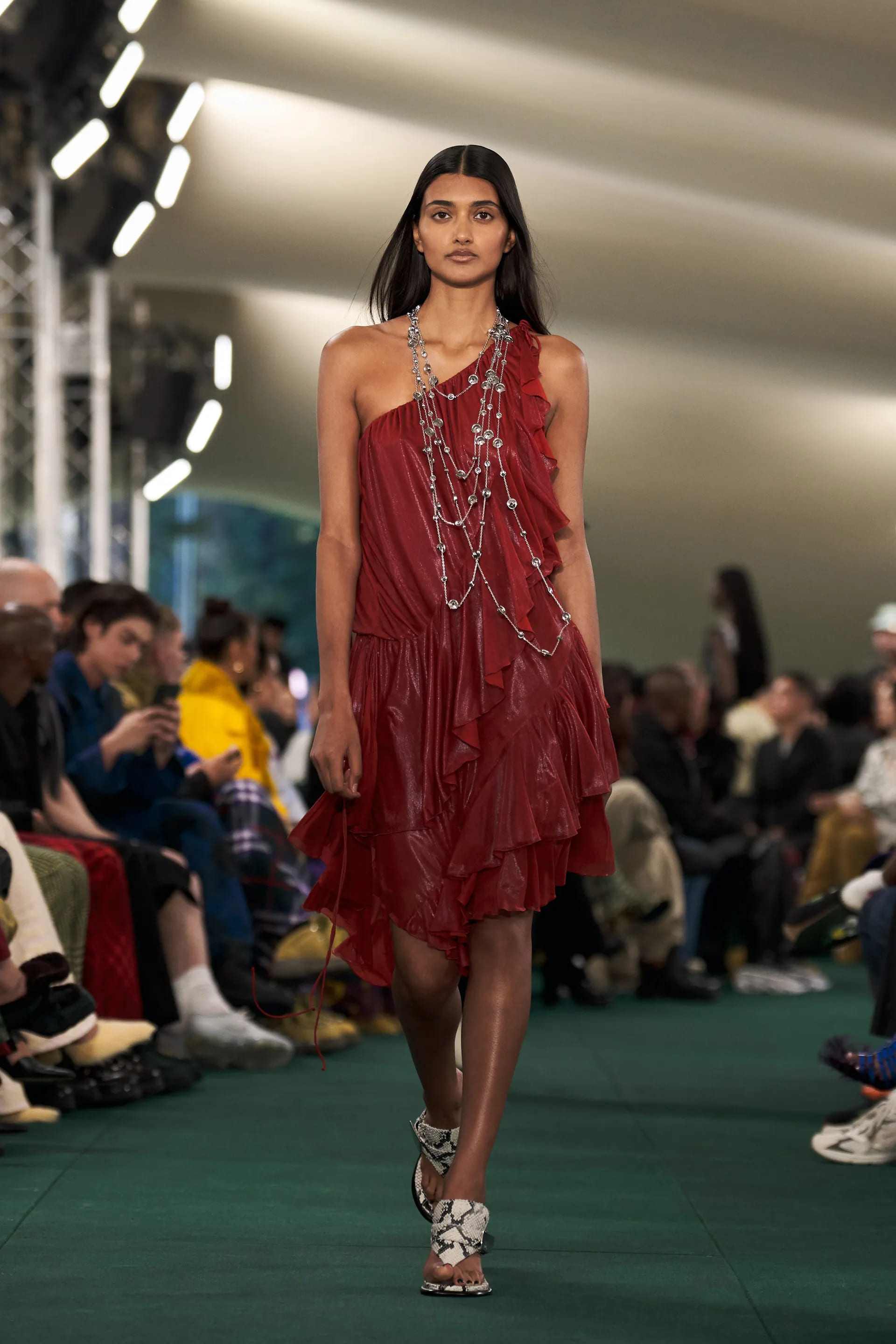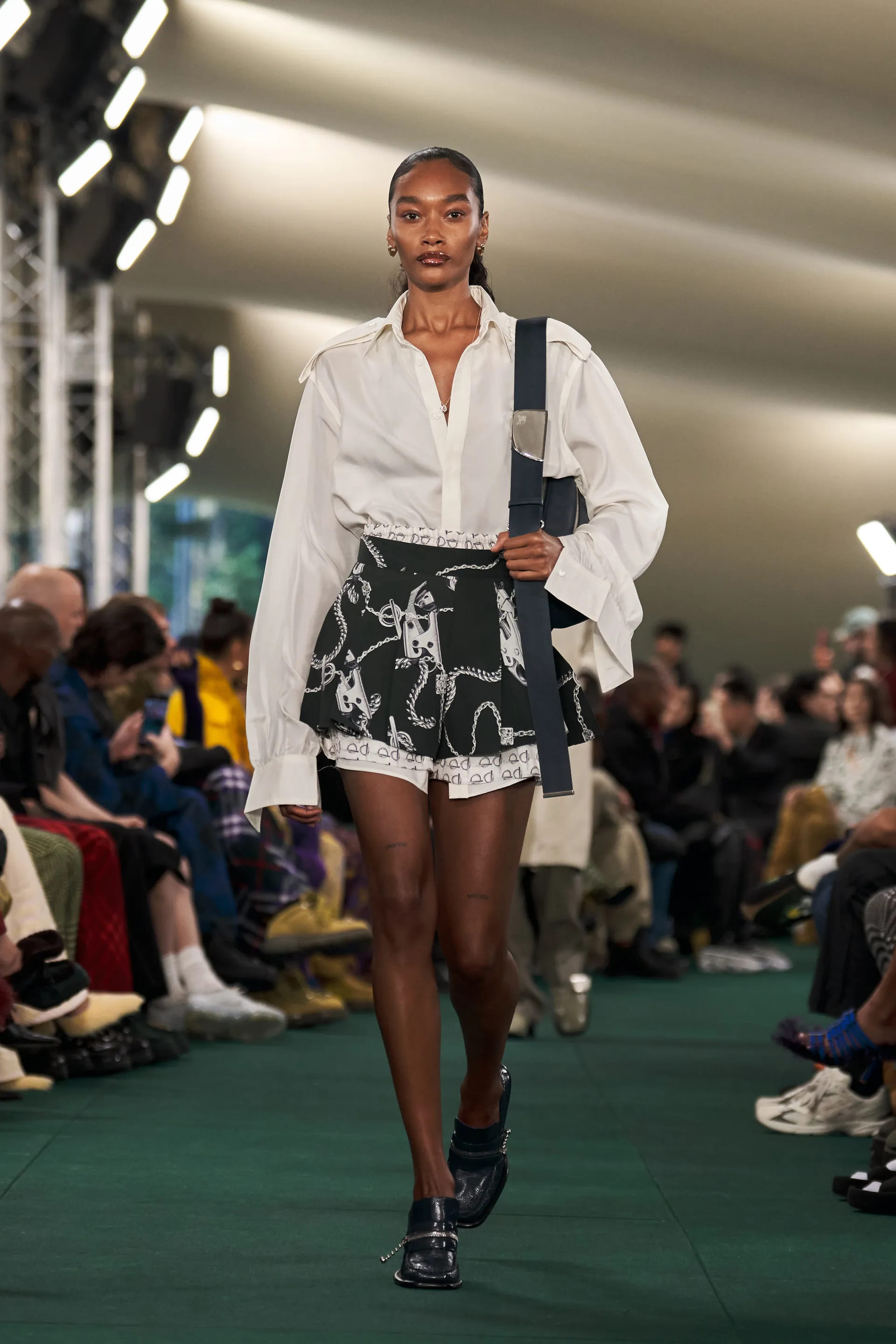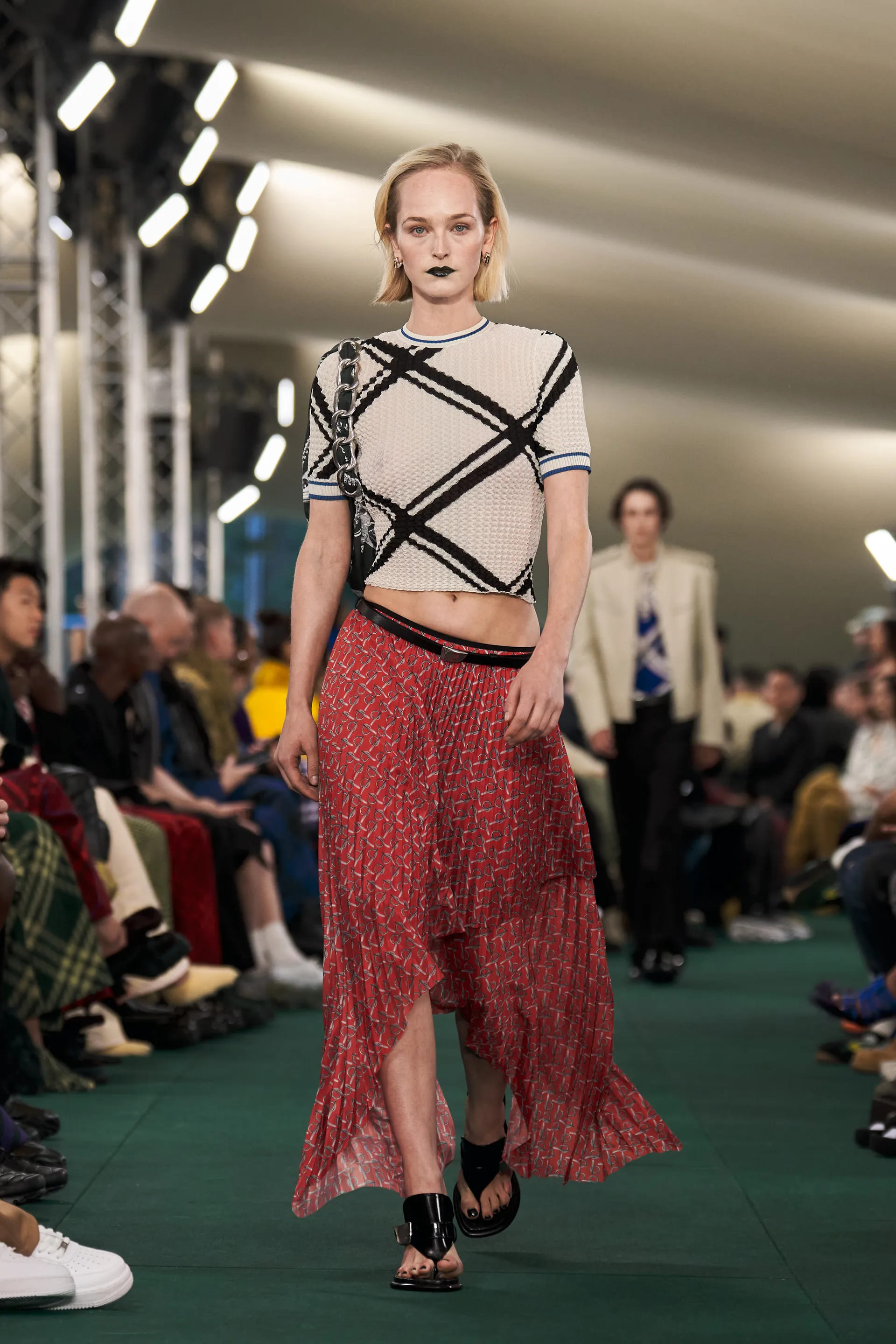 Лі, автор революції аксесуарів Bottega Veneta, додає акцентних деталей і для Burberry. Сумки з масивними карабінами, чоботи з металевими пряжками, масивні ремені з логотипом бренду, сабо зі стразами та в’єтнамки на підборах мають усі шанси стати it-речами в майбутньому сезоні.