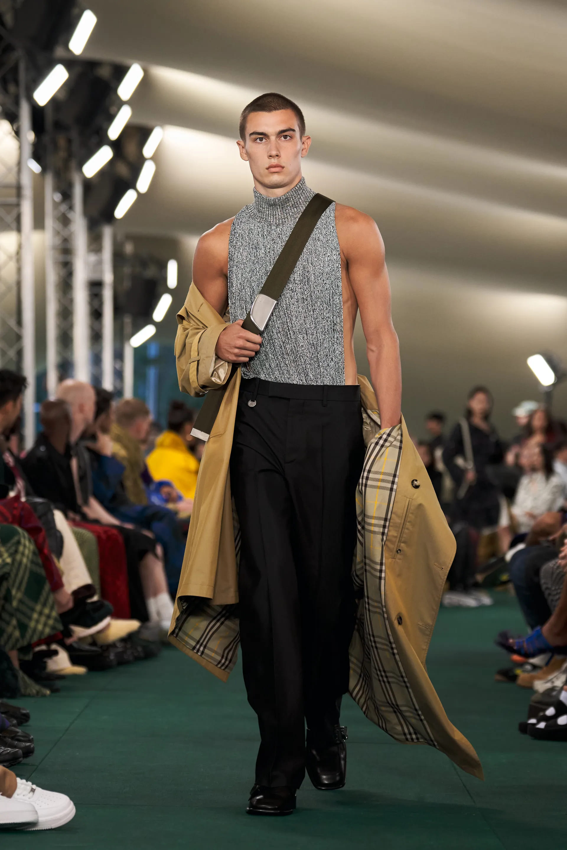У новому сезоні Деніел Лі привносить Burberry більш свіжих і молодих акцентів. Безрукавки з трикотажу, байкерські куртки, спідниці з рваними краями та асиметричні силуети – дизайнер ділиться унікальним баченням ДНК модного Будинку, позираючи на сучасні тенденції та запити модної спільноти.