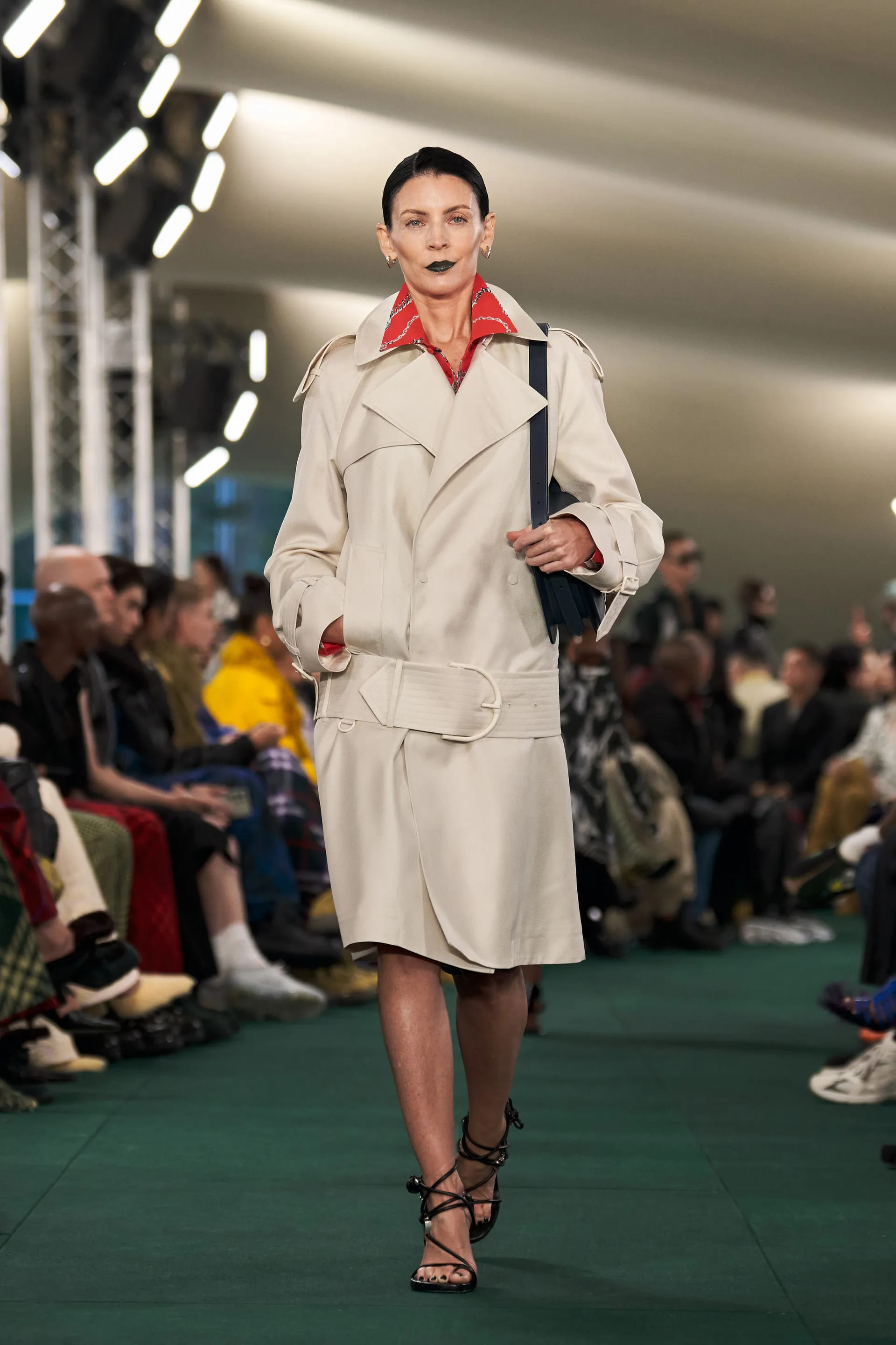 Увага fashion-публіки щонайбільше була прикута до змін крою культового тренчу Burberry. Дизайнер обережно відійшов від звичного силуету та картатого принту: натомість знакова модель отримала подвійний комір і занижену лінію поясу.