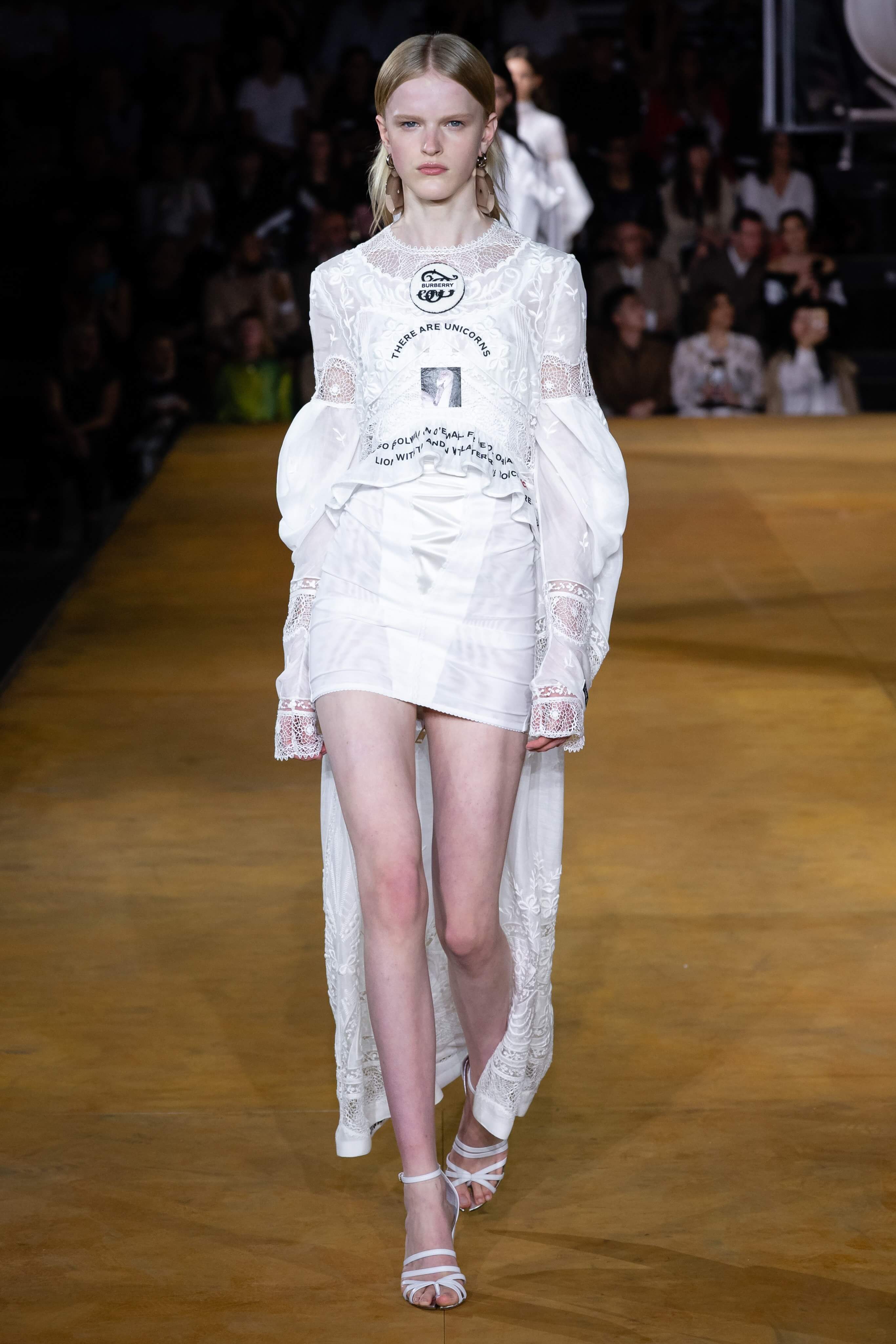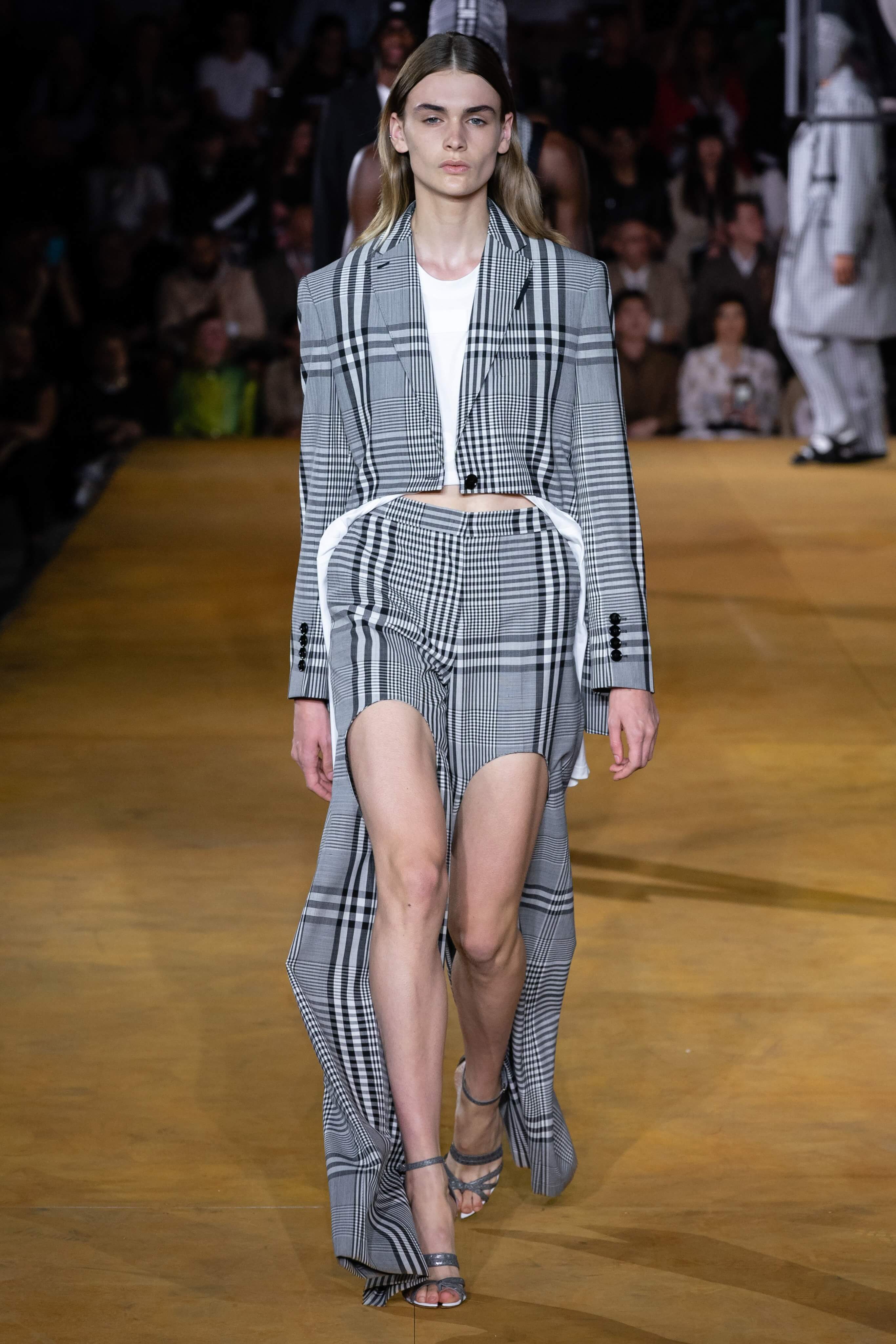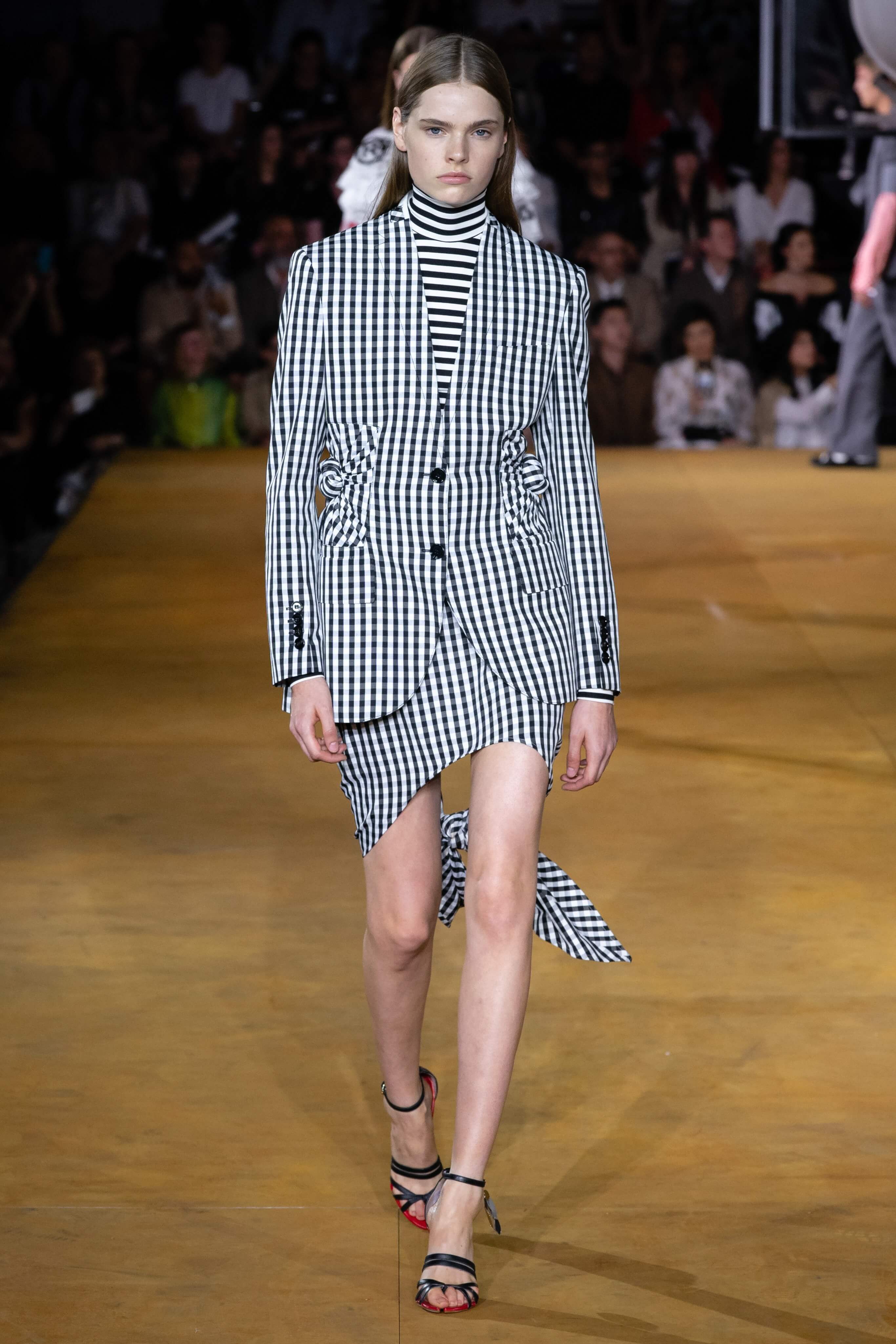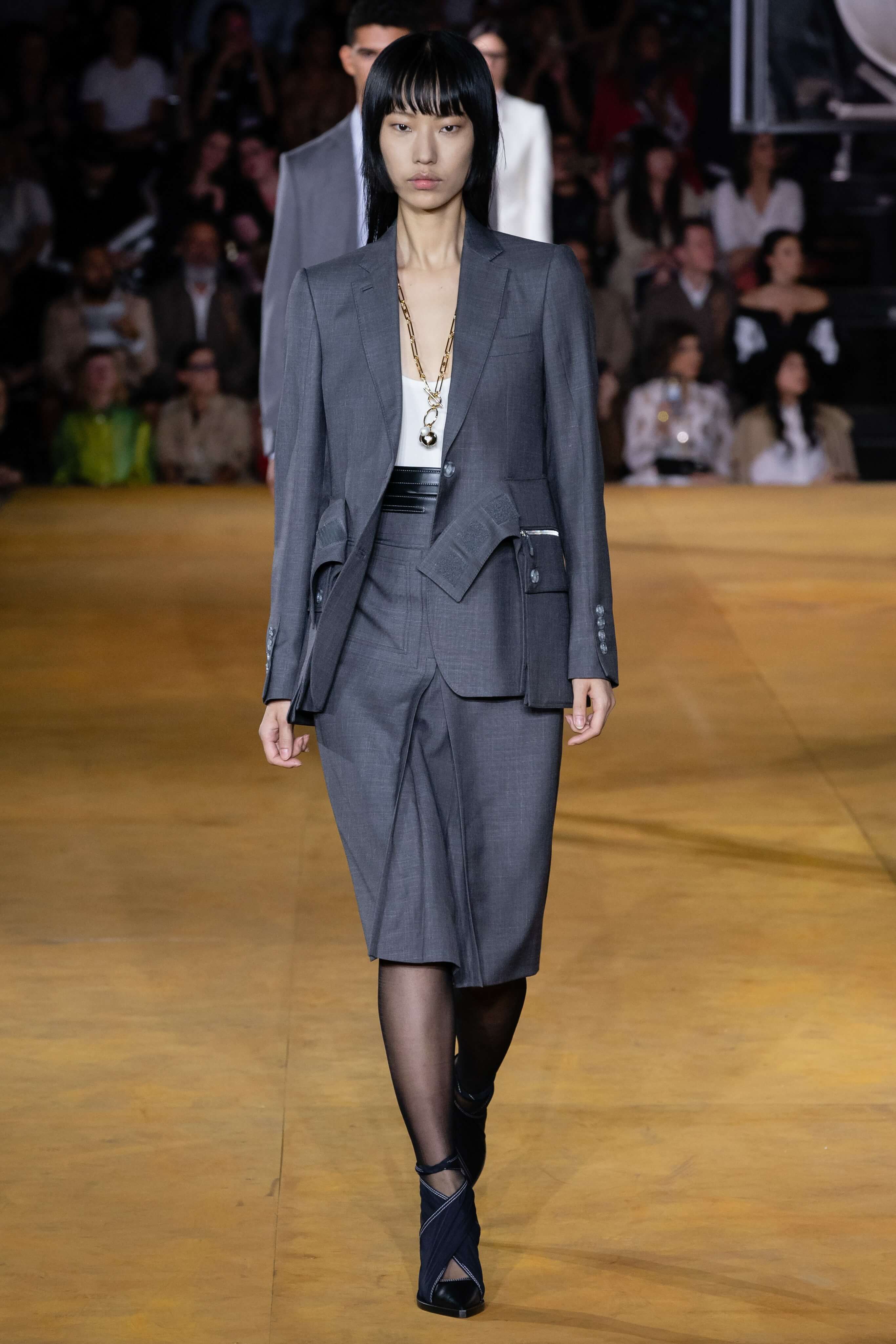 В весенней коллекции необычных и приковывающих взгляд вещей по-настоящему много: это и строгие комбинезоны с неожиданной шелковой бахромой на манжетах, и бейсбольные куртки-бомберы с застёжками на воротах, и вторящие их расцветке мини-сумочки, и удивительной красоты тренчи из хлопка с элементами шитого кружева мышино-серого цвета. Знаковыми для Burberry под началом Рикардо Тиши стали блузы из шелковых платков — в этот раз дизайнер снова умудрился создать нетривиальные силуэты из, казалось бы, однообразных инструментов. Общие стилистические решения коллекции отсылают ум к моде викторианской Англии середины 19 века, когда Томас Берберри изобрёл и модернизировал габардин и знаменитый тренч.