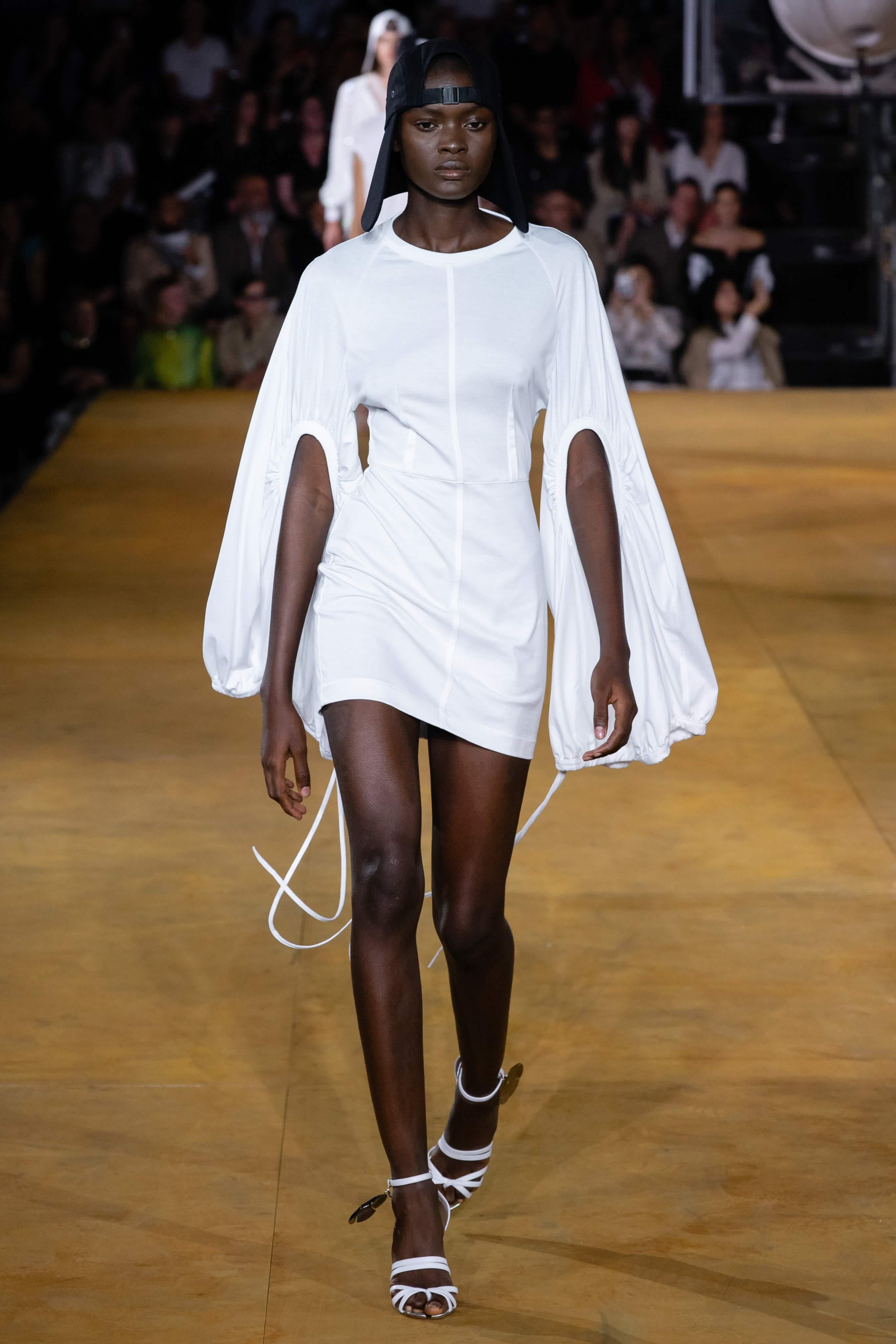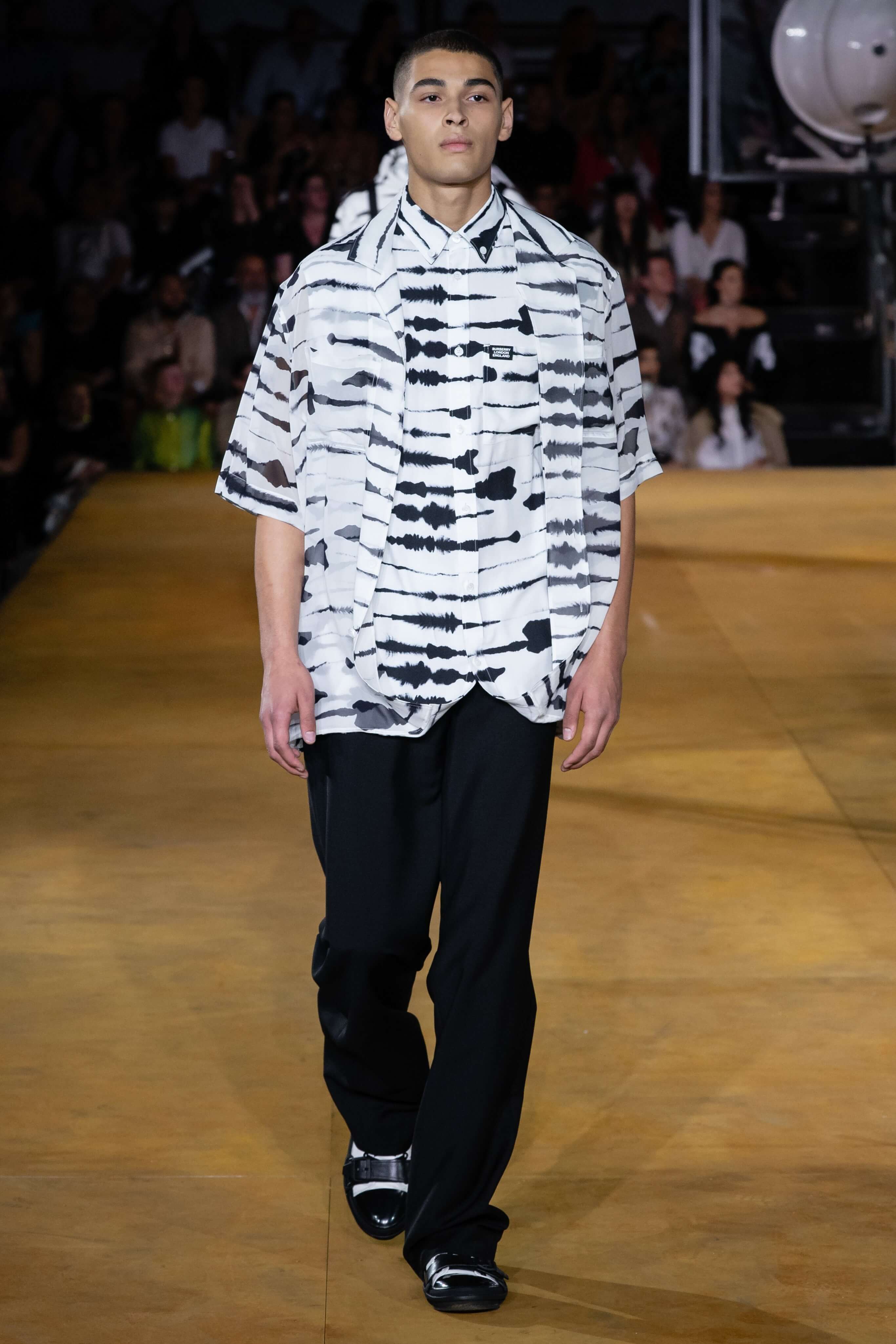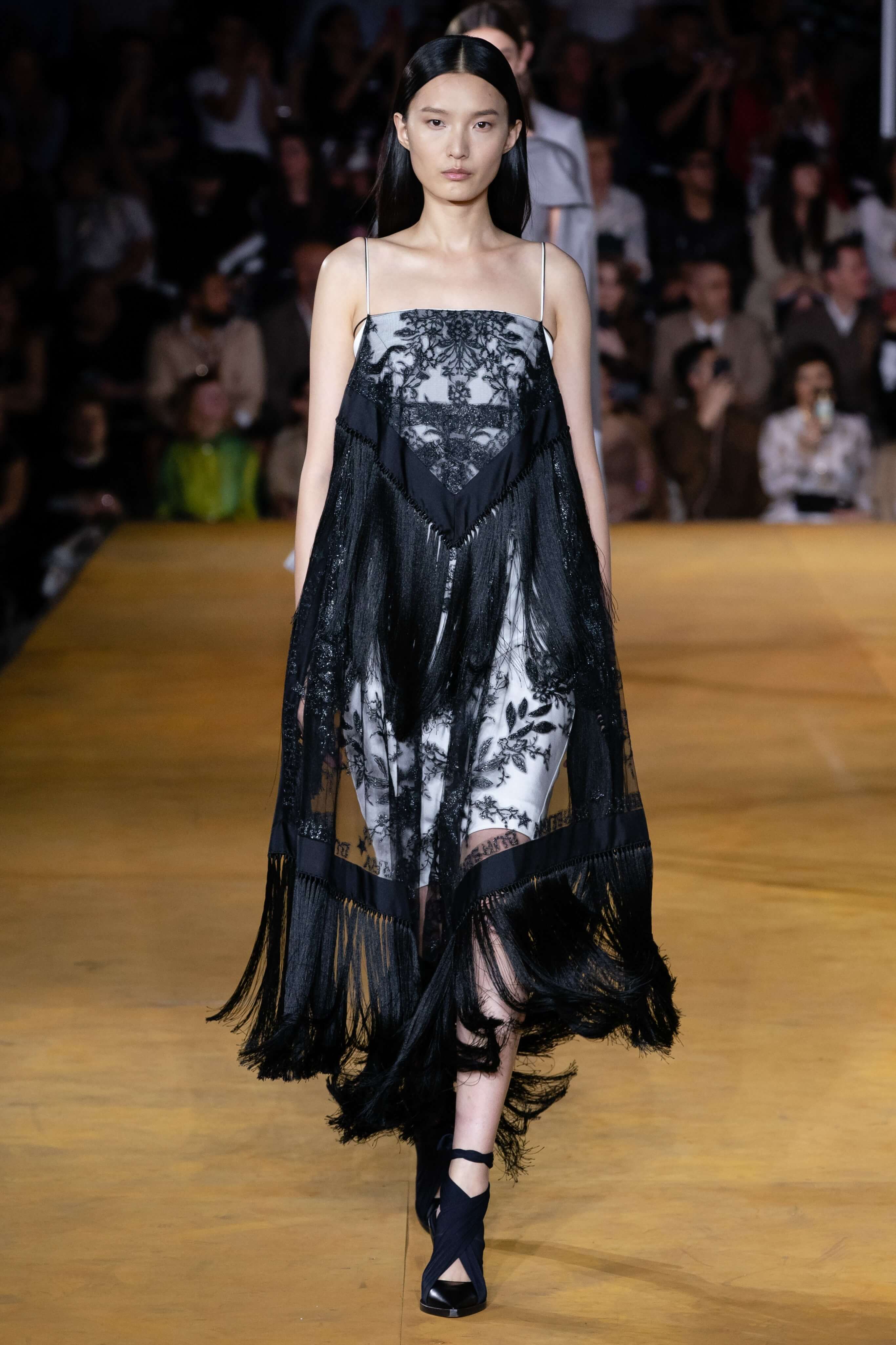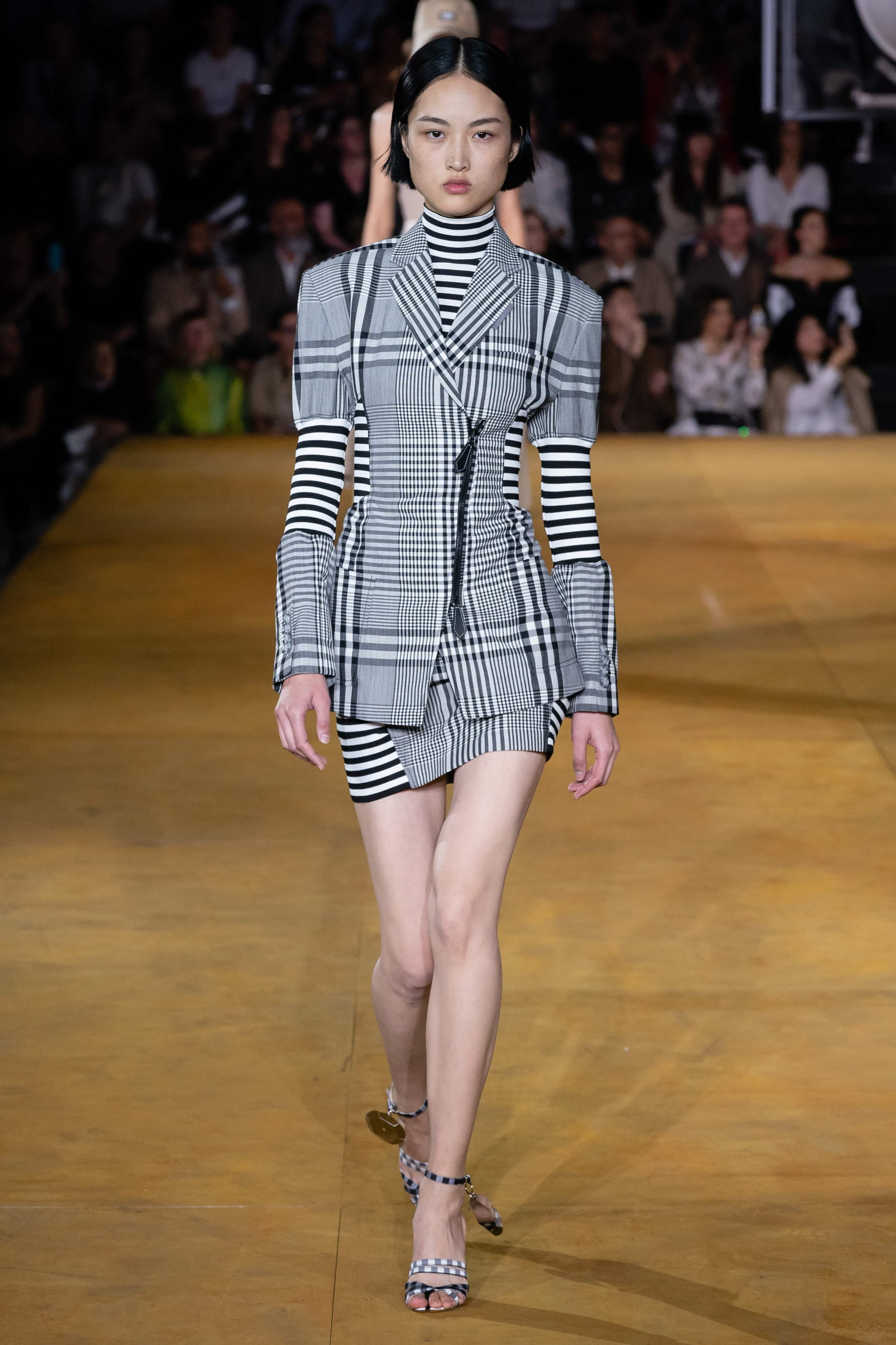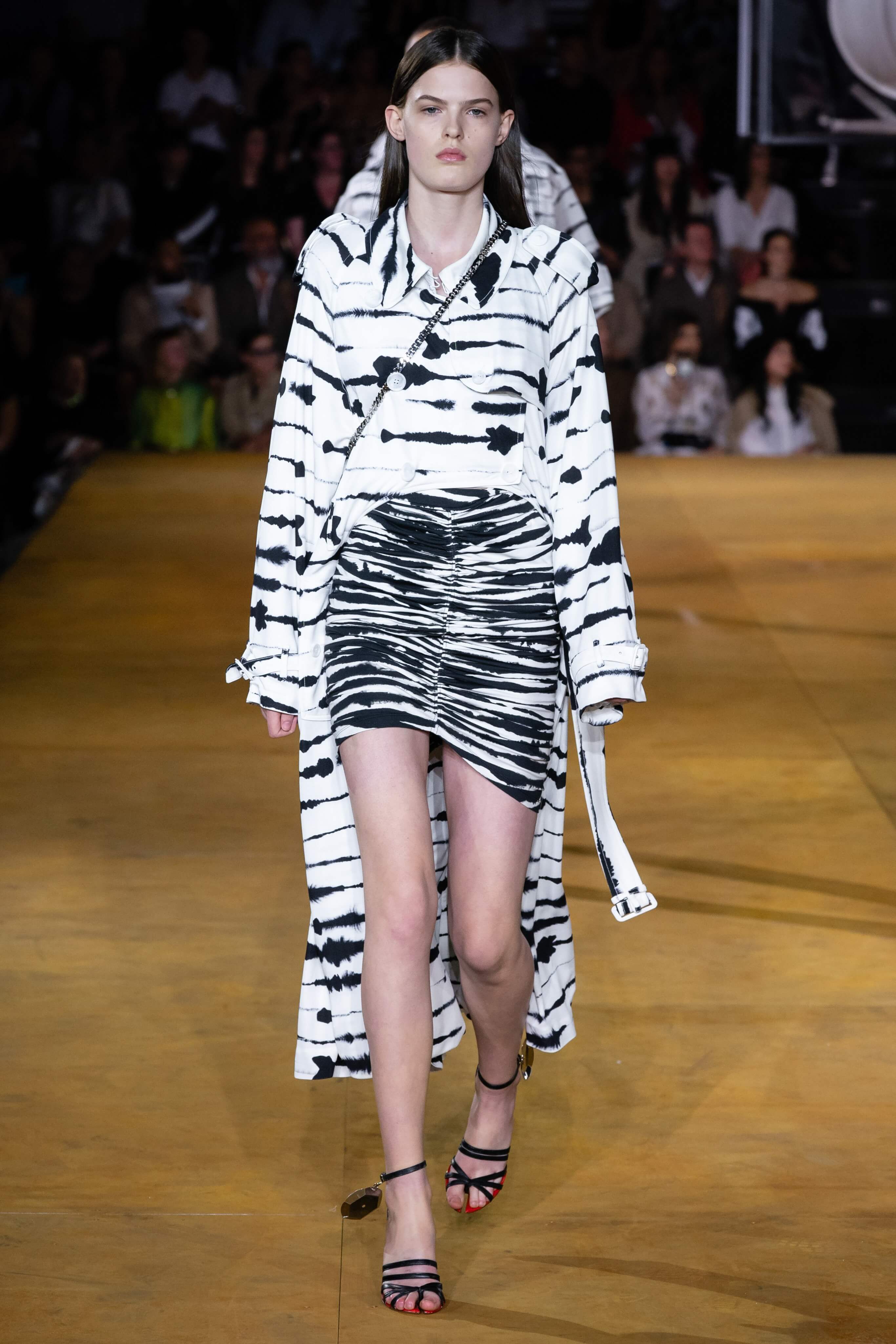 В весенней коллекции необычных и приковывающих взгляд вещей по-настоящему много: это и строгие комбинезоны с неожиданной шелковой бахромой на манжетах, и бейсбольные куртки-бомберы с застёжками на воротах, и вторящие их расцветке мини-сумочки, и удивительной красоты тренчи из хлопка с элементами шитого кружева мышино-серого цвета. Знаковыми для Burberry под началом Рикардо Тиши стали блузы из шелковых платков — в этот раз дизайнер снова умудрился создать нетривиальные силуэты из, казалось бы, однообразных инструментов. Общие стилистические решения коллекции отсылают ум к моде викторианской Англии середины 19 века, когда Томас Берберри изобрёл и модернизировал габардин и знаменитый тренч.
