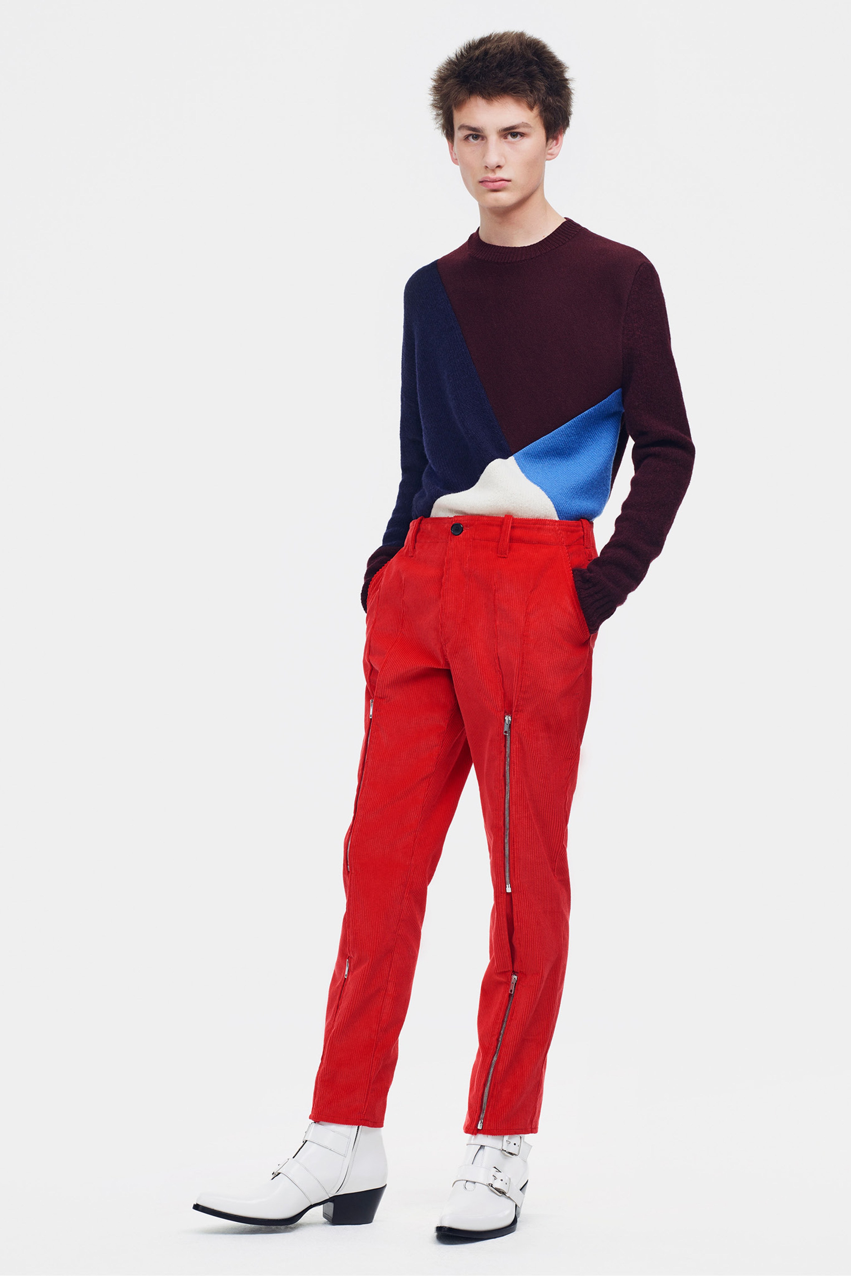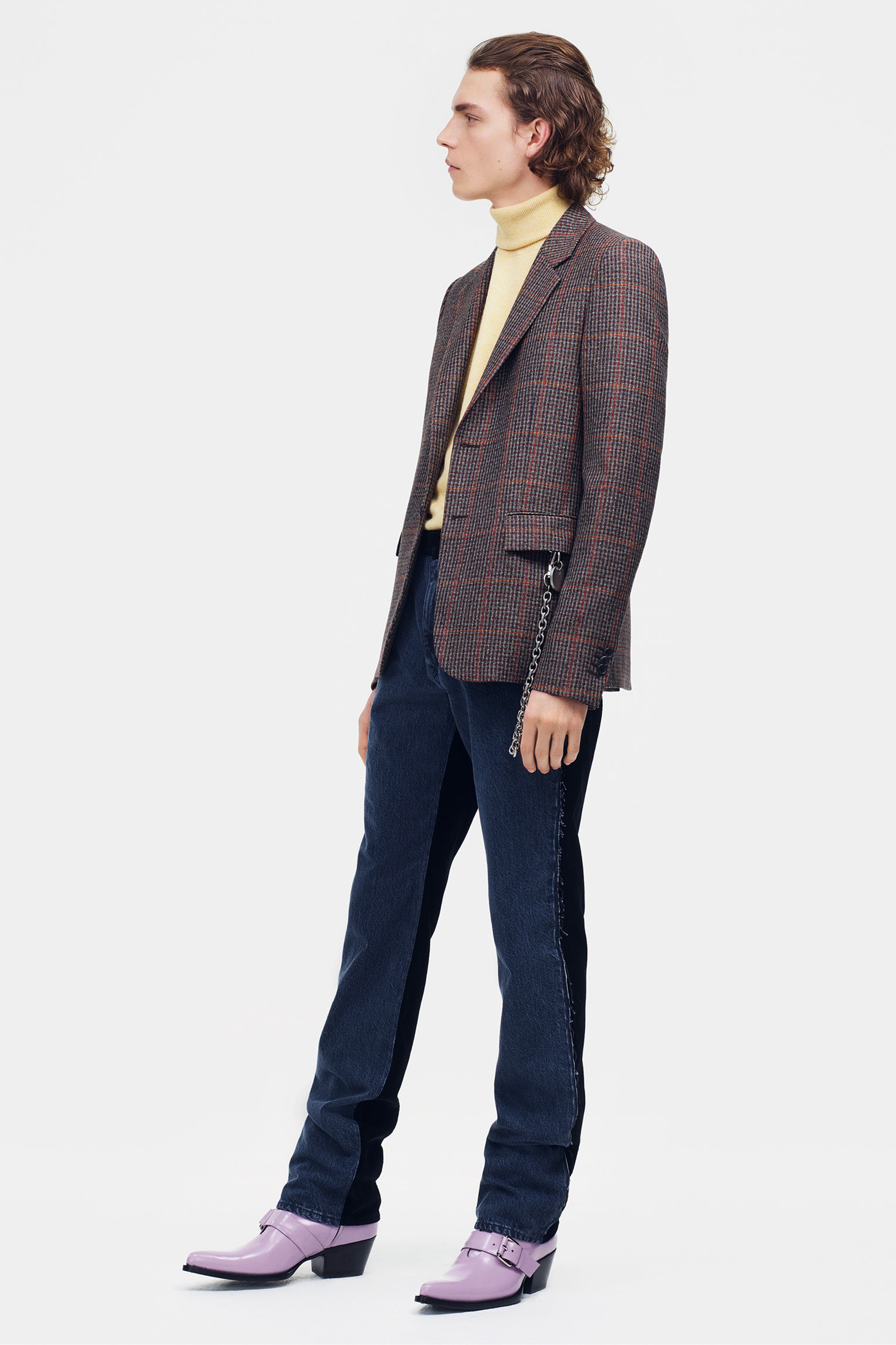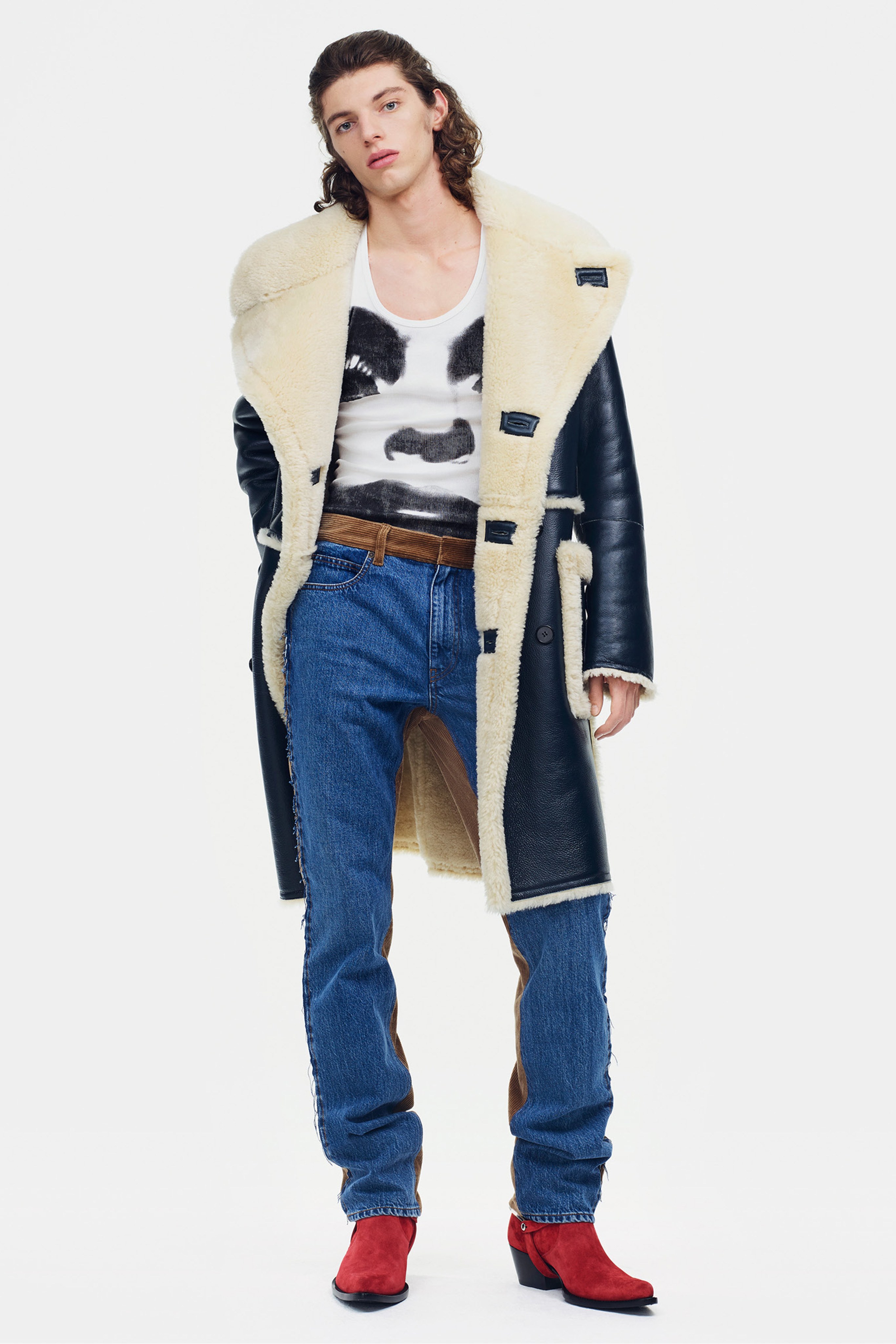 Жакеты с массивными лацканами и видимыми швами напоминают самодельные, сшитые вручную вещи американских иммигрантов, которые не могли позволить себе купить одежду в магазине. Отсылки к американской истории проявляются в джинсах со вставками из кожи, твида и вельвета, а также любимых Симонсом ковбойских ботинках в новых интерпретациях. Некоторые образы вдохновлены 1970-ми годами: в коллекции есть дубленки, бархатные штаны клеш и деконструированные платья из легкого хлопка.