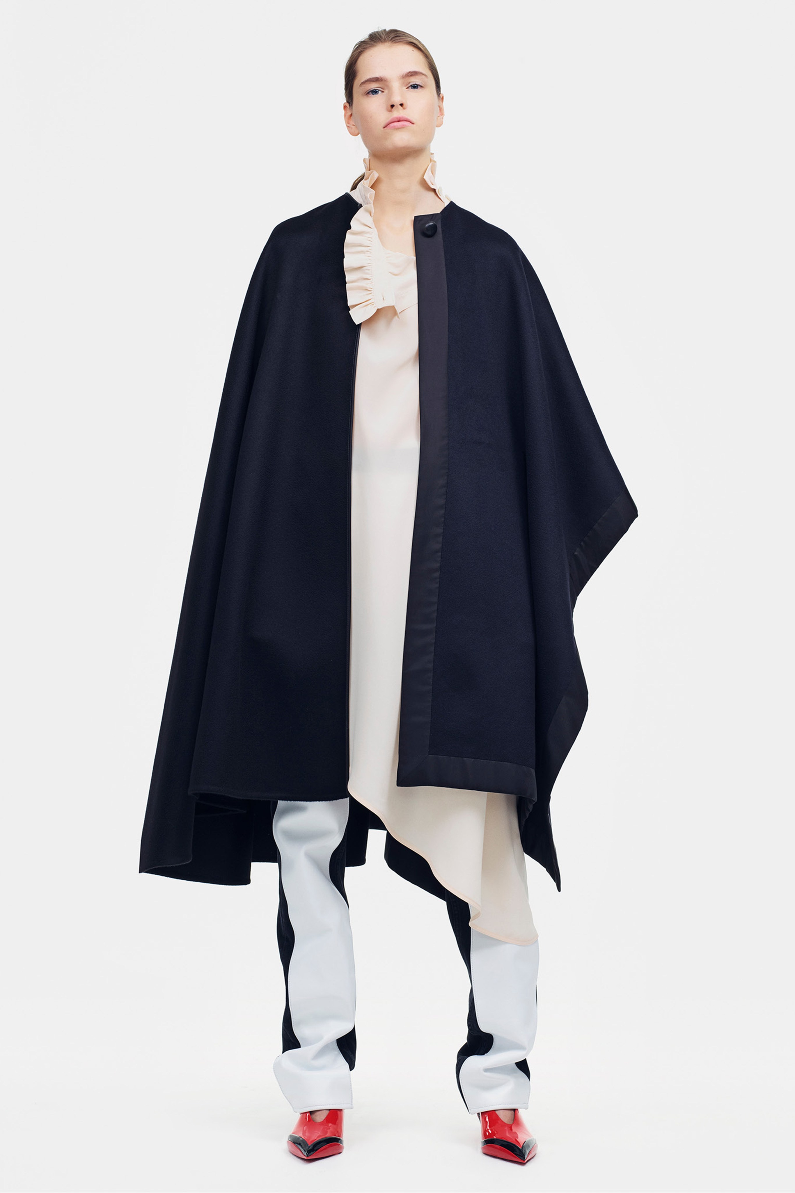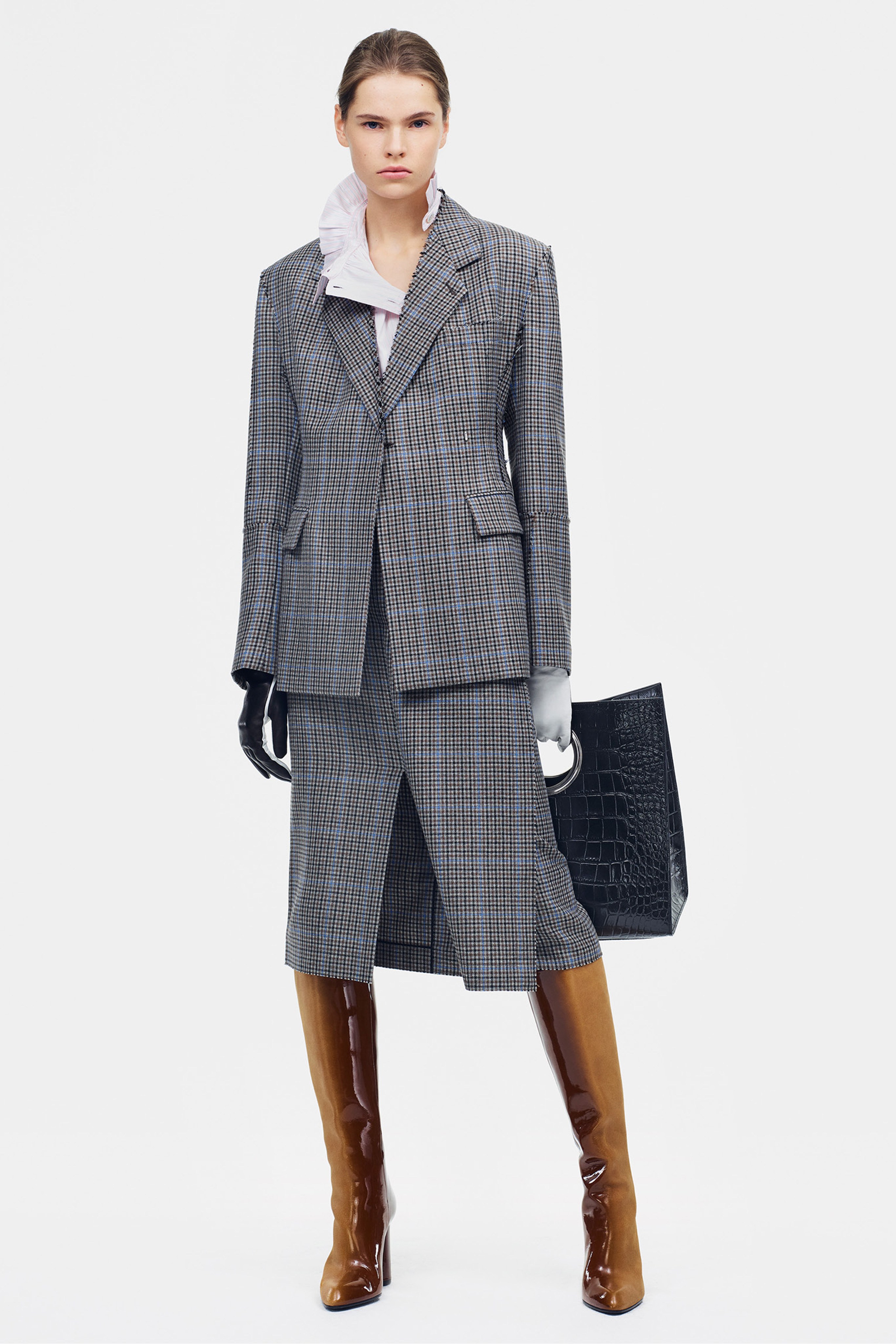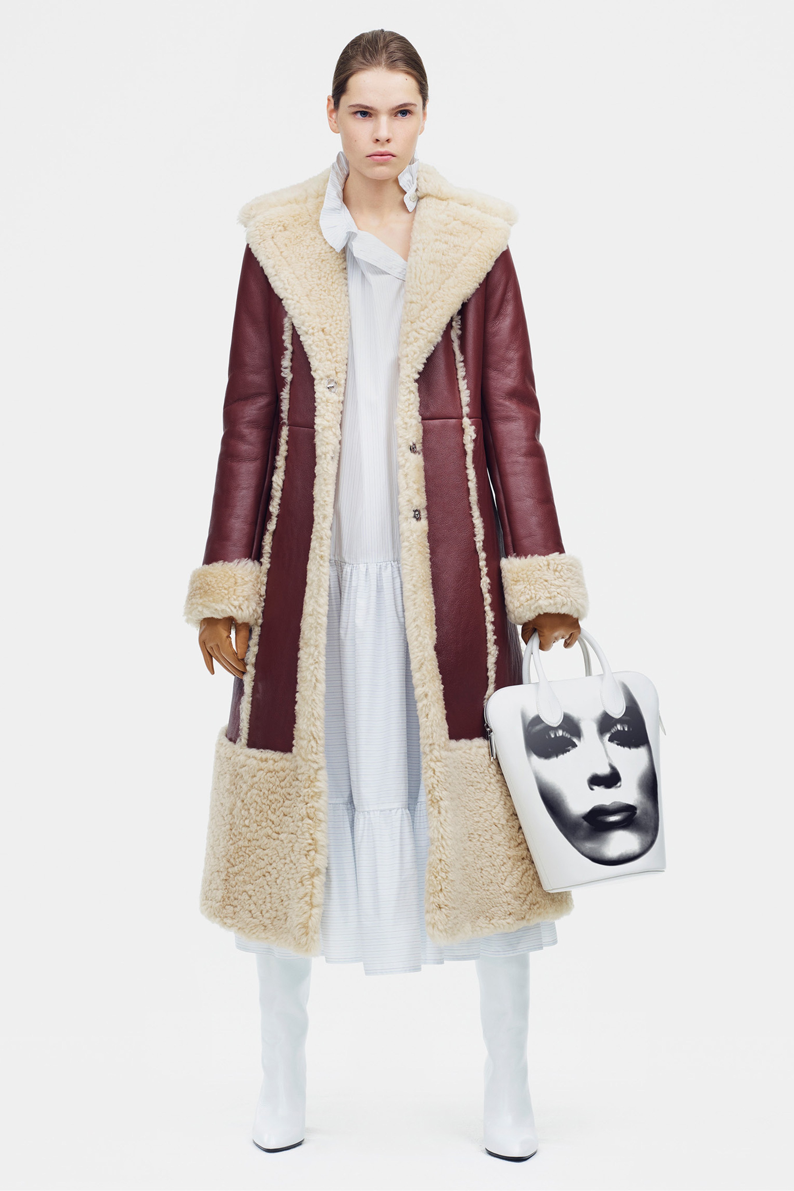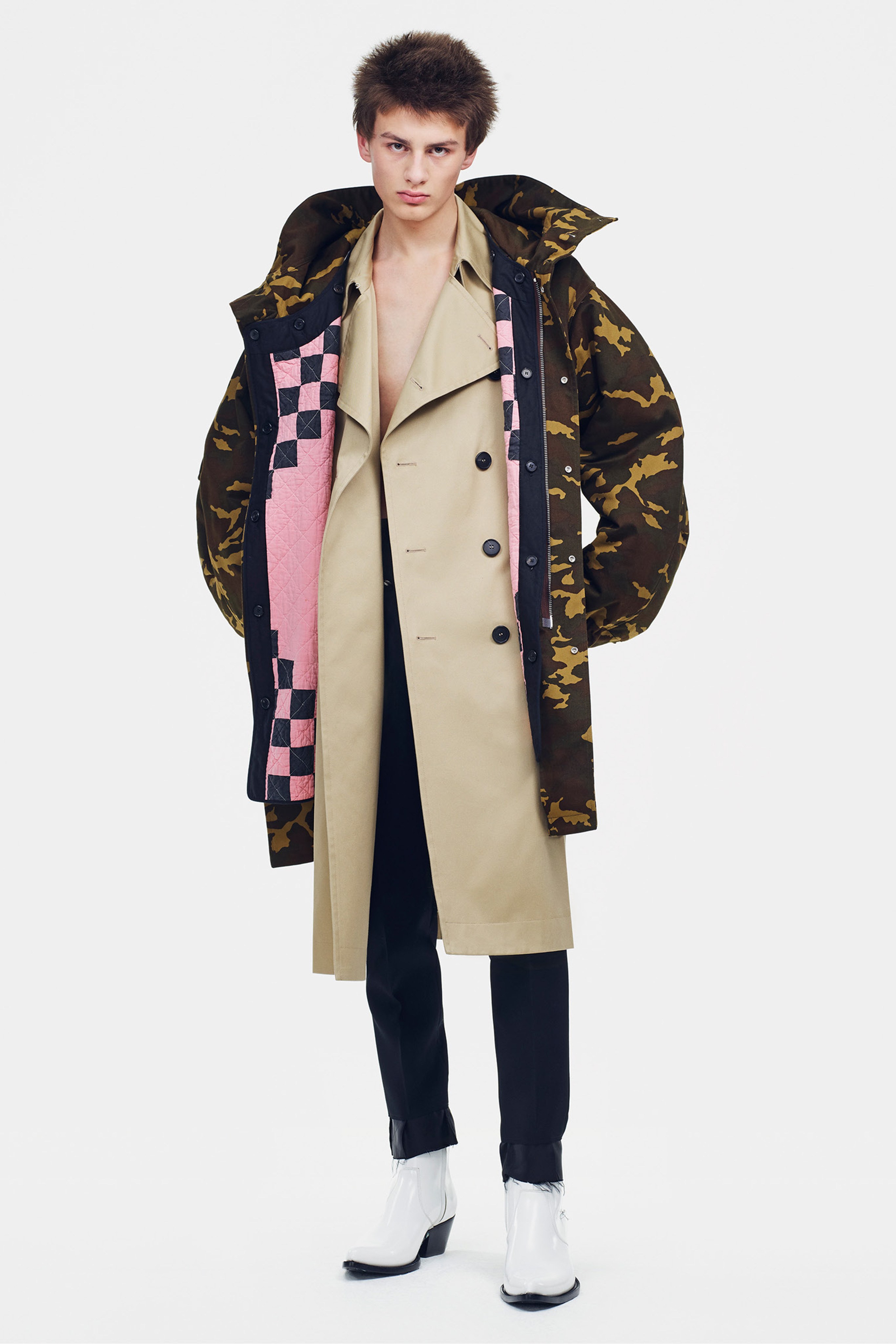В новой коллекции Раф Симонс обращается к классике и продолжает исследовать “американу". Тренчи и пальто из коллекции Pre-Fall 2019 вдохновлены архивными вещами бренда: Симонс деконструировал классическую верхнюю одежду, как бы собирая воедино ее случайные детали. Классические силуэты он разбавил фактурными материалами – в коллекции есть пальто из лакированной кожи крокодила и меха снежного леопарда, оба материала - искусственные.