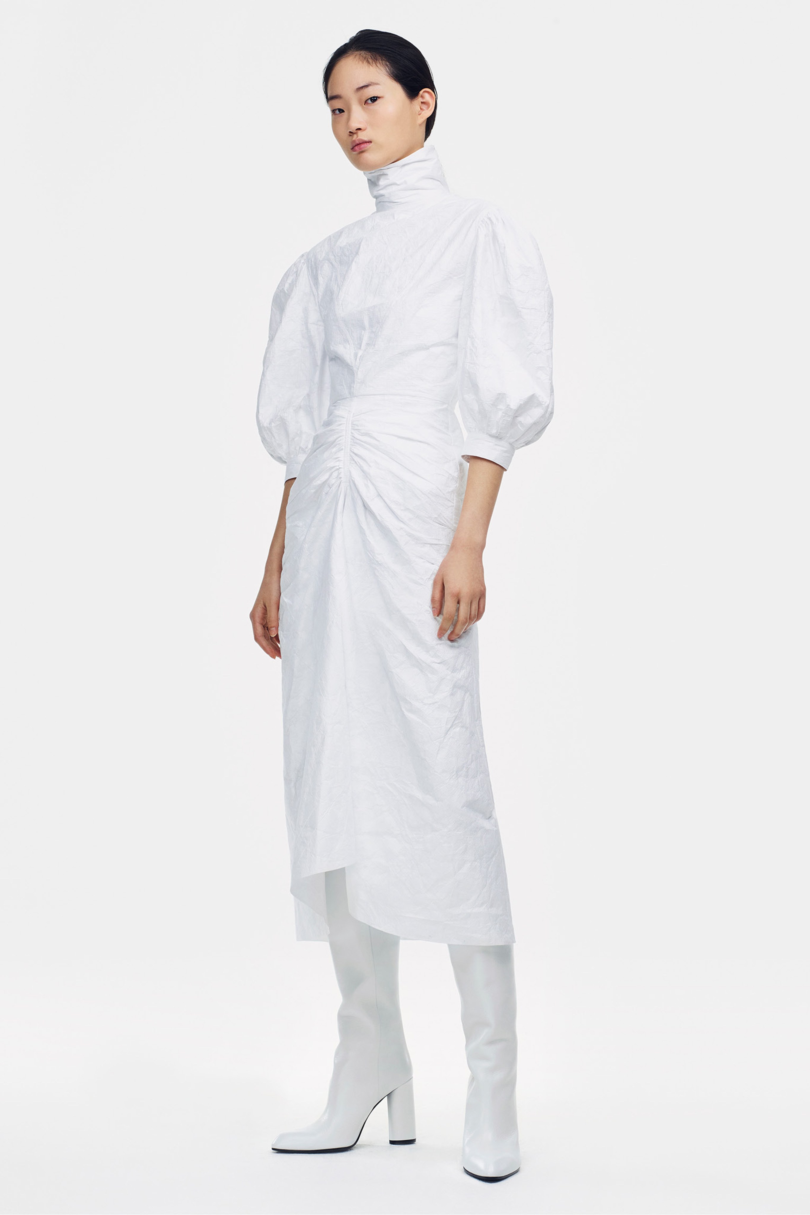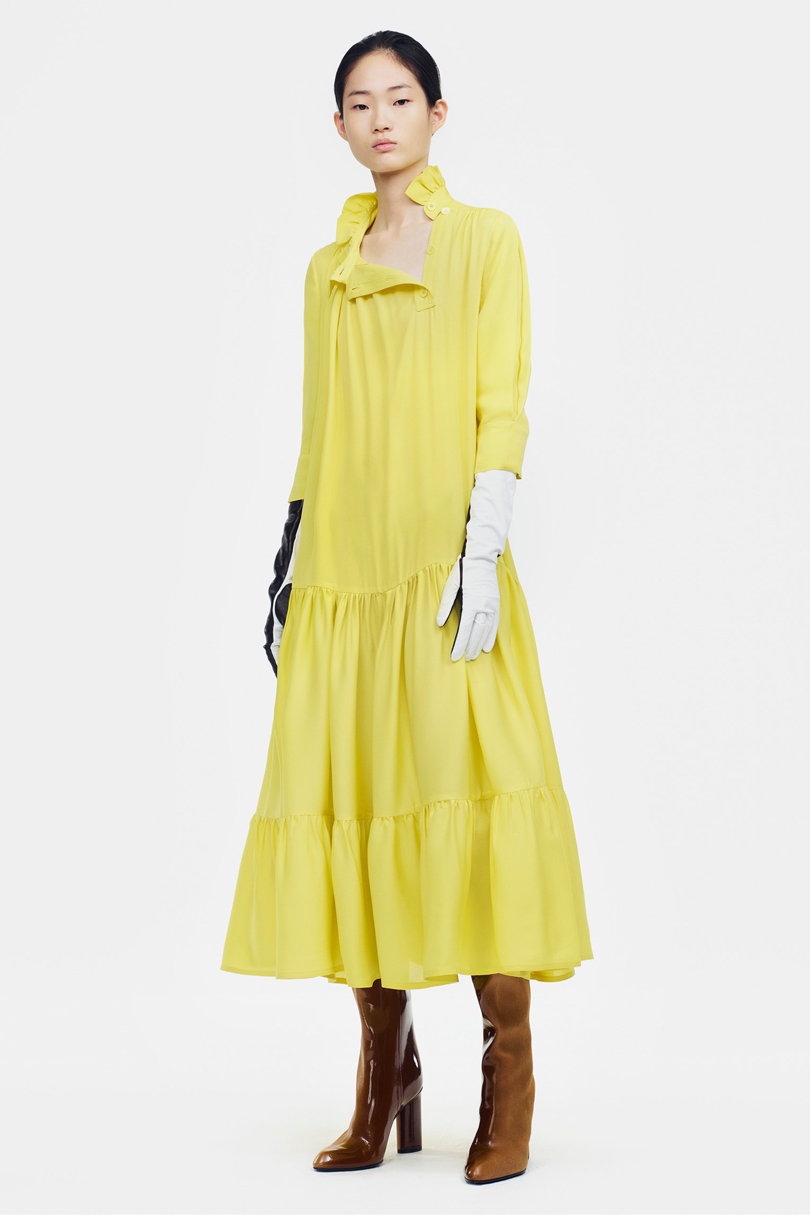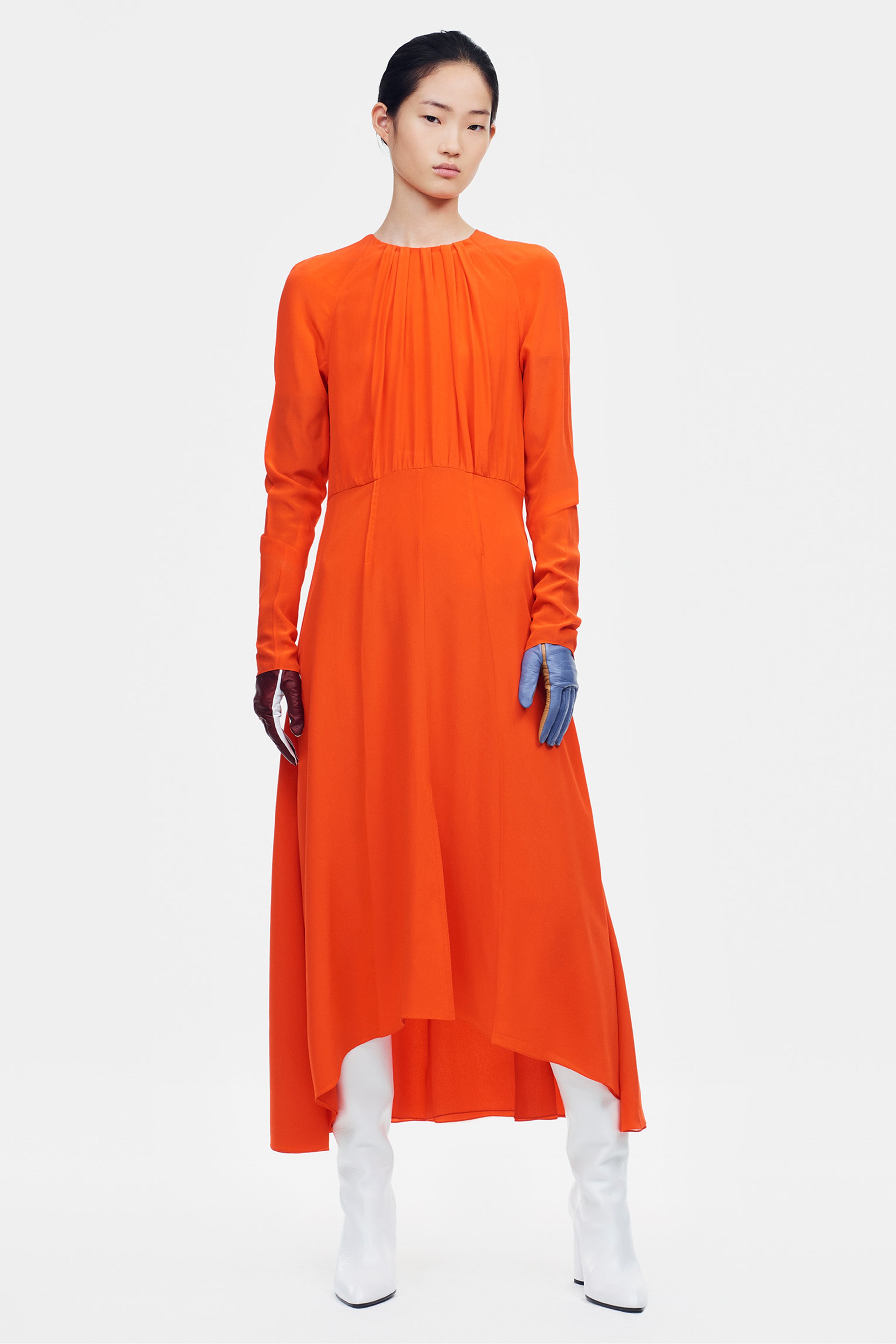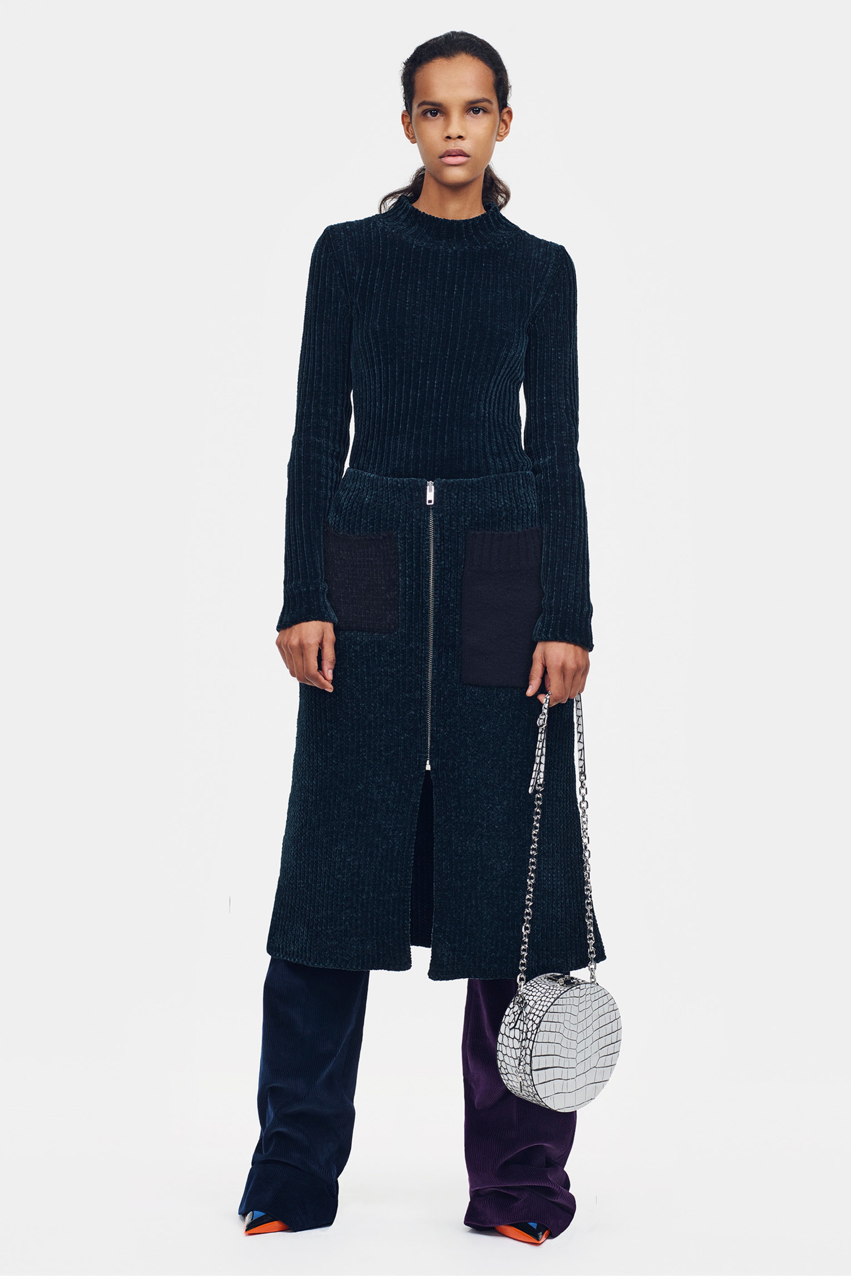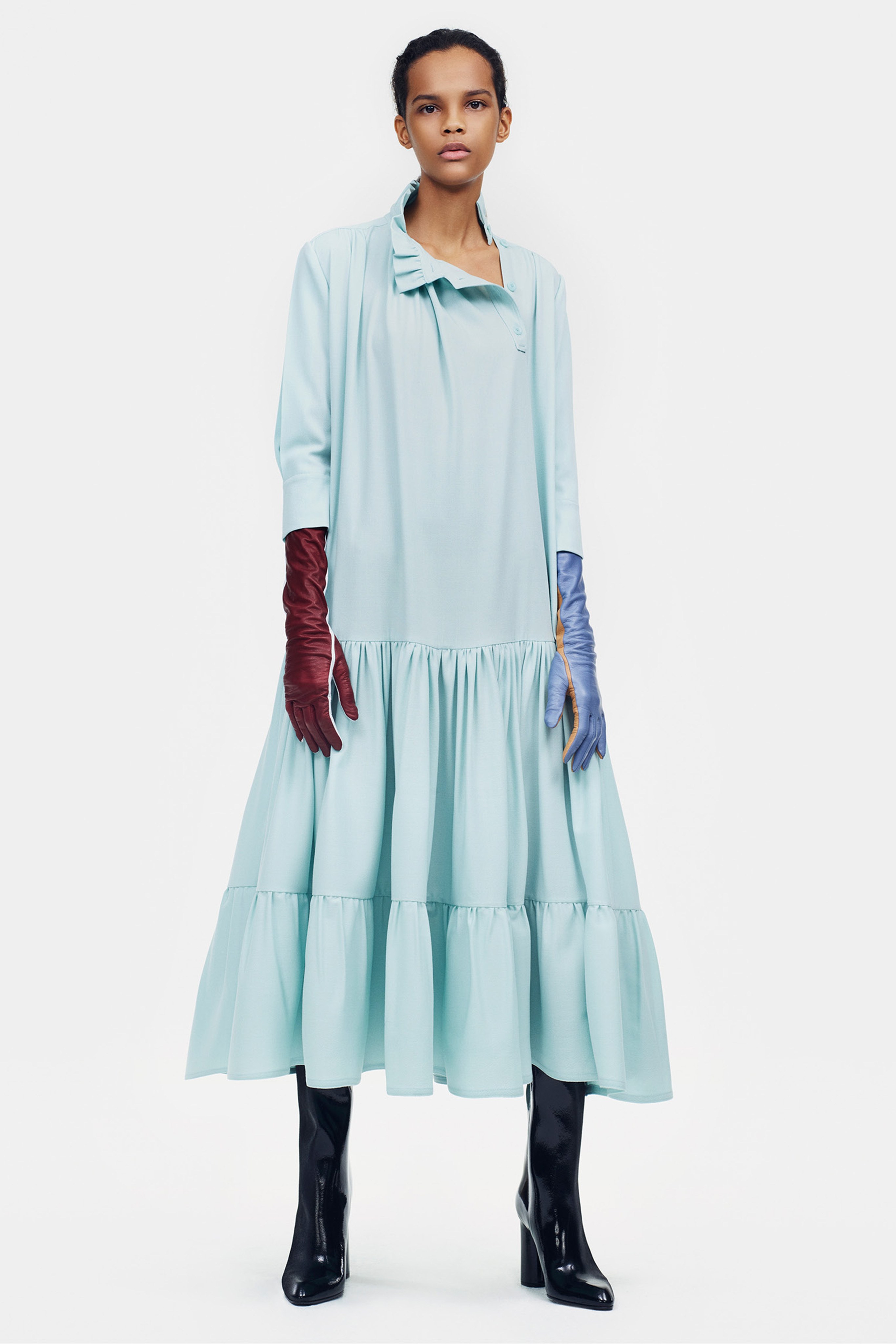 В новой коллекции Раф Симонс обращается к классике и продолжает исследовать “американу". Тренчи и пальто из коллекции Pre-Fall 2019 вдохновлены архивными вещами бренда: Симонс деконструировал классическую верхнюю одежду, как бы собирая воедино ее случайные детали. Классические силуэты он разбавил фактурными материалами – в коллекции есть пальто из лакированной кожи крокодила и меха снежного леопарда, оба материала - искусственные.