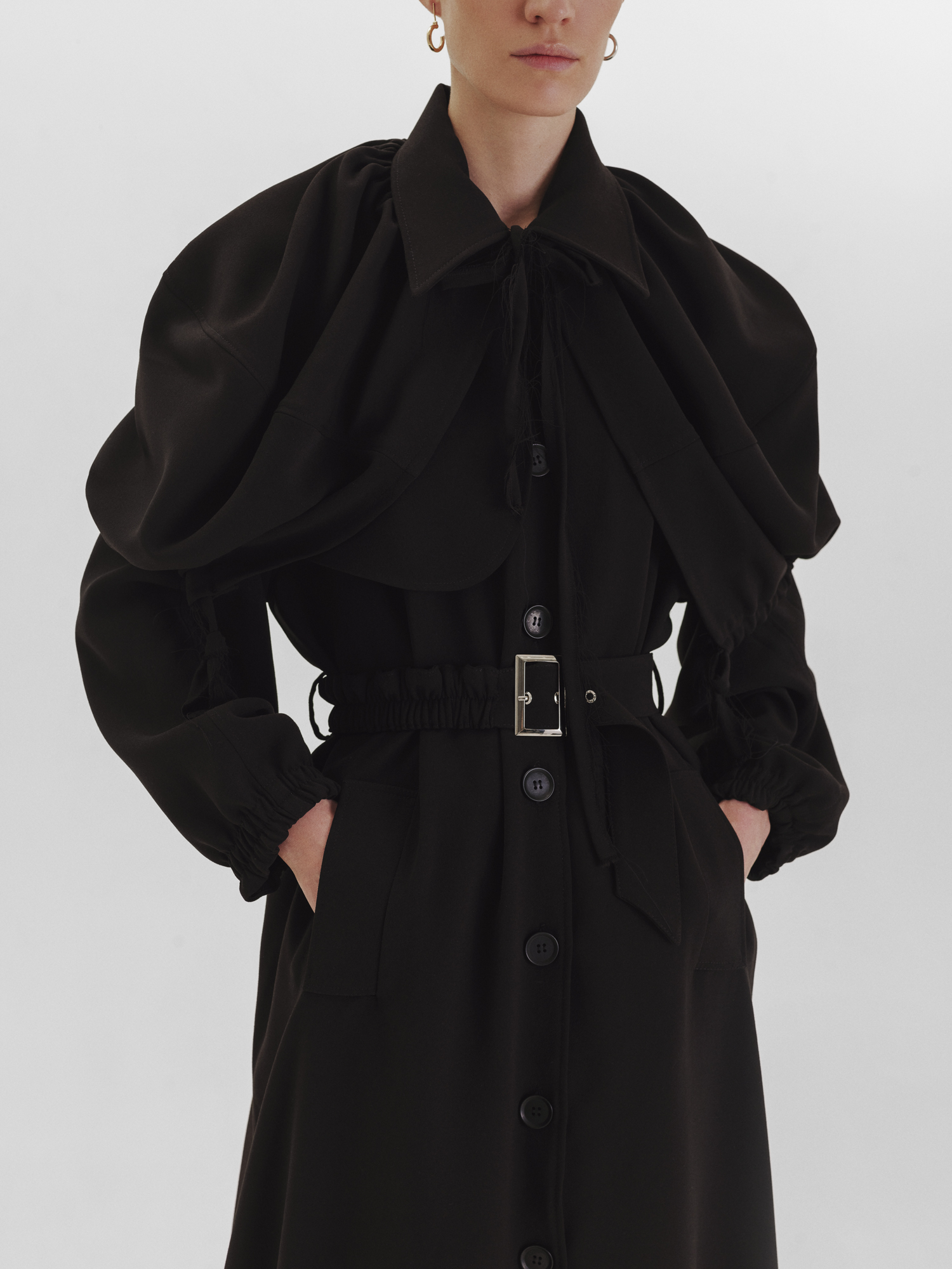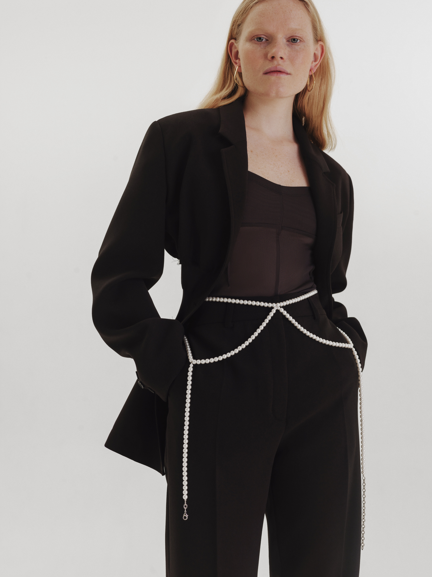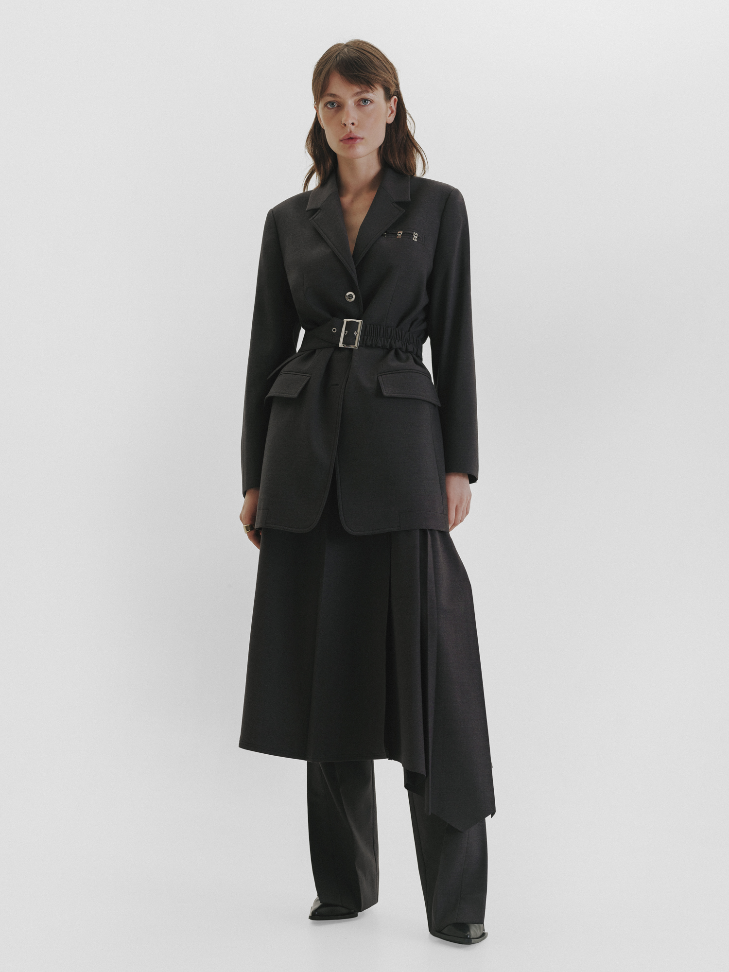 В новой осенне-зимней коллекции дизайнеры бренда Chakshyn противопоставляют фирменный маскулинный крой обязательным предметам современного женского гардероба и отсылкам к офисной униформе, а отправной точкой стала маленькая вселенная офисного здания и место человека в большой корпоративной машине.