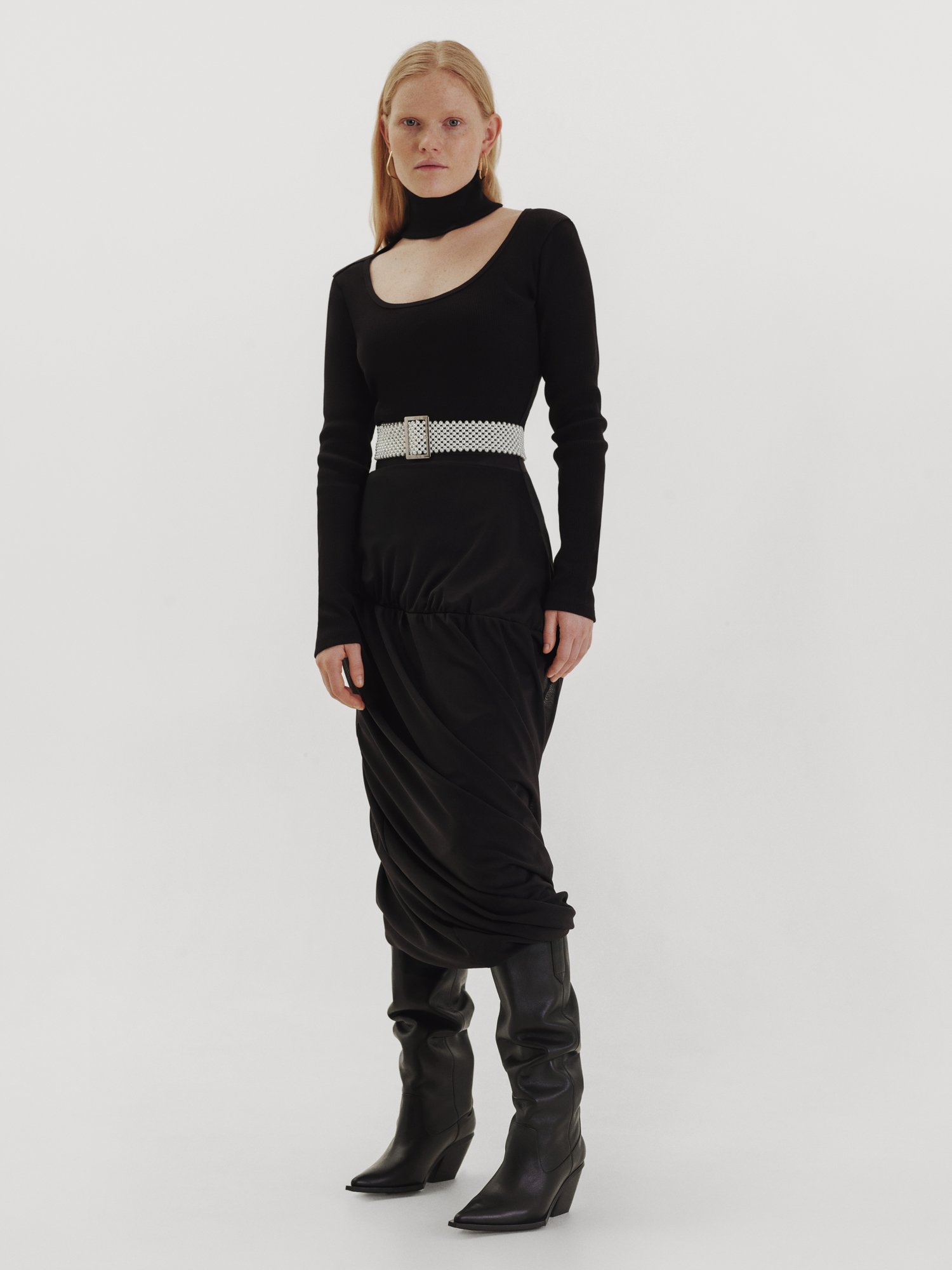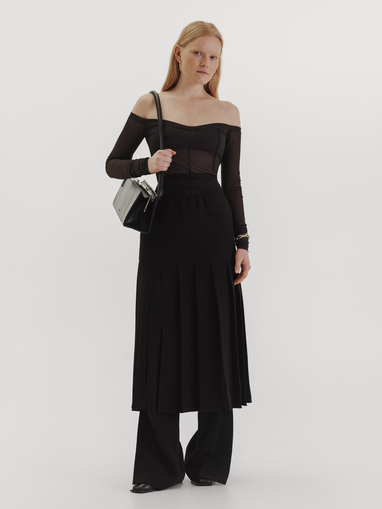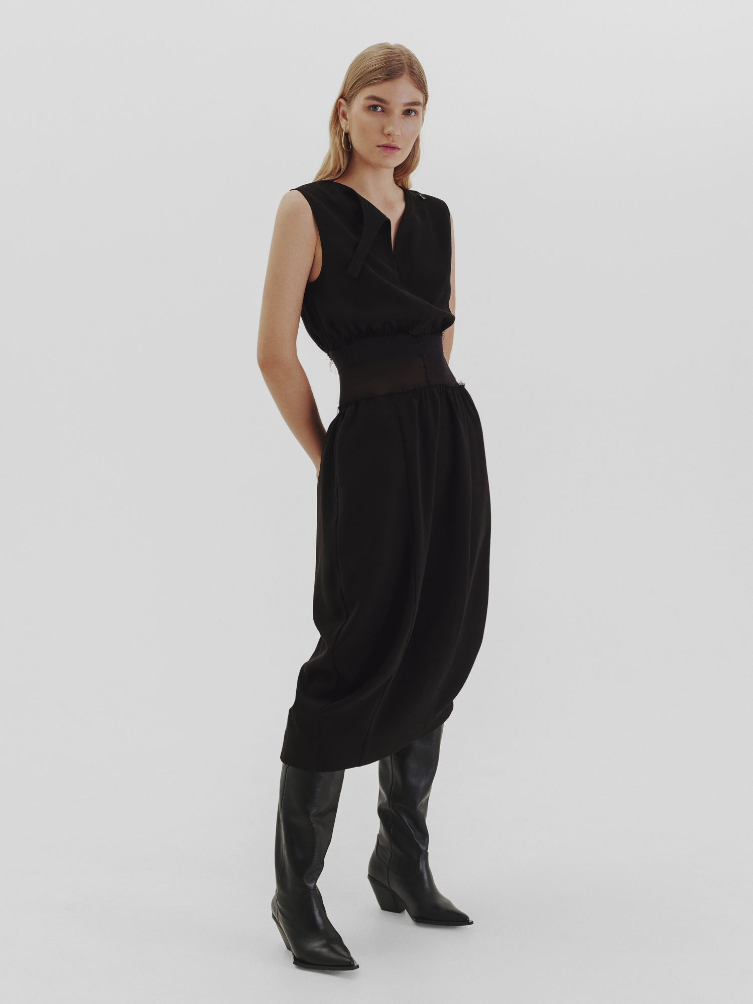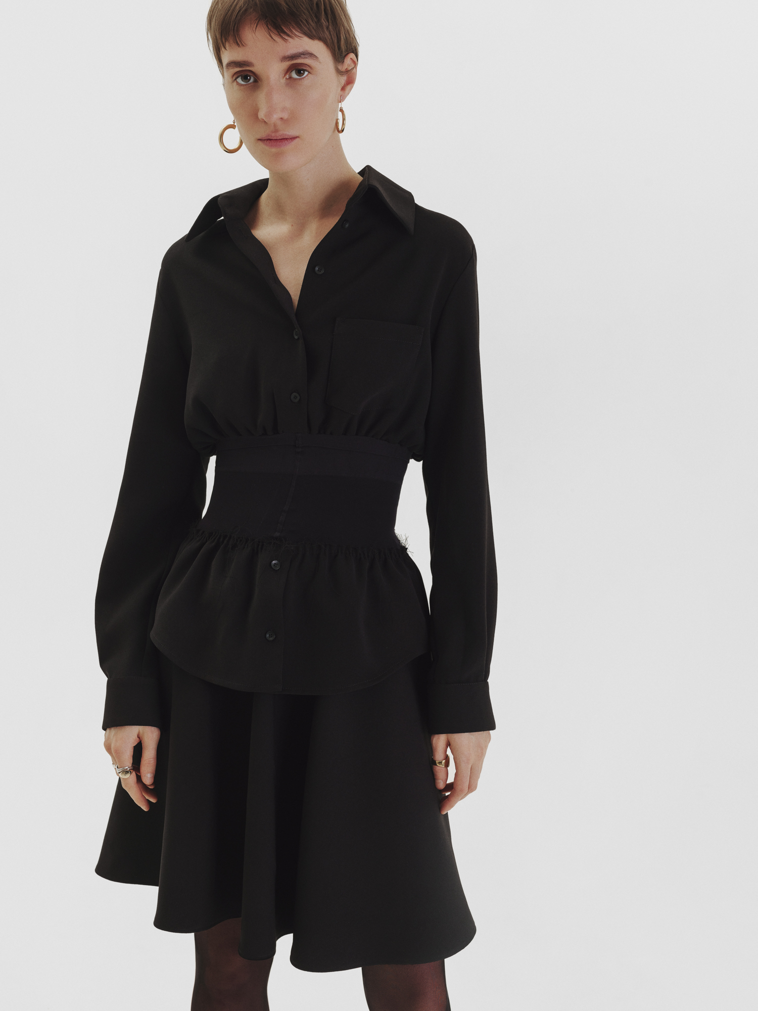 Препарируя гардероб ключевых офисных персонажей вроде бухгалтера, секретаря и СЕО, дизайнеры заново собирают его под собственным углом: деконструированные объемные жакеты обретают неожиданные вырезы, костюмные брюки трансформируются в асимметричные юбки с закрученными швами, классические рубашки обретают эластичные детали на талии, а вязаные жилеты превращаются в многослойные платья с оголенной спиной.