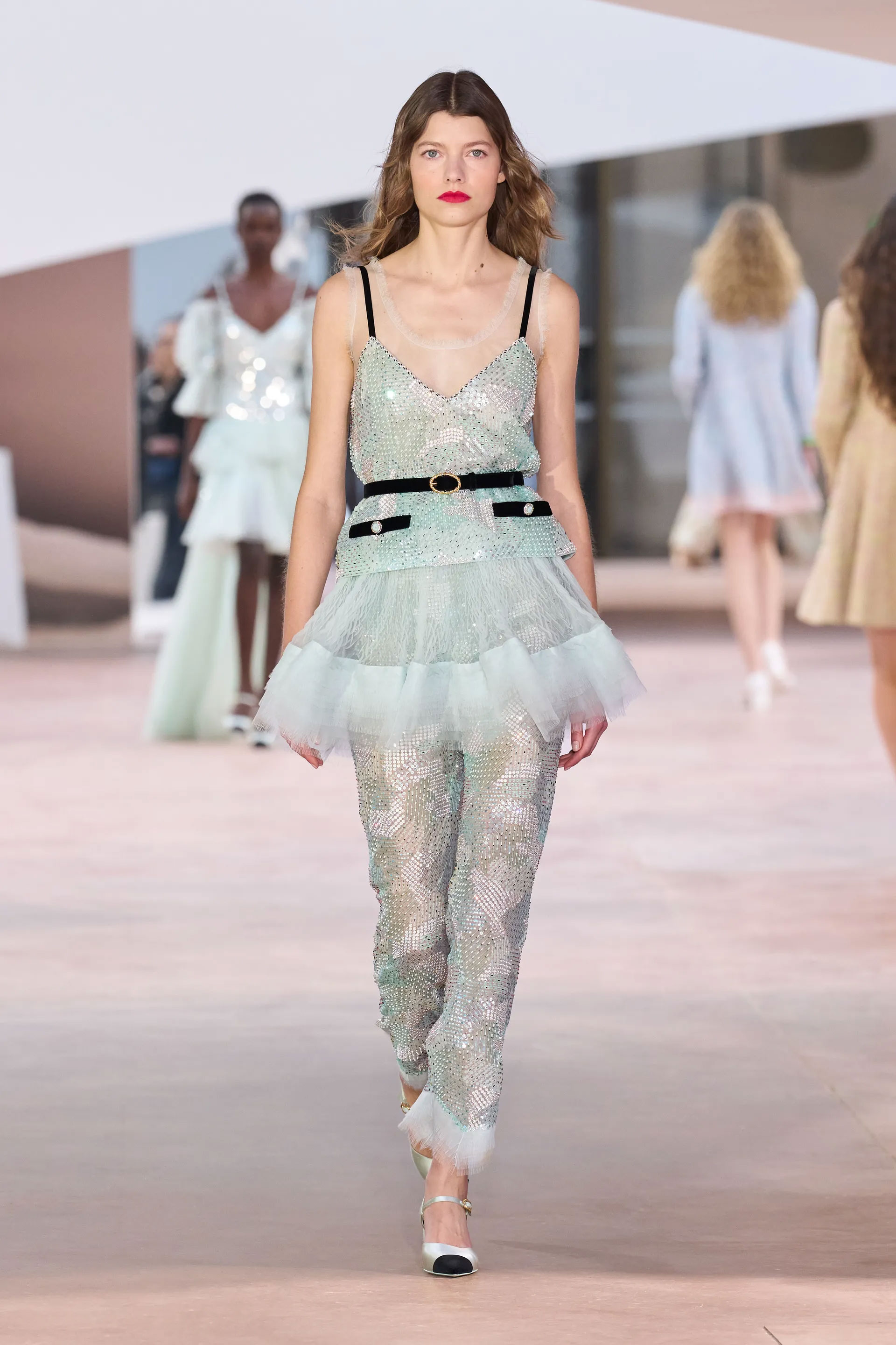 До кутюрної колекції також ввійшли сукні максі та міні з атласу та тюля, довгі пальта, розшиті золотистими нитками для ефекту trompe l'oeil, сорочки та брюки з квітковими мотивами, гіпюрові блузи та спідниці з бахромою з бісеру. У життєрадісній палітрі Haute Couture знайшли своє місце як базові кольори, так і яскраві червоний, фіолетовий, рожевий, зелений та інші. «І як одного разу сказала сама Габріель Шанель: «Комфорт має форми. Любов має кольори», — додає дизайн-команда Chanel.