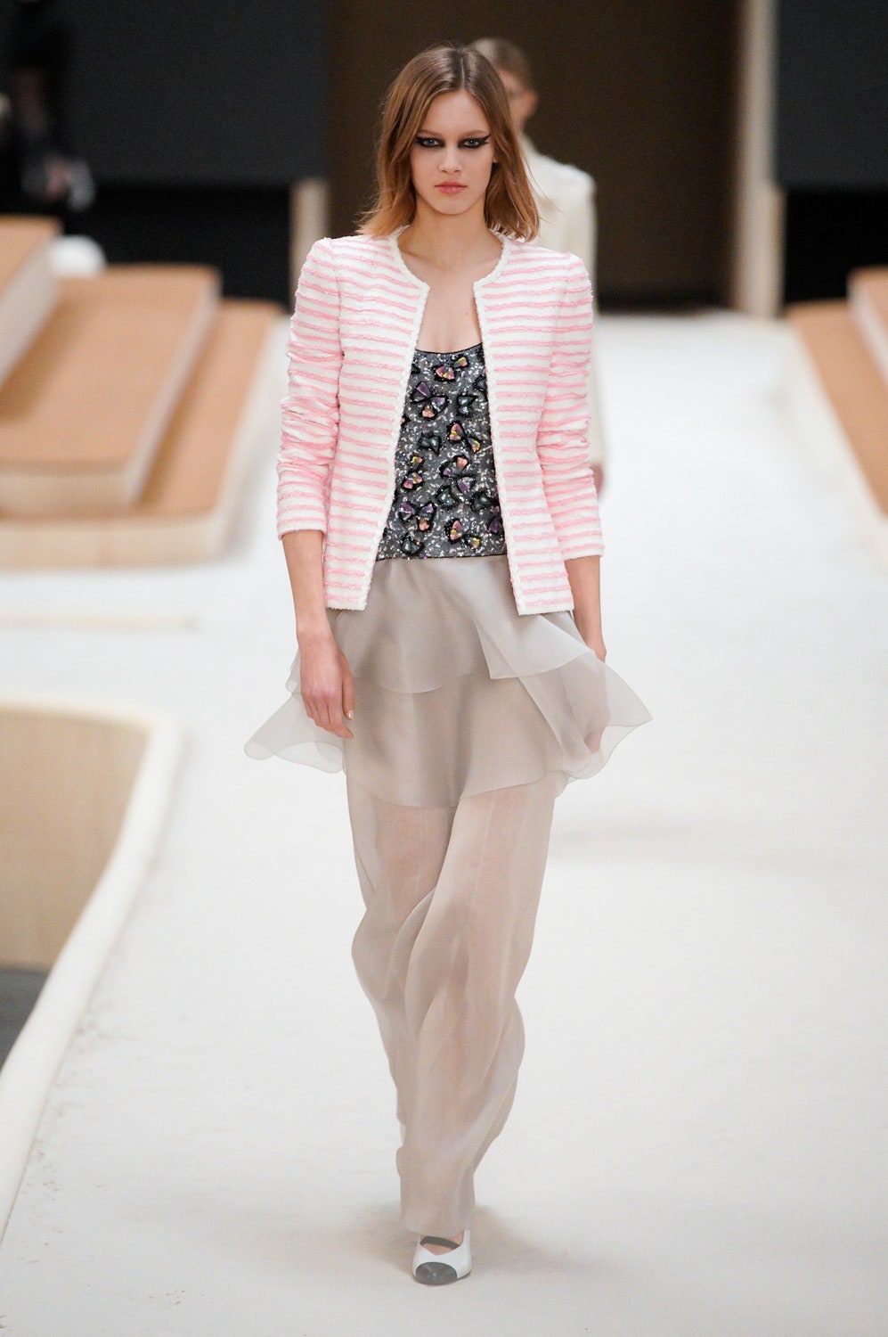 В парижском Гран-Пале-Эфеме, у подножия Эйфелевой башни, спроектированном Жан-Мишелем Вильмоттом, прошёл показ кутюрной коллекции Chanel. Декорации в стиле конструктивизма, а также кинетические подвижные конструкции для шоу создавал художник Ксавье Вейан. Согласно общей идее художника и креативного директора дома Виржини Виар, подиум был превращён в инсталляцию образца 20-30-х годов прошлого века. От этого выход принцессы Шарлотты Казираги верхом на лошади выглядел особенно захватывающе.