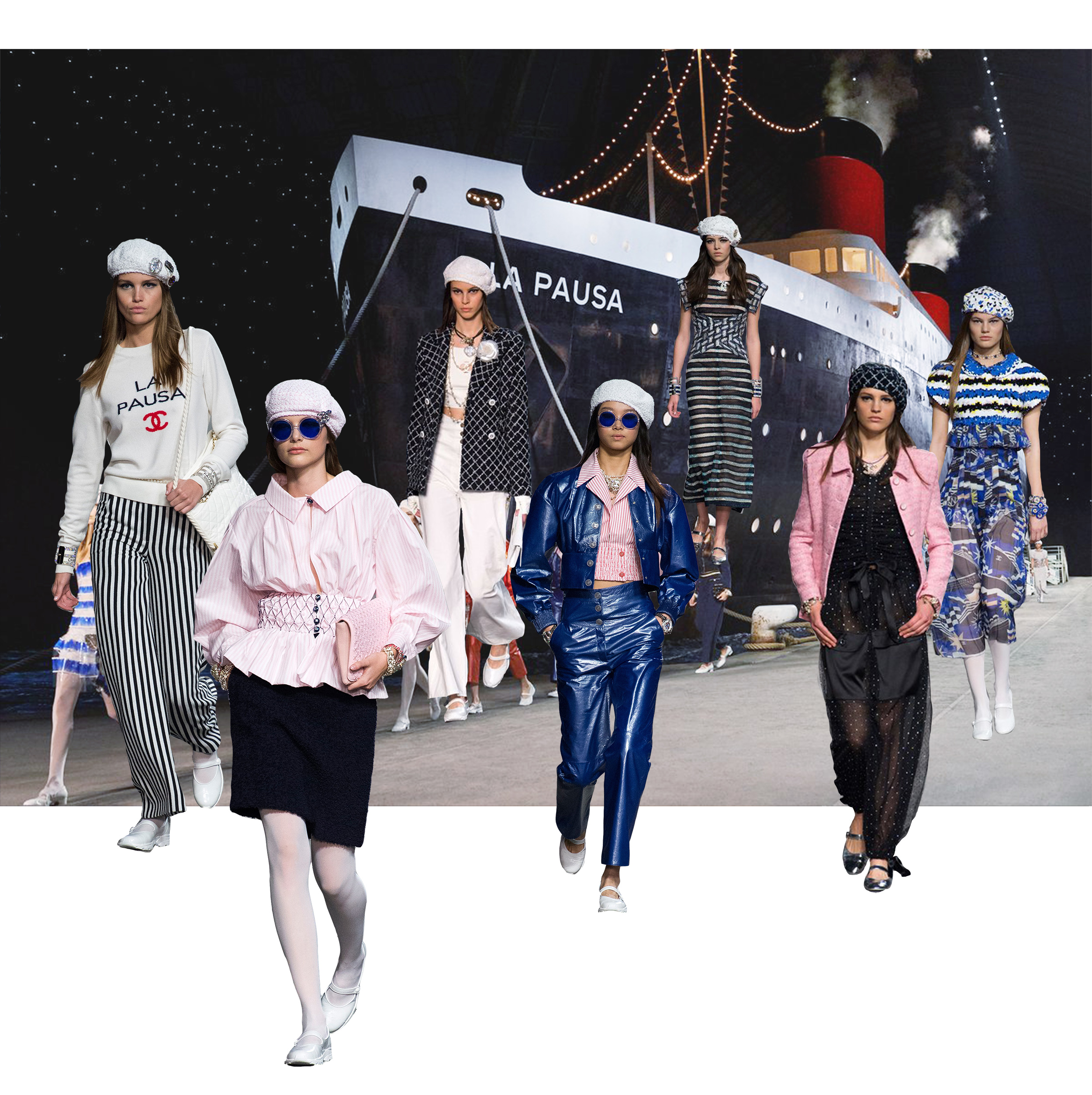В этом году, неожиданно для всех, тройка главных модных Домов — Chanel, Louis Vuitton и Christian Dior — решила не покидать Париж и провести свои шоу в столице Франции. И правда, зачем уезжать из столицы на Кубу или в Монако, если можно водрузить гигантский лайнер прямо посреди традиционного Grand Palais? Карл назвал его La Pausa, напоминая всем гостям и поклонникам, что Габриэль Шанель первой придумала круизные коллекции, открыв бутик для европейской богемы и аристократии в Довиле.