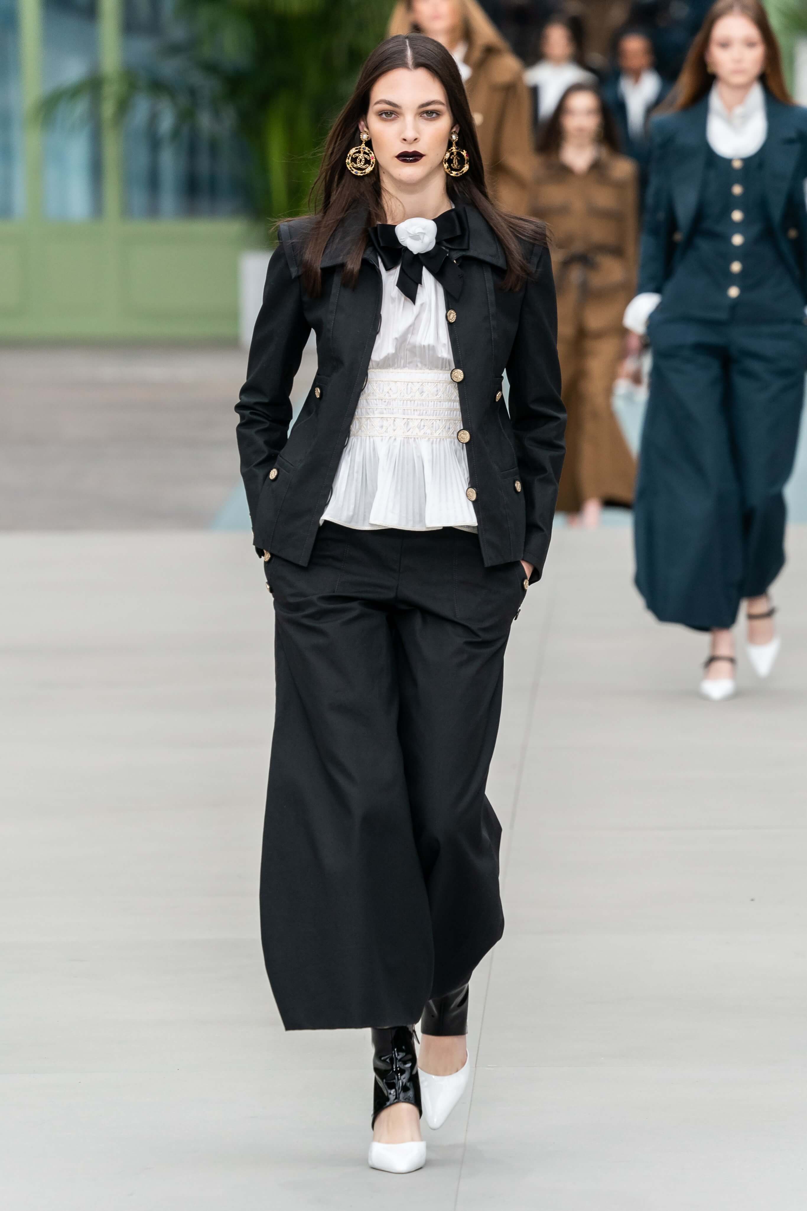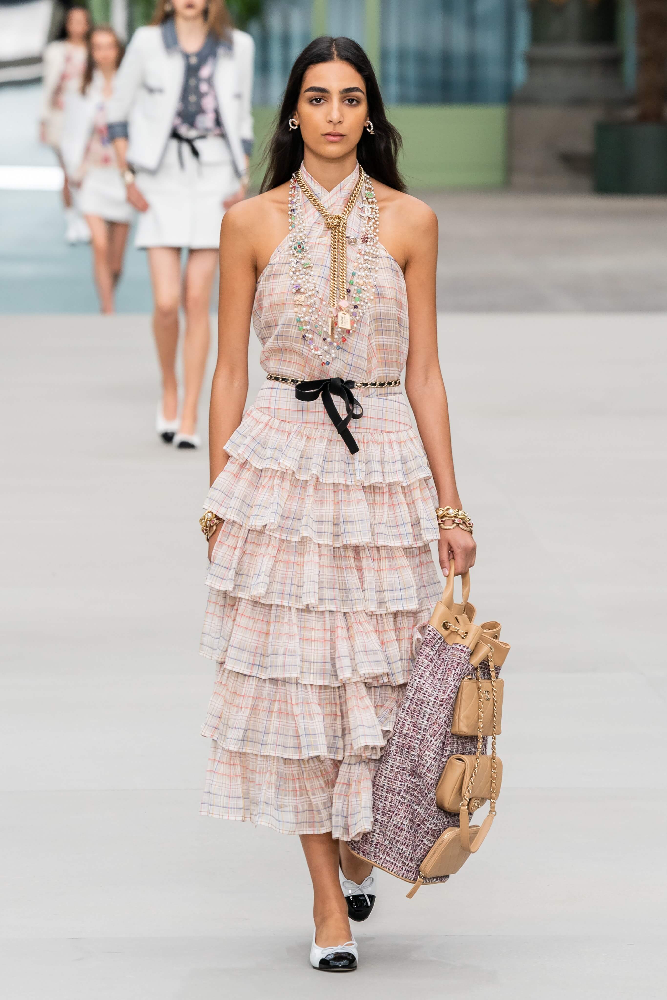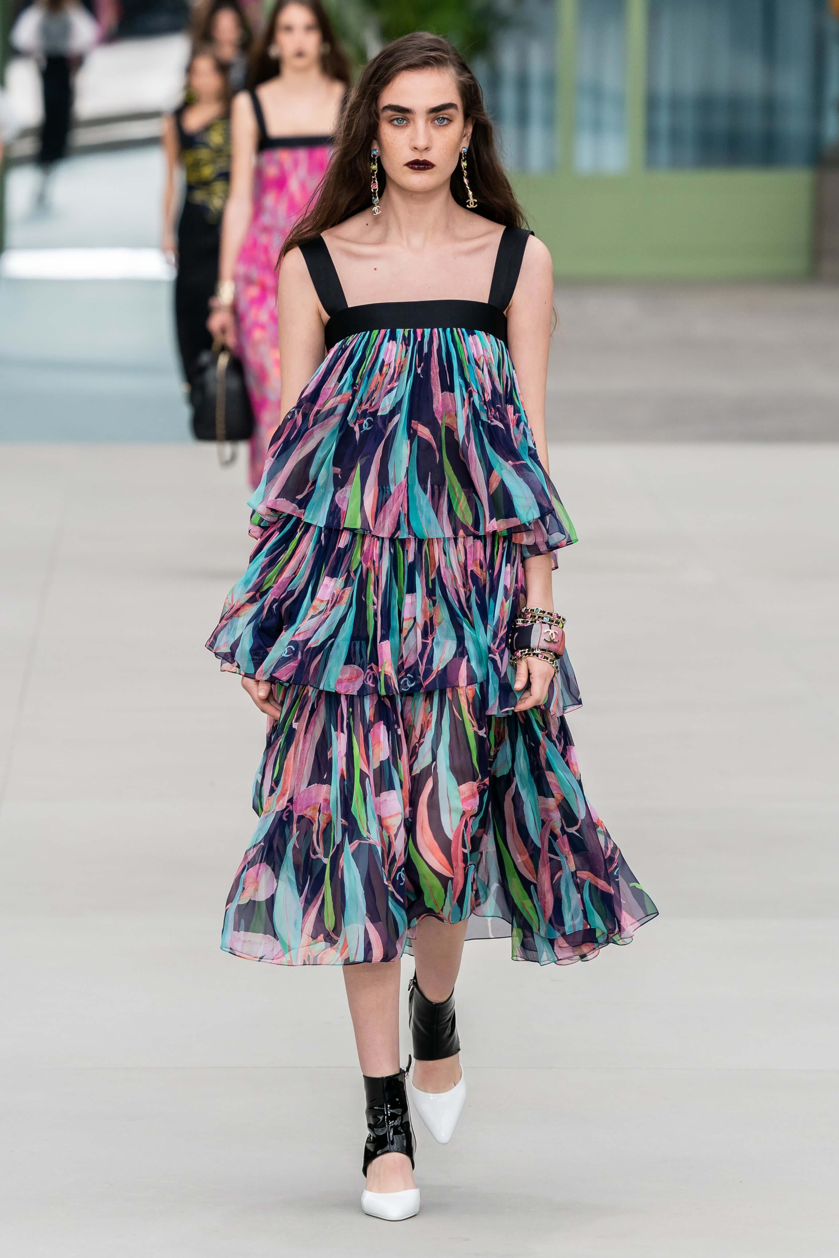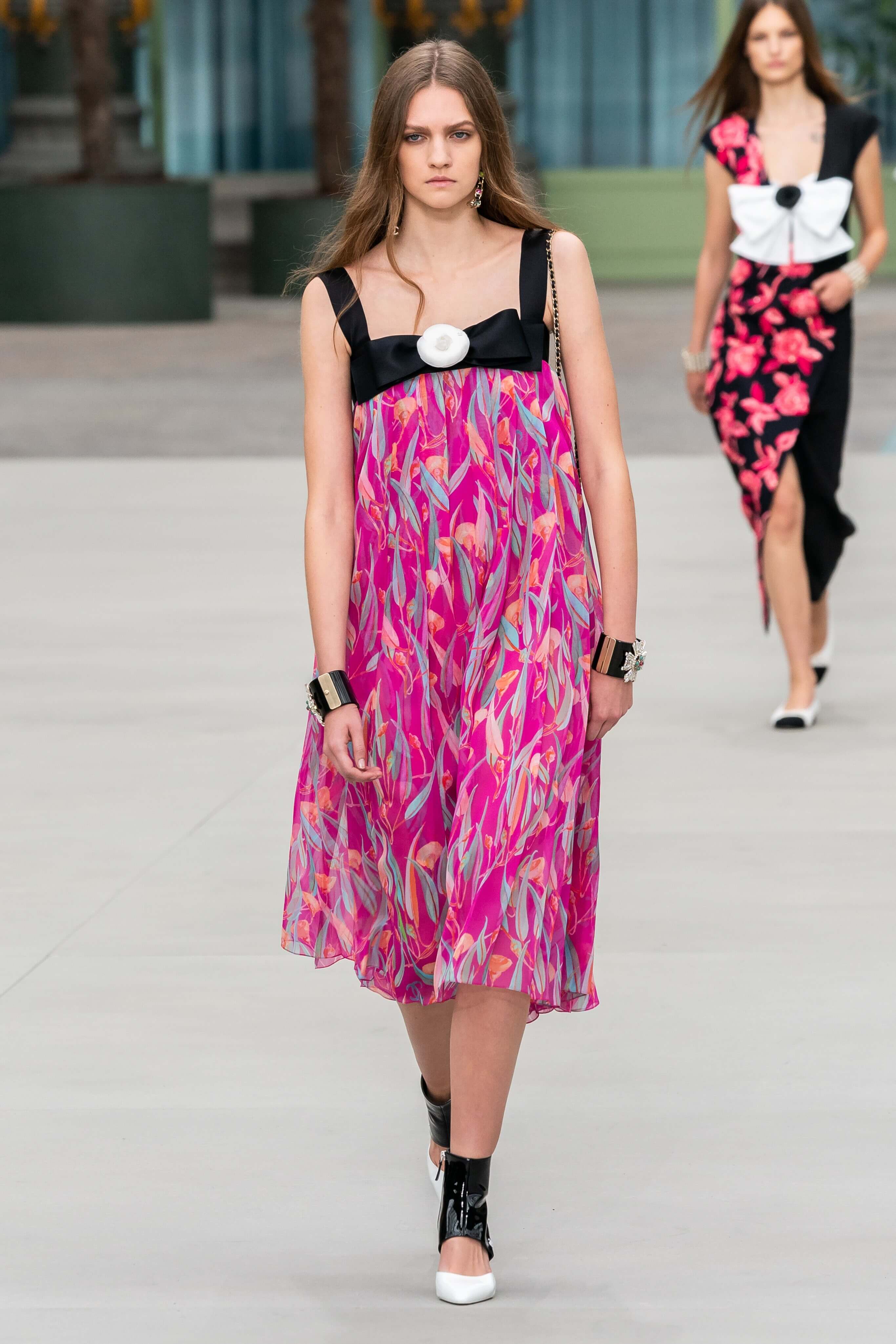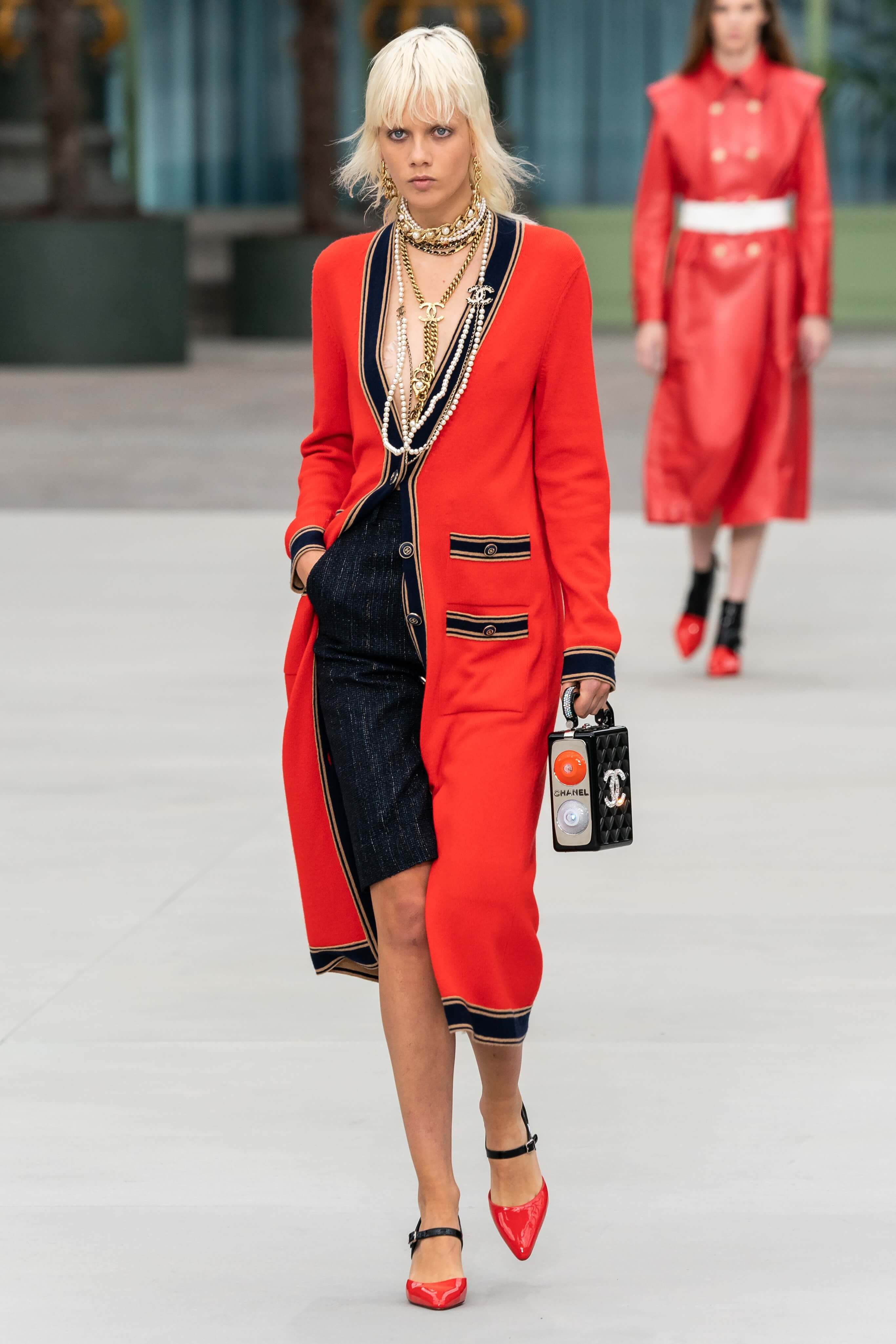 Сегодня утром прошёл показ круизной коллекции Chanel, над которой уже полностью работала команда Карла во главе с креативным директором Виржини Виар. На выстроенной железнодорожной станции в Grand Palais прошло зрелищное шоу. Сначала поезд Chanel отправил гостей в направлениях Эдинбурга, Сен-Тропе и Венеции, а после они получили возможность рассмотреть других посетителей станции — моделей в походной одежде и длинных, будто революционных тренчах в шотландском стиле, кокетливых твидовых костюмах зефирных и конфетных оттенков и декорированных цветами платьях.