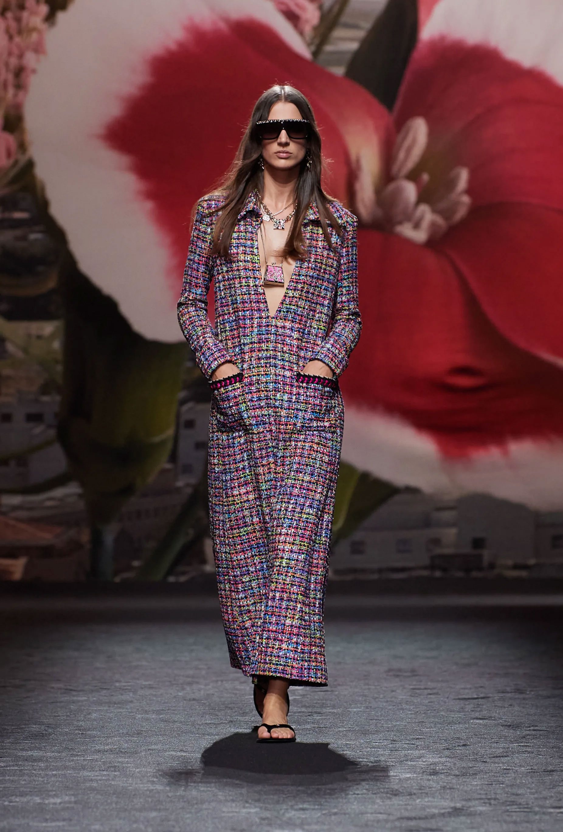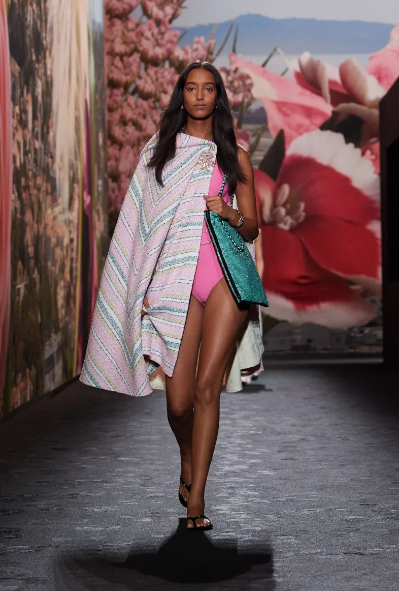 Шоу spring-summer — 2024 проходило в Grand Palais Éphémère в квітковій сценографії, що говорило про пробудження як одну з ідейних основ колекції. Серед образів показу — купальники, поєднанні з твідовими накидками, напівпрозорі сукні з органзи, твідові костюми-двійки, лаковані шкіряні спідниці з високими розрізами та топи з монограмою Chanel. Колекція доповнювалася декоративними елементами в формі фруктів та квітів, а також флористичною вишивкою на лелітках.