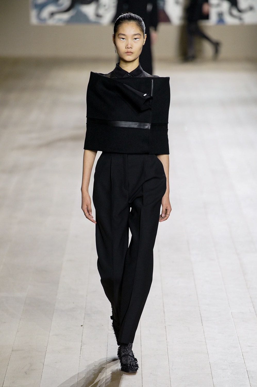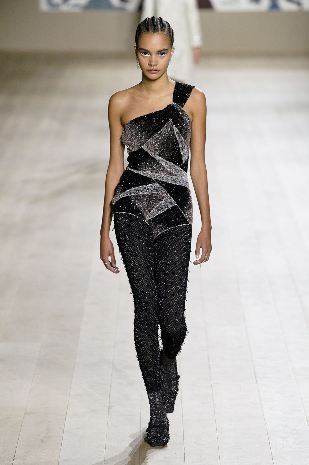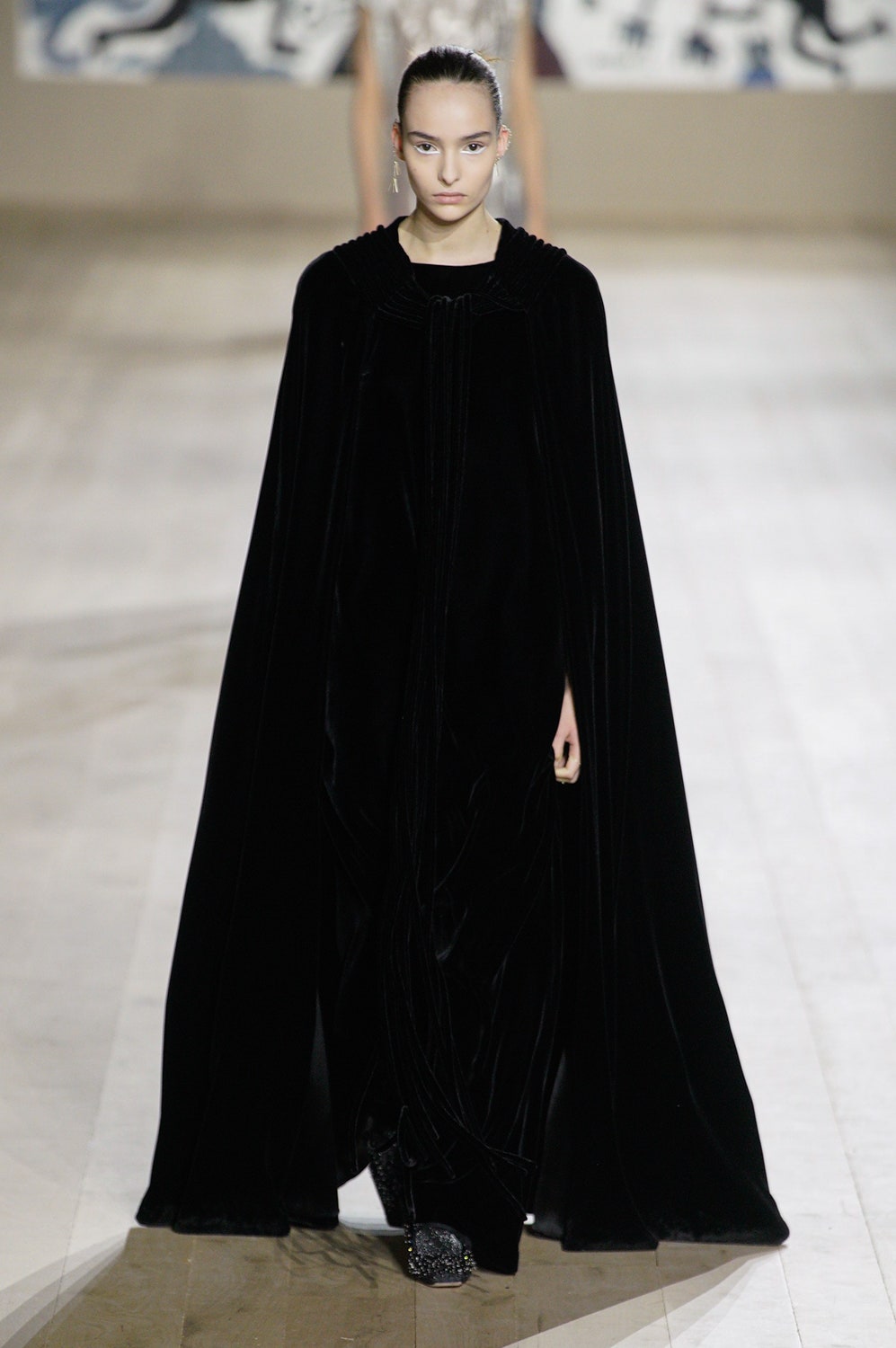 Молочные и кремовые пальто, брюки и платья коллекции скроены настолько идеально, что к ним не хочется ничего добавить, однако соседствовали на подиуме они вместе с роскошными тренчами в мириадах вышивки, мерцающими вечерними платьями и эфемерными блузами из тонкого шелка сложной фактуры. Шоу прошло в саду музея Родена, а декорациями к нему послужили красочные гобелены художниц Мадхви и Ману Парех из ремесленной школы Чанакья — их создавали вручную 380 мастеров, а их площадь — 340 квадратных метров.