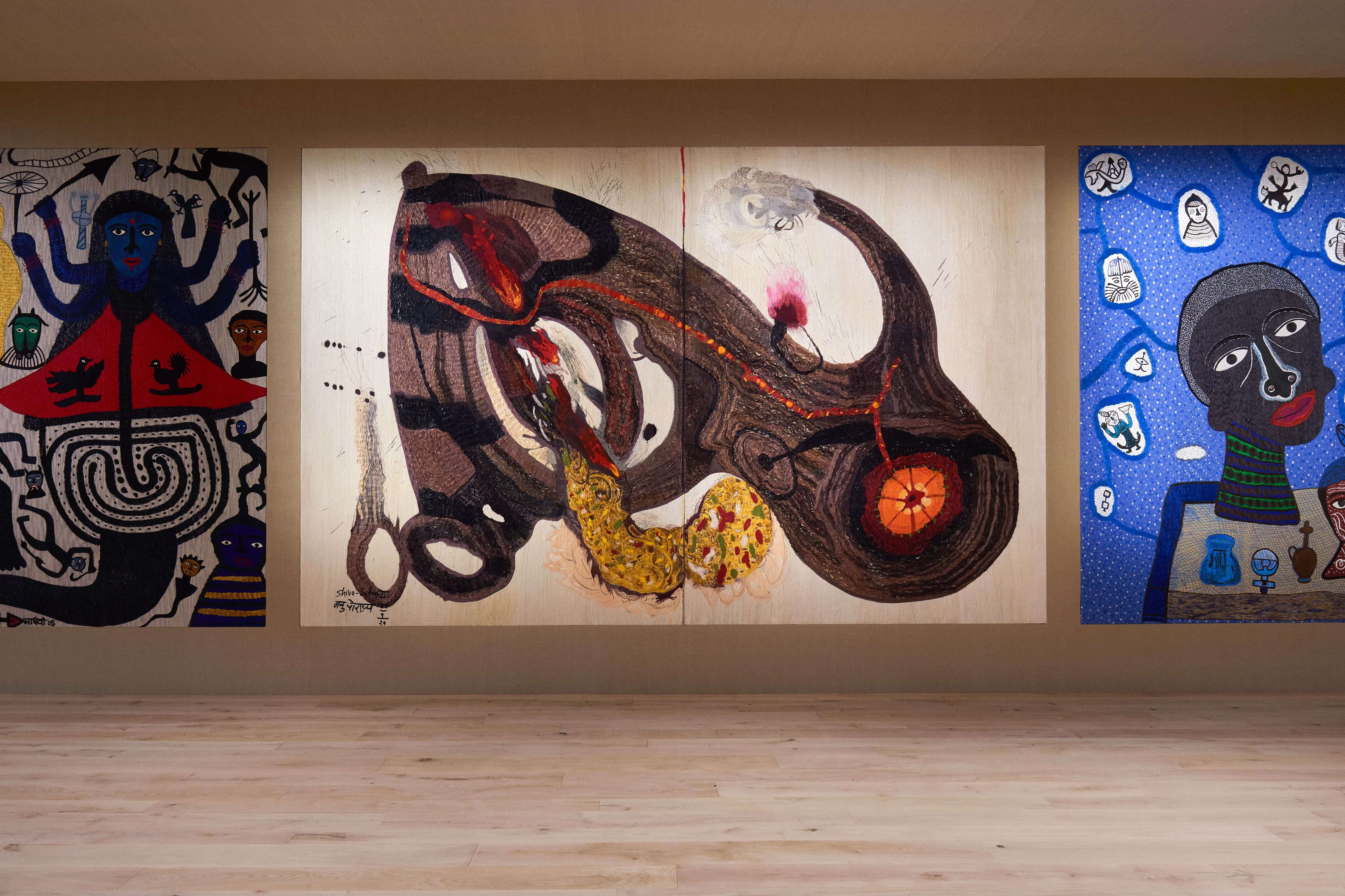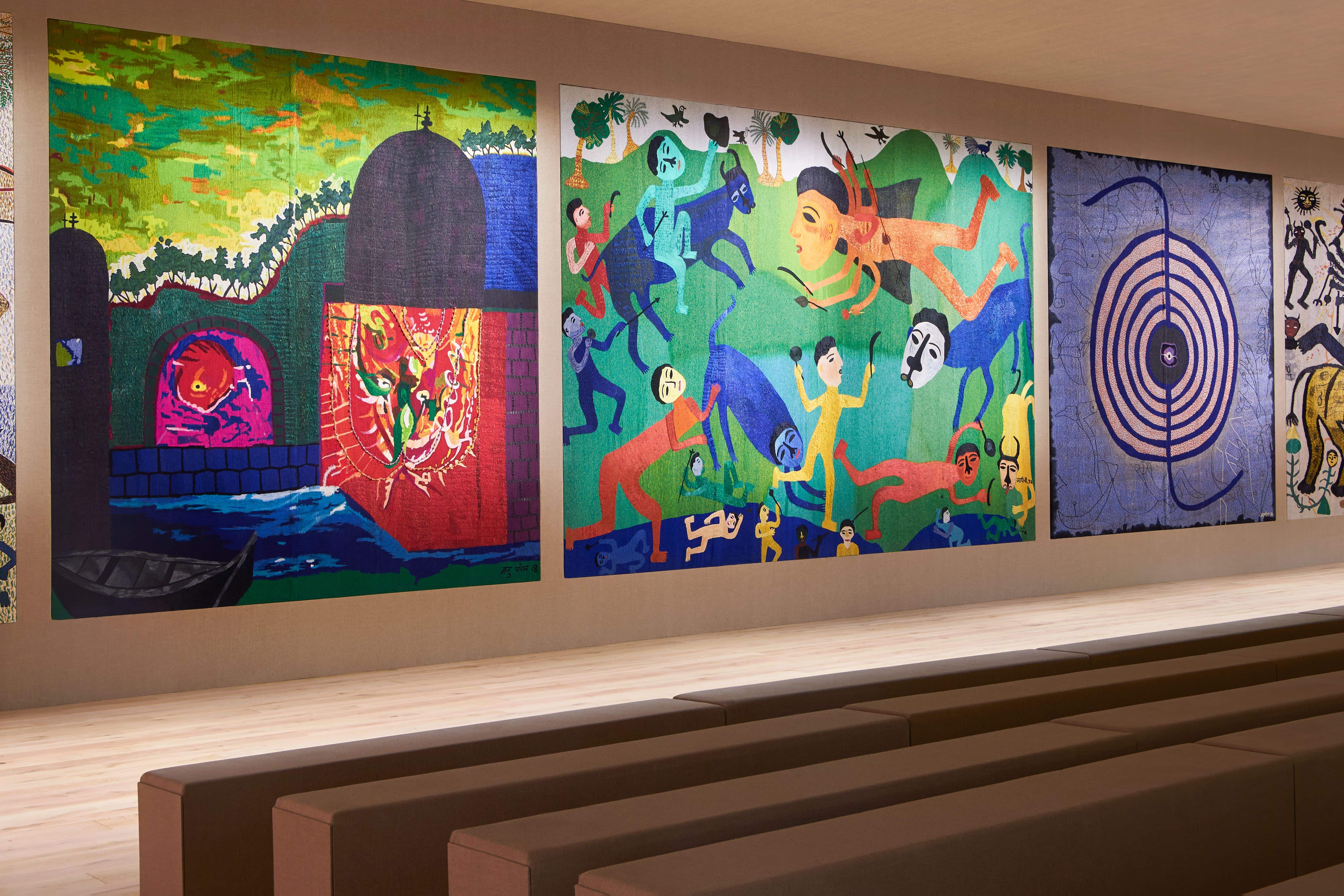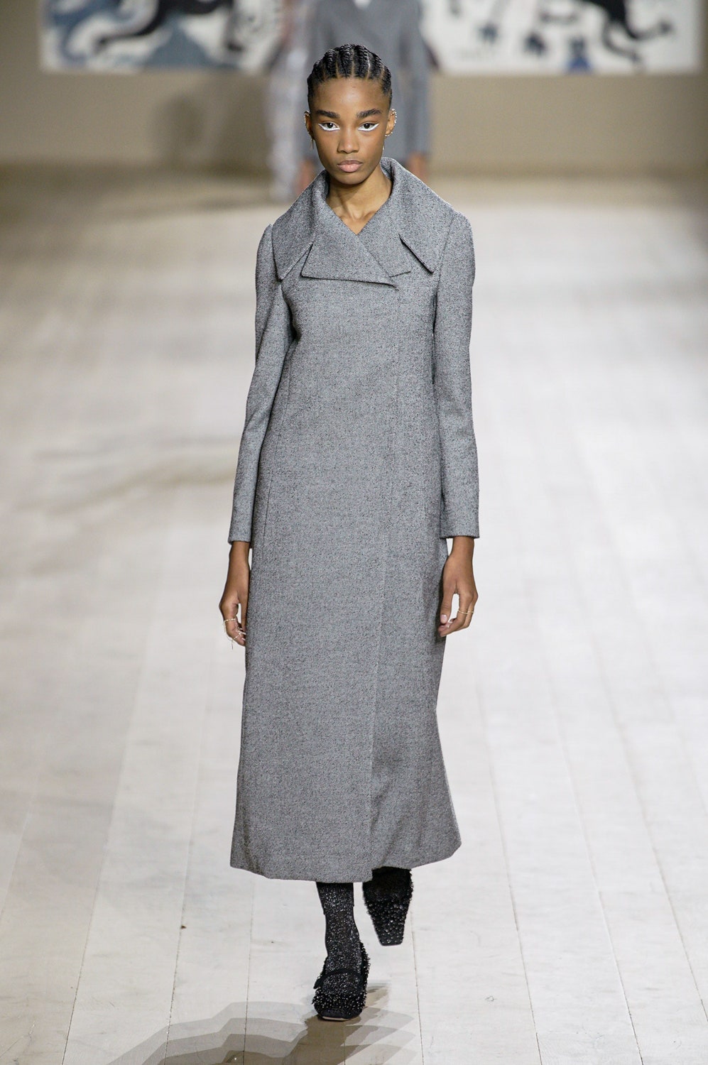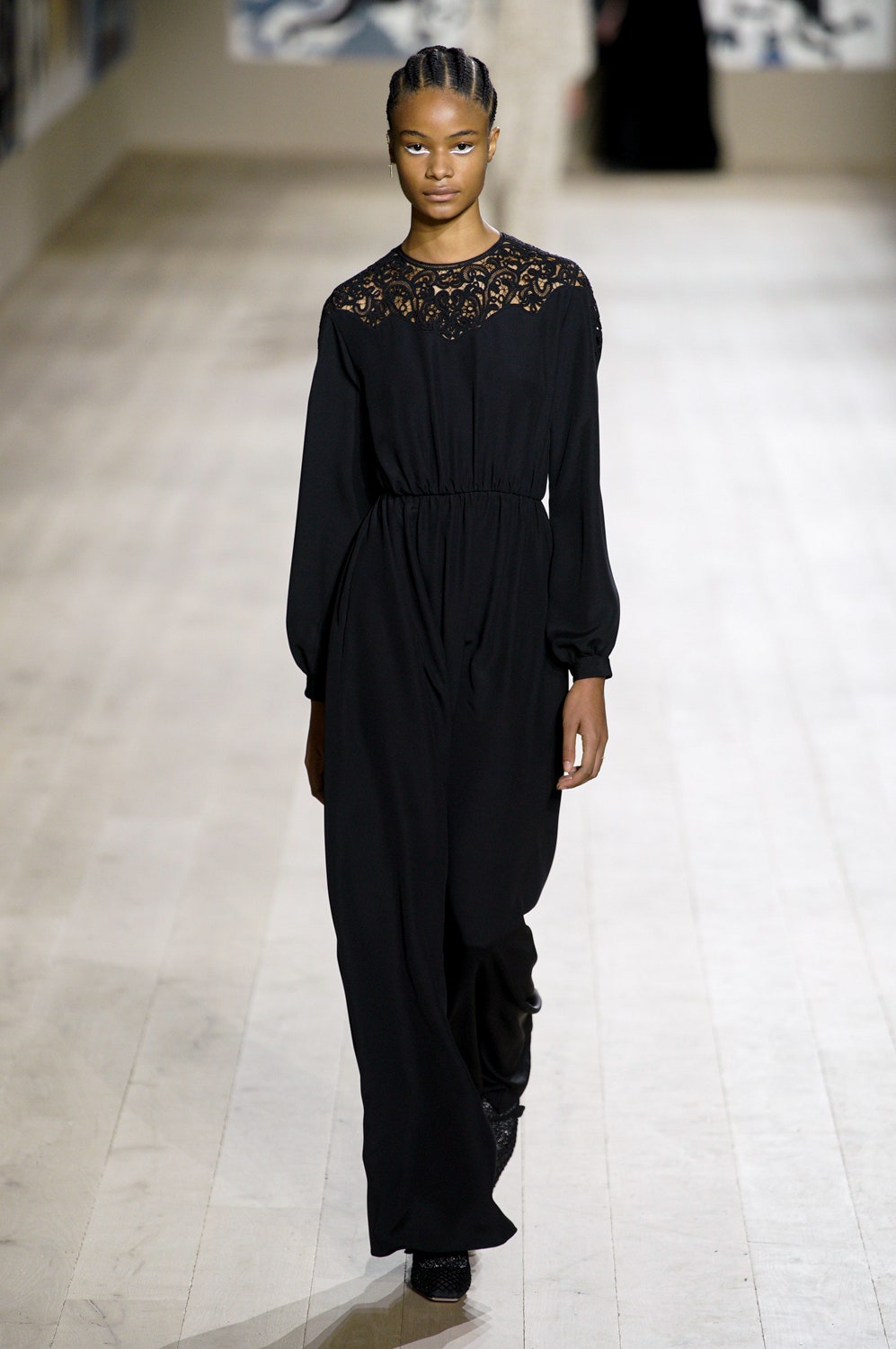 Молочные и кремовые пальто, брюки и платья коллекции скроены настолько идеально, что к ним не хочется ничего добавить, однако соседствовали на подиуме они вместе с роскошными тренчами в мириадах вышивки, мерцающими вечерними платьями и эфемерными блузами из тонкого шелка сложной фактуры. Шоу прошло в саду музея Родена, а декорациями к нему послужили красочные гобелены художниц Мадхви и Ману Парех из ремесленной школы Чанакья — их создавали вручную 380 мастеров, а их площадь — 340 квадратных метров.