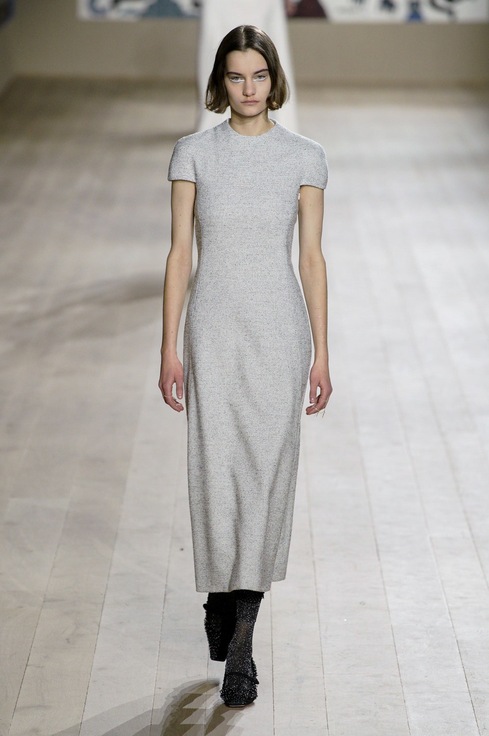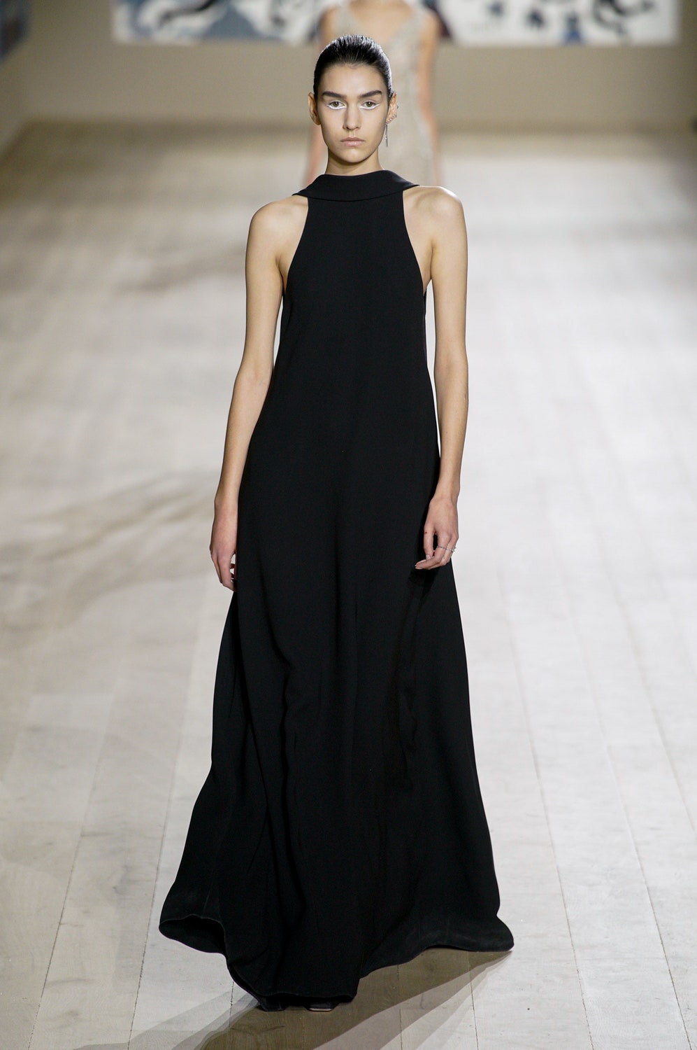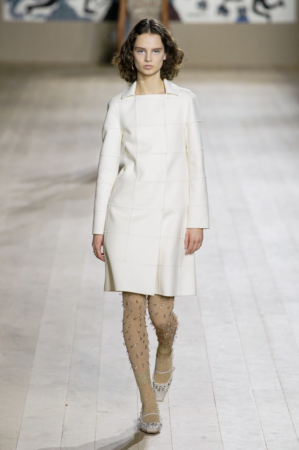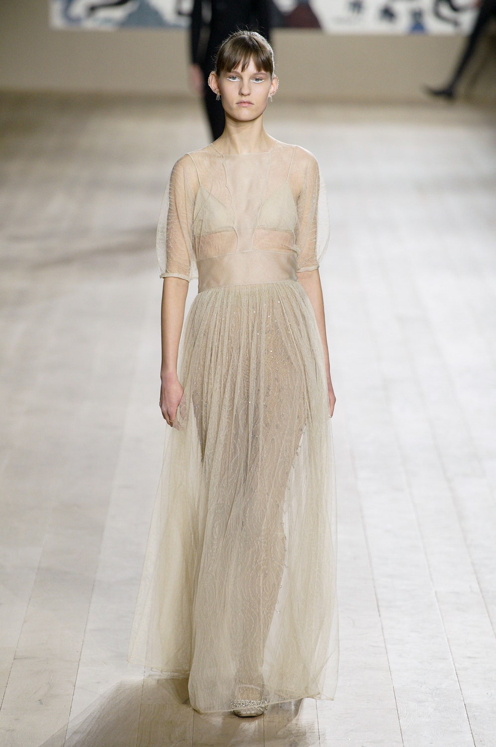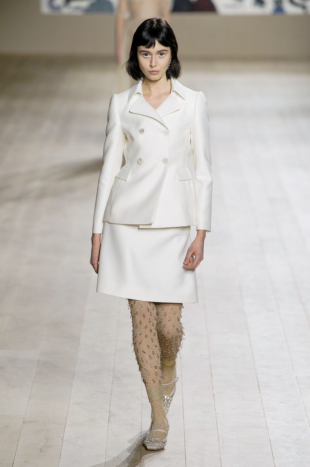 Мария Грация Кьюри представила коллекцию от-кутюр для Christian Dior и на этот раз решила не подчинять ее какой-либо концепции, а сосредоточиться на высоком мастерстве и простых силуэтах. В видимой простоте по задумке Кьюри и кроются детали высокого искусства ручного труда. Так, на моделях были плиссированные кейпы и юбки, строчки на которых едва заметны при ближайшем рассмотрении, усеянные сотнями кристаллов платья и наряды, имитирующие раздельные комплекты (как, например, черное шелковое платье, которое кажется юбкой и топом). Показ открыла модель в геометрическом боди, расшитом серебряной нитью, а закрыла модель в платье-сетке, усеянном "каплями"-кристаллами, — такими же оказались расшиты и колготки, которые могут стать must have этой весны. Главным предметом коллекции стал жакет-бар, возведенный в культ самим Кристианом Диором.