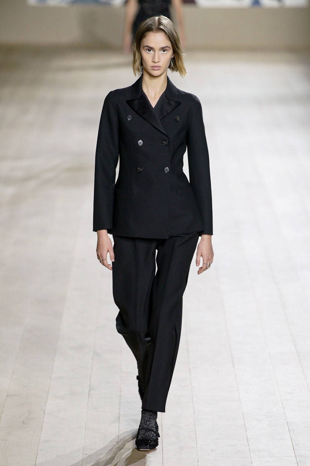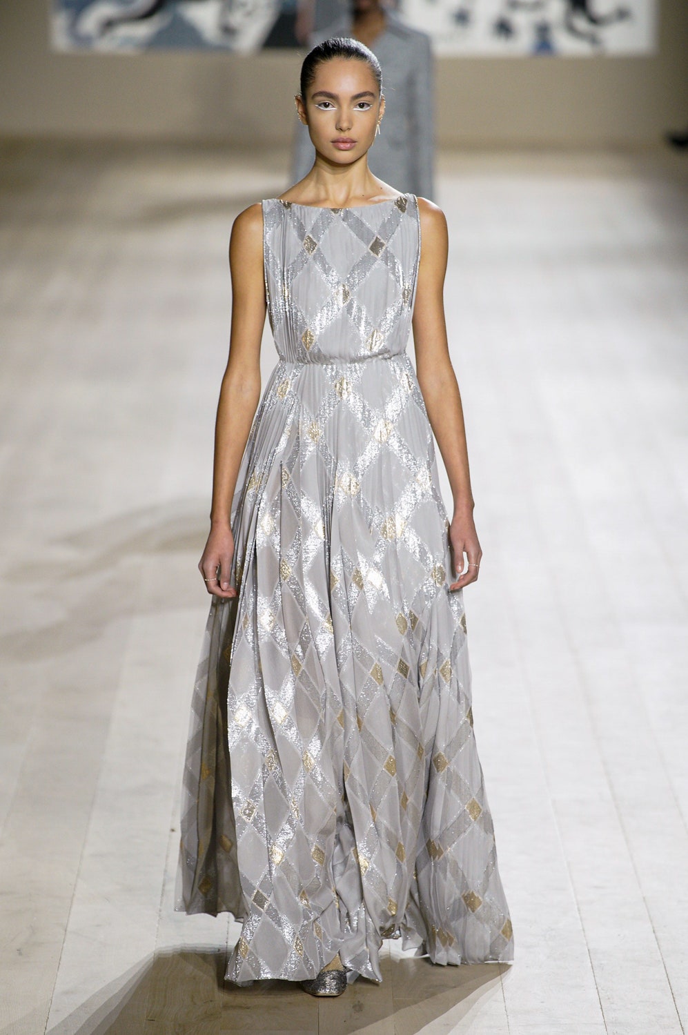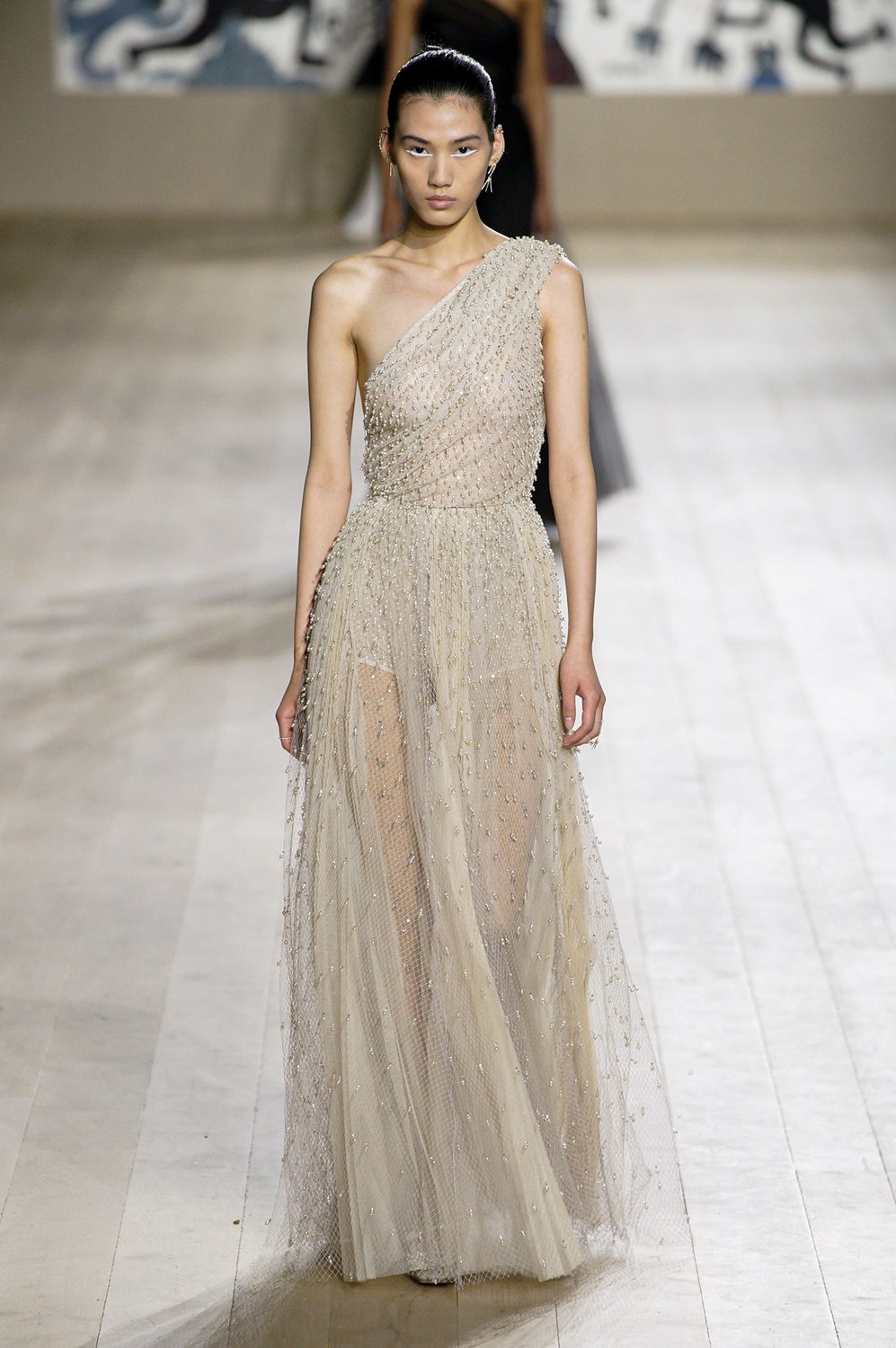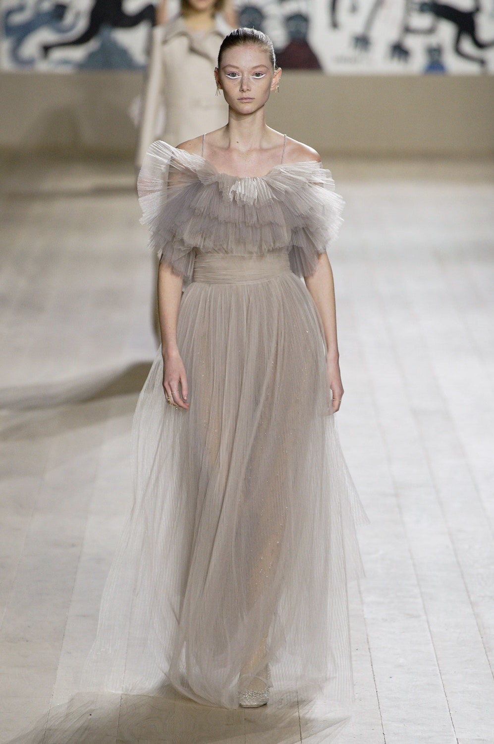 Мария Грация Кьюри представила коллекцию от-кутюр для Christian Dior и на этот раз решила не подчинять ее какой-либо концепции, а сосредоточиться на высоком мастерстве и простых силуэтах. В видимой простоте по задумке Кьюри и кроются детали высокого искусства ручного труда. Так, на моделях были плиссированные кейпы и юбки, строчки на которых едва заметны при ближайшем рассмотрении, усеянные сотнями кристаллов платья и наряды, имитирующие раздельные комплекты (как, например, черное шелковое платье, которое кажется юбкой и топом). Показ открыла модель в геометрическом боди, расшитом серебряной нитью, а закрыла модель в платье-сетке, усеянном "каплями"-кристаллами, — такими же оказались расшиты и колготки, которые могут стать must have этой весны. Главным предметом коллекции стал жакет-бар, возведенный в культ самим Кристианом Диором.