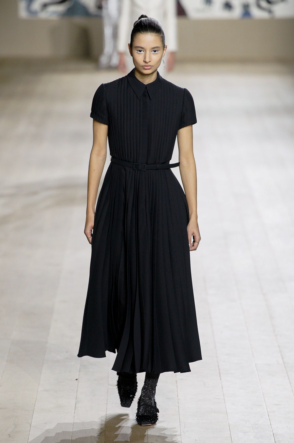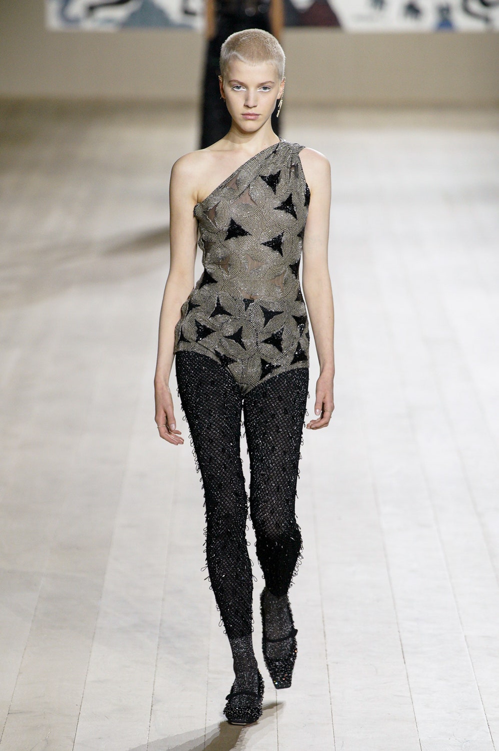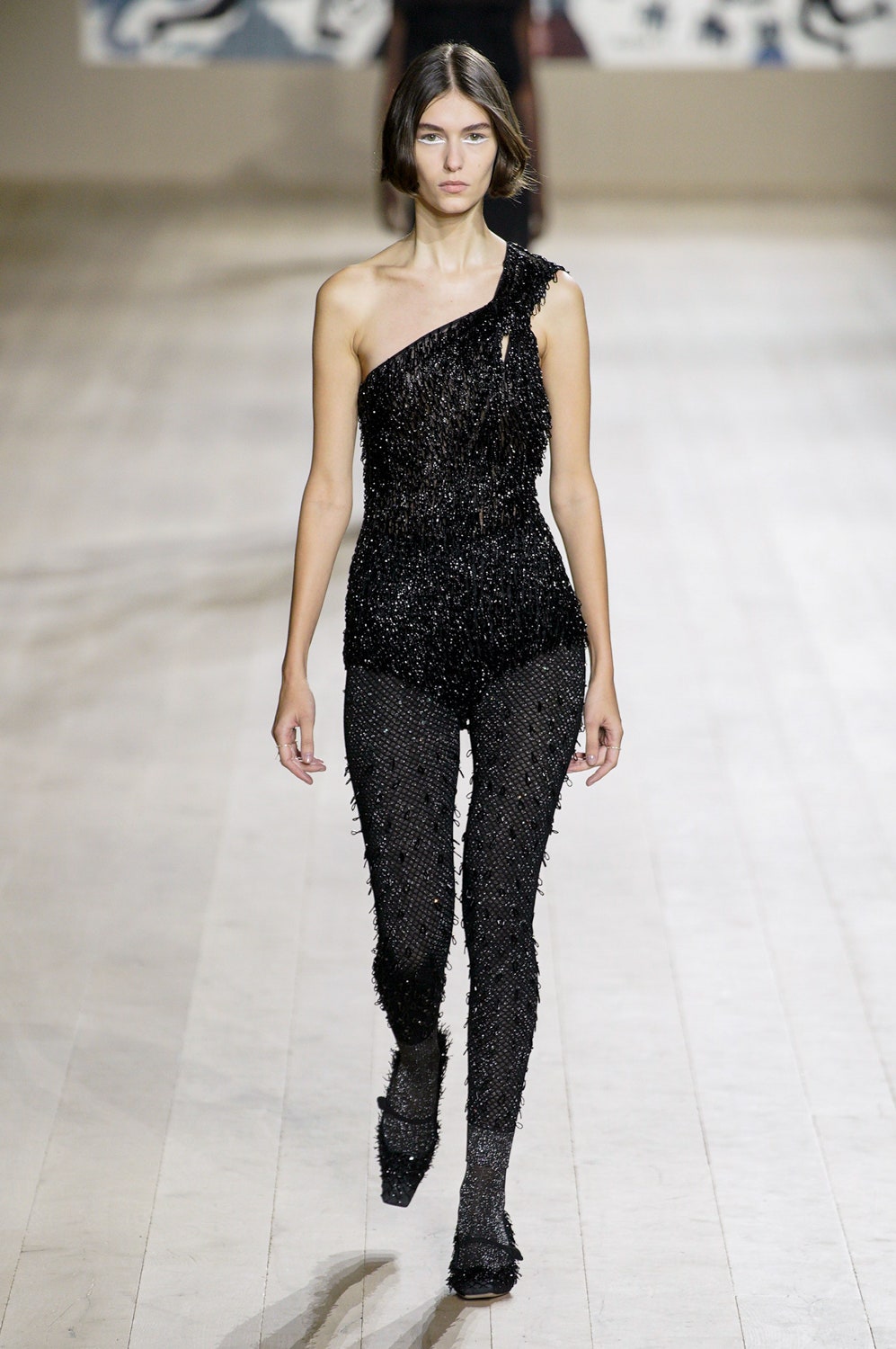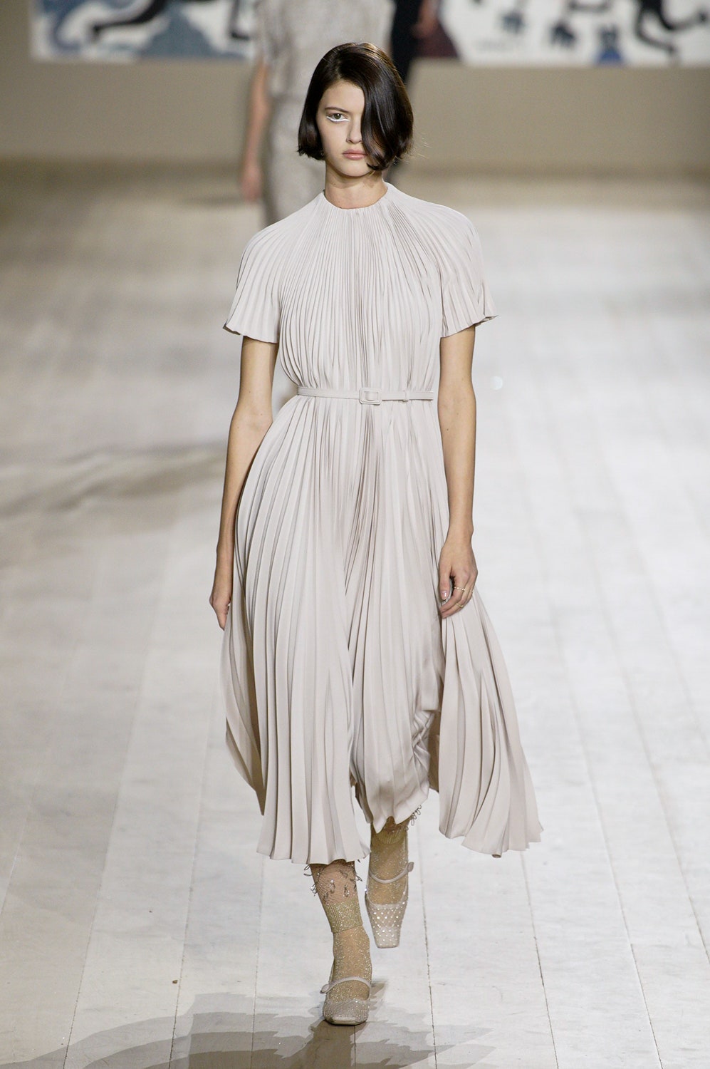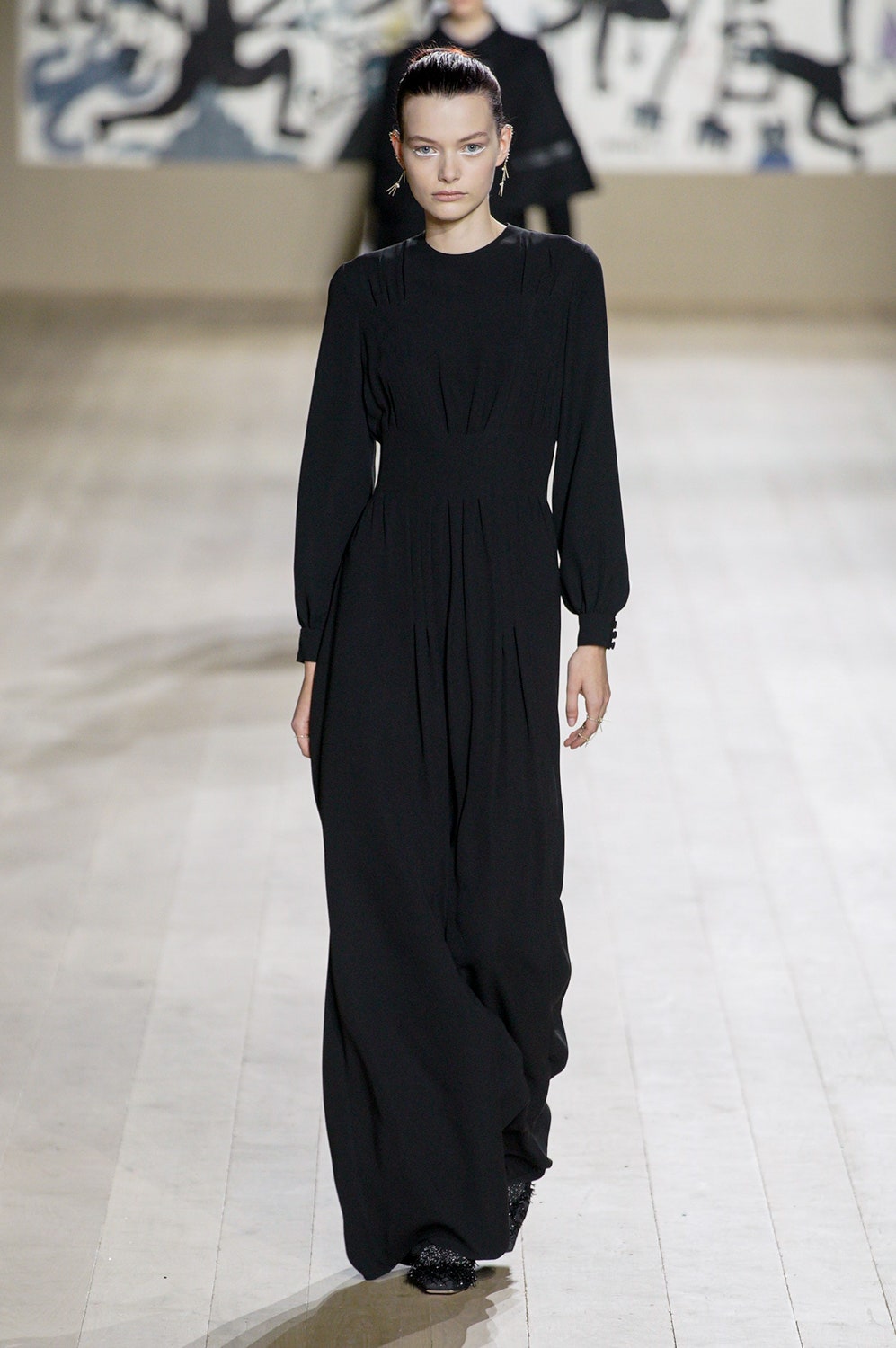 Мария Грация Кьюри представила коллекцию от-кутюр для Christian Dior и на этот раз решила не подчинять ее какой-либо концепции, а сосредоточиться на высоком мастерстве и простых силуэтах. В видимой простоте по задумке Кьюри и кроются детали высокого искусства ручного труда. Так, на моделях были плиссированные кейпы и юбки, строчки на которых едва заметны при ближайшем рассмотрении, усеянные сотнями кристаллов платья и наряды, имитирующие раздельные комплекты (как, например, черное шелковое платье, которое кажется юбкой и топом). Показ открыла модель в геометрическом боди, расшитом серебряной нитью, а закрыла модель в платье-сетке, усеянном "каплями"-кристаллами, — такими же оказались расшиты и колготки, которые могут стать must have этой весны. Главным предметом коллекции стал жакет-бар, возведенный в культ самим Кристианом Диором.