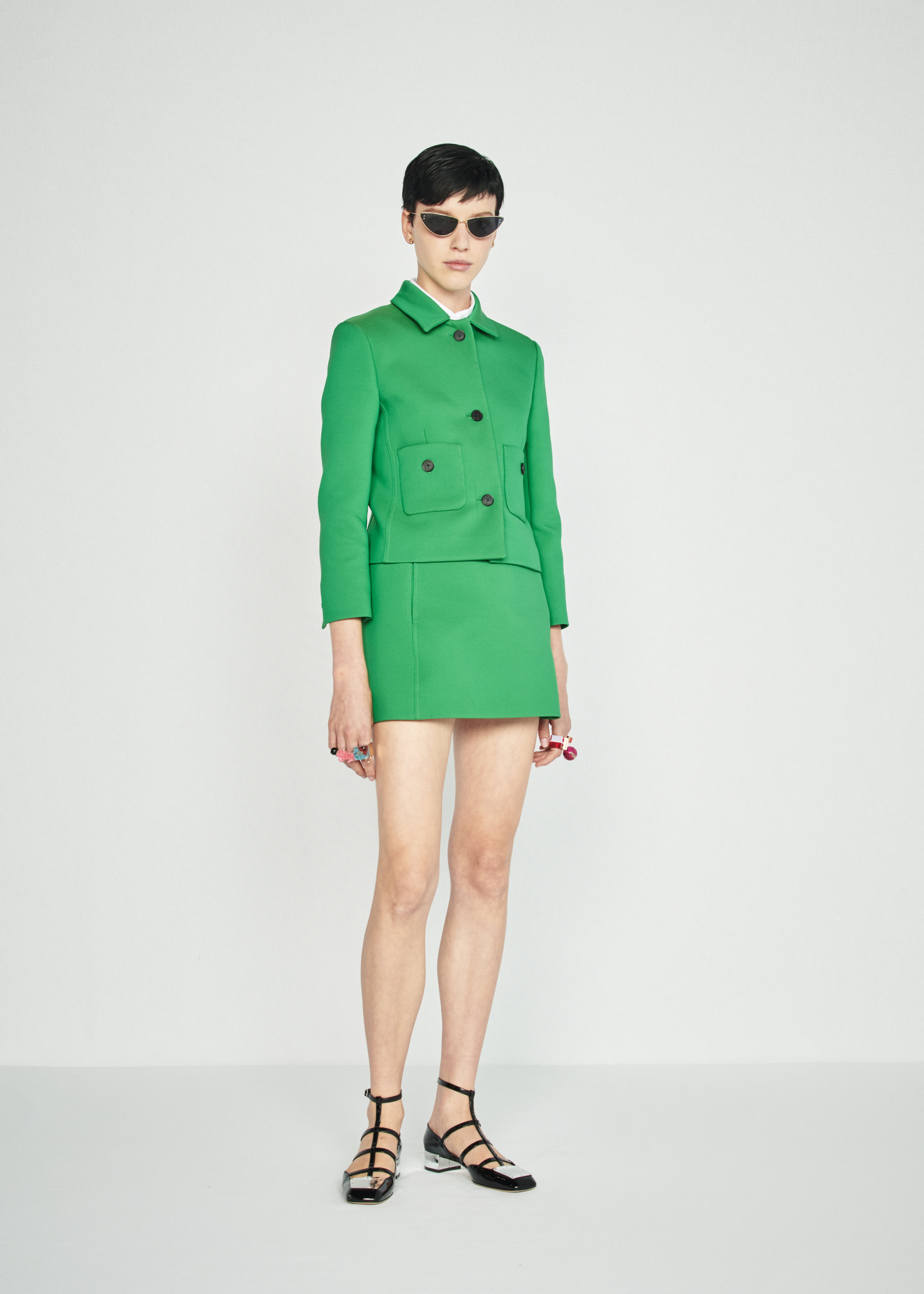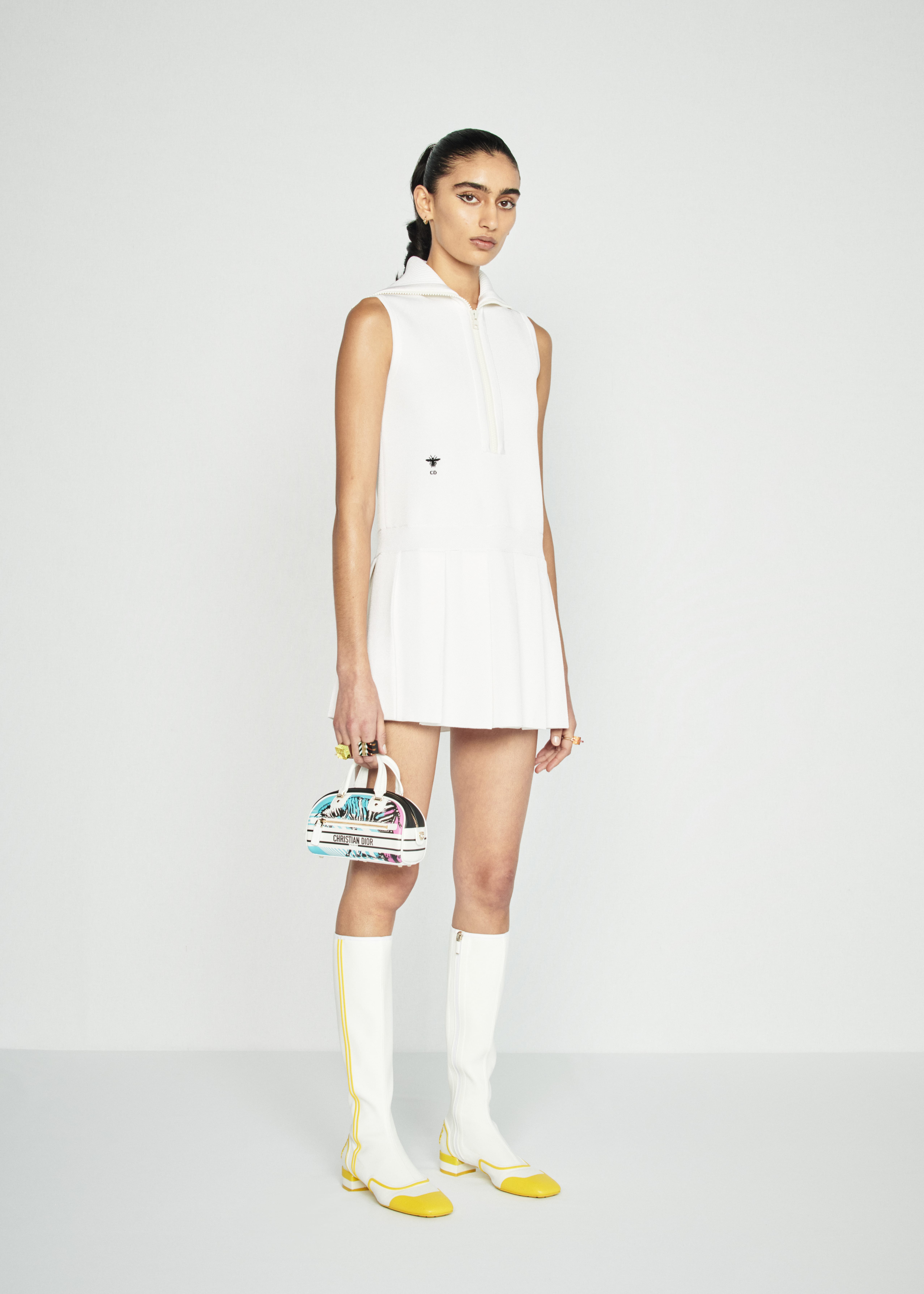 Мария Грация обратилась к архивам дома Dior и в качестве референса к коллекции выбрала творения дизайнера Марка Боана, которые тот создавал для бренда в 1961 году. Тогда Боан подвел Dior к pret-a-porter-моде и дал толчок к развитию. В коллекцию Марии Грации вошли минималистичные платья-трапеции, прямые жакеты с маленькими воротниками и короткие юбки фруктовых оттенков, трехцветные пальто и сатиновые клубные куртки. Не обошлось и без юбок из денима, плиссировки и фирменных белых блузок с укороченным рукавом.