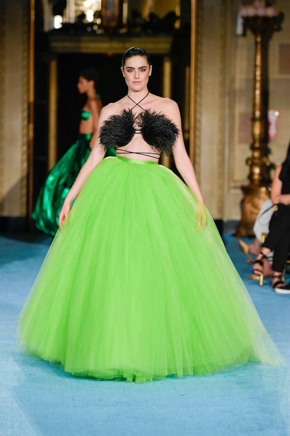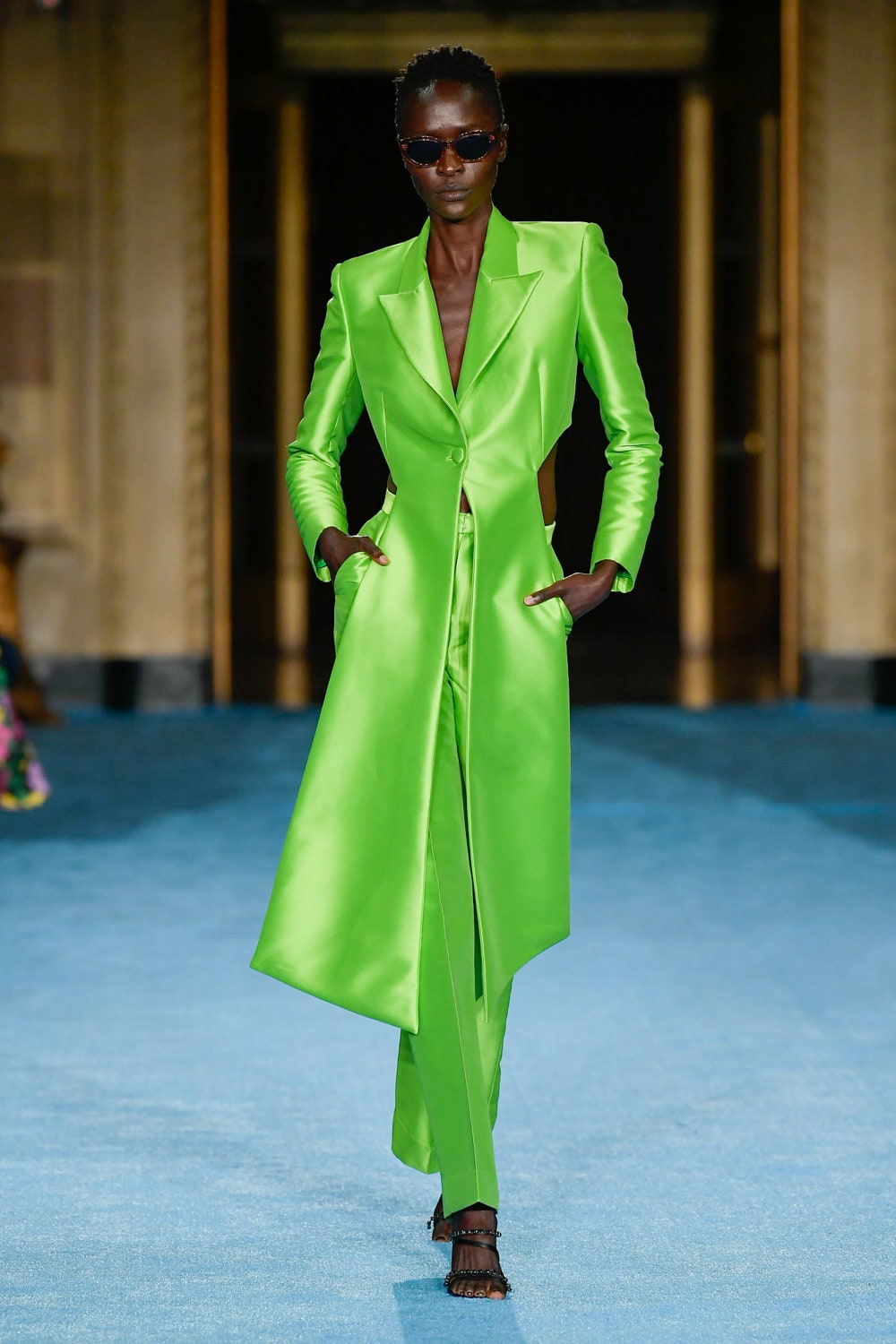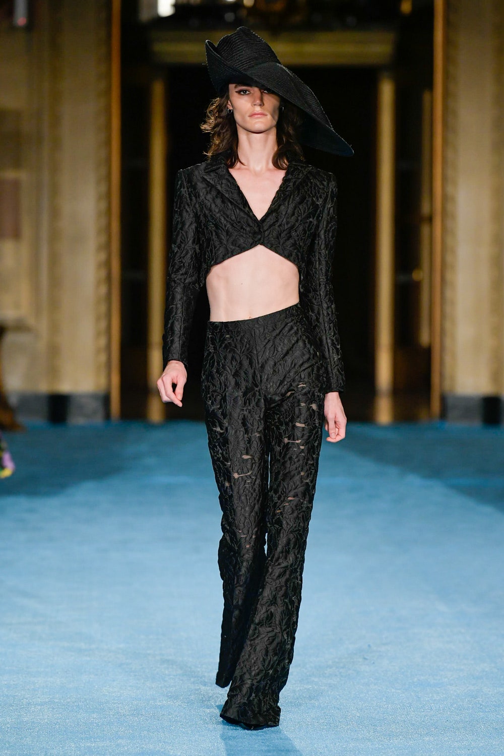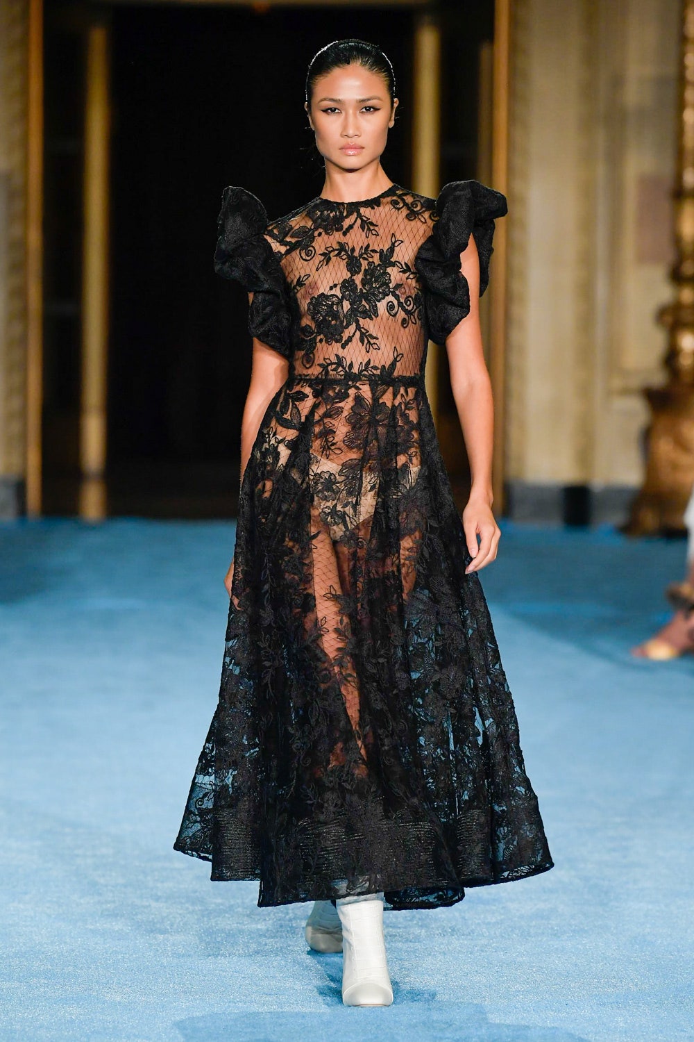 Показ дизайнера Кристиана Сириано прошел в нью-йоркском Готэм-холле, здании бывшего Гринвичского банка, строившегося вместе с бизнес-империями и модными домами в конце 1920-х. В коллекции будущей весны Сириано позволил себе еще больше чрезмерности и пышности. Шоу открыла модель Precious Lee в соблазнительном костюме сочного оранжевого цвета — его дизайнер заимствовал из памяти о гардеробе своей итальянской бабушки. Данью роскошным образам прошлого стали сияющие атласные бюстье и пышные юбки, изящные костюмы с юбками и декором из оборок, струящиеся слоистые платья в горошек и силуэтные наряды с контрастными палантинами. Мода 30-х годов, времени юности бабушки Кристиана, стала главным нарративом коллекции и придала вещам тот самый лоск, который мы с жадностью высматриваем в последних сезонах. Гигантские, почти сокрушительные оборки соседствовали на подиуме с утонченными линиями, прозрачный гипюр — с тяжелой тафтой, а корсеты на косточках — с расслабленными платьями-смокингами и шелковыми баллонами.